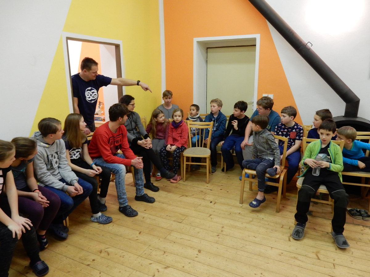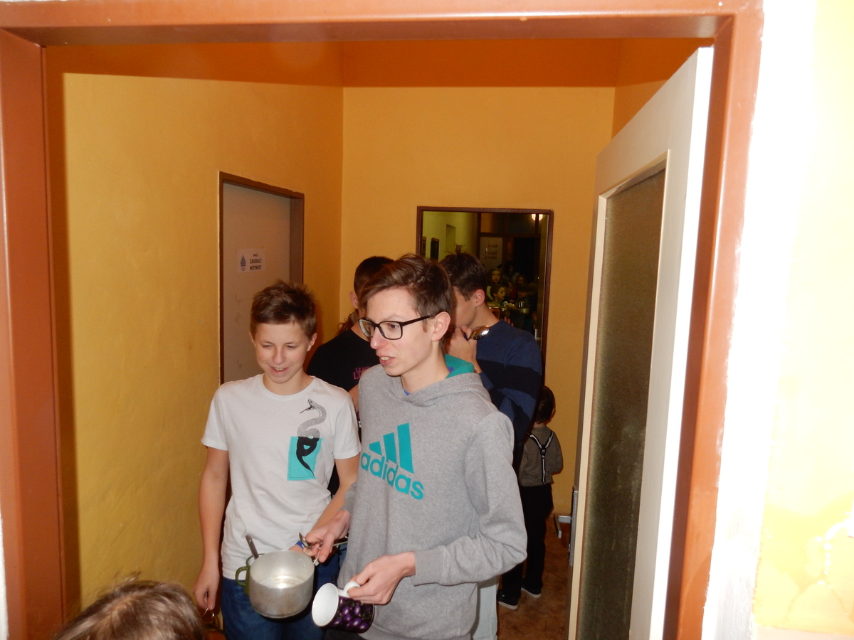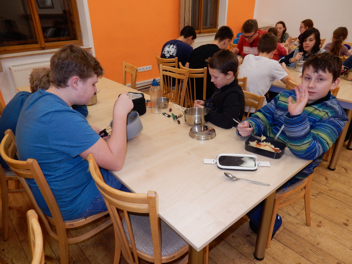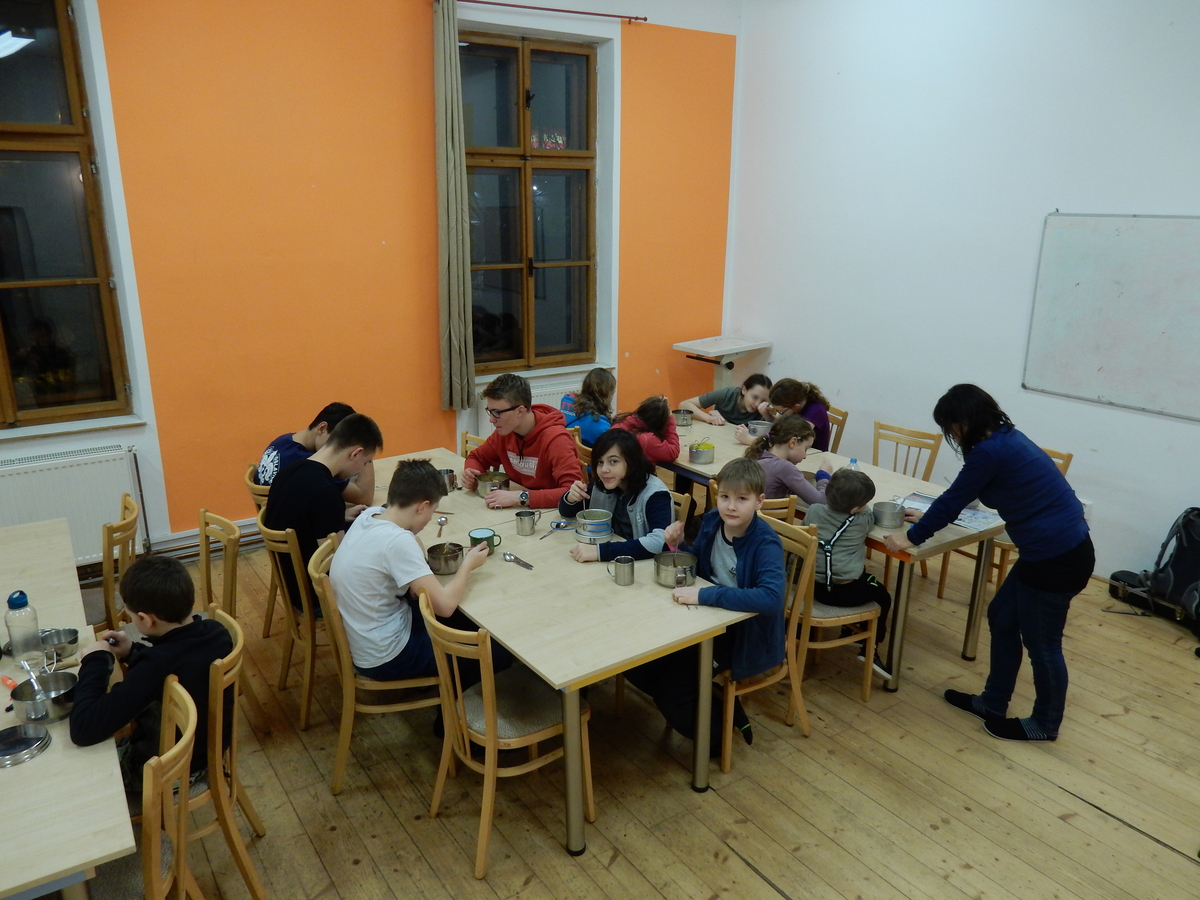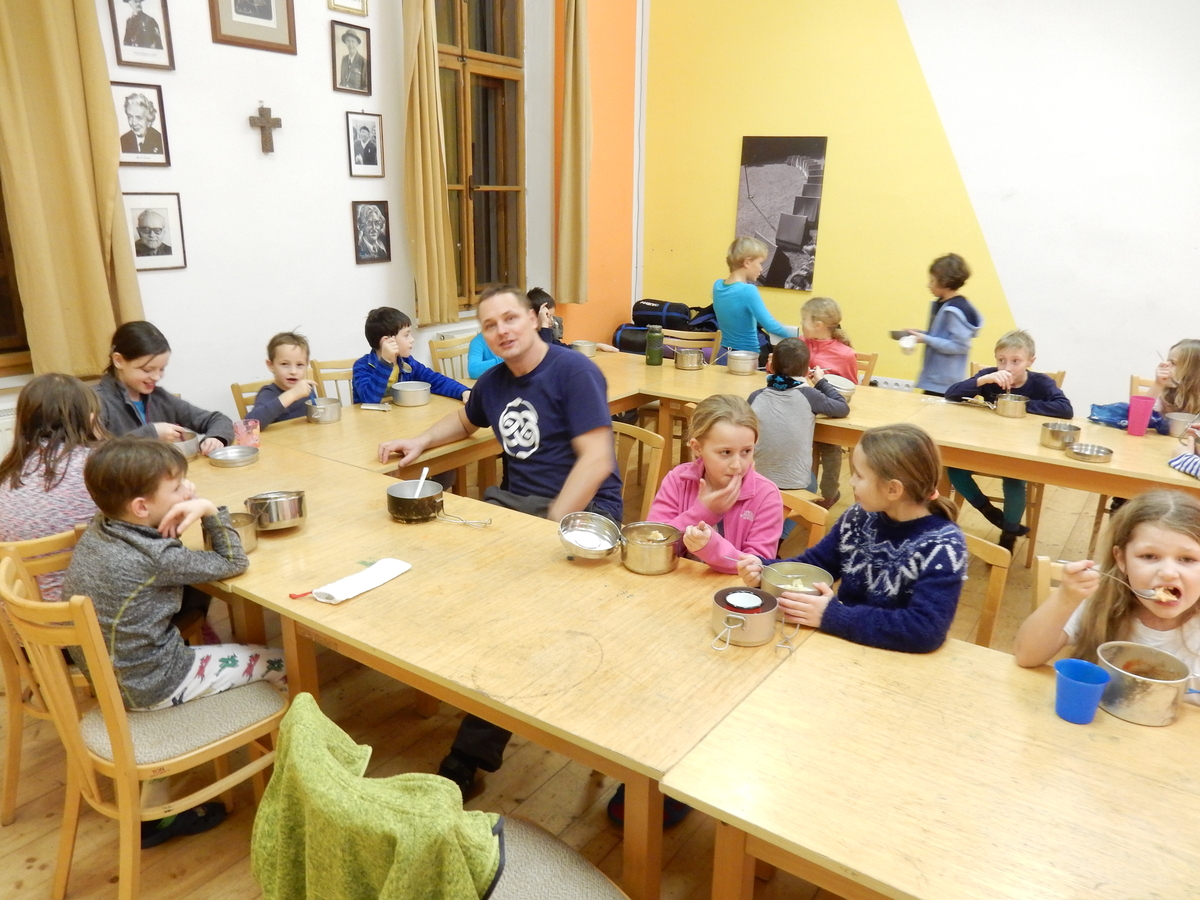 1.-3.2.2019 V září loňského roku jsme zaznamenali další příliv nováčků do oddílu, proto bylo jasné, že na zimní výpravu bude třeba najít dostatečně velkou základnu, která nás pojme. To se nám podařilo v Olomouci. Přihlašování bylo tentokrát premiérově přes nový oddílový systém DvojkIs a věřte nebo ne, nakonec nás na výpravu jelo 73. To je absolutní rekord, víc nás nebylo ani na žádném podzimním čtyřdenňáku a na těch bývá účast vždy lepší, než v zimě. A jely s námi poprvé i Hukvaldské Lišky. Sraz byl v pátek v 7:30 ráno u Radnice. Na etapy jsem se posunuli do Brna, kde na nás u Grandu čekal speciálně přiobjednaný spoj Student Agency s pohodovým řidičem za volantem. Ten nás dovezl až k nádraží v Olomouci a i když slíbené filmy nefungovaly, cesta byla v klidu. Pešo se asi kiláček nebo dva suneme k místnímu Skautskému domu, kde nás očekává místní správce Soptík. Než vedoucím ukáže ubytovnu, koulují se děcka venku sněhovými koulemi a náramně se při tom baví. Uvnitř obsazují naši členové tělocvičnu a každý si nachází místečko pro spaní. Vedlejší prostornou místnost rezervujeme Liškám. Kromě toho máme k dispozici dvě velké a jednu malou místnost nahoře a kuchyňku. Tu malou zabydlí Draci spolu s některými vedoucími, ve zbylých dvou budeme jíst a hrát hry. Než se tak stane, přicházejí i Lišky. Corado kempí v kuchyňce a vybírá od členstva jídlo, Džany zase v jedné ze společenských místností vybírá peníze. Poté vyrážíme do města. Na náměstí je to asi dva kilometry. Jdeme sněhem lemovanými chodníky, na náměstí je sněhu také hodně. Teplota ovšem strmě stoupá a sníh se takřka před očima mění ve vodu. Před orlojem na Horním náměstí se nejprve společně fotíme, pak rozděluji přítomné do 11 skupinek a vysvětluji hru. Účelem je navštívit 7 vybraných zajímavých míst v centru Olomouce a na každém něco zjistit. Skupinky musí putovat společně, nikdo se nesmí oddělit či někde ztratit a také je třeba místa opravdu vidět, ne jen věci do tabulky vyptat od kolemjdoucích, nebo dokonce vygooglovat. Na druhé straně soutěž není závodem na čas, jde o to si místa prohlédnout a hru užít, ne propotit oblečení. Zkrátka odměněna bude každá skupina, která v daném čase (1 hodina) dokáže věci zjistit. Mrňousci se poté rozbíhají do všech světových stran, vedoucí jdou buď s nimi, nebo si jdou někam sednout. Já jdu na lov turistických známek, ale je to nějaké smolné - ze tří, co ještě na Boudě nemáme, získávám jen jednu jedinou. Po uplynutí soutěžní hodiny mají členové ještě hodinový rozchod, po rozchodu soutěž vyhodnocuji. Sedm bodů mají jen dvě skupiny, většina má bodů pět a je tu i jedna nejmenovaná tlupa zoufalců, co nasbírala za celý čas bod jediný :-). Členstvo během chviličky spořádá sladké odměny a může se jít do akvaparku. Není to daleko, snad 3 nebo 4 kiláky. Na městskou výpravu toho ale nachodíme dost. Nevím kdo vymýšlel v akvaparku systém zamykacích skříněk, shodujeme se ale, že blbější bychom hledali jen velmi těžko. Když pak u východu místo prostého odevzdání čipu musíte tento přiložit ke čtečce, pak ho zanést na recepci a s papírkem jdete zpět k turniketu, který vás propustí, to už nic neříkáme jen se smějeme na celé kolo. Škoda, že si místní nezajeli pro inspiraci třeba do Vyškova. Uvnitř je to ale super. Dva tobogány, sauny, vířivky, bazén s atrakcemi... Voda teploučká, plavčíci normální. Nenudí se určitě nikdo a 90 minut uběhne jako nic. Zpět na základnu jedeme šalinou a kousek autobusem. Na místě nás už čekají Radek s Fufem a hlavně plný hrnec výborných těstovin s kečupem nebo s pestem. Skvělá večeře, myslím, že jsem nebyl sám, kdo si přidal. S plnými bříšky se pak suneme s židličkami do volné místnosti a hrajeme nejprve Seznamovačku a poté Vyměňovanou. Členstvo se nejen výborně baví, ale také mezi sebou trošku lépe poznává. Sám si už pamatuju skoro všechny naše nováčky a dobrou polovinu Lišek z Hukvald. Vše má ale svůj konce, i dnešní den. Hygiena, uložení k spánku. Pár neukázněnců sice noční klid malinko narušuje, i oni ale brzy usínají. Vedoucí se mohou v klidu poradit o zítřejším programu a pak plynule navázat zpěvem a hraním na kytárky. Vždyť noc je ještě mladá... -------------------------------------------------------------------------------------------------- "A proč zrovna Veverky musí chystat snídani? Vždyť jsem ji chystaly předloni na Březinách!" ptají se některé členky druhé nejstarší dívčí oddílové družiny poté, co je Radek žene do kuchyně. Jdou ale poslušně a když zaslechnou Klouba, jak svolává ostatní na rozcvičku, umlknou docela a spokojeně mažou chleby. No uznejte, je to furt lepší, než venku dělat kliky :-). Po snídani balíme věci a jde se na autobus, přidává se k nám i Elektronek s Ivetkou. Naší ambicí je posunout se na Svatý Kopeček a navštívit místní vyhlášenou ZOO. To by ovšem v Olomouci nesměly místo normálních autobusů jezdit jakási zakrslá nedochůdčata. Ať se snažíme, jak se snažíme, desítka starších a vedoucích zůstává na chodníku. Naštěstí je mezi námi zapomenutými a opuštěnými i Fuf, který je zde v Olomouci autem. Na 2x nás veze na Kopeček, takže jsme tam ještě dřív, než zbytek tlupy, co se do autobusečku vešel. Kupujeme hafanec lístků a po družinkách jdeme obdivovat zvířata. Kolem taje, je nějakých 10°C a nádherně svítí sluníčko. Některé družiny to pojímají jako vycházku, jiné hrají zjišťovací hru, některé to berou jako bufet tour. Vracíme se na základnu v různých časech (aby nás ta místní "nedochůdča