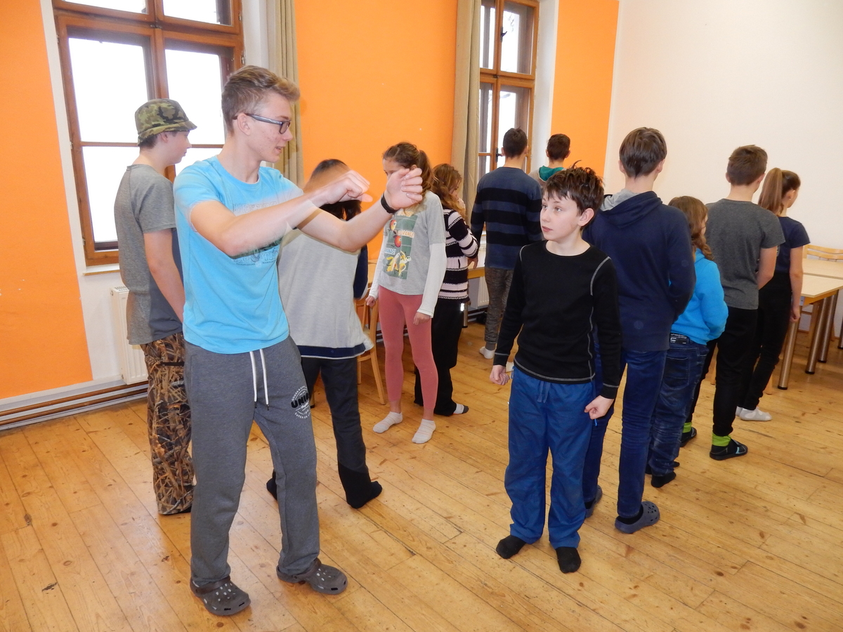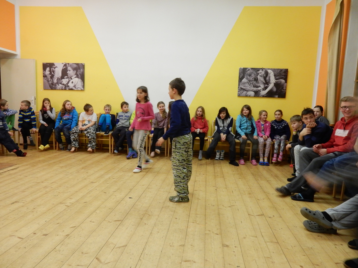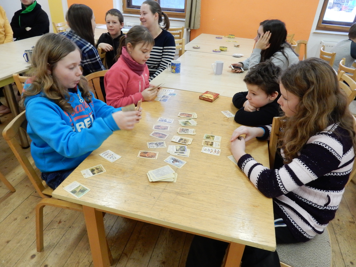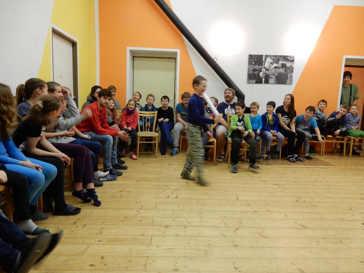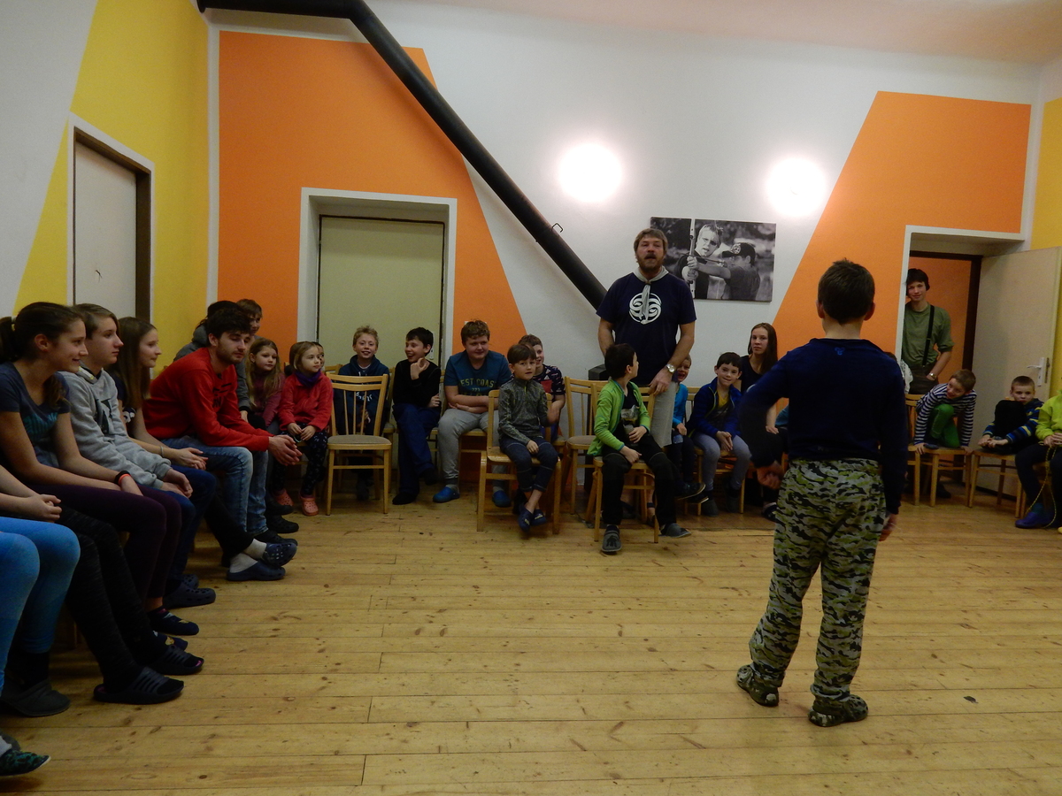 1.-3.2.2019 V září loňského roku jsme zaznamenali další příliv nováčků do oddílu, proto bylo jasné, že na zimní výpravu bude třeba najít dostatečně velkou základnu, která nás pojme. To se nám podařilo v Olomouci. Přihlašování bylo tentokrát premiérově přes nový oddílový systém DvojkIs a věřte nebo ne, nakonec nás na výpravu jelo 73. To je absolutní rekord, víc nás nebylo ani na žádném podzimním čtyřdenňáku a na těch bývá účast vždy lepší, než v zimě. A jely s námi poprvé i Hukvaldské Lišky. Sraz byl v pátek v 7:30 ráno u Radnice. Na etapy jsem se posunuli do Brna, kde na nás u Grandu čekal speciálně přiobjednaný spoj Student Agency s pohodovým řidičem za volantem. Ten nás dovezl až k nádraží v Olomouci a i když slíbené filmy nefungovaly, cesta byla v klidu. Pešo se asi kiláček nebo dva suneme k místnímu Skautskému domu, kde nás očekává místní správce Soptík. Než vedoucím ukáže ubytovnu, koulují se děcka venku sněhovými koulemi a náramně se při tom baví. Uvnitř obsazují naši členové tělocvičnu a každý si nachází místečko pro spaní. Vedlejší prostornou místnost rezervujeme Liškám. Kromě toho máme k dispozici dvě velké a jednu malou místnost nahoře a kuchyňku. Tu malou zabydlí Draci spolu s některými vedoucími, ve zbylých dvou budeme jíst a hrát hry. Než se tak stane, přicházejí i Lišky. Corado kempí v kuchyňce a vybírá od členstva jídlo, Džany zase v jedné ze společenských místností vybírá peníze. Poté vyrážíme do města. Na náměstí je to asi dva kilometry. Jdeme sněhem lemovanými chodníky, na náměstí je sněhu také hodně. Teplota ovšem strmě stoupá a sníh se takřka před očima mění ve vodu. Před orlojem na Horním náměstí se nejprve společně fotíme, pak rozděluji přítomné do 11 skupinek a vysvětluji hru. Účelem je navštívit 7 vybraných zajímavých míst v centru Olomouce a na každém něco zjistit. Skupinky musí putovat společně, nikdo se nesmí oddělit či někde ztratit a také je třeba místa opravdu vidět, ne jen věci do tabulky vyptat od kolemjdoucích, nebo dokonce vygooglovat. Na druhé straně soutěž není závodem na čas, jde o to si místa prohlédnout a hru užít, ne propotit oblečení. Zkrátka odměněna bude každá skupina, která v daném čase (1 hodina) dokáže věci zjistit. Mrňousci se poté rozbíhají do všech světových stran, vedoucí jdou buď s nimi, nebo si jdou někam sednout. Já jdu na lov turistických známek, ale je to nějaké smolné - ze tří, co ještě na Boudě nemáme, získávám jen jednu jedinou. Po uplynutí soutěžní hodiny mají členové ještě hodinový rozchod, po rozchodu soutěž vyhodnocuji. Sedm bodů mají jen dvě skupiny, většina má bodů pět a je tu i jedna nejmenovaná tlupa zoufalců, co nasbírala za celý čas bod jediný :-). Členstvo během chviličky spořádá sladké odměny a může se jít do akvaparku. Není to daleko, snad 3 nebo 4 kiláky. Na městskou výpravu toho ale nachodíme dost. Nevím kdo vymýšlel v akvaparku systém zamykacích skříněk, shodujeme se ale, že blbější bychom hledali jen velmi těžko. Když pak u východu místo prostého odevzdání čipu musíte tento přiložit ke čtečce, pak ho zanést na recepci a s papírkem jdete zpět k turniketu, který vás propustí, to už nic neříkáme jen se smějeme na celé kolo. Škoda, že si místní nezajeli pro inspiraci třeba do Vyškova. Uvnitř je to ale super. Dva tobogány, sauny, vířivky, bazén s atrakcemi... Voda teploučká, plavčíci normální. Nenudí se určitě nikdo a 90 minut uběhne jako nic. Zpět na základnu jedeme šalinou a kousek autobusem. Na místě nás už čekají Radek s Fufem a hlavně plný hrnec výborných těstovin s kečupem nebo s pestem. Skvělá večeře, myslím, že jsem nebyl sám, kdo si přidal. S plnými bříšky se pak suneme s židličkami do volné místnosti a hrajeme nejprve Seznamovačku a poté Vyměňovanou. Členstvo se nejen výborně baví, ale také mezi sebou trošku lépe poznává. Sám si už pamatuju skoro všechny naše nováčky a dobrou polovinu Lišek z Hukvald. Vše má ale svůj konce, i dnešní den. Hygiena, uložení k spánku. Pár neukázněnců sice noční klid malinko narušuje, i oni ale brzy usínají. Vedoucí se mohou v klidu poradit o zítřejším programu a pak plynule navázat zpěvem a hraním na kytárky. Vždyť noc je ještě mladá... -------------------------------------------------------------------------------------------------- "A proč zrovna Veverky musí chystat snídani? Vždyť jsem ji chystaly předloni na Březinách!" ptají se některé členky druhé nejstarší dívčí oddílové družiny poté, co je Radek žene do kuchyně. Jdou ale poslušně a když zaslechnou Klouba, jak svolává ostatní na rozcvičku, umlknou docela a spokojeně mažou chleby. No uznejte, je to furt lepší, než venku dělat kliky :-). Po snídani balíme věci a jde se na autobus, přidává se k nám i Elektronek s Ivetkou. Naší ambicí je posunout se na Svatý Kopeček a navštívit místní vyhlášenou ZOO. To by ovšem v Olomouci nesměly místo normálních autobusů jezdit jakási zakrslá nedochůdčata. Ať se snažíme, jak se snažíme, desítka starších a vedoucích zůstává na chodníku. Naštěstí je mezi námi zapomenutými a opuštěnými i Fuf, který je zde v Olomouci autem. Na 2x nás veze na Kopeček, takže jsme tam ještě dřív, než zbytek tlupy, co se do autobusečku vešel. Kupujeme hafanec lístků a po družinkách jdeme obdivovat zvířata. Kolem taje, je nějakých 10°C a nádherně svítí sluníčko. Některé družiny to pojímají jako vycházku, jiné hrají zjišťovací hru, některé to berou jako bufet tour. Vracíme se na základnu v různých časech (aby nás ta místní "nedochůdča