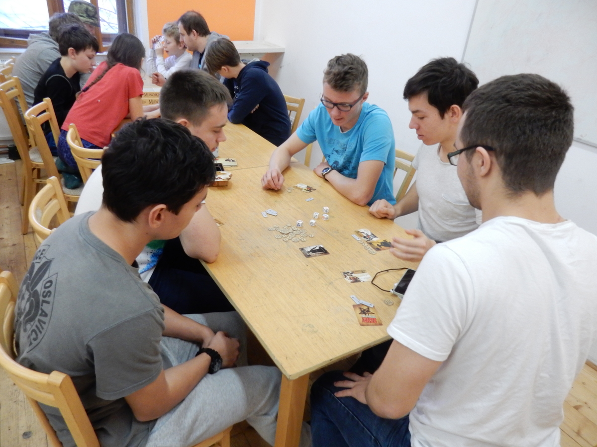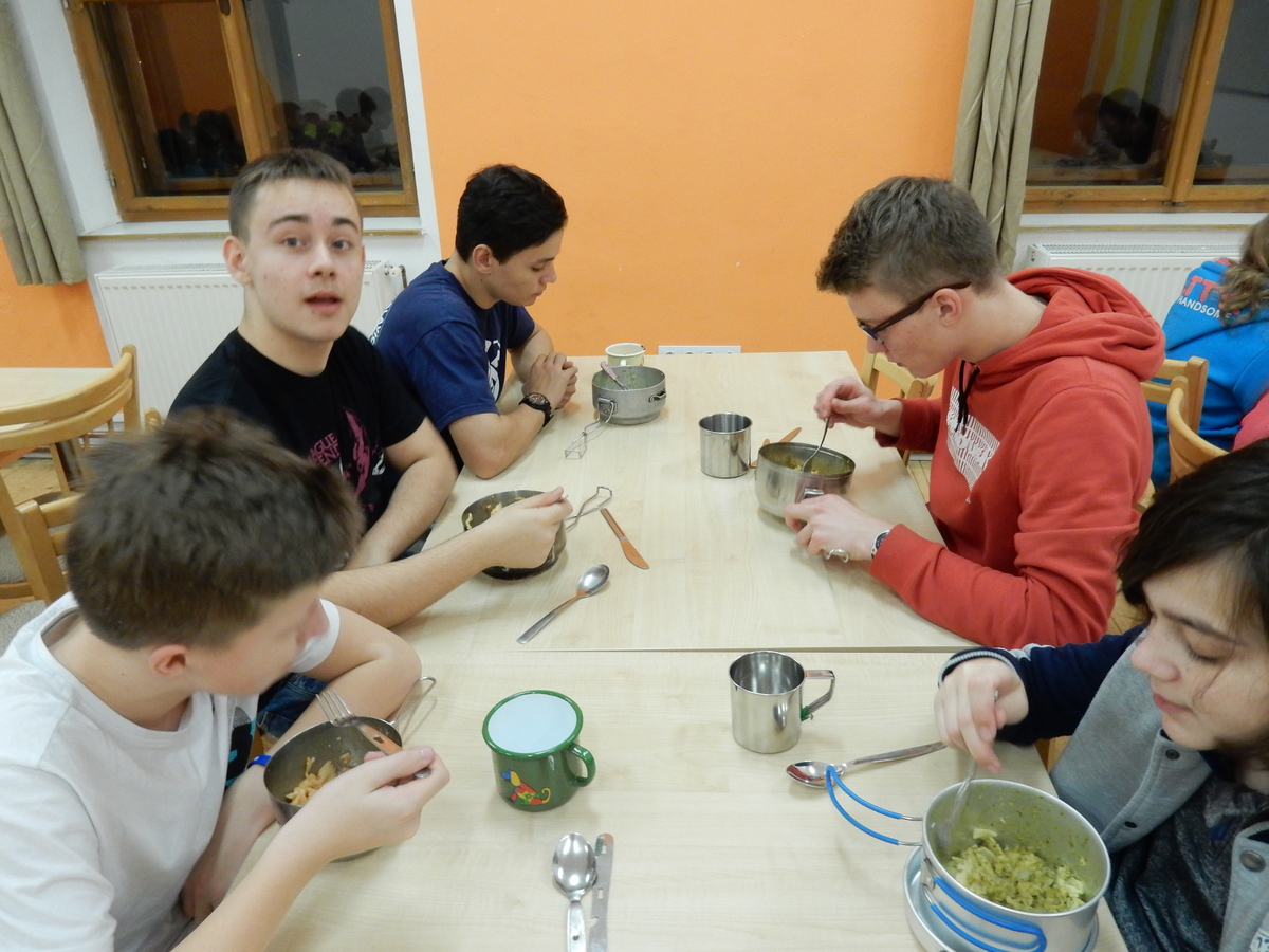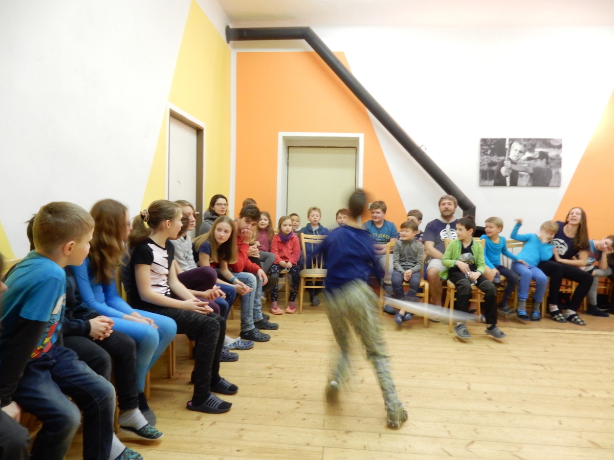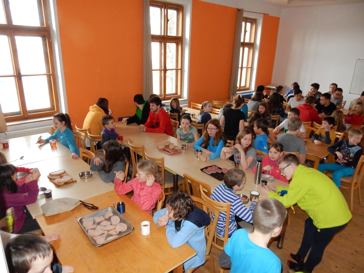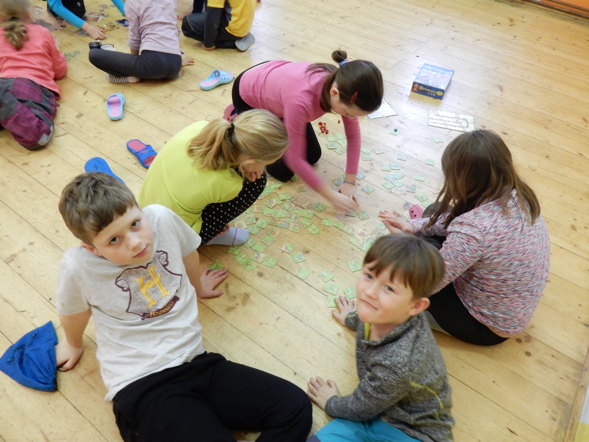 1.-3.2.2019 V září loňského roku jsme zaznamenali další příliv nováčků do oddílu, proto bylo jasné, že na zimní výpravu bude třeba najít dostatečně velkou základnu, která nás pojme. To se nám podařilo v Olomouci. Přihlašování bylo tentokrát premiérově přes nový oddílový systém DvojkIs a věřte nebo ne, nakonec nás na výpravu jelo 73. To je absolutní rekord, víc nás nebylo ani na žádném podzimním čtyřdenňáku a na těch bývá účast vždy lepší, než v zimě. A jely s námi poprvé i Hukvaldské Lišky. Sraz byl v pátek v 7:30 ráno u Radnice. Na etapy jsem se posunuli do Brna, kde na nás u Grandu čekal speciálně přiobjednaný spoj Student Agency s pohodovým řidičem za volantem. Ten nás dovezl až k nádraží v Olomouci a i když slíbené filmy nefungovaly, cesta byla v klidu. Pešo se asi kiláček nebo dva suneme k místnímu Skautskému domu, kde nás očekává místní správce Soptík. Než vedoucím ukáže ubytovnu, koulují se děcka venku sněhovými koulemi a náramně se při tom baví. Uvnitř obsazují naši členové tělocvičnu a každý si nachází místečko pro spaní. Vedlejší prostornou místnost rezervujeme Liškám. Kromě toho máme k dispozici dvě velké a jednu malou místnost nahoře a kuchyňku. Tu malou zabydlí Draci spolu s některými vedoucími, ve zbylých dvou budeme jíst a hrát hry. Než se tak stane, přicházejí i Lišky. Corado kempí v kuchyňce a vybírá od členstva jídlo, Džany zase v jedné ze společenských místností vybírá peníze. Poté vyrážíme do města. Na náměstí je to asi dva kilometry. Jdeme sněhem lemovanými chodníky, na náměstí je sněhu také hodně. Teplota ovšem strmě stoupá a sníh se takřka před očima mění ve vodu. Před orlojem na Horním náměstí se nejprve společně fotíme, pak rozděluji přítomné do 11 skupinek a vysvětluji hru. Účelem je navštívit 7 vybraných zajímavých míst v centru Olomouce a na každém něco zjistit. Skupinky musí putovat společně, nikdo se nesmí oddělit či někde ztratit a také je třeba místa opravdu vidět, ne jen věci do tabulky vyptat od kolemjdoucích, nebo dokonce vygooglovat. Na druhé straně soutěž není závodem na čas, jde o to si místa prohlédnout a hru užít, ne propotit oblečení. Zkrátka odměněna bude každá skupina, která v daném čase (1 hodina) dokáže věci zjistit. Mrňousci se poté rozbíhají do všech světových stran, vedoucí jdou buď s nimi, nebo si jdou někam sednout. Já jdu na lov turistických známek, ale je to nějaké smolné - ze tří, co ještě na Boudě nemáme, získávám jen jednu jedinou. Po uplynutí soutěžní hodiny mají členové ještě hodinový rozchod, po rozchodu soutěž vyhodnocuji. Sedm bodů mají jen dvě skupiny, většina má bodů pět a je tu i jedna nejmenovaná tlupa zoufalců, co nasbírala za celý čas bod jediný :-). Členstvo během chviličky spořádá sladké odměny a může se jít do akvaparku. Není to daleko, snad 3 nebo 4 kiláky. Na městskou výpravu toho ale nachodíme dost. Nevím kdo vymýšlel v akvaparku systém zamykacích skříněk, shodujeme se ale, že blbější bychom hledali jen velmi těžko. Když pak u východu místo prostého odevzdání čipu musíte tento přiložit ke čtečce, pak ho zanést na recepci a s papírkem jdete zpět k turniketu, který vás propustí, to už nic neříkáme jen se smějeme na celé kolo. Škoda, že si místní nezajeli pro inspiraci třeba do Vyškova. Uvnitř je to ale super. Dva tobogány, sauny, vířivky, bazén s atrakcemi... Voda teploučká, plavčíci normální. Nenudí se určitě nikdo a 90 minut uběhne jako nic. Zpět na základnu jedeme šalinou a kousek autobusem. Na místě nás už čekají Radek s Fufem a hlavně plný hrnec výborných těstovin s kečupem nebo s pestem. Skvělá večeře, myslím, že jsem nebyl sám, kdo si přidal. S plnými bříšky se pak suneme s židličkami do volné místnosti a hrajeme nejprve Seznamovačku a poté Vyměňovanou. Členstvo se nejen výborně baví, ale také mezi sebou trošku lépe poznává. Sám si už pamatuju skoro všechny naše nováčky a dobrou polovinu Lišek z Hukvald. Vše má ale svůj konce, i dnešní den. Hygiena, uložení k spánku. Pár neukázněnců sice noční klid malinko narušuje, i oni ale brzy usínají. Vedoucí se mohou v klidu poradit o zítřejším programu a pak plynule navázat zpěvem a hraním na kytárky. Vždyť noc je ještě mladá... -------------------------------------------------------------------------------------------------- "A proč zrovna Veverky musí chystat snídani? Vždyť jsem ji chystaly předloni na Březinách!" ptají se některé členky druhé nejstarší dívčí oddílové družiny poté, co je Radek žene do kuchyně. Jdou ale poslušně a když zaslechnou Klouba, jak svolává ostatní na rozcvičku, umlknou docela a spokojeně mažou chleby. No uznejte, je to furt lepší, než venku dělat kliky :-). Po snídani balíme věci a jde se na autobus, přidává se k nám i Elektronek s Ivetkou. Naší ambicí je posunout se na Svatý Kopeček a navštívit místní vyhlášenou ZOO. To by ovšem v Olomouci nesměly místo normálních autobusů jezdit jakási zakrslá nedochůdčata. Ať se snažíme, jak se snažíme, desítka starších a vedoucích zůstává na chodníku. Naštěstí je mezi námi zapomenutými a opuštěnými i Fuf, který je zde v Olomouci autem. Na 2x nás veze na Kopeček, takže jsme tam ještě dřív, než zbytek tlupy, co se do autobusečku vešel. Kupujeme hafanec lístků a po družinkách jdeme obdivovat zvířata. Kolem taje, je nějakých 10°C a nádherně svítí sluníčko. Některé družiny to pojímají jako vycházku, jiné hrají zjišťovací hru, některé to berou jako bufet tour. Vracíme se na základnu v různých časech (aby nás ta místní "nedochůdča