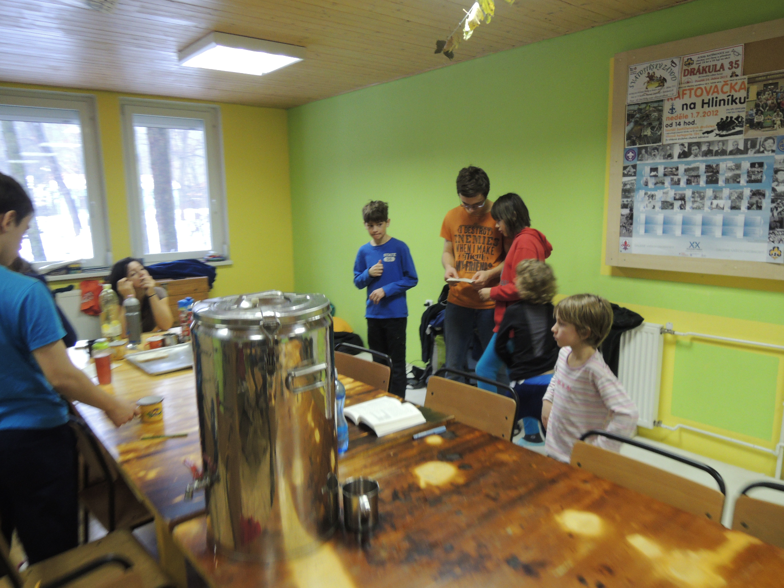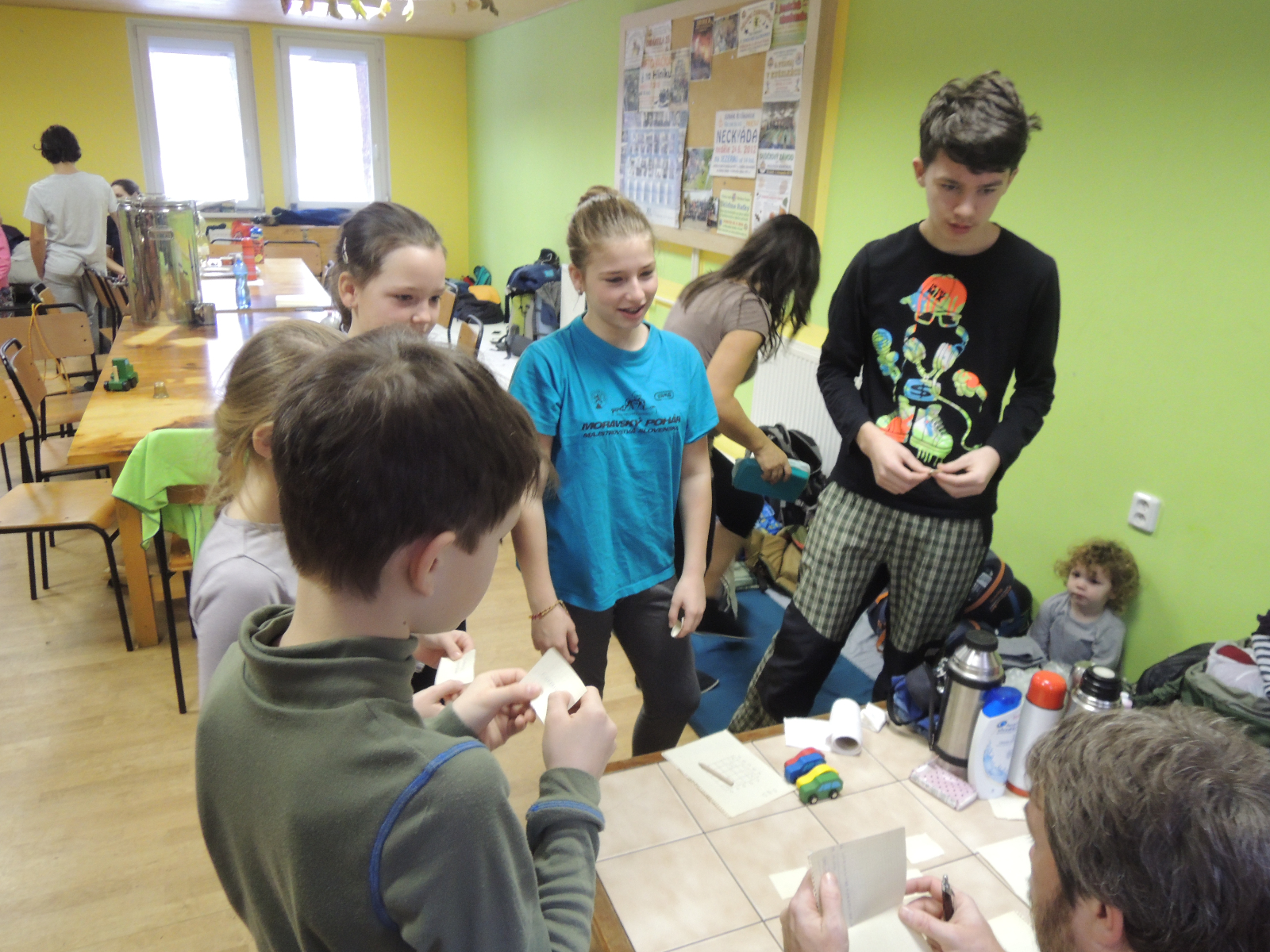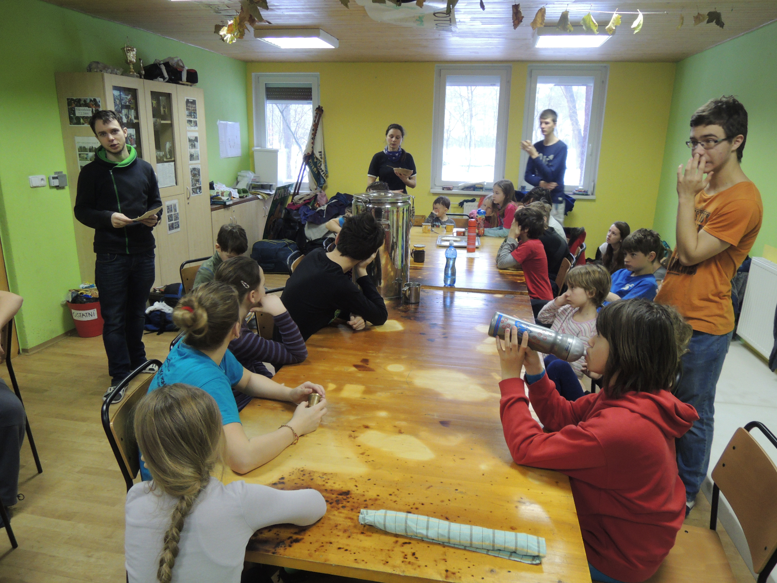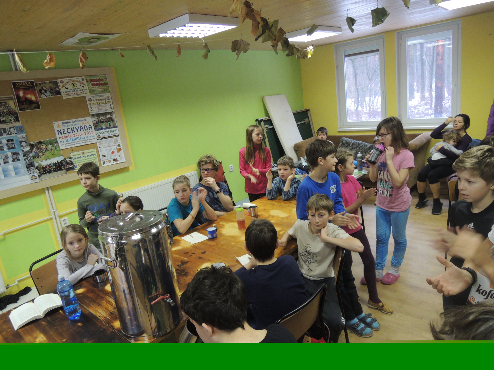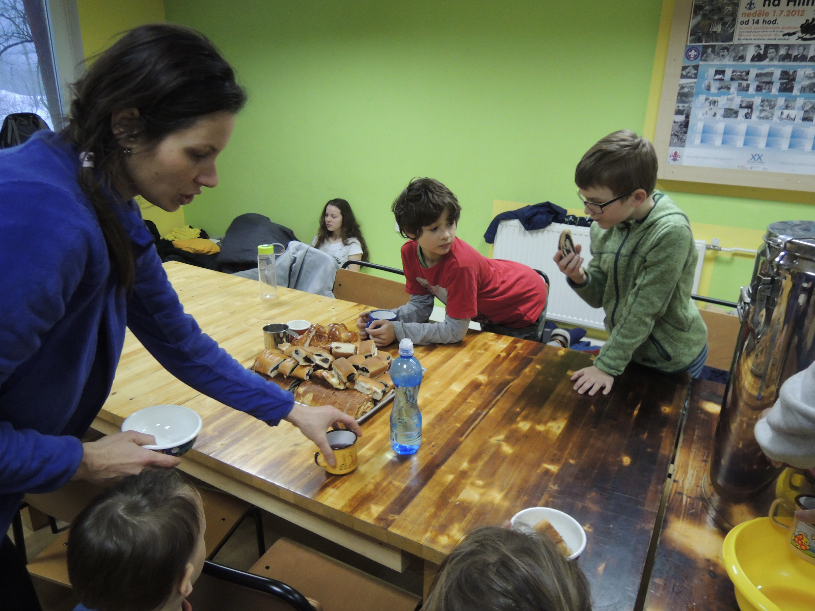 V týdnu před pololetními prázdninami napadlo skoro 20 čísel sněhu, což je v našich končinách dost rarita. Měl jsem trošku obavy, jak to zvládne náš autobusák, na druhé straně to skýtalo spoustu možností zimního programu. Obavy se ukázaly naštěstí jako liché. Pátek, 9:00. Houfec dětí a vedoucích přešlapuje před Boudou v závějích čerstvého sněhu. Někdo obdivuje iglů, které včera postavili Sršni na schůzce, jiní přemýšlí, zda nápor sněhu unese střecha Boudy, další se koulují. Chviličku po deváté je tu autobus. Bengi s Vítkem nakládají batohy do zavazadlového prostoru, Džany zapisuje do deníku každého, kdo se nalodí na palubu. Kolem čtvrt na deset celá posádka čítající 43 lidiček odjíždí směr Hodonín. První zastávkou na naší cestě do Ratíškovic je muzeum těžby nafty v Hodoníně. Dva průvodci si nás rozdělují na poloviny a vyprávějí nám o historii těžby v okolí Hodonína. Děckám se ale nejvíc líbí záchranářský oblek a pak taky akvárium plné vody s naftou. Na závěr si někteří kupují turistickou známku a jede se do města. V centru rozdělujeme třicet skautíků a skautic do šesti skupinek po pěti a hraje se zjišťovací hra. Úkolem je obejít pět zajímavých míst, na každém něco zjistit a zapsat to do křížovky. Vítězí ta skupina, která co nejrychleji přinese vyluštěnou tajenku. Není to zdaleka tak jednoduché, jak se zdá. Vítězí skupina, vedená Vítkem těsně před Filíšovci a skupinou, vedenou Danem Růžou. Rozchod - starší sami, mladší ve skupinách s vedoucími. Místní hranolkárna zažívá velký atak :-). V Ratíškovicích nám klubovnu předává místní skautka. Než se přisunou mladší členové od autobusu (jde se jen asi 100 metrů, ale je tu spousta sněhu a cesta je neprošlapaná), připravují Draci ležení. V horní velké klubovně budou Veverky, Tygři, Vlci, Sršni a Kudlanky. V menší klubovně budou bydlet Pumy a Draci. V dolní místnosti s krbem se usadí vedoucí a Svištíci. Všude rozkládáme matrace. Když se všichni zabydlí a posvačí, vybírá Renča peníze a Bengi jídlo. Vítek s Bengim se pak pouštějí do přípravy večeře, zatímco Brácha s Kiki, Hihňou, Křídlem a Babů jdou se všemi účastníky ven a staví se vysoké věže ze sněhu. A jde to skvěle, materiálu je hafel a lepí se jedna báseň! Zato je pak potřeba všechno oblečení usušit - to je odvrácená strana sněhové úrody a teploty nad nulou. Na večeři jsou špagety a před spaním zpíváme písničky na přání. V krbu praská oheň a nám je dobře. Sobotní ráno je mlhavé, pošmourné a nevlídné. A co bych to nenapsal rovnou, bude takový celý den. Nám to ale ani trochu nevadí. Zahajujeme den rozcvičkou před chatou a než si protáhneme těla, nachystají Džany s Pumama k snídani buchty a čaj. Po jídle balíme a vyrážíme na pověstmi opředený kopec Náklo. Taje a cesty občas připomínají potoky. Na kopci svačíme a Kiki organizuje tři kola velké koulovací bitvy. Někteří nadšenci taky loví kešky a Brácha studuje v mobilu zpáteční cestu, aby nás pak mohl vláčet poli a půlmetrovými závějemi :-). V Ratíškovicích vysíláme dvojici zkušených vyjednavačů do bazénu (chceme se jít koupat už dnes!), ostatní se sáčkují do klubovny, suší se a odpočívají. Pár kiláků, ale unavení jsme dost. Před večeří (uzený, brambory) je ještě turnaj v Dobble, ve finále Kloub poráží Honzu Jiráska. No a po večeři se jde plavčit! Je to super relax a většině lidiček ani trochu nevadí, že oblečení mají od Nákla stále ještě vlhké. Taky nás opouštějí tři braši: Vítek, Brácha a Bengi. Mizí na autobus a za všedními povinnostmi města... My si ale užíváme dál, po návratu z bazénu zpíváme a před spaním roztápíme opět krb. Všude vládne pohoda. Neděle. Budíček, individuální rozcvička pro Adama a Džekpota, snídaně, co ji přichystali Draci. No a po snídani poslední etapa, kterou familiárně a vůbec nevím proč Džany nazývá "Želvičky". Co vím ale jistě, že: a/ křížovky nejsou silnou stránkou žádného z druhooddíláků, b/trpělivost taky ne a c/starší označení pro WC, totiž 00, taky nikomu nic neříká. Přesto se nakonec většina k cíli propracuje a můžeme vyhlásit výsledky nejen etapy, nýbrž i celé celovýpravové hry na naftaře. Vítězí "Naftařská II. divize" ve složení Kloub, Maky, Anička, Žabka, Džekpot se ziskem 39 bodů. Druhé místo patří "Naftařské III. divizi" ve složení Vítek, Vojta, Keho, Najk, Míša. Ta získala bodů 36. A konečně třetí místo obsadila "Naftařská IV. divize" ve složení Filíš, Honza, Hrozča, Bělča, Dejv s 32 body. Samozřejmě, že sladkou odměnu si zaslouží (a taky dostává) všech šest divizí. Následuje úklid a balení, což je většinou nejkritičtější část akce. Dnes kupodivu nikoli, jde to celkem dobře a pohodově. Na oběd Fí s Renčou vaří gulášovou polívku a jen se po ní zapráší. A než přijede autobus, hrajeme tradiční "Městečko Palermo" s dvojí inovací: vraždící Coradem a Božím hněvem, jenž vyřazuje švindléře :-). Organizuje to Džany a dopadá to dost realisticky, totiž vítězí mafiáni na celé čáře. Ale než mafiáni stačí vítězství pořádně oslavit, je tu autobus a tak se suneme v plné polní na parking. Draci nakládají batohy, my s Džanym dokončujeme úklid, protože chodbu holt neuklidíte, dokud všichni nevypadnou :-). Zpět na Boudu jedeme přes Kyjov a vyprovází nás nádherné slunečné počasí. Teplota stoupá hodně nad nulu. Škoda, že takto krásně nebylo včera, když jsme šplhali na Náklo. Před Boudou nás již čekají zástupy rodičů. A co je přímo úžasné, plac pro zaparkování autobusu je volný. Tak příjemné překvape