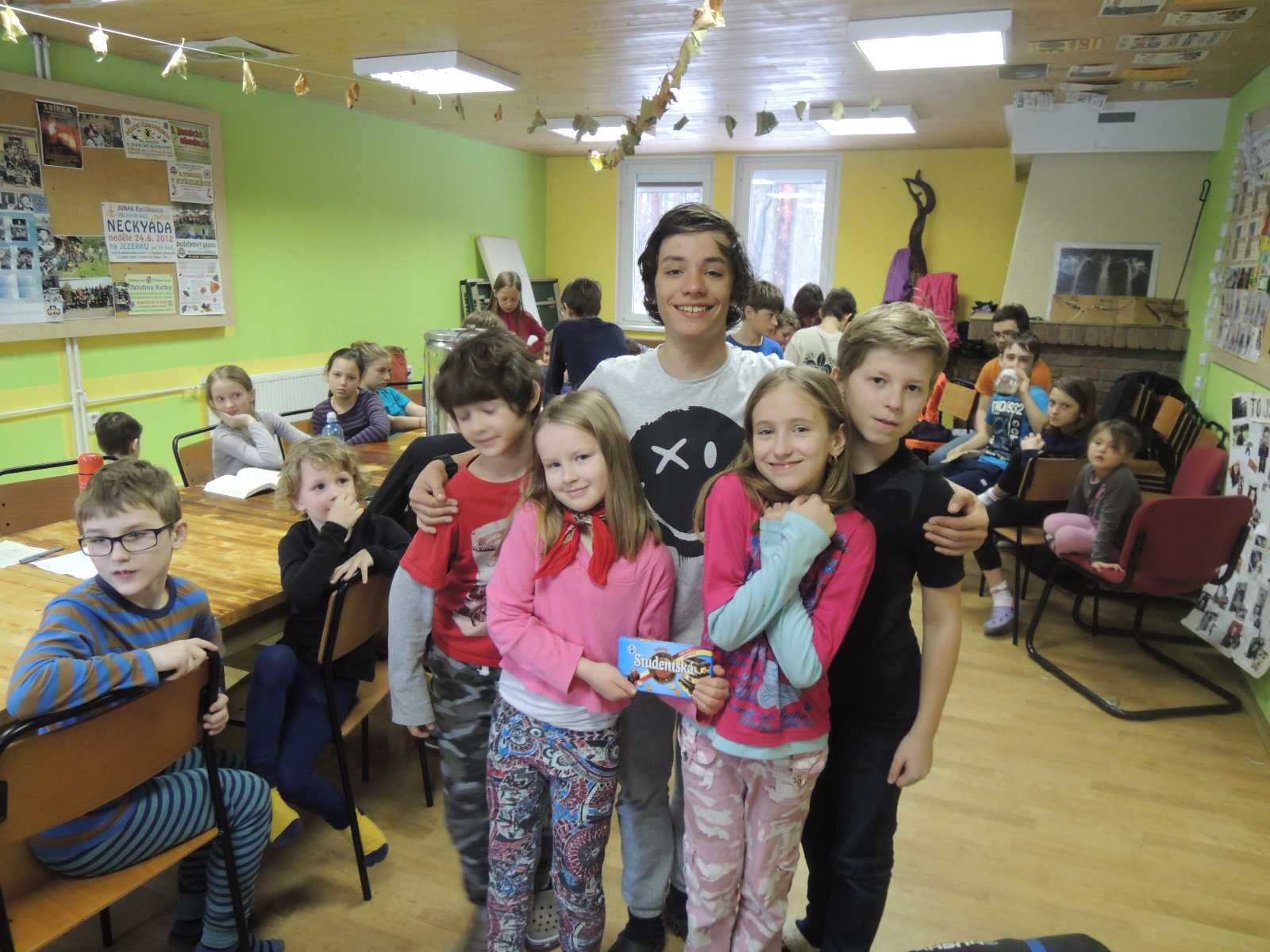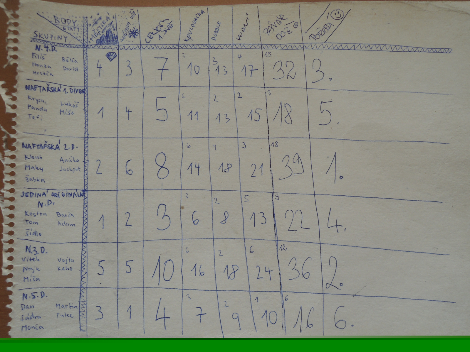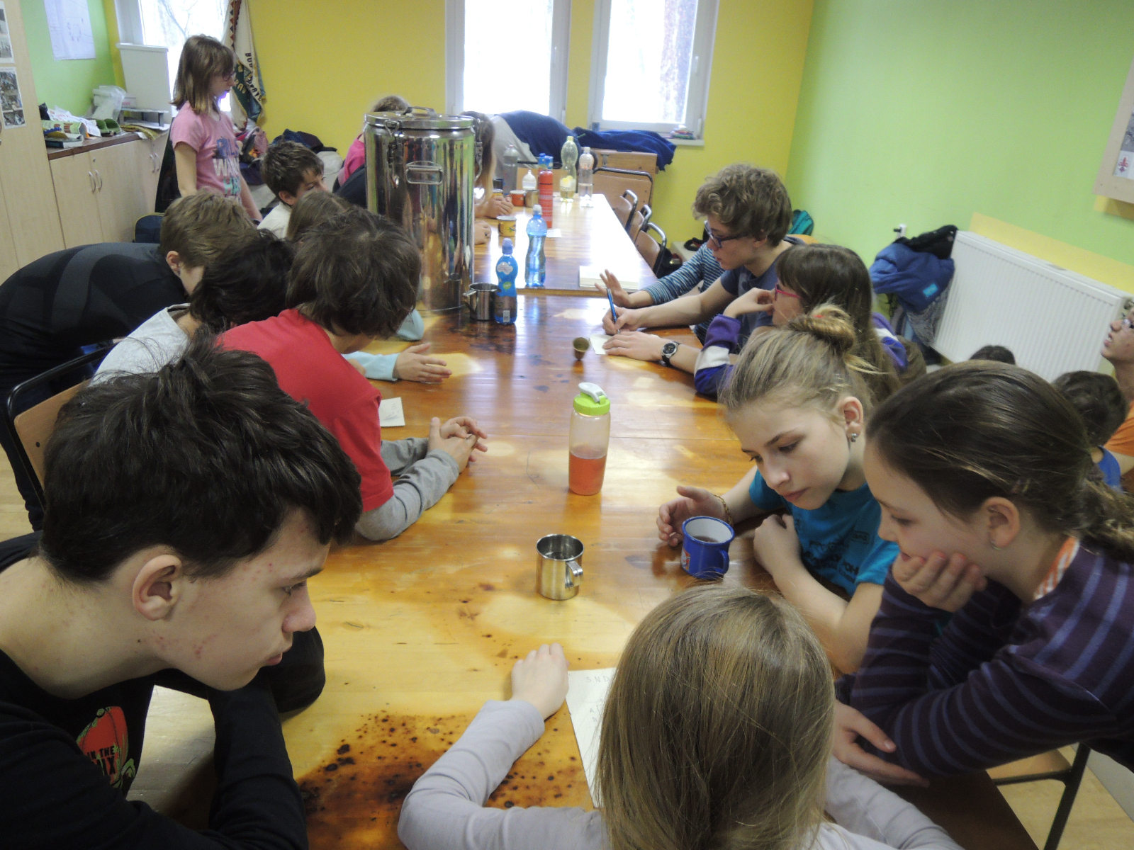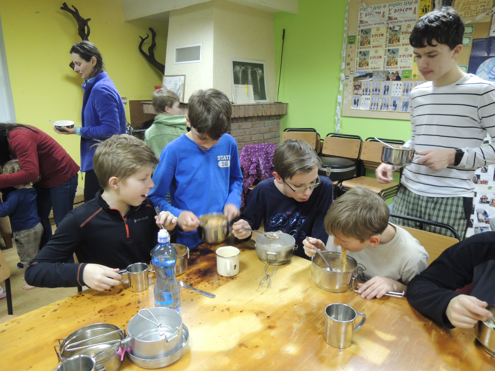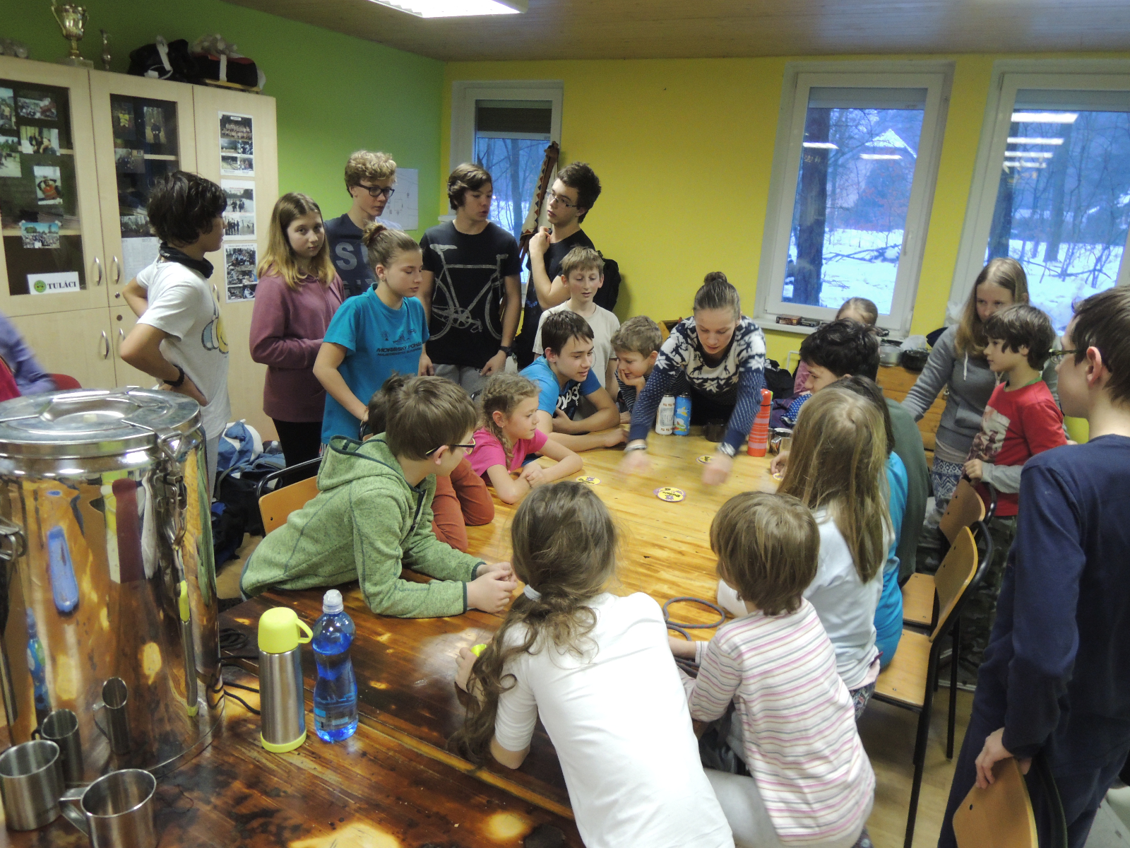 V týdnu před pololetními prázdninami napadlo skoro 20 čísel sněhu, což je v našich končinách dost rarita. Měl jsem trošku obavy, jak to zvládne náš autobusák, na druhé straně to skýtalo spoustu možností zimního programu. Obavy se ukázaly naštěstí jako liché. Pátek, 9:00. Houfec dětí a vedoucích přešlapuje před Boudou v závějích čerstvého sněhu. Někdo obdivuje iglů, které včera postavili Sršni na schůzce, jiní přemýšlí, zda nápor sněhu unese střecha Boudy, další se koulují. Chviličku po deváté je tu autobus. Bengi s Vítkem nakládají batohy do zavazadlového prostoru, Džany zapisuje do deníku každého, kdo se nalodí na palubu. Kolem čtvrt na deset celá posádka čítající 43 lidiček odjíždí směr Hodonín. První zastávkou na naší cestě do Ratíškovic je muzeum těžby nafty v Hodoníně. Dva průvodci si nás rozdělují na poloviny a vyprávějí nám o historii těžby v okolí Hodonína. Děckám se ale nejvíc líbí záchranářský oblek a pak taky akvárium plné vody s naftou. Na závěr si někteří kupují turistickou známku a jede se do města. V centru rozdělujeme třicet skautíků a skautic do šesti skupinek po pěti a hraje se zjišťovací hra. Úkolem je obejít pět zajímavých míst, na každém něco zjistit a zapsat to do křížovky. Vítězí ta skupina, která co nejrychleji přinese vyluštěnou tajenku. Není to zdaleka tak jednoduché, jak se zdá. Vítězí skupina, vedená Vítkem těsně před Filíšovci a skupinou, vedenou Danem Růžou. Rozchod - starší sami, mladší ve skupinách s vedoucími. Místní hranolkárna zažívá velký atak :-). V Ratíškovicích nám klubovnu předává místní skautka. Než se přisunou mladší členové od autobusu (jde se jen asi 100 metrů, ale je tu spousta sněhu a cesta je neprošlapaná), připravují Draci ležení. V horní velké klubovně budou Veverky, Tygři, Vlci, Sršni a Kudlanky. V menší klubovně budou bydlet Pumy a Draci. V dolní místnosti s krbem se usadí vedoucí a Svištíci. Všude rozkládáme matrace. Když se všichni zabydlí a posvačí, vybírá Renča peníze a Bengi jídlo. Vítek s Bengim se pak pouštějí do přípravy večeře, zatímco Brácha s Kiki, Hihňou, Křídlem a Babů jdou se všemi účastníky ven a staví se vysoké věže ze sněhu. A jde to skvěle, materiálu je hafel a lepí se jedna báseň! Zato je pak potřeba všechno oblečení usušit - to je odvrácená strana sněhové úrody a teploty nad nulou. Na večeři jsou špagety a před spaním zpíváme písničky na přání. V krbu praská oheň a nám je dobře. Sobotní ráno je mlhavé, pošmourné a nevlídné. A co bych to nenapsal rovnou, bude takový celý den. Nám to ale ani trochu nevadí. Zahajujeme den rozcvičkou před chatou a než si protáhneme těla, nachystají Džany s Pumama k snídani buchty a čaj. Po jídle balíme a vyrážíme na pověstmi opředený kopec Náklo. Taje a cesty občas připomínají potoky. Na kopci svačíme a Kiki organizuje tři kola velké koulovací bitvy. Někteří nadšenci taky loví kešky a Brácha studuje v mobilu zpáteční cestu, aby nás pak mohl vláčet poli a půlmetrovými závějemi :-). V Ratíškovicích vysíláme dvojici zkušených vyjednavačů do bazénu (chceme se jít koupat už dnes!), ostatní se sáčkují do klubovny, suší se a odpočívají. Pár kiláků, ale unavení jsme dost. Před večeří (uzený, brambory) je ještě turnaj v Dobble, ve finále Kloub poráží Honzu Jiráska. No a po večeři se jde plavčit! Je to super relax a většině lidiček ani trochu nevadí, že oblečení mají od Nákla stále ještě vlhké. Taky nás opouštějí tři braši: Vítek, Brácha a Bengi. Mizí na autobus a za všedními povinnostmi města... My si ale užíváme dál, po návratu z bazénu zpíváme a před spaním roztápíme opět krb. Všude vládne pohoda. Neděle. Budíček, individuální rozcvička pro Adama a Džekpota, snídaně, co ji přichystali Draci. No a po snídani poslední etapa, kterou familiárně a vůbec nevím proč Džany nazývá "Želvičky". Co vím ale jistě, že: a/ křížovky nejsou silnou stránkou žádného z druhooddíláků, b/trpělivost taky ne a c/starší označení pro WC, totiž 00, taky nikomu nic neříká. Přesto se nakonec většina k cíli propracuje a můžeme vyhlásit výsledky nejen etapy, nýbrž i celé celovýpravové hry na naftaře. Vítězí "Naftařská II. divize" ve složení Kloub, Maky, Anička, Žabka, Džekpot se ziskem 39 bodů. Druhé místo patří "Naftařské III. divizi" ve složení Vítek, Vojta, Keho, Najk, Míša. Ta získala bodů 36. A konečně třetí místo obsadila "Naftařská IV. divize" ve složení Filíš, Honza, Hrozča, Bělča, Dejv s 32 body. Samozřejmě, že sladkou odměnu si zaslouží (a taky dostává) všech šest divizí. Následuje úklid a balení, což je většinou nejkritičtější část akce. Dnes kupodivu nikoli, jde to celkem dobře a pohodově. Na oběd Fí s Renčou vaří gulášovou polívku a jen se po ní zapráší. A než přijede autobus, hrajeme tradiční "Městečko Palermo" s dvojí inovací: vraždící Coradem a Božím hněvem, jenž vyřazuje švindléře :-). Organizuje to Džany a dopadá to dost realisticky, totiž vítězí mafiáni na celé čáře. Ale než mafiáni stačí vítězství pořádně oslavit, je tu autobus a tak se suneme v plné polní na parking. Draci nakládají batohy, my s Džanym dokončujeme úklid, protože chodbu holt neuklidíte, dokud všichni nevypadnou :-). Zpět na Boudu jedeme přes Kyjov a vyprovází nás nádherné slunečné počasí. Teplota stoupá hodně nad nulu. Škoda, že takto krásně nebylo včera, když jsme šplhali na Náklo. Před Boudou nás již čekají zástupy rodičů. A co je přímo úžasné, plac pro zaparkování autobusu je volný. Tak příjemné překvape