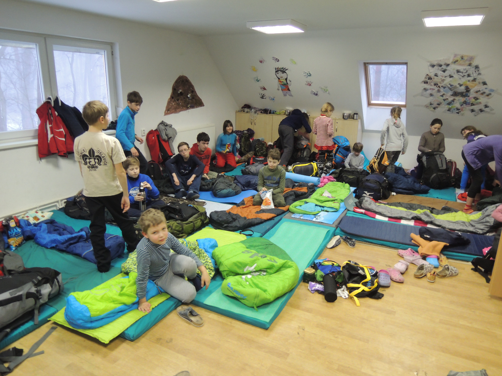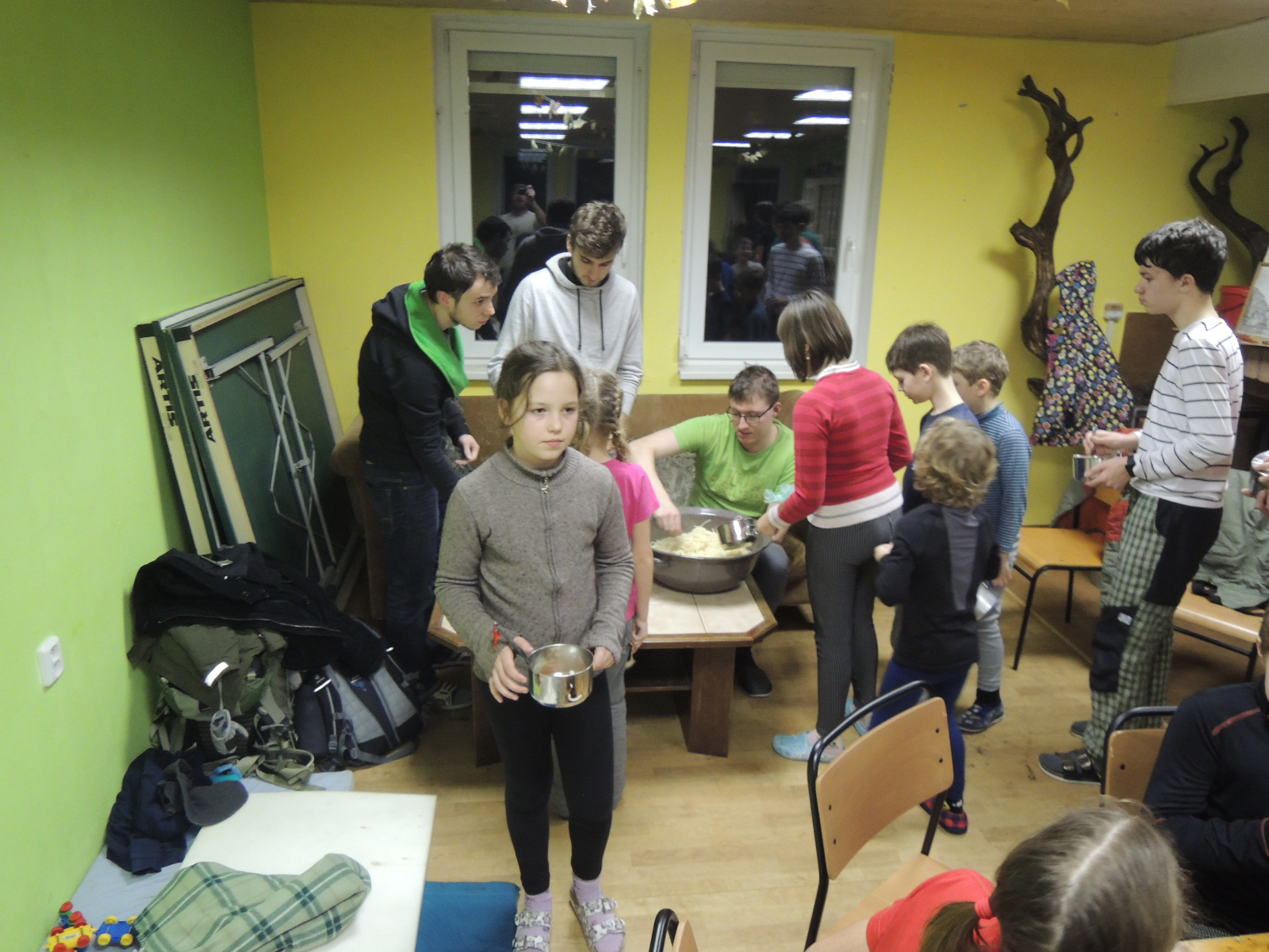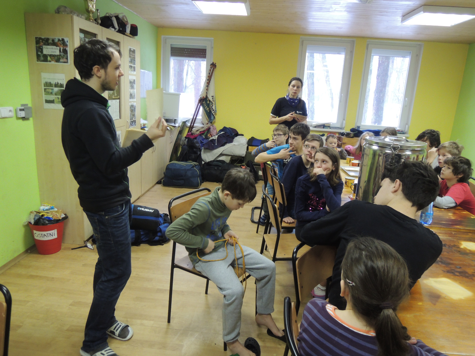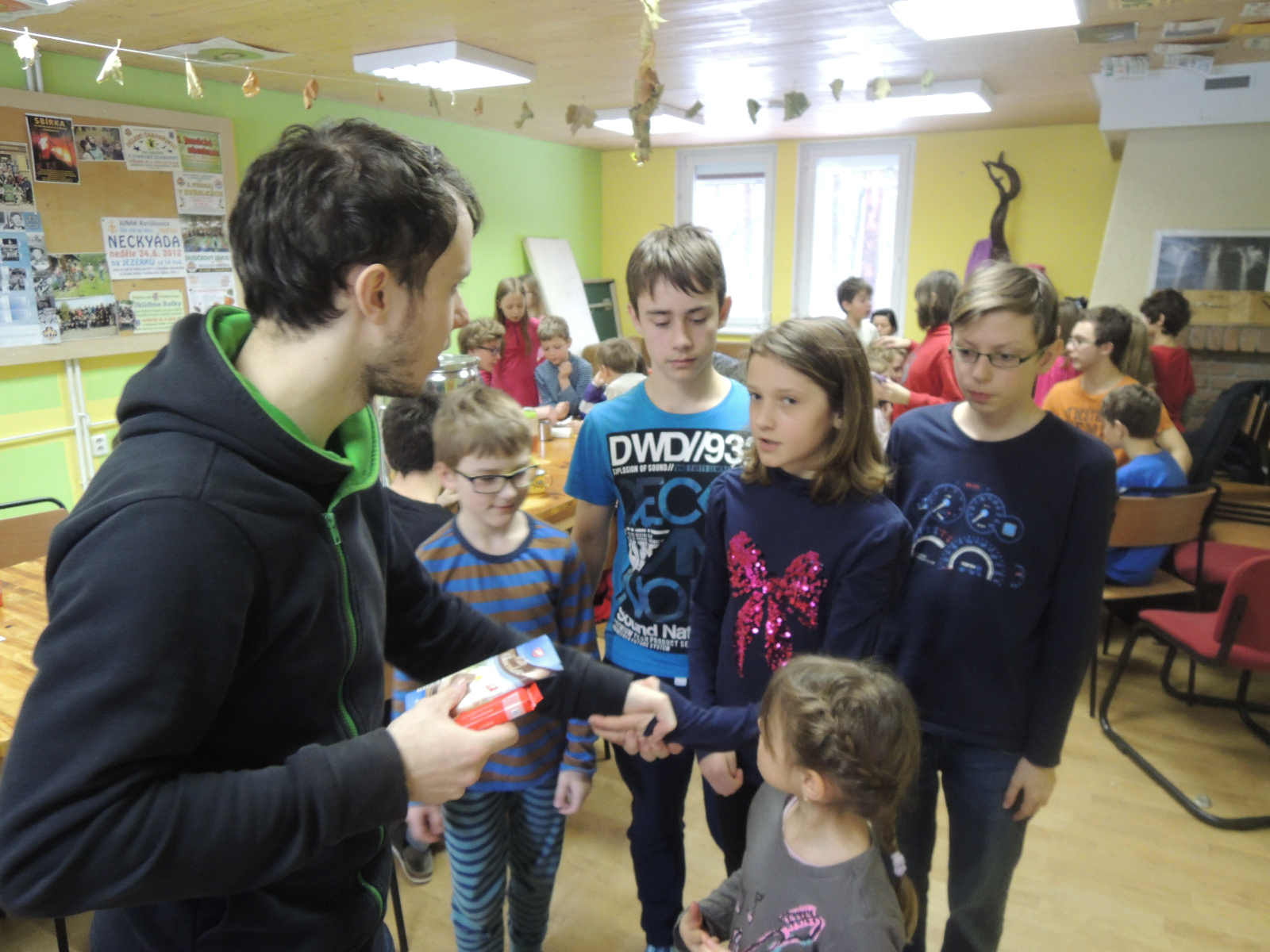 V týdnu před pololetními prázdninami napadlo skoro 20 čísel sněhu, což je v našich končinách dost rarita. Měl jsem trošku obavy, jak to zvládne náš autobusák, na druhé straně to skýtalo spoustu možností zimního programu. Obavy se ukázaly naštěstí jako liché. Pátek, 9:00. Houfec dětí a vedoucích přešlapuje před Boudou v závějích čerstvého sněhu. Někdo obdivuje iglů, které včera postavili Sršni na schůzce, jiní přemýšlí, zda nápor sněhu unese střecha Boudy, další se koulují. Chviličku po deváté je tu autobus. Bengi s Vítkem nakládají batohy do zavazadlového prostoru, Džany zapisuje do deníku každého, kdo se nalodí na palubu. Kolem čtvrt na deset celá posádka čítající 43 lidiček odjíždí směr Hodonín. První zastávkou na naší cestě do Ratíškovic je muzeum těžby nafty v Hodoníně. Dva průvodci si nás rozdělují na poloviny a vyprávějí nám o historii těžby v okolí Hodonína. Děckám se ale nejvíc líbí záchranářský oblek a pak taky akvárium plné vody s naftou. Na závěr si někteří kupují turistickou známku a jede se do města. V centru rozdělujeme třicet skautíků a skautic do šesti skupinek po pěti a hraje se zjišťovací hra. Úkolem je obejít pět zajímavých míst, na každém něco zjistit a zapsat to do křížovky. Vítězí ta skupina, která co nejrychleji přinese vyluštěnou tajenku. Není to zdaleka tak jednoduché, jak se zdá. Vítězí skupina, vedená Vítkem těsně před Filíšovci a skupinou, vedenou Danem Růžou. Rozchod - starší sami, mladší ve skupinách s vedoucími. Místní hranolkárna zažívá velký atak :-). V Ratíškovicích nám klubovnu předává místní skautka. Než se přisunou mladší členové od autobusu (jde se jen asi 100 metrů, ale je tu spousta sněhu a cesta je neprošlapaná), připravují Draci ležení. V horní velké klubovně budou Veverky, Tygři, Vlci, Sršni a Kudlanky. V menší klubovně budou bydlet Pumy a Draci. V dolní místnosti s krbem se usadí vedoucí a Svištíci. Všude rozkládáme matrace. Když se všichni zabydlí a posvačí, vybírá Renča peníze a Bengi jídlo. Vítek s Bengim se pak pouštějí do přípravy večeře, zatímco Brácha s Kiki, Hihňou, Křídlem a Babů jdou se všemi účastníky ven a staví se vysoké věže ze sněhu. A jde to skvěle, materiálu je hafel a lepí se jedna báseň! Zato je pak potřeba všechno oblečení usušit - to je odvrácená strana sněhové úrody a teploty nad nulou. Na večeři jsou špagety a před spaním zpíváme písničky na přání. V krbu praská oheň a nám je dobře. Sobotní ráno je mlhavé, pošmourné a nevlídné. A co bych to nenapsal rovnou, bude takový celý den. Nám to ale ani trochu nevadí. Zahajujeme den rozcvičkou před chatou a než si protáhneme těla, nachystají Džany s Pumama k snídani buchty a čaj. Po jídle balíme a vyrážíme na pověstmi opředený kopec Náklo. Taje a cesty občas připomínají potoky. Na kopci svačíme a Kiki organizuje tři kola velké koulovací bitvy. Někteří nadšenci taky loví kešky a Brácha studuje v mobilu zpáteční cestu, aby nás pak mohl vláčet poli a půlmetrovými závějemi :-). V Ratíškovicích vysíláme dvojici zkušených vyjednavačů do bazénu (chceme se jít koupat už dnes!), ostatní se sáčkují do klubovny, suší se a odpočívají. Pár kiláků, ale unavení jsme dost. Před večeří (uzený, brambory) je ještě turnaj v Dobble, ve finále Kloub poráží Honzu Jiráska. No a po večeři se jde plavčit! Je to super relax a většině lidiček ani trochu nevadí, že oblečení mají od Nákla stále ještě vlhké. Taky nás opouštějí tři braši: Vítek, Brácha a Bengi. Mizí na autobus a za všedními povinnostmi města... My si ale užíváme dál, po návratu z bazénu zpíváme a před spaním roztápíme opět krb. Všude vládne pohoda. Neděle. Budíček, individuální rozcvička pro Adama a Džekpota, snídaně, co ji přichystali Draci. No a po snídani poslední etapa, kterou familiárně a vůbec nevím proč Džany nazývá "Želvičky". Co vím ale jistě, že: a/ křížovky nejsou silnou stránkou žádného z druhooddíláků, b/trpělivost taky ne a c/starší označení pro WC, totiž 00, taky nikomu nic neříká. Přesto se nakonec většina k cíli propracuje a můžeme vyhlásit výsledky nejen etapy, nýbrž i celé celovýpravové hry na naftaře. Vítězí "Naftařská II. divize" ve složení Kloub, Maky, Anička, Žabka, Džekpot se ziskem 39 bodů. Druhé místo patří "Naftařské III. divizi" ve složení Vítek, Vojta, Keho, Najk, Míša. Ta získala bodů 36. A konečně třetí místo obsadila "Naftařská IV. divize" ve složení Filíš, Honza, Hrozča, Bělča, Dejv s 32 body. Samozřejmě, že sladkou odměnu si zaslouží (a taky dostává) všech šest divizí. Následuje úklid a balení, což je většinou nejkritičtější část akce. Dnes kupodivu nikoli, jde to celkem dobře a pohodově. Na oběd Fí s Renčou vaří gulášovou polívku a jen se po ní zapráší. A než přijede autobus, hrajeme tradiční "Městečko Palermo" s dvojí inovací: vraždící Coradem a Božím hněvem, jenž vyřazuje švindléře :-). Organizuje to Džany a dopadá to dost realisticky, totiž vítězí mafiáni na celé čáře. Ale než mafiáni stačí vítězství pořádně oslavit, je tu autobus a tak se suneme v plné polní na parking. Draci nakládají batohy, my s Džanym dokončujeme úklid, protože chodbu holt neuklidíte, dokud všichni nevypadnou :-). Zpět na Boudu jedeme přes Kyjov a vyprovází nás nádherné slunečné počasí. Teplota stoupá hodně nad nulu. Škoda, že takto krásně nebylo včera, když jsme šplhali na Náklo. Před Boudou nás již čekají zástupy rodičů. A co je přímo úžasné, plac pro zaparkování autobusu je volný. Tak příjemné překvape