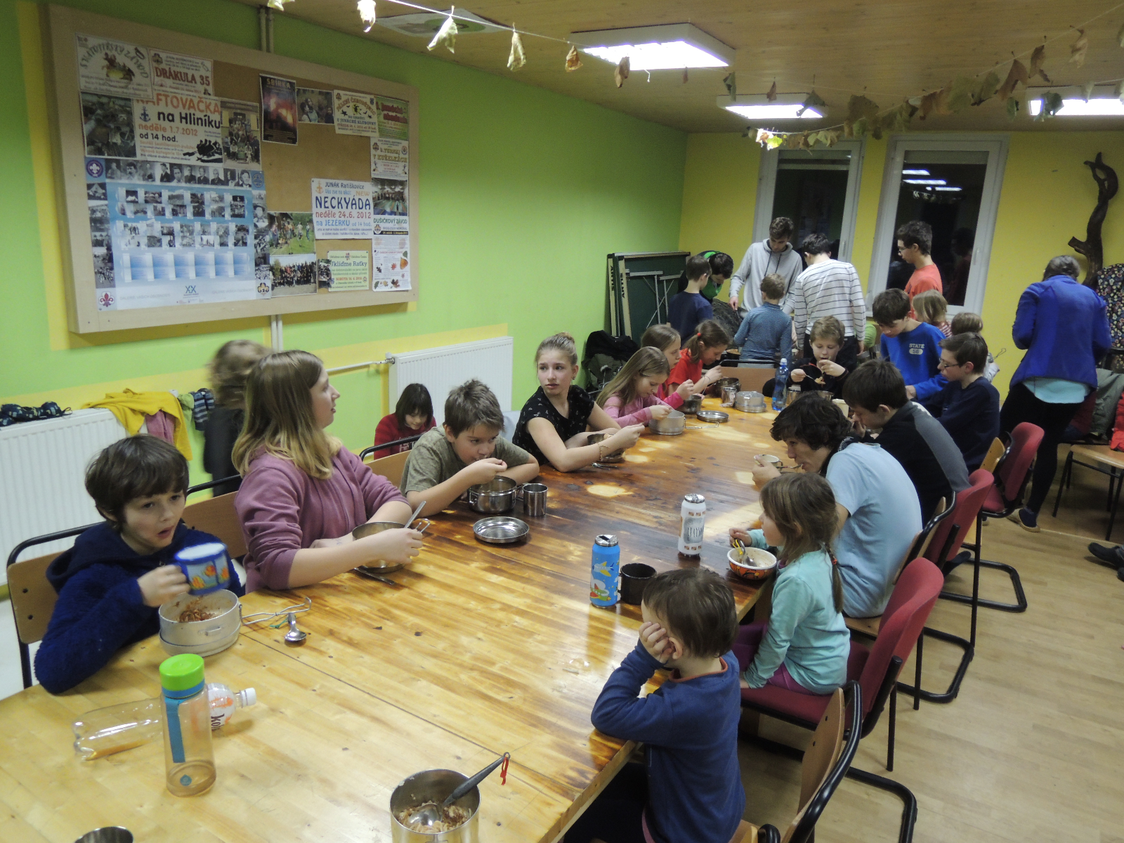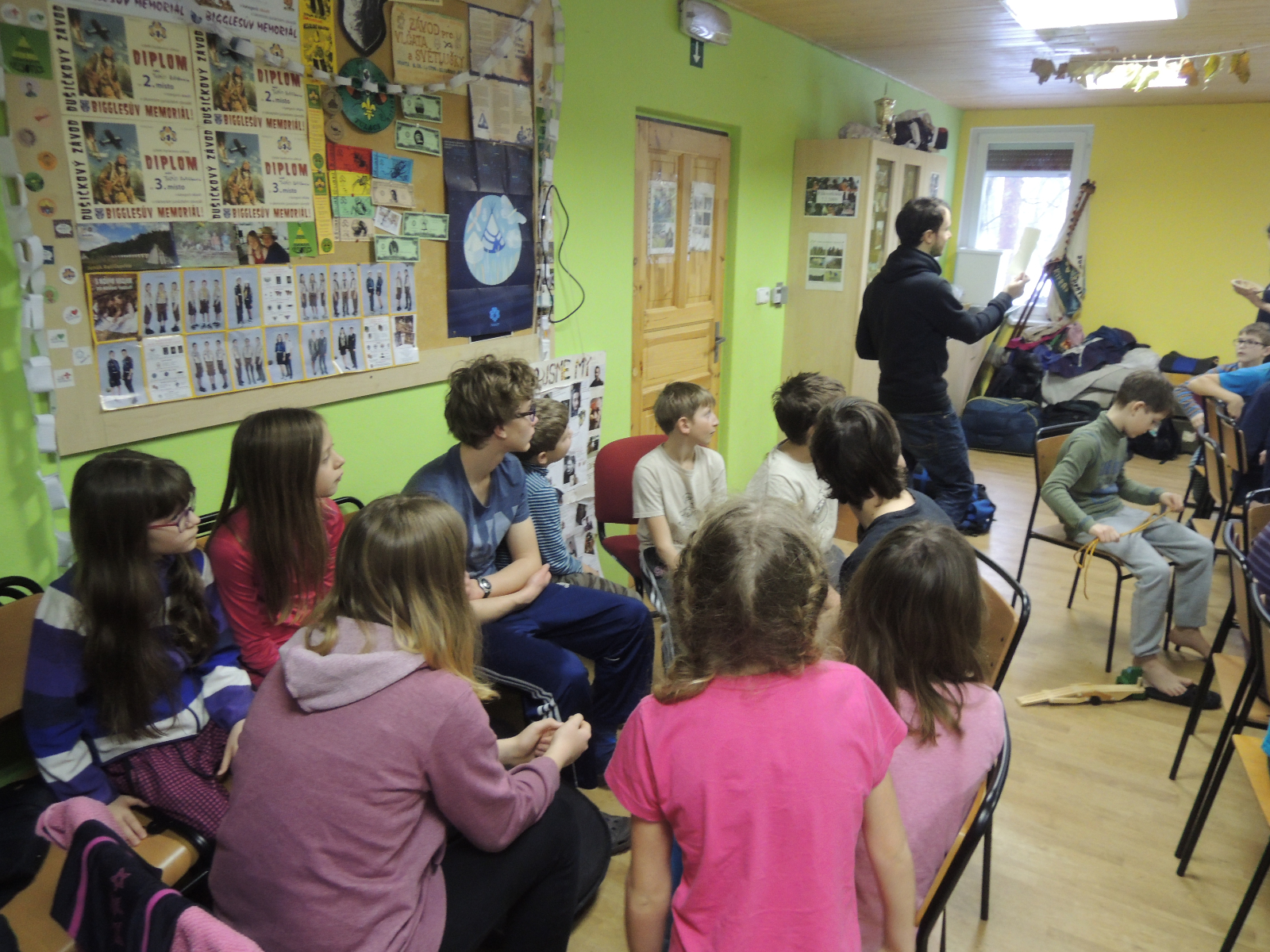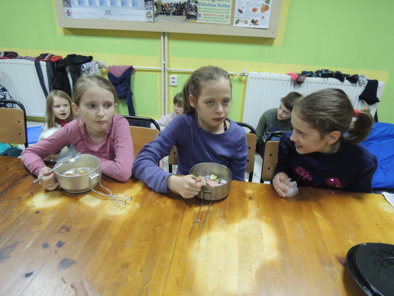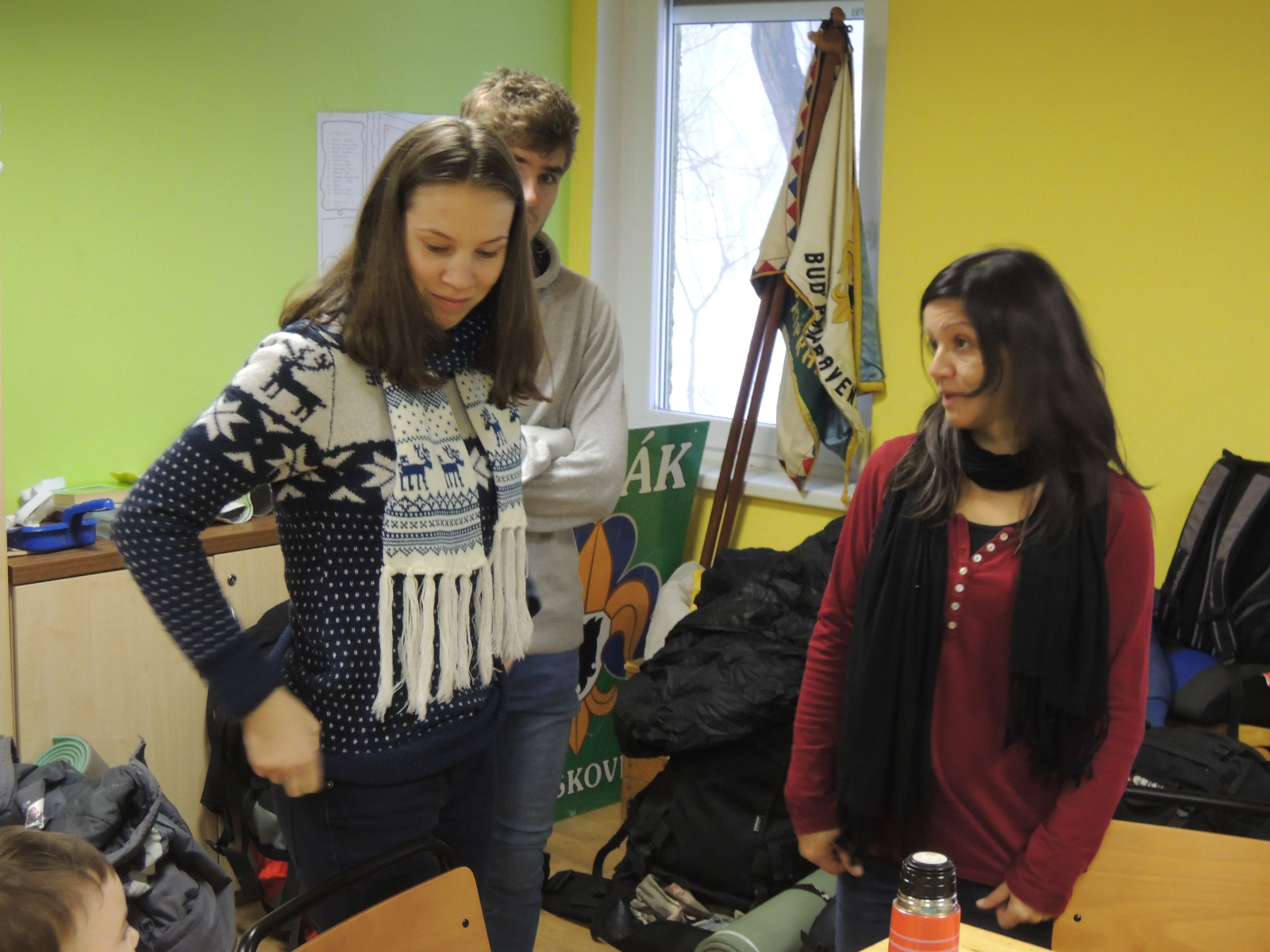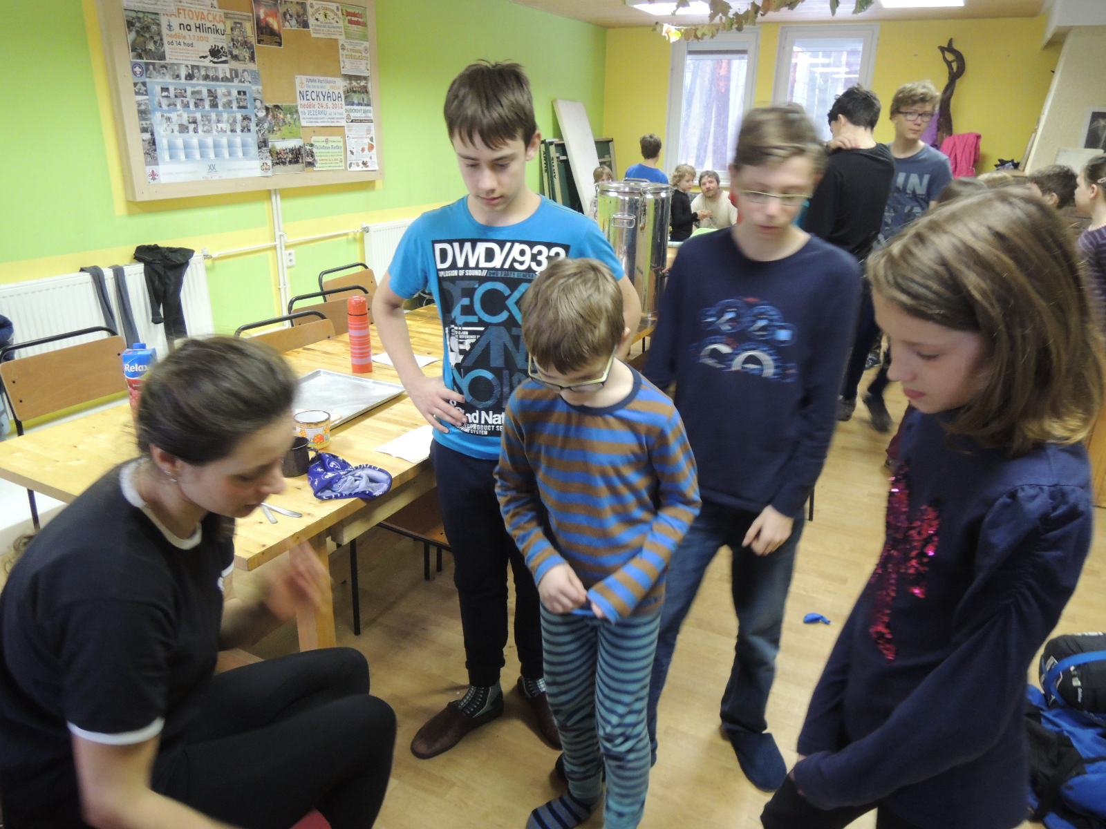 V týdnu před pololetními prázdninami napadlo skoro 20 čísel sněhu, což je v našich končinách dost rarita. Měl jsem trošku obavy, jak to zvládne náš autobusák, na druhé straně to skýtalo spoustu možností zimního programu. Obavy se ukázaly naštěstí jako liché. Pátek, 9:00. Houfec dětí a vedoucích přešlapuje před Boudou v závějích čerstvého sněhu. Někdo obdivuje iglů, které včera postavili Sršni na schůzce, jiní přemýšlí, zda nápor sněhu unese střecha Boudy, další se koulují. Chviličku po deváté je tu autobus. Bengi s Vítkem nakládají batohy do zavazadlového prostoru, Džany zapisuje do deníku každého, kdo se nalodí na palubu. Kolem čtvrt na deset celá posádka čítající 43 lidiček odjíždí směr Hodonín. První zastávkou na naší cestě do Ratíškovic je muzeum těžby nafty v Hodoníně. Dva průvodci si nás rozdělují na poloviny a vyprávějí nám o historii těžby v okolí Hodonína. Děckám se ale nejvíc líbí záchranářský oblek a pak taky akvárium plné vody s naftou. Na závěr si někteří kupují turistickou známku a jede se do města. V centru rozdělujeme třicet skautíků a skautic do šesti skupinek po pěti a hraje se zjišťovací hra. Úkolem je obejít pět zajímavých míst, na každém něco zjistit a zapsat to do křížovky. Vítězí ta skupina, která co nejrychleji přinese vyluštěnou tajenku. Není to zdaleka tak jednoduché, jak se zdá. Vítězí skupina, vedená Vítkem těsně před Filíšovci a skupinou, vedenou Danem Růžou. Rozchod - starší sami, mladší ve skupinách s vedoucími. Místní hranolkárna zažívá velký atak :-). V Ratíškovicích nám klubovnu předává místní skautka. Než se přisunou mladší členové od autobusu (jde se jen asi 100 metrů, ale je tu spousta sněhu a cesta je neprošlapaná), připravují Draci ležení. V horní velké klubovně budou Veverky, Tygři, Vlci, Sršni a Kudlanky. V menší klubovně budou bydlet Pumy a Draci. V dolní místnosti s krbem se usadí vedoucí a Svištíci. Všude rozkládáme matrace. Když se všichni zabydlí a posvačí, vybírá Renča peníze a Bengi jídlo. Vítek s Bengim se pak pouštějí do přípravy večeře, zatímco Brácha s Kiki, Hihňou, Křídlem a Babů jdou se všemi účastníky ven a staví se vysoké věže ze sněhu. A jde to skvěle, materiálu je hafel a lepí se jedna báseň! Zato je pak potřeba všechno oblečení usušit - to je odvrácená strana sněhové úrody a teploty nad nulou. Na večeři jsou špagety a před spaním zpíváme písničky na přání. V krbu praská oheň a nám je dobře. Sobotní ráno je mlhavé, pošmourné a nevlídné. A co bych to nenapsal rovnou, bude takový celý den. Nám to ale ani trochu nevadí. Zahajujeme den rozcvičkou před chatou a než si protáhneme těla, nachystají Džany s Pumama k snídani buchty a čaj. Po jídle balíme a vyrážíme na pověstmi opředený kopec Náklo. Taje a cesty občas připomínají potoky. Na kopci svačíme a Kiki organizuje tři kola velké koulovací bitvy. Někteří nadšenci taky loví kešky a Brácha studuje v mobilu zpáteční cestu, aby nás pak mohl vláčet poli a půlmetrovými závějemi :-). V Ratíškovicích vysíláme dvojici zkušených vyjednavačů do bazénu (chceme se jít koupat už dnes!), ostatní se sáčkují do klubovny, suší se a odpočívají. Pár kiláků, ale unavení jsme dost. Před večeří (uzený, brambory) je ještě turnaj v Dobble, ve finále Kloub poráží Honzu Jiráska. No a po večeři se jde plavčit! Je to super relax a většině lidiček ani trochu nevadí, že oblečení mají od Nákla stále ještě vlhké. Taky nás opouštějí tři braši: Vítek, Brácha a Bengi. Mizí na autobus a za všedními povinnostmi města... My si ale užíváme dál, po návratu z bazénu zpíváme a před spaním roztápíme opět krb. Všude vládne pohoda. Neděle. Budíček, individuální rozcvička pro Adama a Džekpota, snídaně, co ji přichystali Draci. No a po snídani poslední etapa, kterou familiárně a vůbec nevím proč Džany nazývá "Želvičky". Co vím ale jistě, že: a/ křížovky nejsou silnou stránkou žádného z druhooddíláků, b/trpělivost taky ne a c/starší označení pro WC, totiž 00, taky nikomu nic neříká. Přesto se nakonec většina k cíli propracuje a můžeme vyhlásit výsledky nejen etapy, nýbrž i celé celovýpravové hry na naftaře. Vítězí "Naftařská II. divize" ve složení Kloub, Maky, Anička, Žabka, Džekpot se ziskem 39 bodů. Druhé místo patří "Naftařské III. divizi" ve složení Vítek, Vojta, Keho, Najk, Míša. Ta získala bodů 36. A konečně třetí místo obsadila "Naftařská IV. divize" ve složení Filíš, Honza, Hrozča, Bělča, Dejv s 32 body. Samozřejmě, že sladkou odměnu si zaslouží (a taky dostává) všech šest divizí. Následuje úklid a balení, což je většinou nejkritičtější část akce. Dnes kupodivu nikoli, jde to celkem dobře a pohodově. Na oběd Fí s Renčou vaří gulášovou polívku a jen se po ní zapráší. A než přijede autobus, hrajeme tradiční "Městečko Palermo" s dvojí inovací: vraždící Coradem a Božím hněvem, jenž vyřazuje švindléře :-). Organizuje to Džany a dopadá to dost realisticky, totiž vítězí mafiáni na celé čáře. Ale než mafiáni stačí vítězství pořádně oslavit, je tu autobus a tak se suneme v plné polní na parking. Draci nakládají batohy, my s Džanym dokončujeme úklid, protože chodbu holt neuklidíte, dokud všichni nevypadnou :-). Zpět na Boudu jedeme přes Kyjov a vyprovází nás nádherné slunečné počasí. Teplota stoupá hodně nad nulu. Škoda, že takto krásně nebylo včera, když jsme šplhali na Náklo. Před Boudou nás již čekají zástupy rodičů. A co je přímo úžasné, plac pro zaparkování autobusu je volný. Tak příjemné překvape