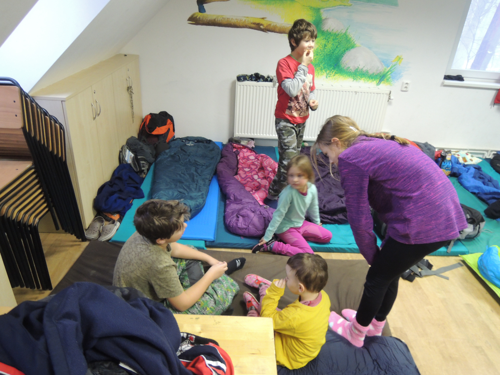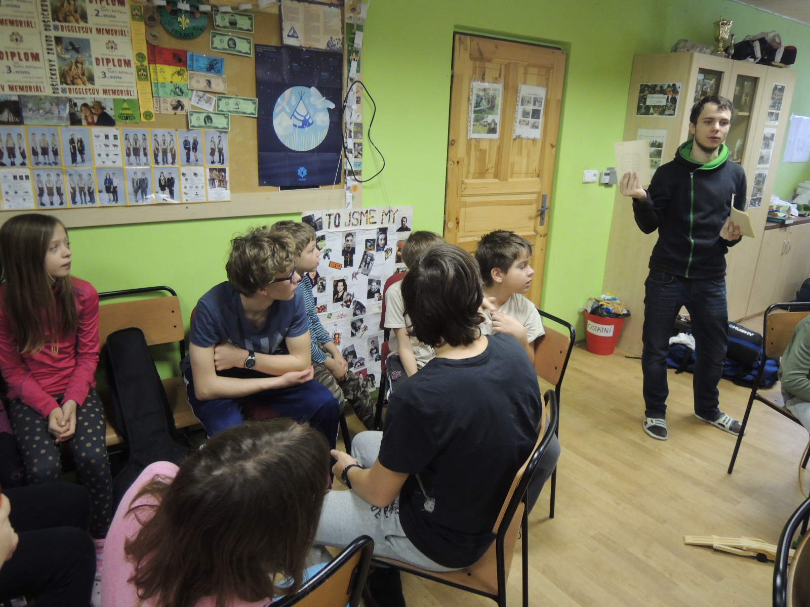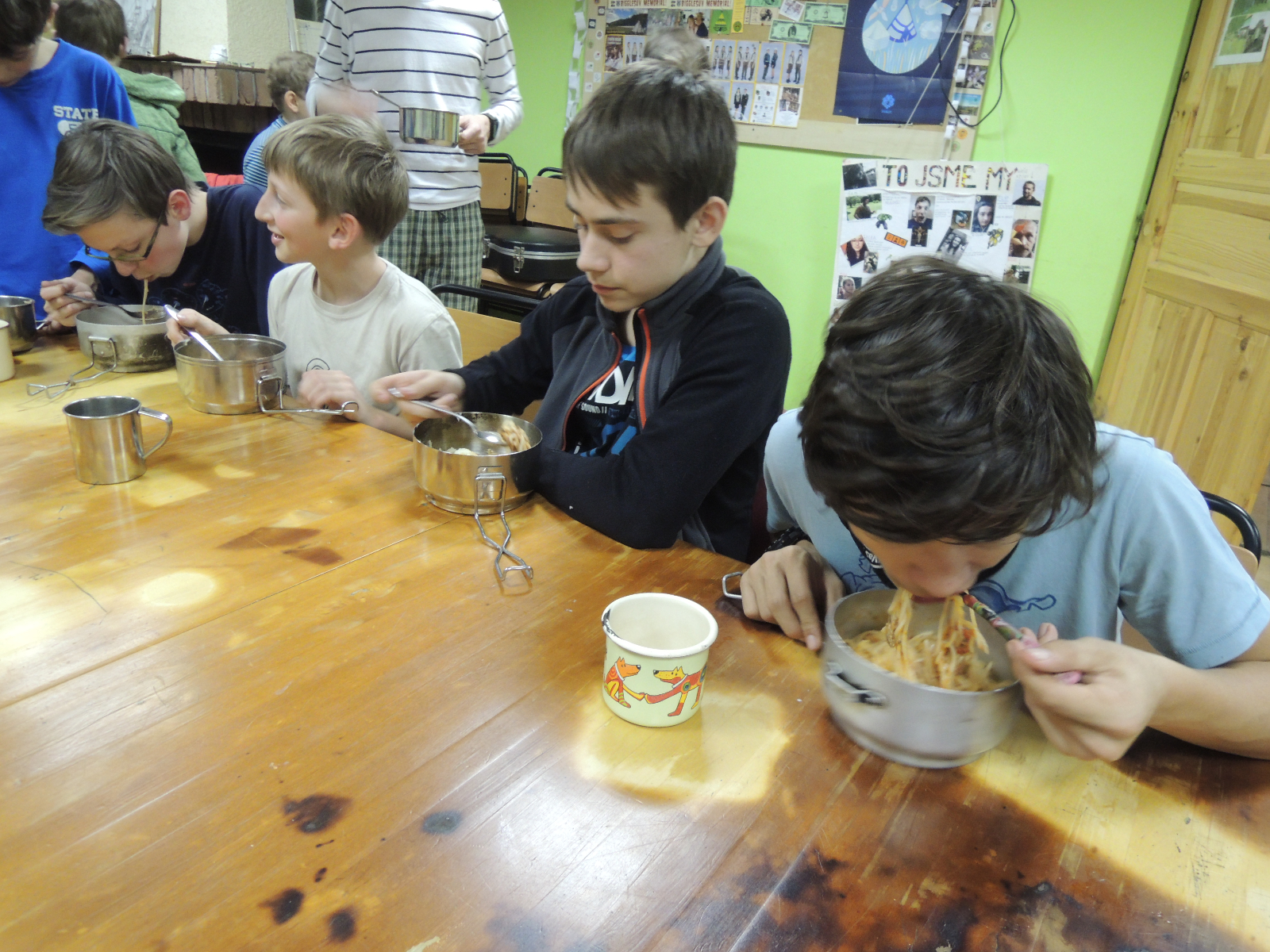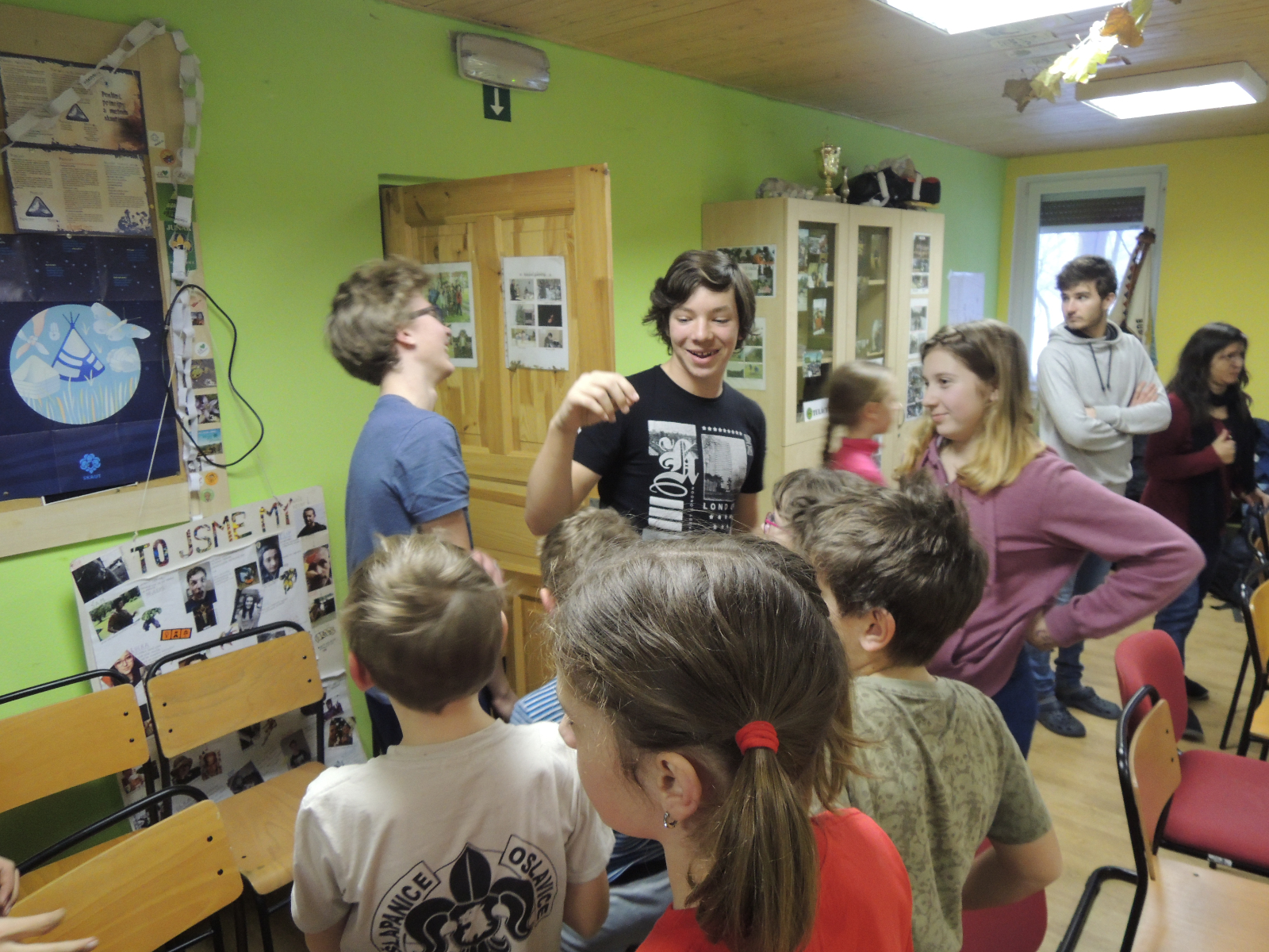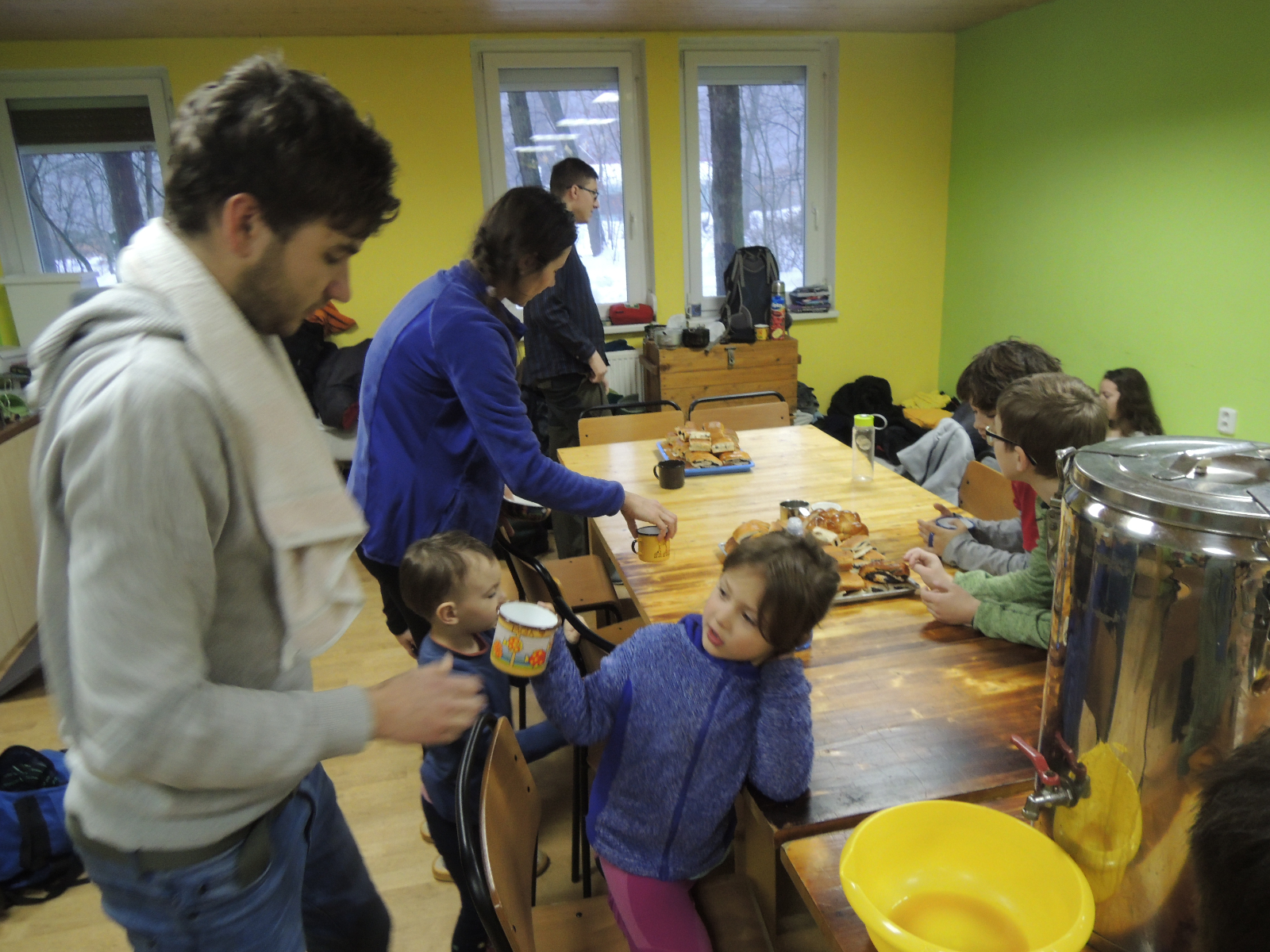 V týdnu před pololetními prázdninami napadlo skoro 20 čísel sněhu, což je v našich končinách dost rarita. Měl jsem trošku obavy, jak to zvládne náš autobusák, na druhé straně to skýtalo spoustu možností zimního programu. Obavy se ukázaly naštěstí jako liché. Pátek, 9:00. Houfec dětí a vedoucích přešlapuje před Boudou v závějích čerstvého sněhu. Někdo obdivuje iglů, které včera postavili Sršni na schůzce, jiní přemýšlí, zda nápor sněhu unese střecha Boudy, další se koulují. Chviličku po deváté je tu autobus. Bengi s Vítkem nakládají batohy do zavazadlového prostoru, Džany zapisuje do deníku každého, kdo se nalodí na palubu. Kolem čtvrt na deset celá posádka čítající 43 lidiček odjíždí směr Hodonín. První zastávkou na naší cestě do Ratíškovic je muzeum těžby nafty v Hodoníně. Dva průvodci si nás rozdělují na poloviny a vyprávějí nám o historii těžby v okolí Hodonína. Děckám se ale nejvíc líbí záchranářský oblek a pak taky akvárium plné vody s naftou. Na závěr si někteří kupují turistickou známku a jede se do města. V centru rozdělujeme třicet skautíků a skautic do šesti skupinek po pěti a hraje se zjišťovací hra. Úkolem je obejít pět zajímavých míst, na každém něco zjistit a zapsat to do křížovky. Vítězí ta skupina, která co nejrychleji přinese vyluštěnou tajenku. Není to zdaleka tak jednoduché, jak se zdá. Vítězí skupina, vedená Vítkem těsně před Filíšovci a skupinou, vedenou Danem Růžou. Rozchod - starší sami, mladší ve skupinách s vedoucími. Místní hranolkárna zažívá velký atak :-). V Ratíškovicích nám klubovnu předává místní skautka. Než se přisunou mladší členové od autobusu (jde se jen asi 100 metrů, ale je tu spousta sněhu a cesta je neprošlapaná), připravují Draci ležení. V horní velké klubovně budou Veverky, Tygři, Vlci, Sršni a Kudlanky. V menší klubovně budou bydlet Pumy a Draci. V dolní místnosti s krbem se usadí vedoucí a Svištíci. Všude rozkládáme matrace. Když se všichni zabydlí a posvačí, vybírá Renča peníze a Bengi jídlo. Vítek s Bengim se pak pouštějí do přípravy večeře, zatímco Brácha s Kiki, Hihňou, Křídlem a Babů jdou se všemi účastníky ven a staví se vysoké věže ze sněhu. A jde to skvěle, materiálu je hafel a lepí se jedna báseň! Zato je pak potřeba všechno oblečení usušit - to je odvrácená strana sněhové úrody a teploty nad nulou. Na večeři jsou špagety a před spaním zpíváme písničky na přání. V krbu praská oheň a nám je dobře. Sobotní ráno je mlhavé, pošmourné a nevlídné. A co bych to nenapsal rovnou, bude takový celý den. Nám to ale ani trochu nevadí. Zahajujeme den rozcvičkou před chatou a než si protáhneme těla, nachystají Džany s Pumama k snídani buchty a čaj. Po jídle balíme a vyrážíme na pověstmi opředený kopec Náklo. Taje a cesty občas připomínají potoky. Na kopci svačíme a Kiki organizuje tři kola velké koulovací bitvy. Někteří nadšenci taky loví kešky a Brácha studuje v mobilu zpáteční cestu, aby nás pak mohl vláčet poli a půlmetrovými závějemi :-). V Ratíškovicích vysíláme dvojici zkušených vyjednavačů do bazénu (chceme se jít koupat už dnes!), ostatní se sáčkují do klubovny, suší se a odpočívají. Pár kiláků, ale unavení jsme dost. Před večeří (uzený, brambory) je ještě turnaj v Dobble, ve finále Kloub poráží Honzu Jiráska. No a po večeři se jde plavčit! Je to super relax a většině lidiček ani trochu nevadí, že oblečení mají od Nákla stále ještě vlhké. Taky nás opouštějí tři braši: Vítek, Brácha a Bengi. Mizí na autobus a za všedními povinnostmi města... My si ale užíváme dál, po návratu z bazénu zpíváme a před spaním roztápíme opět krb. Všude vládne pohoda. Neděle. Budíček, individuální rozcvička pro Adama a Džekpota, snídaně, co ji přichystali Draci. No a po snídani poslední etapa, kterou familiárně a vůbec nevím proč Džany nazývá "Želvičky". Co vím ale jistě, že: a/ křížovky nejsou silnou stránkou žádného z druhooddíláků, b/trpělivost taky ne a c/starší označení pro WC, totiž 00, taky nikomu nic neříká. Přesto se nakonec většina k cíli propracuje a můžeme vyhlásit výsledky nejen etapy, nýbrž i celé celovýpravové hry na naftaře. Vítězí "Naftařská II. divize" ve složení Kloub, Maky, Anička, Žabka, Džekpot se ziskem 39 bodů. Druhé místo patří "Naftařské III. divizi" ve složení Vítek, Vojta, Keho, Najk, Míša. Ta získala bodů 36. A konečně třetí místo obsadila "Naftařská IV. divize" ve složení Filíš, Honza, Hrozča, Bělča, Dejv s 32 body. Samozřejmě, že sladkou odměnu si zaslouží (a taky dostává) všech šest divizí. Následuje úklid a balení, což je většinou nejkritičtější část akce. Dnes kupodivu nikoli, jde to celkem dobře a pohodově. Na oběd Fí s Renčou vaří gulášovou polívku a jen se po ní zapráší. A než přijede autobus, hrajeme tradiční "Městečko Palermo" s dvojí inovací: vraždící Coradem a Božím hněvem, jenž vyřazuje švindléře :-). Organizuje to Džany a dopadá to dost realisticky, totiž vítězí mafiáni na celé čáře. Ale než mafiáni stačí vítězství pořádně oslavit, je tu autobus a tak se suneme v plné polní na parking. Draci nakládají batohy, my s Džanym dokončujeme úklid, protože chodbu holt neuklidíte, dokud všichni nevypadnou :-). Zpět na Boudu jedeme přes Kyjov a vyprovází nás nádherné slunečné počasí. Teplota stoupá hodně nad nulu. Škoda, že takto krásně nebylo včera, když jsme šplhali na Náklo. Před Boudou nás již čekají zástupy rodičů. A co je přímo úžasné, plac pro zaparkování autobusu je volný. Tak příjemné překvape