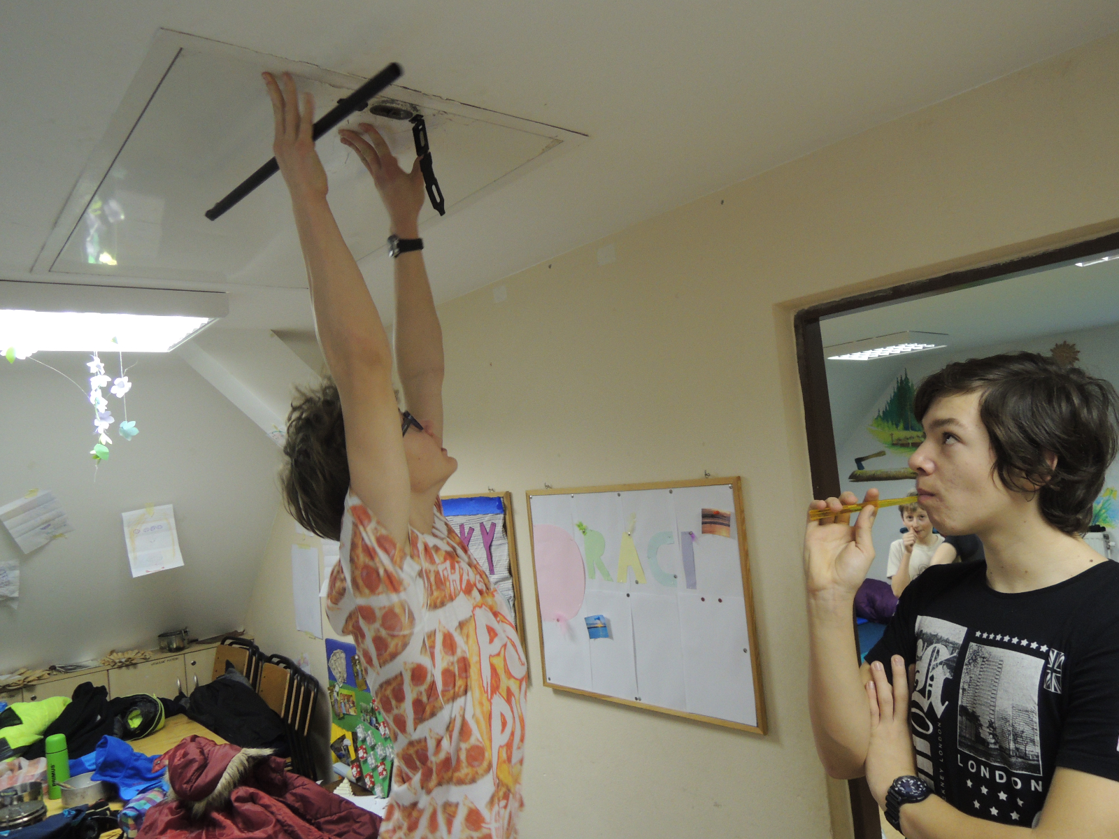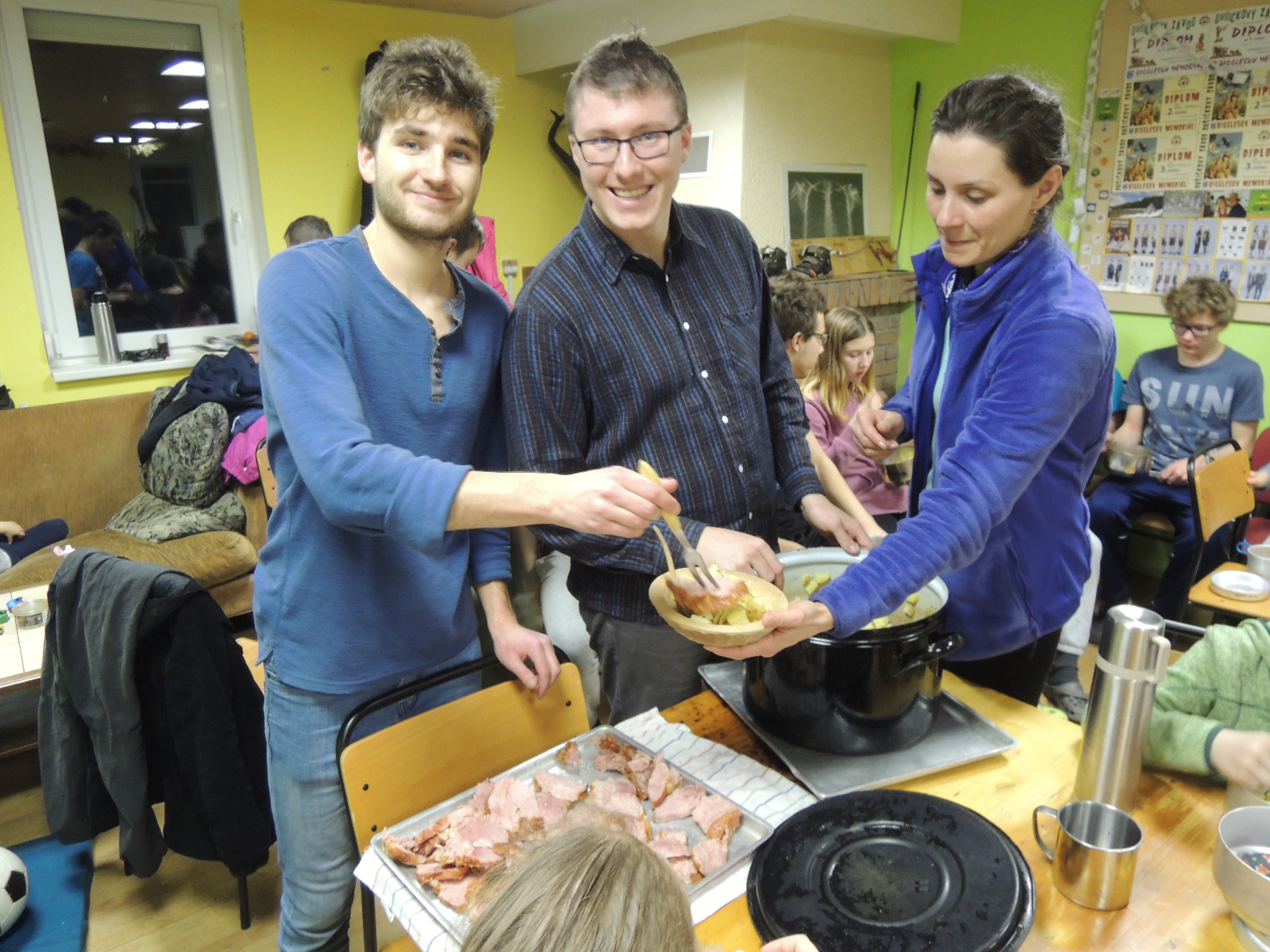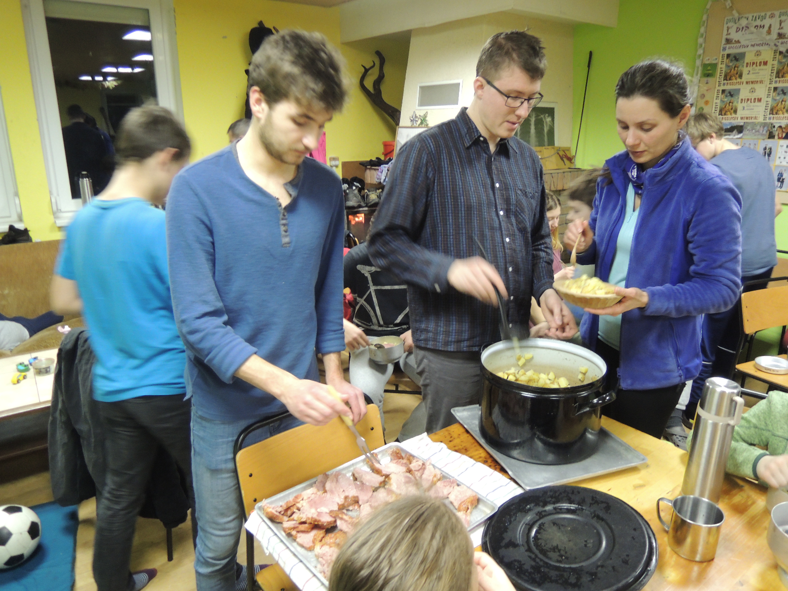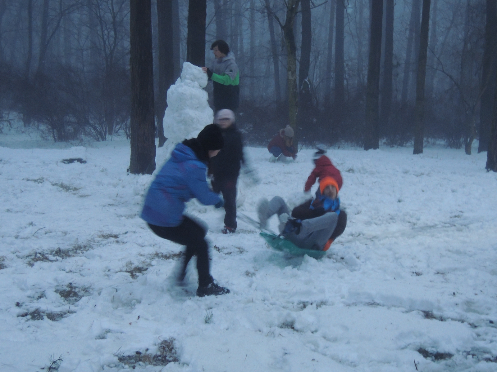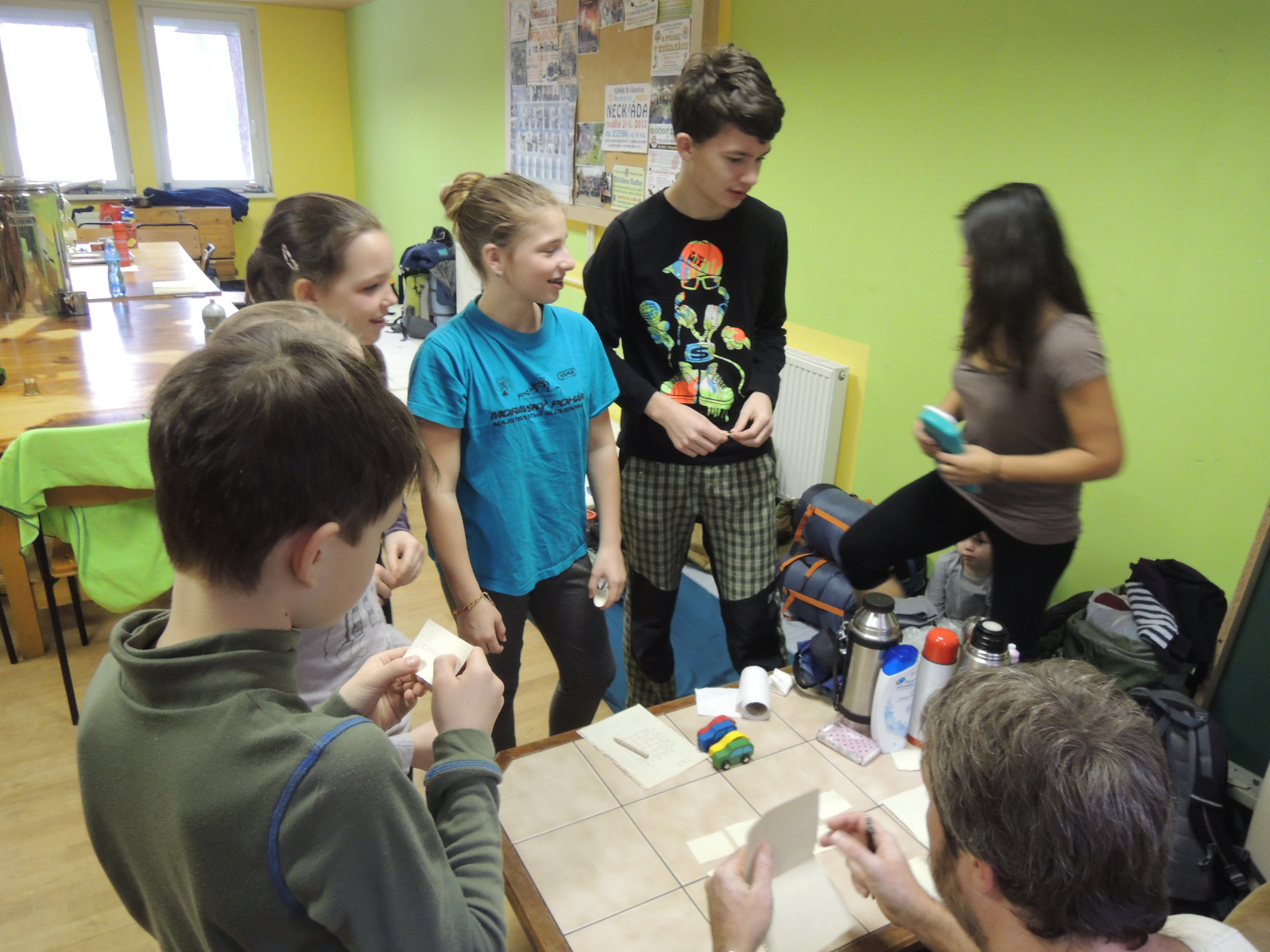 V týdnu před pololetními prázdninami napadlo skoro 20 čísel sněhu, což je v našich končinách dost rarita. Měl jsem trošku obavy, jak to zvládne náš autobusák, na druhé straně to skýtalo spoustu možností zimního programu. Obavy se ukázaly naštěstí jako liché. Pátek, 9:00. Houfec dětí a vedoucích přešlapuje před Boudou v závějích čerstvého sněhu. Někdo obdivuje iglů, které včera postavili Sršni na schůzce, jiní přemýšlí, zda nápor sněhu unese střecha Boudy, další se koulují. Chviličku po deváté je tu autobus. Bengi s Vítkem nakládají batohy do zavazadlového prostoru, Džany zapisuje do deníku každého, kdo se nalodí na palubu. Kolem čtvrt na deset celá posádka čítající 43 lidiček odjíždí směr Hodonín. První zastávkou na naší cestě do Ratíškovic je muzeum těžby nafty v Hodoníně. Dva průvodci si nás rozdělují na poloviny a vyprávějí nám o historii těžby v okolí Hodonína. Děckám se ale nejvíc líbí záchranářský oblek a pak taky akvárium plné vody s naftou. Na závěr si někteří kupují turistickou známku a jede se do města. V centru rozdělujeme třicet skautíků a skautic do šesti skupinek po pěti a hraje se zjišťovací hra. Úkolem je obejít pět zajímavých míst, na každém něco zjistit a zapsat to do křížovky. Vítězí ta skupina, která co nejrychleji přinese vyluštěnou tajenku. Není to zdaleka tak jednoduché, jak se zdá. Vítězí skupina, vedená Vítkem těsně před Filíšovci a skupinou, vedenou Danem Růžou. Rozchod - starší sami, mladší ve skupinách s vedoucími. Místní hranolkárna zažívá velký atak :-). V Ratíškovicích nám klubovnu předává místní skautka. Než se přisunou mladší členové od autobusu (jde se jen asi 100 metrů, ale je tu spousta sněhu a cesta je neprošlapaná), připravují Draci ležení. V horní velké klubovně budou Veverky, Tygři, Vlci, Sršni a Kudlanky. V menší klubovně budou bydlet Pumy a Draci. V dolní místnosti s krbem se usadí vedoucí a Svištíci. Všude rozkládáme matrace. Když se všichni zabydlí a posvačí, vybírá Renča peníze a Bengi jídlo. Vítek s Bengim se pak pouštějí do přípravy večeře, zatímco Brácha s Kiki, Hihňou, Křídlem a Babů jdou se všemi účastníky ven a staví se vysoké věže ze sněhu. A jde to skvěle, materiálu je hafel a lepí se jedna báseň! Zato je pak potřeba všechno oblečení usušit - to je odvrácená strana sněhové úrody a teploty nad nulou. Na večeři jsou špagety a před spaním zpíváme písničky na přání. V krbu praská oheň a nám je dobře. Sobotní ráno je mlhavé, pošmourné a nevlídné. A co bych to nenapsal rovnou, bude takový celý den. Nám to ale ani trochu nevadí. Zahajujeme den rozcvičkou před chatou a než si protáhneme těla, nachystají Džany s Pumama k snídani buchty a čaj. Po jídle balíme a vyrážíme na pověstmi opředený kopec Náklo. Taje a cesty občas připomínají potoky. Na kopci svačíme a Kiki organizuje tři kola velké koulovací bitvy. Někteří nadšenci taky loví kešky a Brácha studuje v mobilu zpáteční cestu, aby nás pak mohl vláčet poli a půlmetrovými závějemi :-). V Ratíškovicích vysíláme dvojici zkušených vyjednavačů do bazénu (chceme se jít koupat už dnes!), ostatní se sáčkují do klubovny, suší se a odpočívají. Pár kiláků, ale unavení jsme dost. Před večeří (uzený, brambory) je ještě turnaj v Dobble, ve finále Kloub poráží Honzu Jiráska. No a po večeři se jde plavčit! Je to super relax a většině lidiček ani trochu nevadí, že oblečení mají od Nákla stále ještě vlhké. Taky nás opouštějí tři braši: Vítek, Brácha a Bengi. Mizí na autobus a za všedními povinnostmi města... My si ale užíváme dál, po návratu z bazénu zpíváme a před spaním roztápíme opět krb. Všude vládne pohoda. Neděle. Budíček, individuální rozcvička pro Adama a Džekpota, snídaně, co ji přichystali Draci. No a po snídani poslední etapa, kterou familiárně a vůbec nevím proč Džany nazývá "Želvičky". Co vím ale jistě, že: a/ křížovky nejsou silnou stránkou žádného z druhooddíláků, b/trpělivost taky ne a c/starší označení pro WC, totiž 00, taky nikomu nic neříká. Přesto se nakonec většina k cíli propracuje a můžeme vyhlásit výsledky nejen etapy, nýbrž i celé celovýpravové hry na naftaře. Vítězí "Naftařská II. divize" ve složení Kloub, Maky, Anička, Žabka, Džekpot se ziskem 39 bodů. Druhé místo patří "Naftařské III. divizi" ve složení Vítek, Vojta, Keho, Najk, Míša. Ta získala bodů 36. A konečně třetí místo obsadila "Naftařská IV. divize" ve složení Filíš, Honza, Hrozča, Bělča, Dejv s 32 body. Samozřejmě, že sladkou odměnu si zaslouží (a taky dostává) všech šest divizí. Následuje úklid a balení, což je většinou nejkritičtější část akce. Dnes kupodivu nikoli, jde to celkem dobře a pohodově. Na oběd Fí s Renčou vaří gulášovou polívku a jen se po ní zapráší. A než přijede autobus, hrajeme tradiční "Městečko Palermo" s dvojí inovací: vraždící Coradem a Božím hněvem, jenž vyřazuje švindléře :-). Organizuje to Džany a dopadá to dost realisticky, totiž vítězí mafiáni na celé čáře. Ale než mafiáni stačí vítězství pořádně oslavit, je tu autobus a tak se suneme v plné polní na parking. Draci nakládají batohy, my s Džanym dokončujeme úklid, protože chodbu holt neuklidíte, dokud všichni nevypadnou :-). Zpět na Boudu jedeme přes Kyjov a vyprovází nás nádherné slunečné počasí. Teplota stoupá hodně nad nulu. Škoda, že takto krásně nebylo včera, když jsme šplhali na Náklo. Před Boudou nás již čekají zástupy rodičů. A co je přímo úžasné, plac pro zaparkování autobusu je volný. Tak příjemné překvape