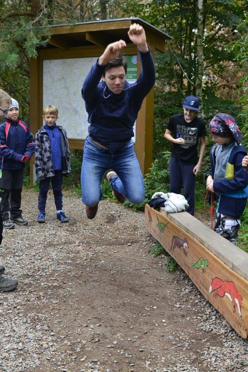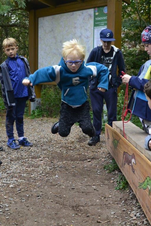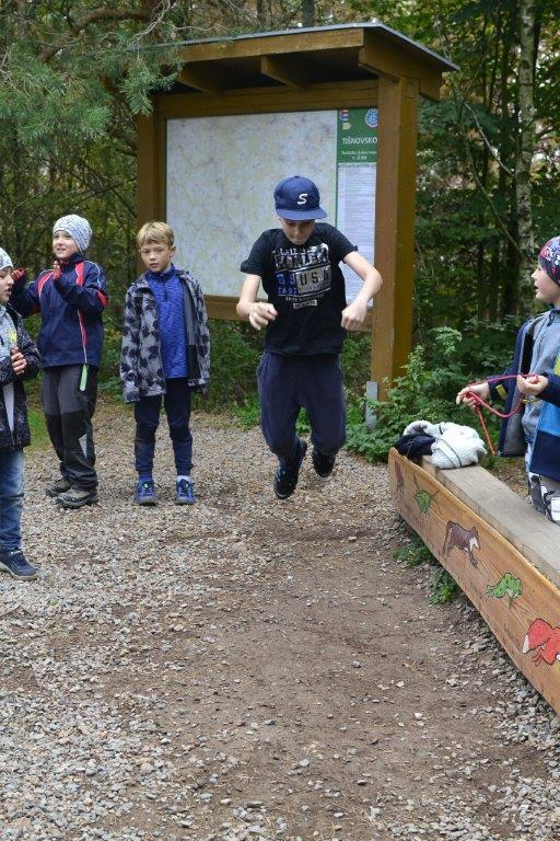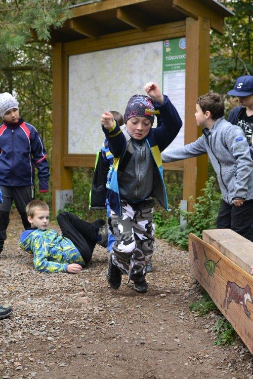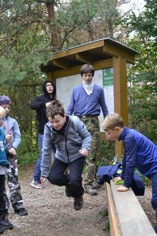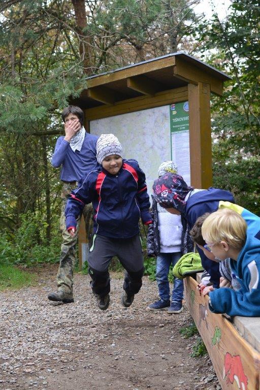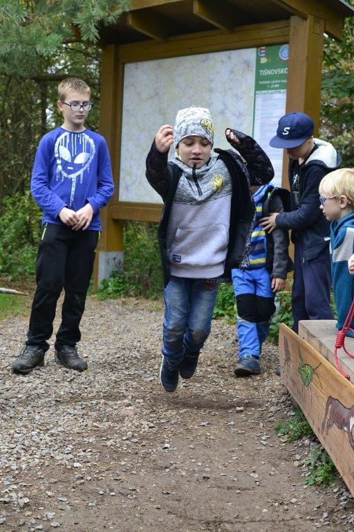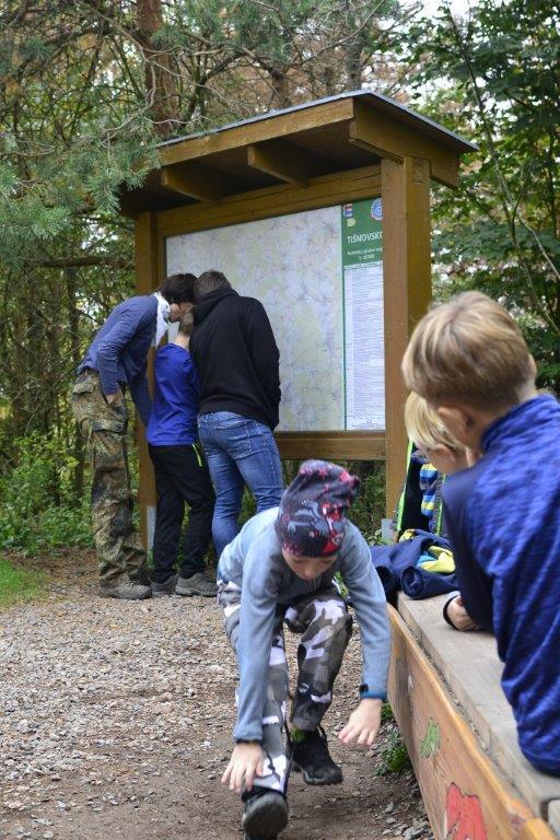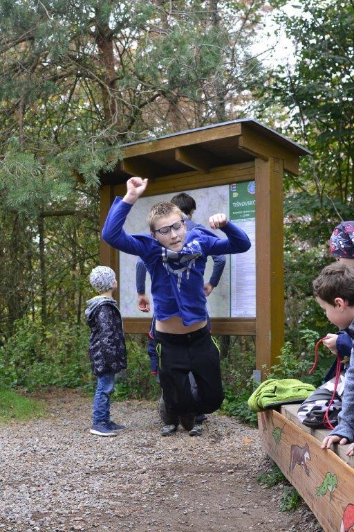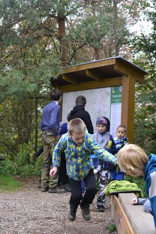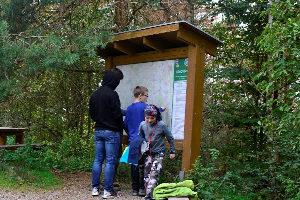Dne 19. 10. 2019 jsme se ráno sešli na zastávce trolejbusu. Dojeli jsme na Krejčího, odtud autobusem do Židenic, a nakonec vlakem až na zastávku Hradčany u Tišnova. Zde jsme vystoupili a vyrazili na rozhlednu. Ta leží na stejnojmenném kopci nad Tišnovem. Během asi hodinového výstupu jsme hráli bombu, a ještě jsme se stihli zastavit na dětském hřišti. Cesta nahoru utekla rychle, a než jsme se nadáli, stáli jsme u rozhledny. Zde jsme si dali závody do schodů, celkem asi čtyři patra a dole potom vyzkoušeli, kdo doskočí snožmo nejdál. Poté jsme se nasvačili a vyrazili dolů. V Tišnově jsme si ještě skočili do cukrárny na nějakou tu sladkost, a pak nás čekala jen cesta zpět.
