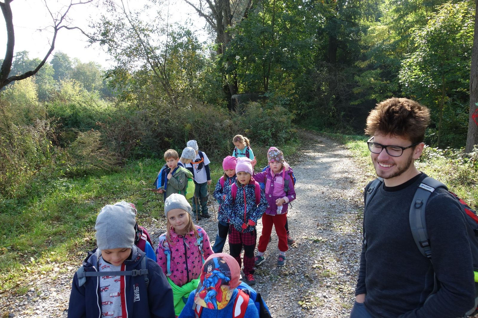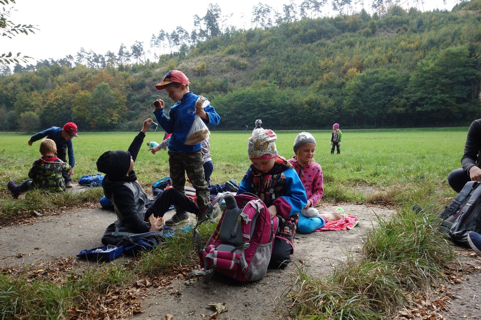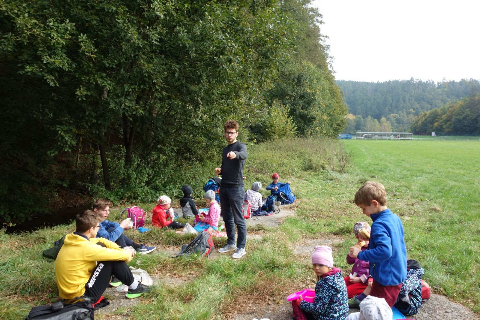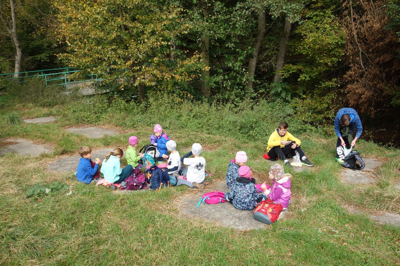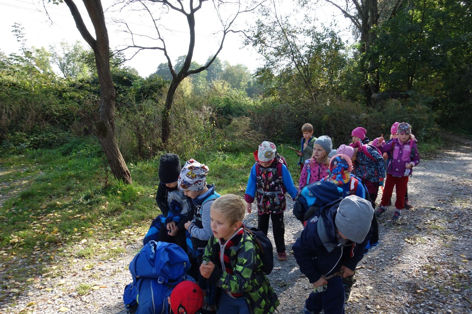 Po prvotních zmatcích a adaptaci na počasí, protože bylo opravdu krásně, jsme nasadili slušné tempo a přes pauzu na pití v Bedřichovicích jsme se dostali do Podolí, kde se všichni nasvačili. Pokus o hru na slepou bábu vzal rychle za své, jelikož všichni chtěli být slepá bába, takže jsme se rozhodli pokračovat proti proudu Říčky a okolo Zukalova mlýna až za Eldorado, kde byl takzvaný cíl naší výpravy. Kolem půl druhé hodiny odpolední si na louce uprostřed Mariánského údolí všichni snědli své obědy z domova a odpočinuli si. Ovšem ne na dlouho, protože jen co se doobědvalo, byli všichni opět plní energie a začali pobíhat po louce. Po chvíli jsme zorganizovali nejoblíbenější hru v naší družince, mrazíka, kterou by tam děti nejraději hrály až do večera. Aby se příliš neunavily a zvládly cestu zpátky, tak jsme mrazíka ukončili, hodili batohy na záda a vyrazili zpátky.