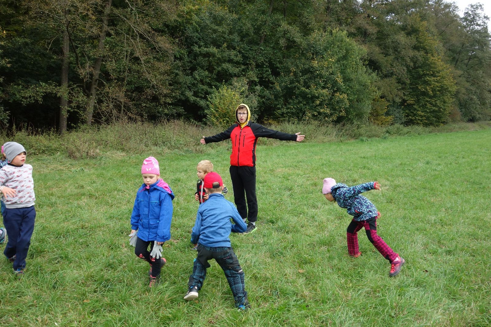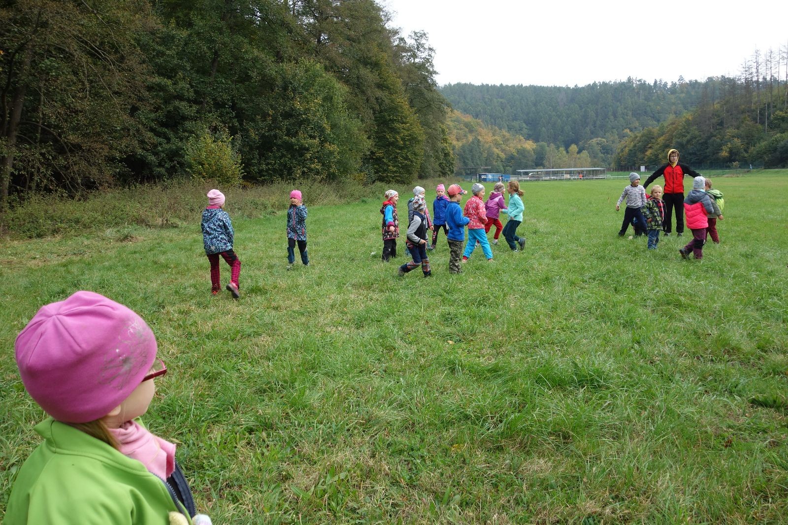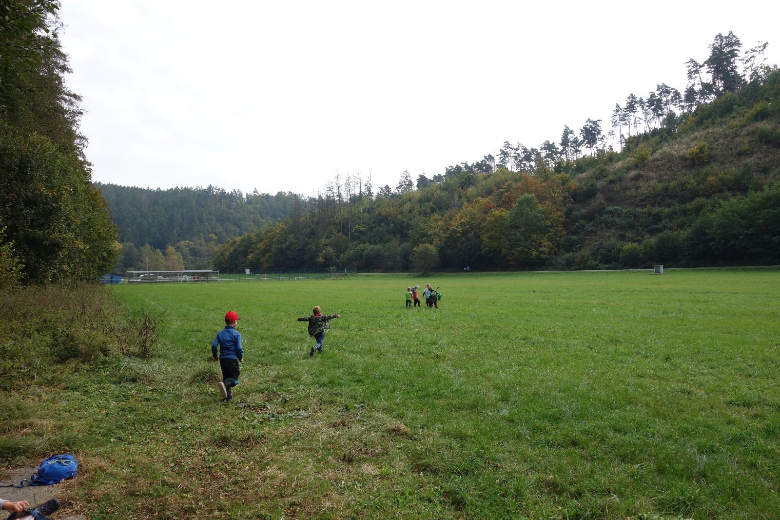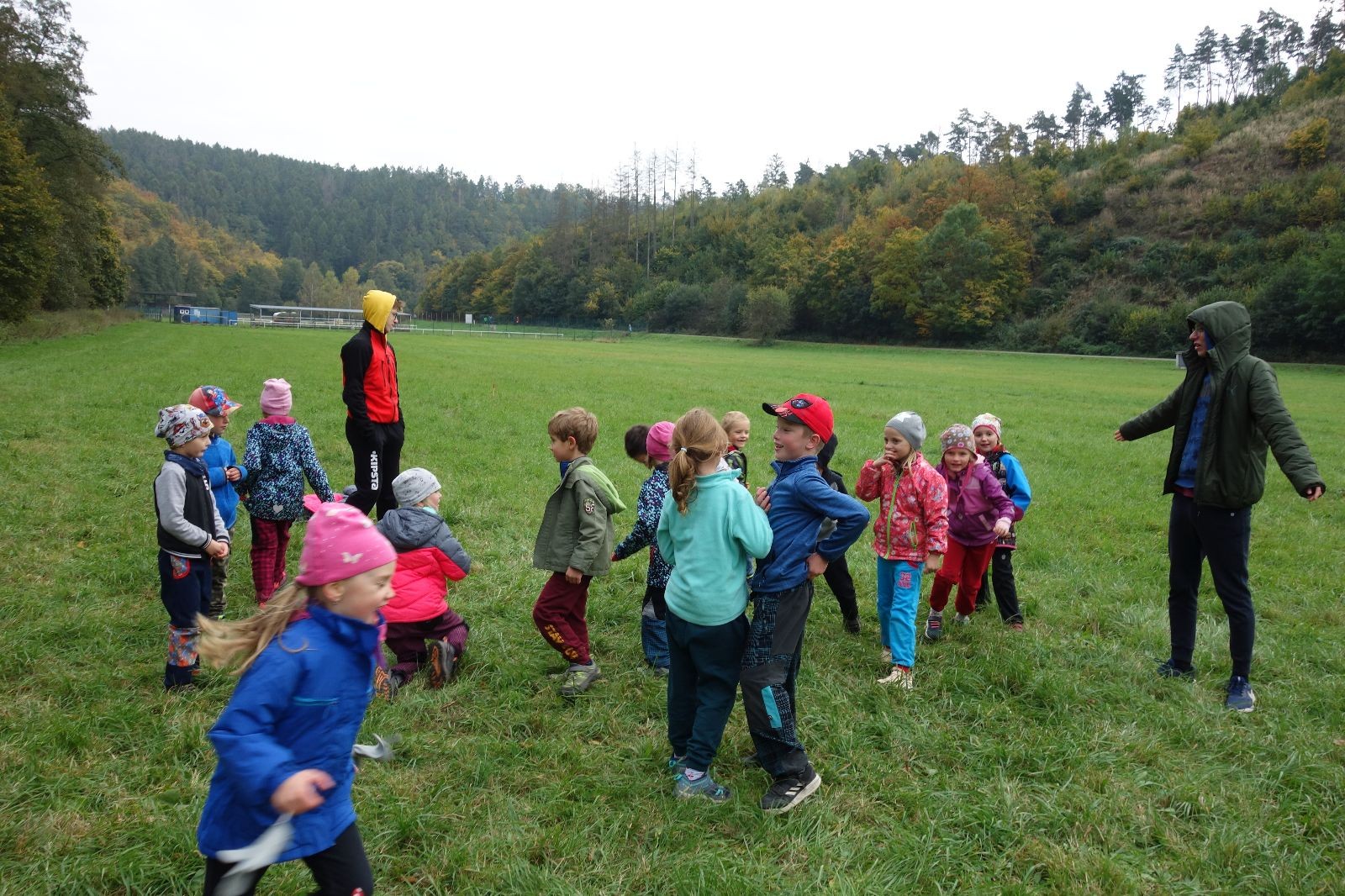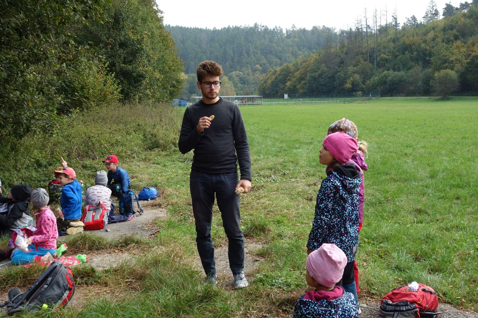 Po prvotních zmatcích a adaptaci na počasí, protože bylo opravdu krásně, jsme nasadili slušné tempo a přes pauzu na pití v Bedřichovicích jsme se dostali do Podolí, kde se všichni nasvačili. Pokus o hru na slepou bábu vzal rychle za své, jelikož všichni chtěli být slepá bába, takže jsme se rozhodli pokračovat proti proudu Říčky a okolo Zukalova mlýna až za Eldorado, kde byl takzvaný cíl naší výpravy. Kolem půl druhé hodiny odpolední si na louce uprostřed Mariánského údolí všichni snědli své obědy z domova a odpočinuli si. Ovšem ne na dlouho, protože jen co se doobědvalo, byli všichni opět plní energie a začali pobíhat po louce. Po chvíli jsme zorganizovali nejoblíbenější hru v naší družince, mrazíka, kterou by tam děti nejraději hrály až do večera. Aby se příliš neunavily a zvládly cestu zpátky, tak jsme mrazíka ukončili, hodili batohy na záda a vyrazili zpátky.