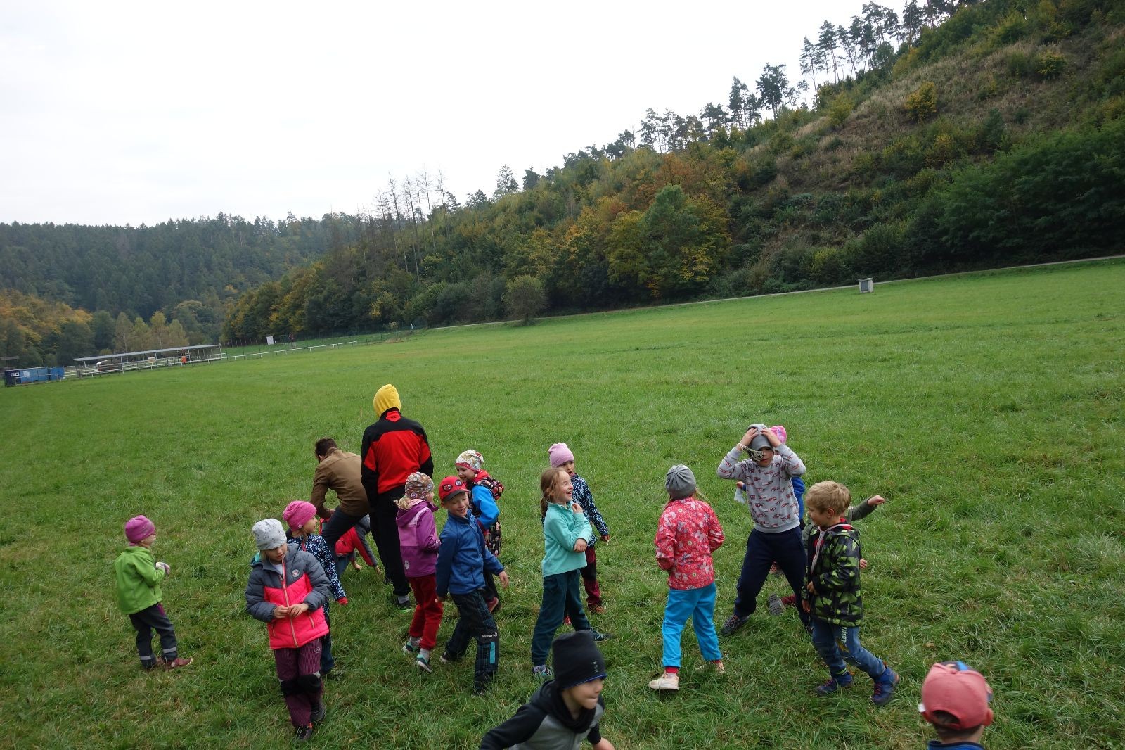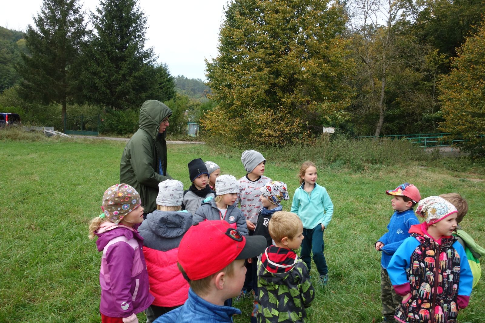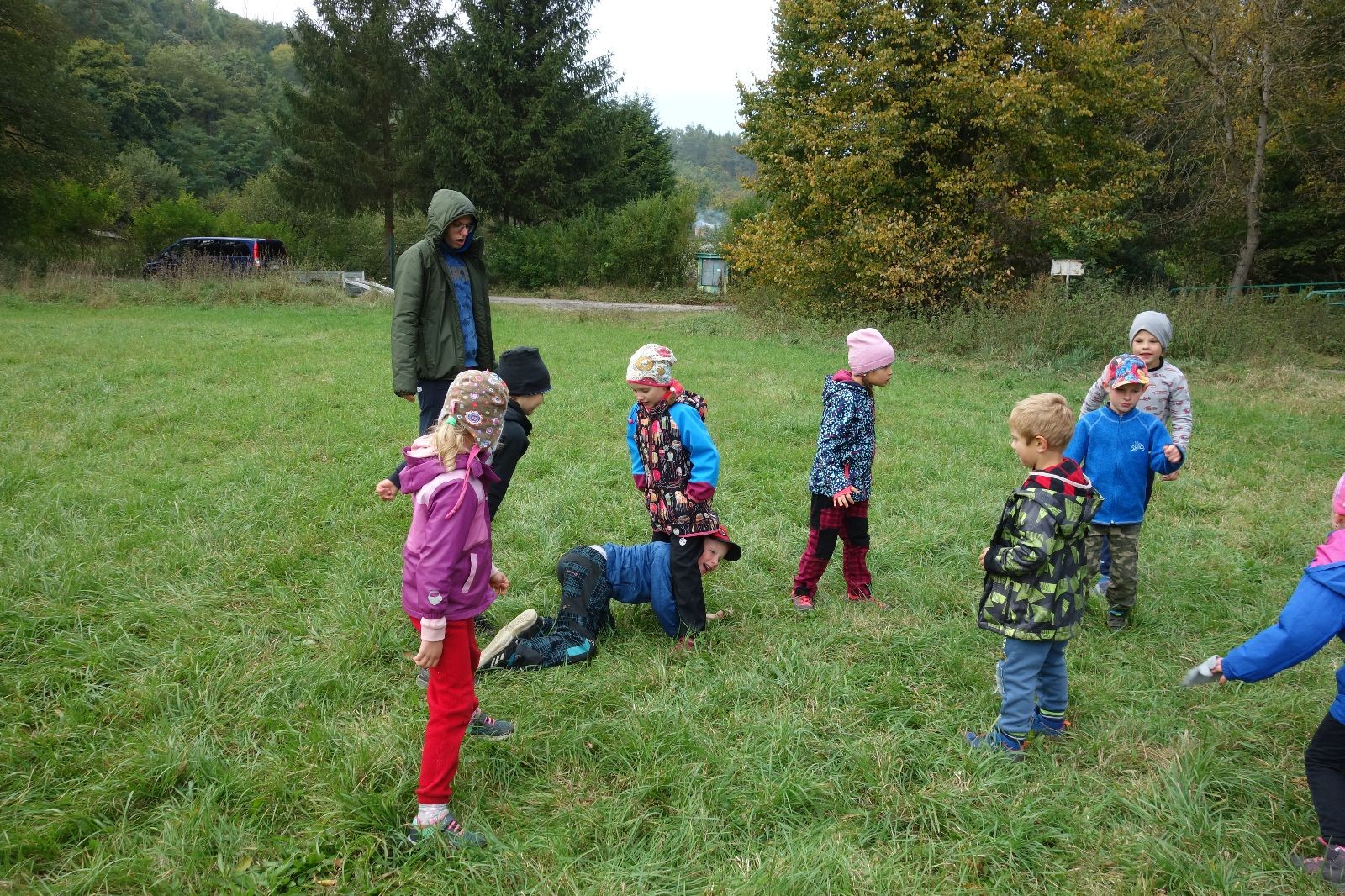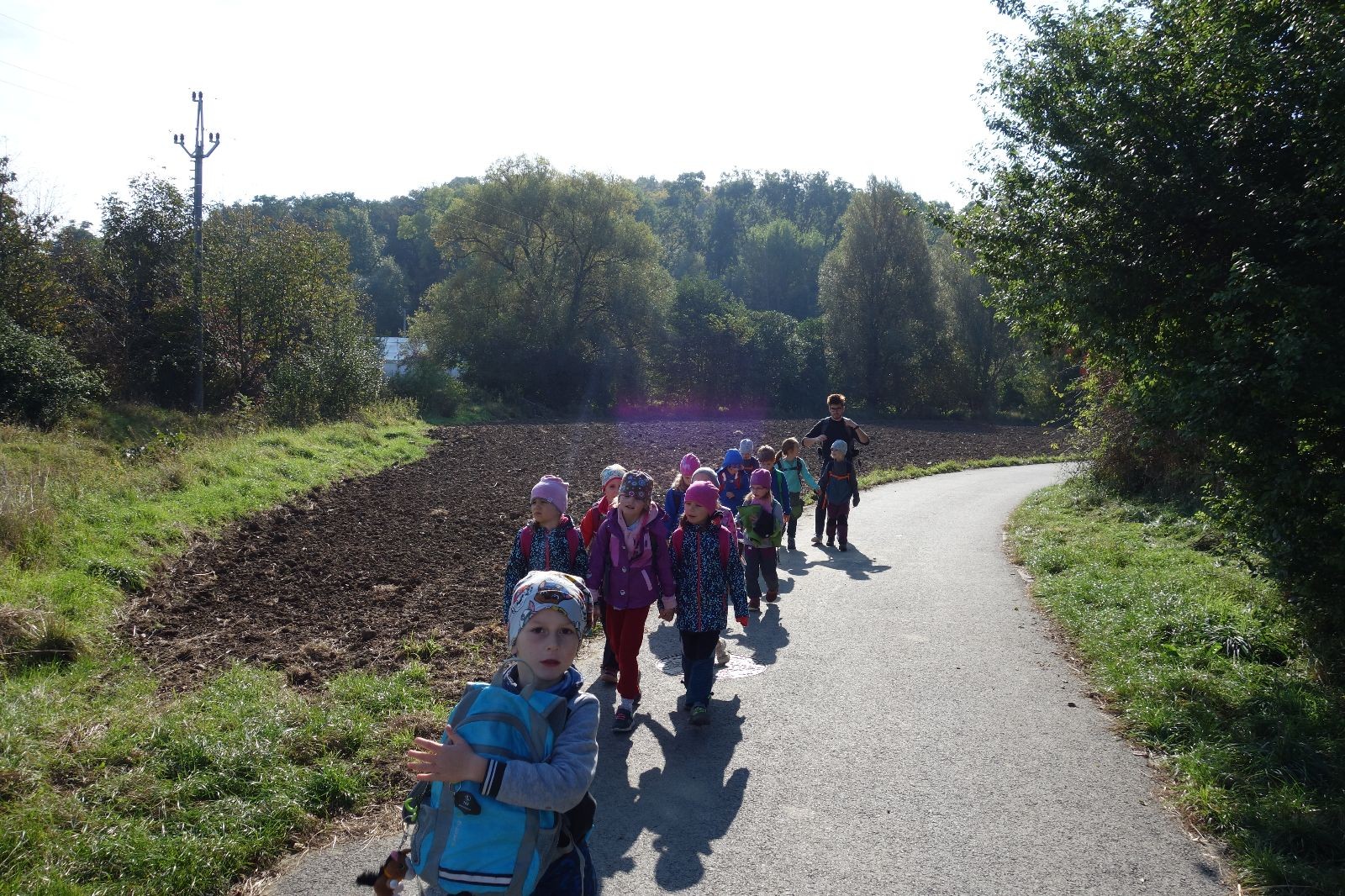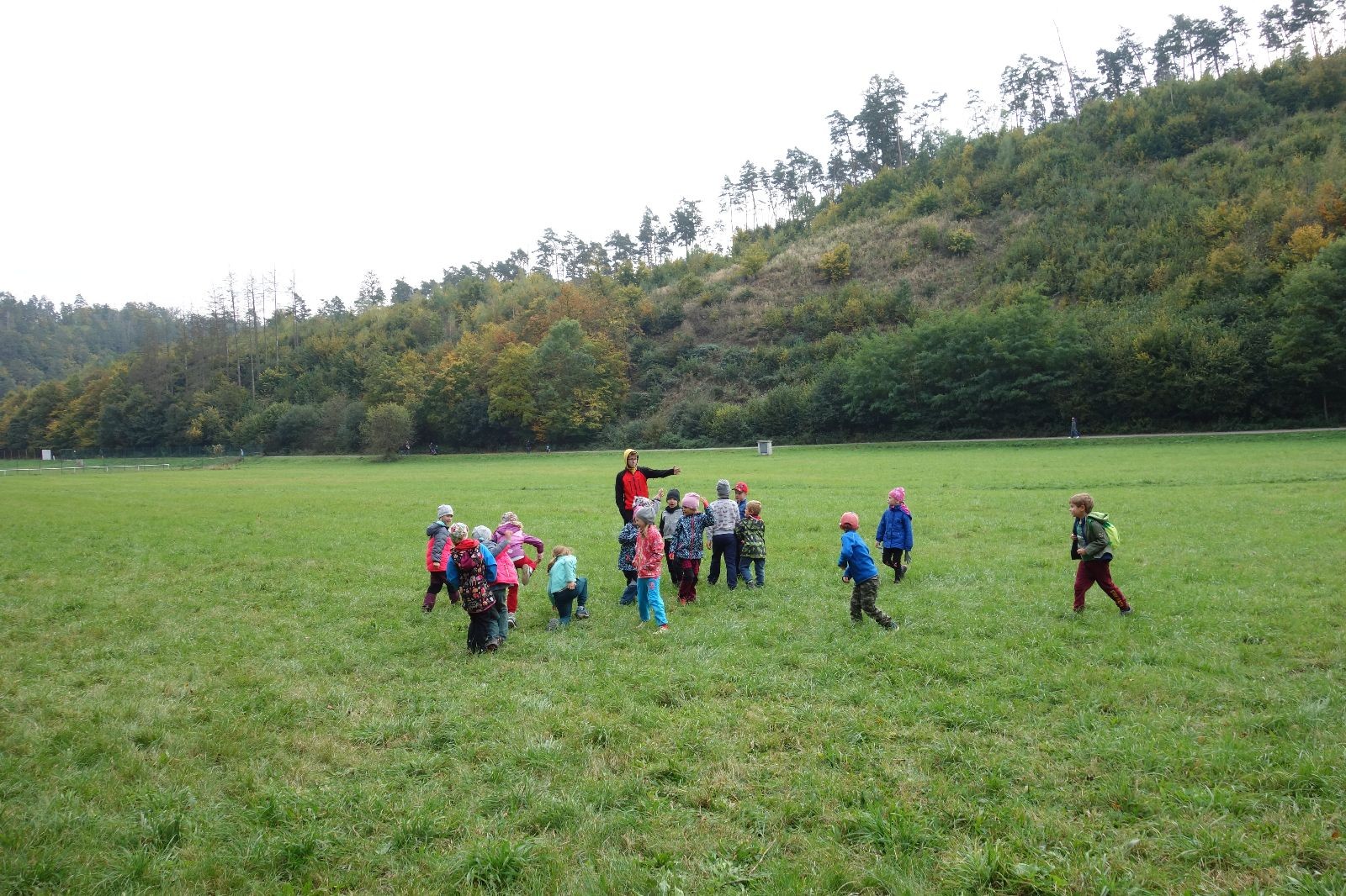 Po prvotních zmatcích a adaptaci na počasí, protože bylo opravdu krásně, jsme nasadili slušné tempo a přes pauzu na pití v Bedřichovicích jsme se dostali do Podolí, kde se všichni nasvačili. Pokus o hru na slepou bábu vzal rychle za své, jelikož všichni chtěli být slepá bába, takže jsme se rozhodli pokračovat proti proudu Říčky a okolo Zukalova mlýna až za Eldorado, kde byl takzvaný cíl naší výpravy. Kolem půl druhé hodiny odpolední si na louce uprostřed Mariánského údolí všichni snědli své obědy z domova a odpočinuli si. Ovšem ne na dlouho, protože jen co se doobědvalo, byli všichni opět plní energie a začali pobíhat po louce. Po chvíli jsme zorganizovali nejoblíbenější hru v naší družince, mrazíka, kterou by tam děti nejraději hrály až do večera. Aby se příliš neunavily a zvládly cestu zpátky, tak jsme mrazíka ukončili, hodili batohy na záda a vyrazili zpátky.