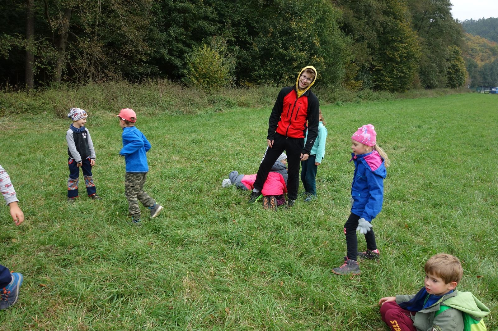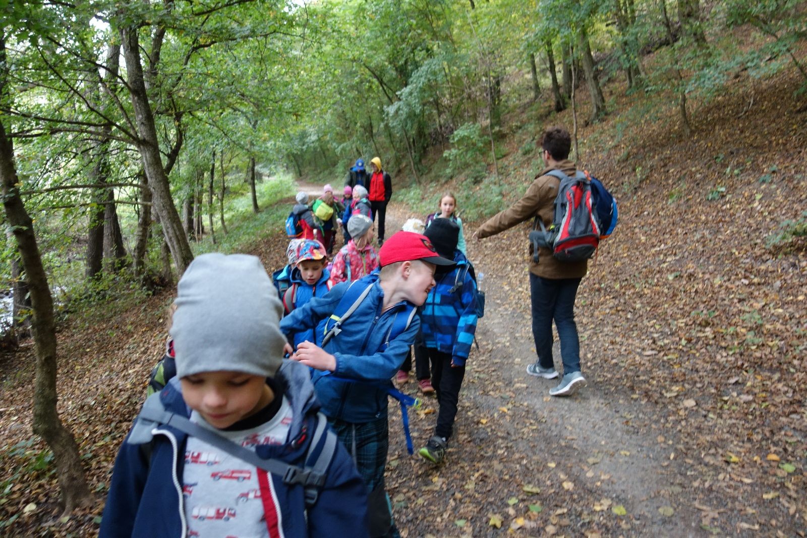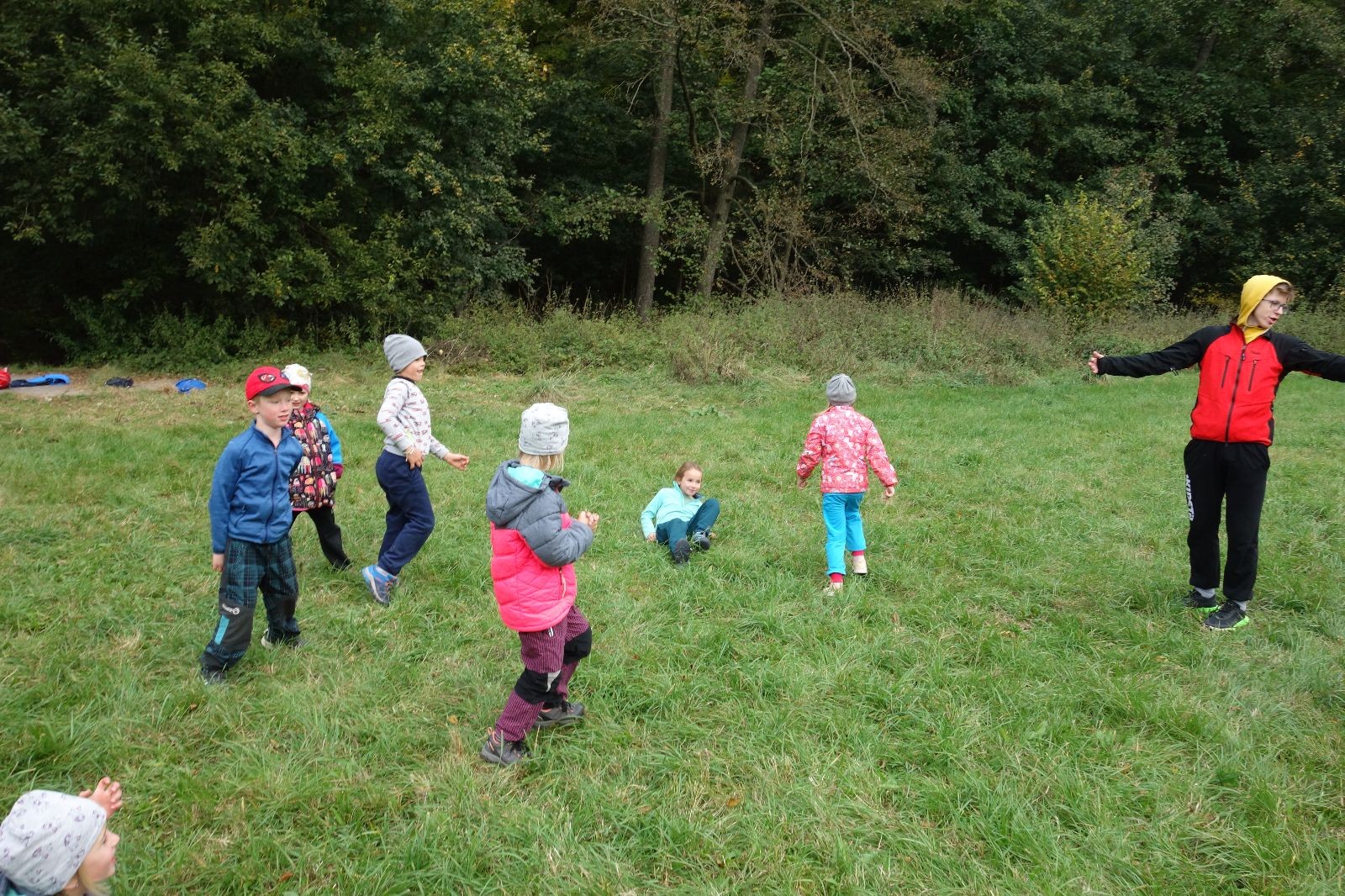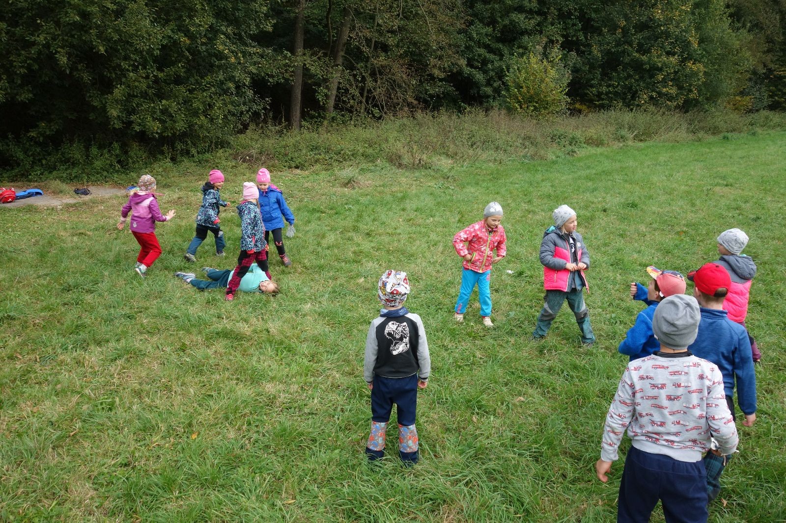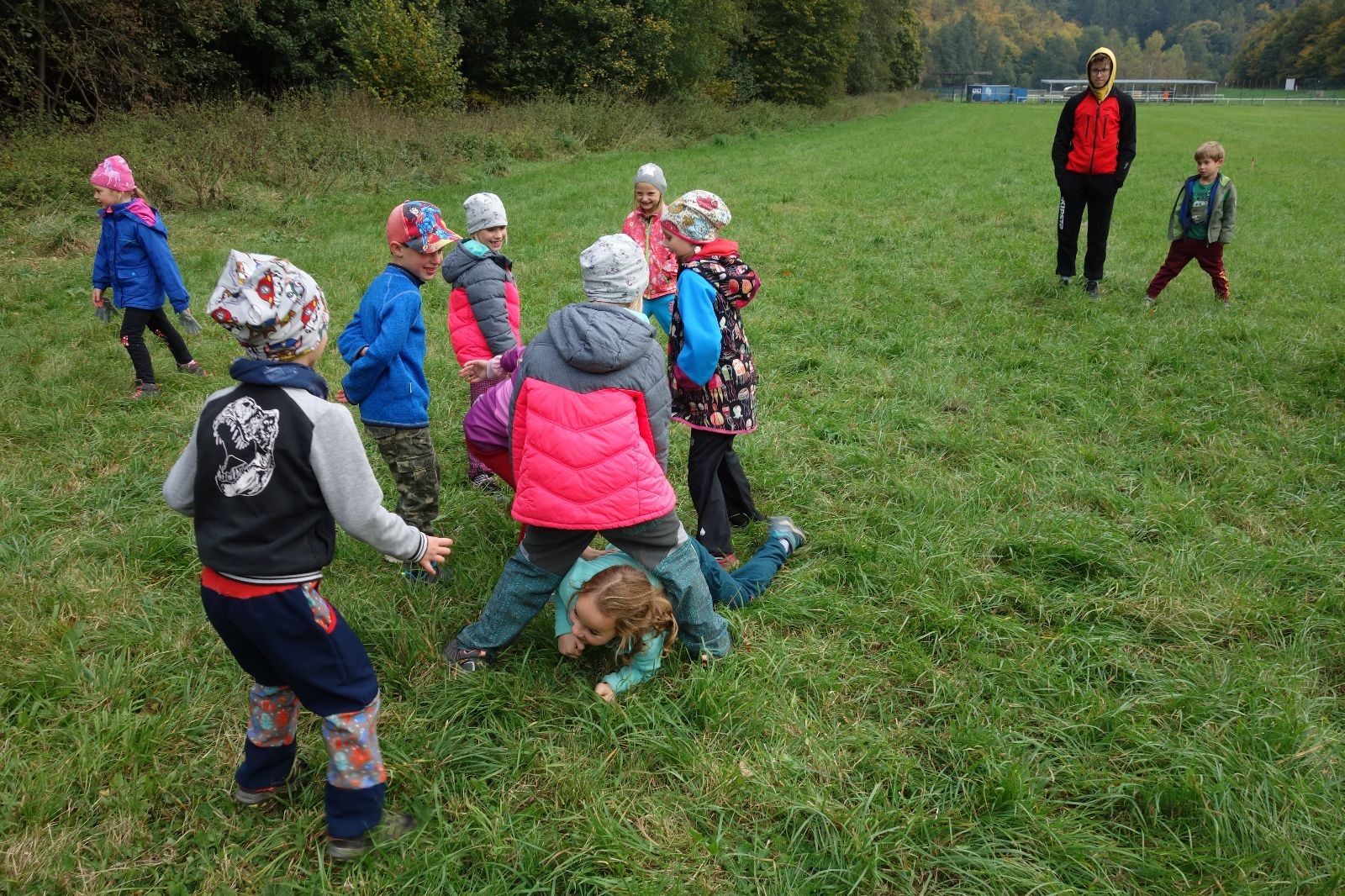 Po prvotních zmatcích a adaptaci na počasí, protože bylo opravdu krásně, jsme nasadili slušné tempo a přes pauzu na pití v Bedřichovicích jsme se dostali do Podolí, kde se všichni nasvačili. Pokus o hru na slepou bábu vzal rychle za své, jelikož všichni chtěli být slepá bába, takže jsme se rozhodli pokračovat proti proudu Říčky a okolo Zukalova mlýna až za Eldorado, kde byl takzvaný cíl naší výpravy. Kolem půl druhé hodiny odpolední si na louce uprostřed Mariánského údolí všichni snědli své obědy z domova a odpočinuli si. Ovšem ne na dlouho, protože jen co se doobědvalo, byli všichni opět plní energie a začali pobíhat po louce. Po chvíli jsme zorganizovali nejoblíbenější hru v naší družince, mrazíka, kterou by tam děti nejraději hrály až do večera. Aby se příliš neunavily a zvládly cestu zpátky, tak jsme mrazíka ukončili, hodili batohy na záda a vyrazili zpátky.