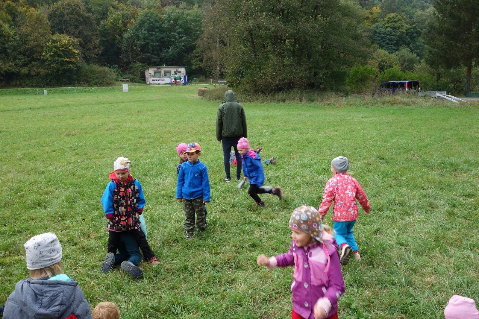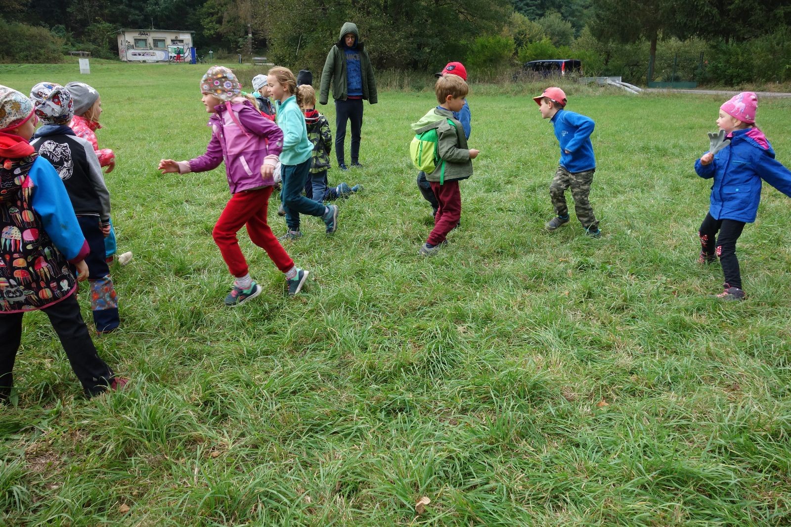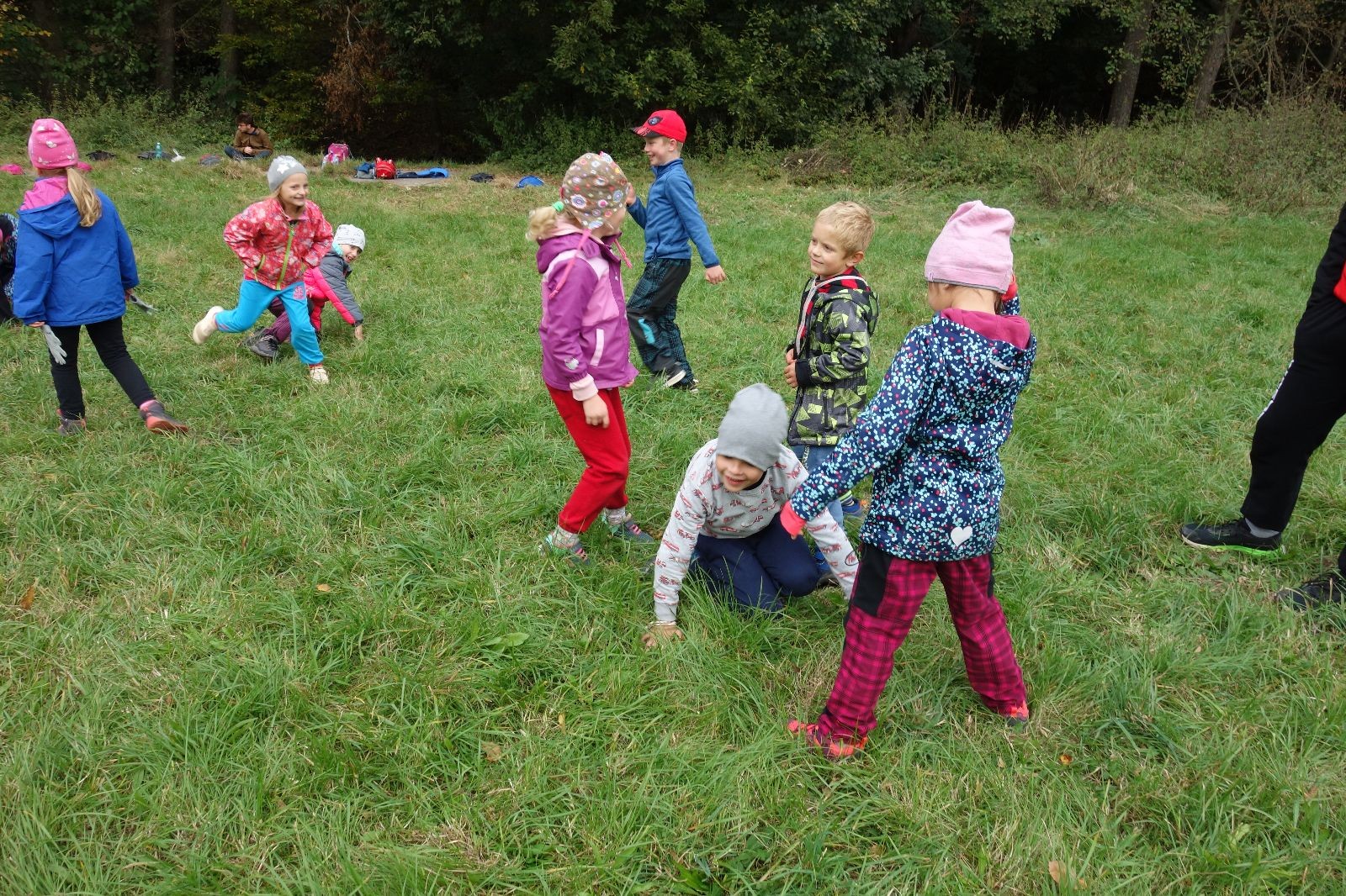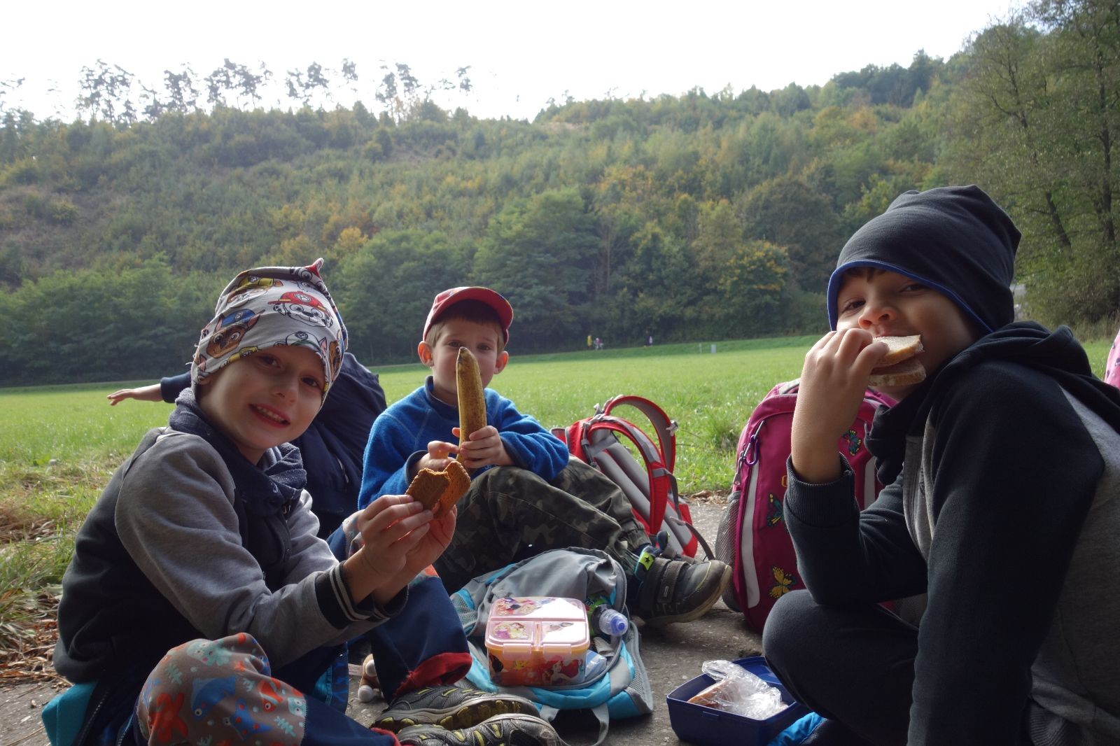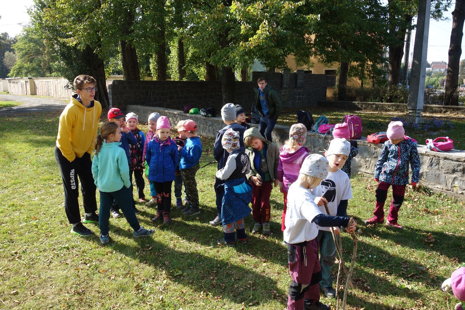 Po prvotních zmatcích a adaptaci na počasí, protože bylo opravdu krásně, jsme nasadili slušné tempo a přes pauzu na pití v Bedřichovicích jsme se dostali do Podolí, kde se všichni nasvačili. Pokus o hru na slepou bábu vzal rychle za své, jelikož všichni chtěli být slepá bába, takže jsme se rozhodli pokračovat proti proudu Říčky a okolo Zukalova mlýna až za Eldorado, kde byl takzvaný cíl naší výpravy. Kolem půl druhé hodiny odpolední si na louce uprostřed Mariánského údolí všichni snědli své obědy z domova a odpočinuli si. Ovšem ne na dlouho, protože jen co se doobědvalo, byli všichni opět plní energie a začali pobíhat po louce. Po chvíli jsme zorganizovali nejoblíbenější hru v naší družince, mrazíka, kterou by tam děti nejraději hrály až do večera. Aby se příliš neunavily a zvládly cestu zpátky, tak jsme mrazíka ukončili, hodili batohy na záda a vyrazili zpátky.