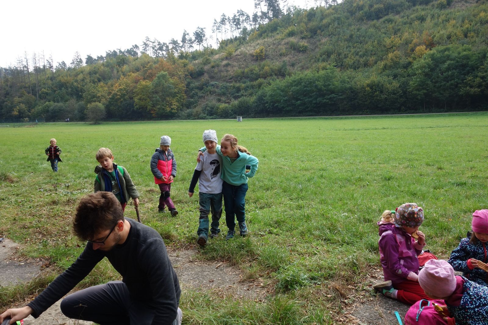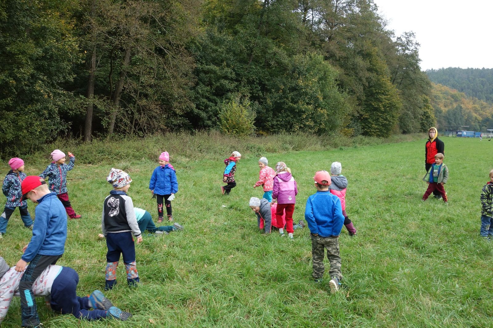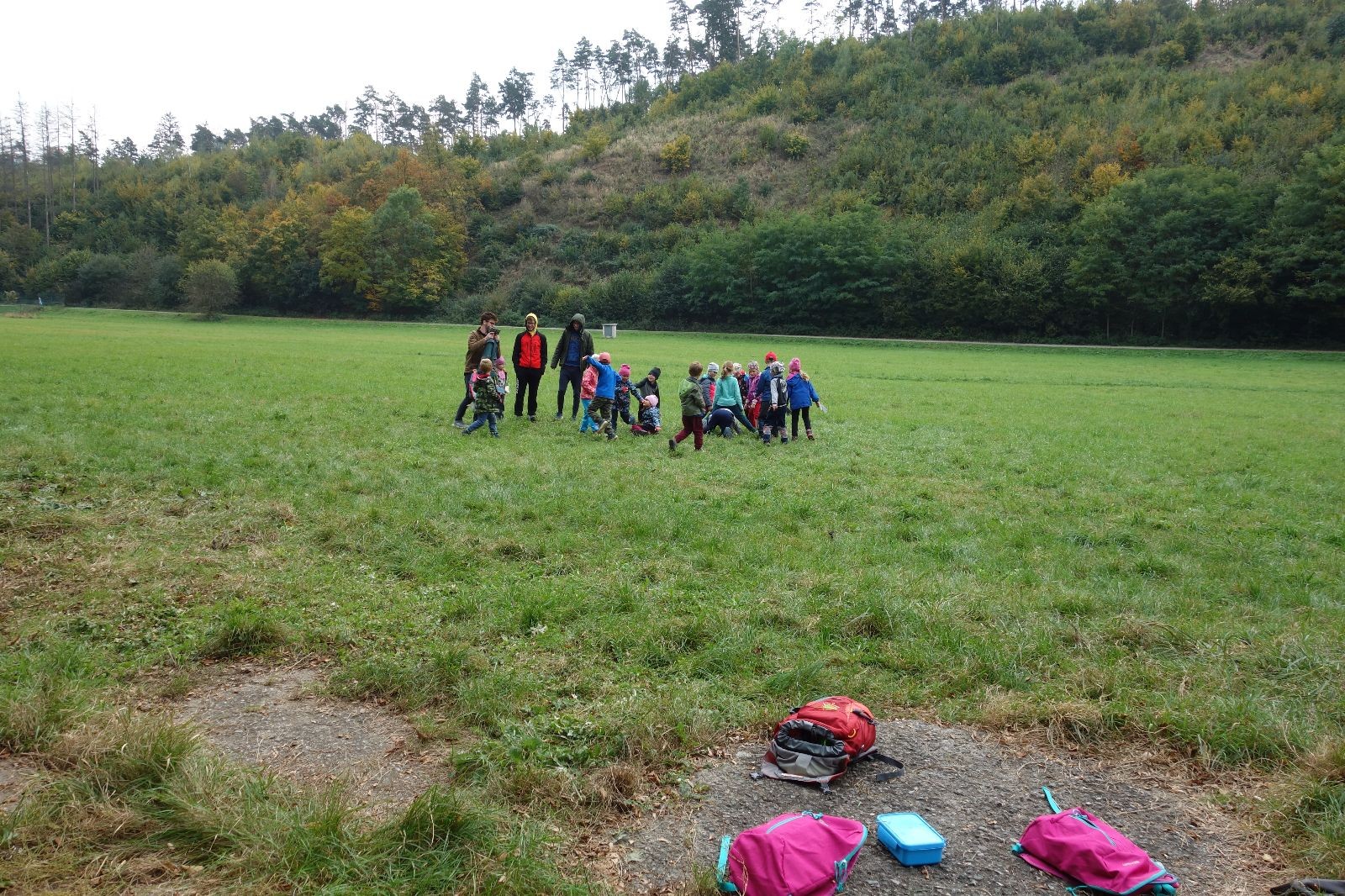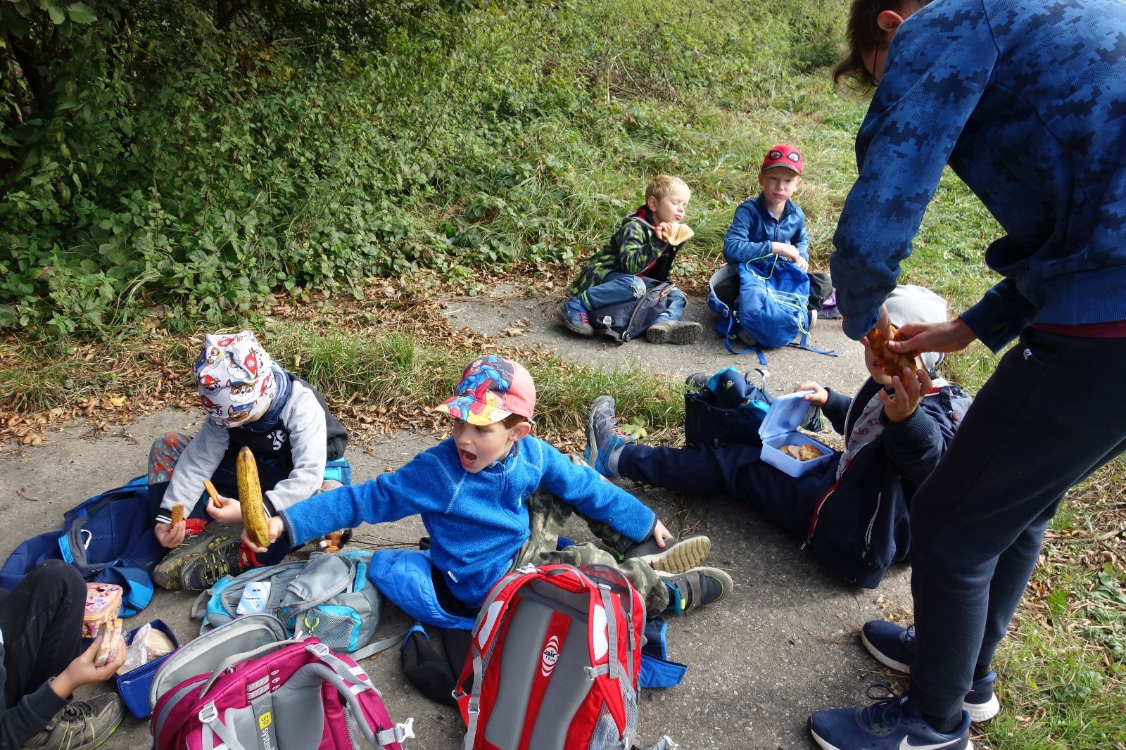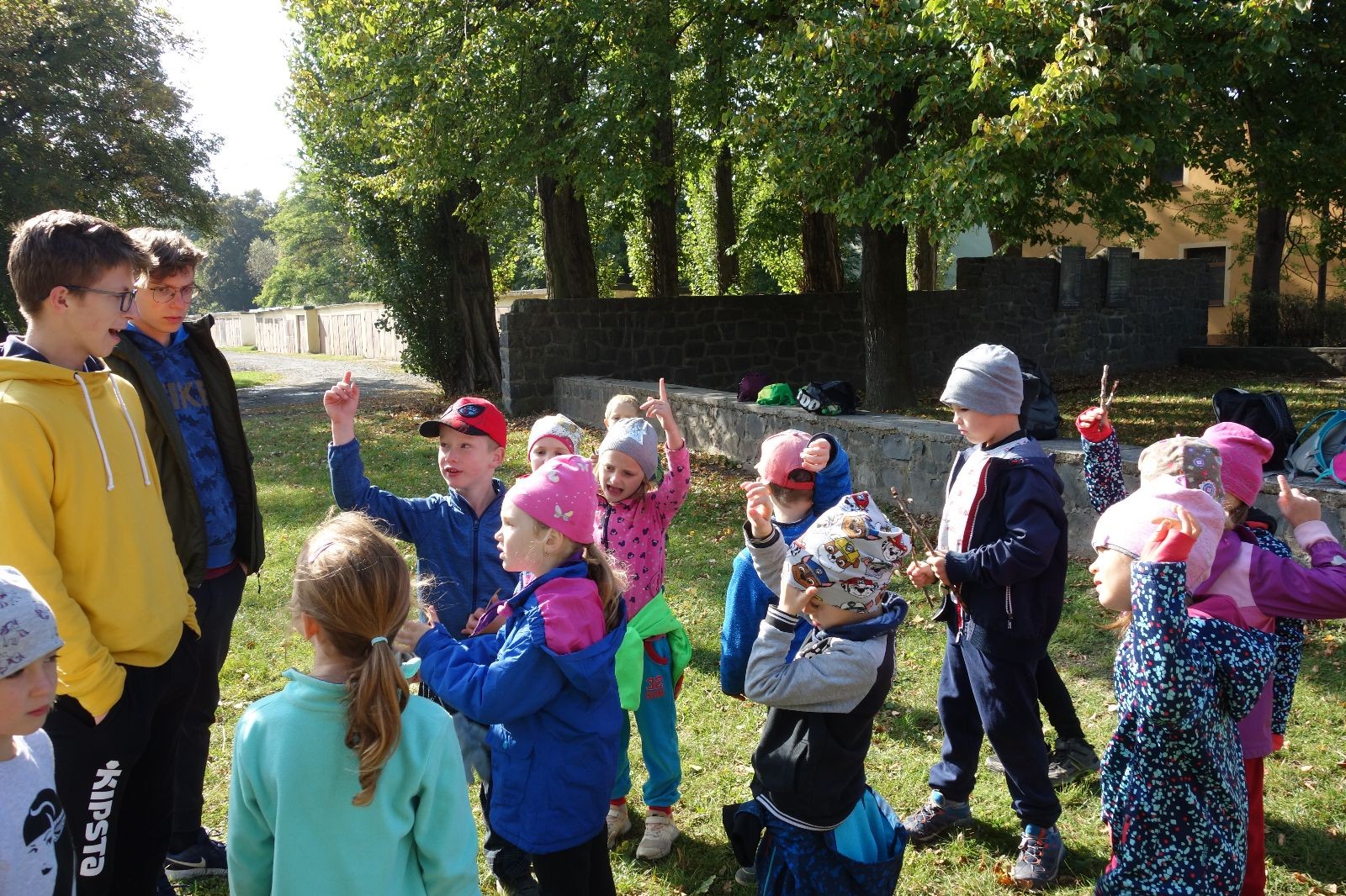 Po prvotních zmatcích a adaptaci na počasí, protože bylo opravdu krásně, jsme nasadili slušné tempo a přes pauzu na pití v Bedřichovicích jsme se dostali do Podolí, kde se všichni nasvačili. Pokus o hru na slepou bábu vzal rychle za své, jelikož všichni chtěli být slepá bába, takže jsme se rozhodli pokračovat proti proudu Říčky a okolo Zukalova mlýna až za Eldorado, kde byl takzvaný cíl naší výpravy. Kolem půl druhé hodiny odpolední si na louce uprostřed Mariánského údolí všichni snědli své obědy z domova a odpočinuli si. Ovšem ne na dlouho, protože jen co se doobědvalo, byli všichni opět plní energie a začali pobíhat po louce. Po chvíli jsme zorganizovali nejoblíbenější hru v naší družince, mrazíka, kterou by tam děti nejraději hrály až do večera. Aby se příliš neunavily a zvládly cestu zpátky, tak jsme mrazíka ukončili, hodili batohy na záda a vyrazili zpátky.