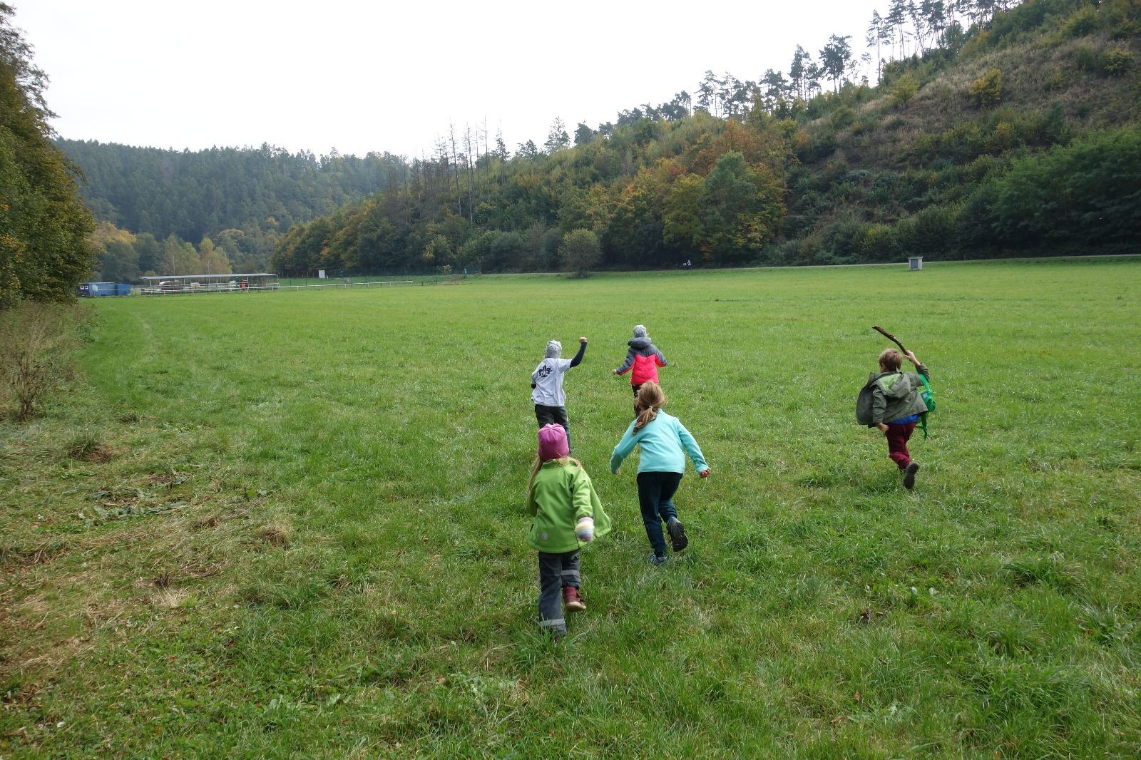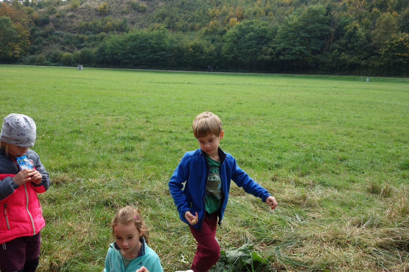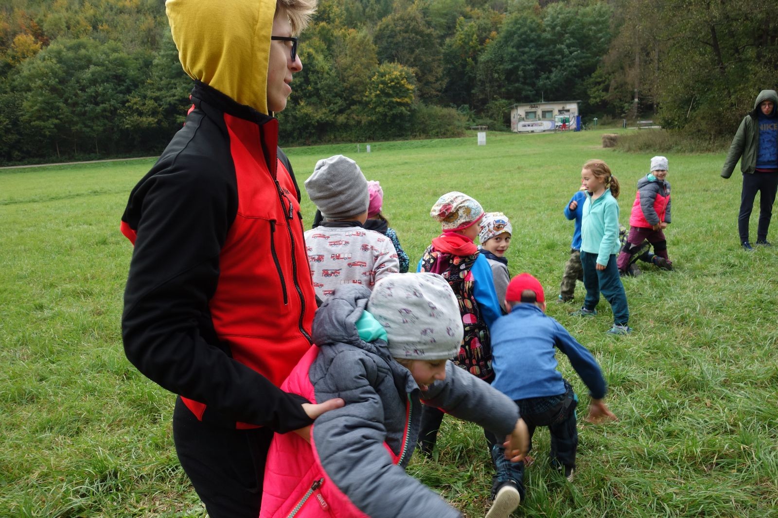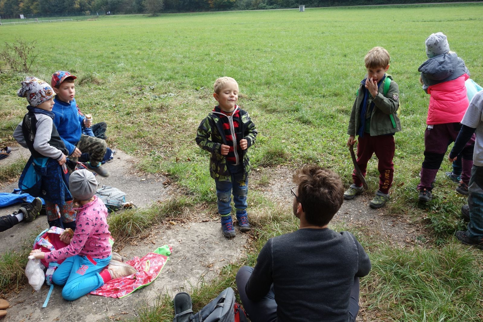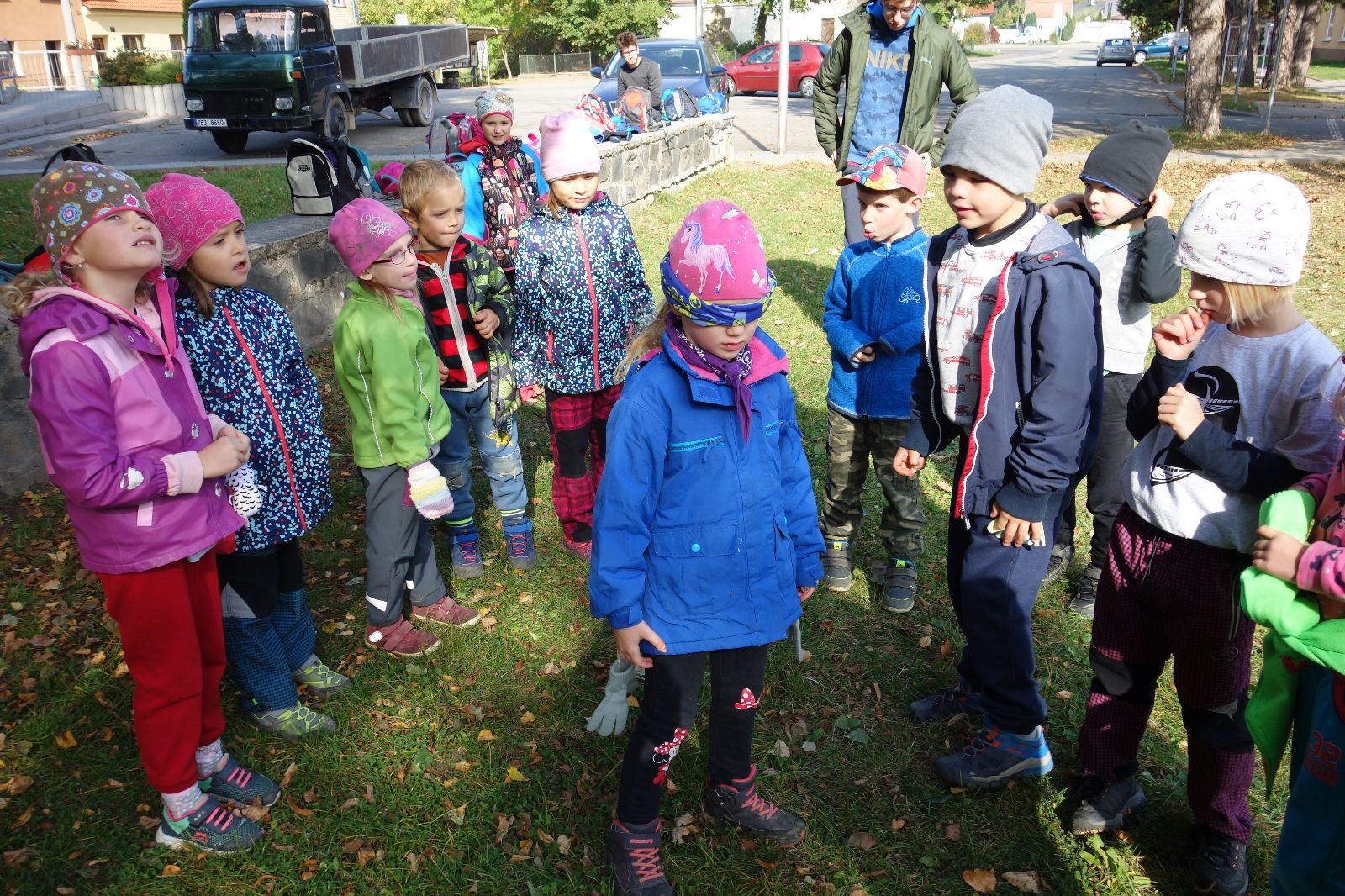 Po prvotních zmatcích a adaptaci na počasí, protože bylo opravdu krásně, jsme nasadili slušné tempo a přes pauzu na pití v Bedřichovicích jsme se dostali do Podolí, kde se všichni nasvačili. Pokus o hru na slepou bábu vzal rychle za své, jelikož všichni chtěli být slepá bába, takže jsme se rozhodli pokračovat proti proudu Říčky a okolo Zukalova mlýna až za Eldorado, kde byl takzvaný cíl naší výpravy. Kolem půl druhé hodiny odpolední si na louce uprostřed Mariánského údolí všichni snědli své obědy z domova a odpočinuli si. Ovšem ne na dlouho, protože jen co se doobědvalo, byli všichni opět plní energie a začali pobíhat po louce. Po chvíli jsme zorganizovali nejoblíbenější hru v naší družince, mrazíka, kterou by tam děti nejraději hrály až do večera. Aby se příliš neunavily a zvládly cestu zpátky, tak jsme mrazíka ukončili, hodili batohy na záda a vyrazili zpátky.