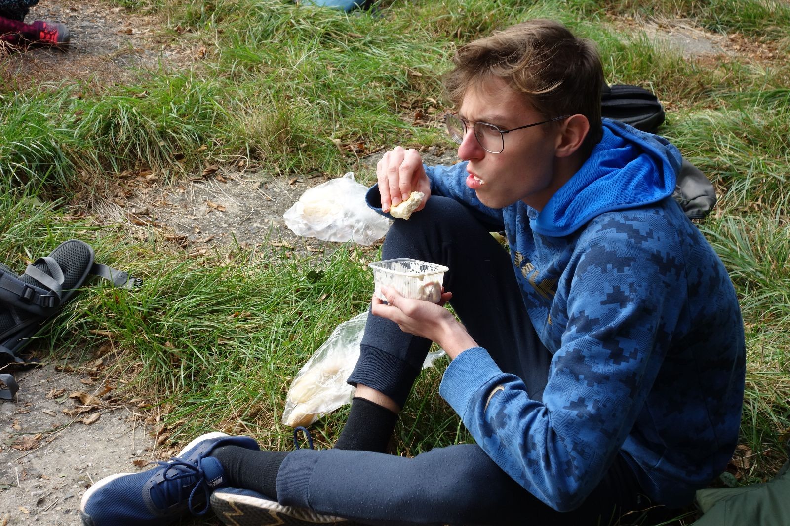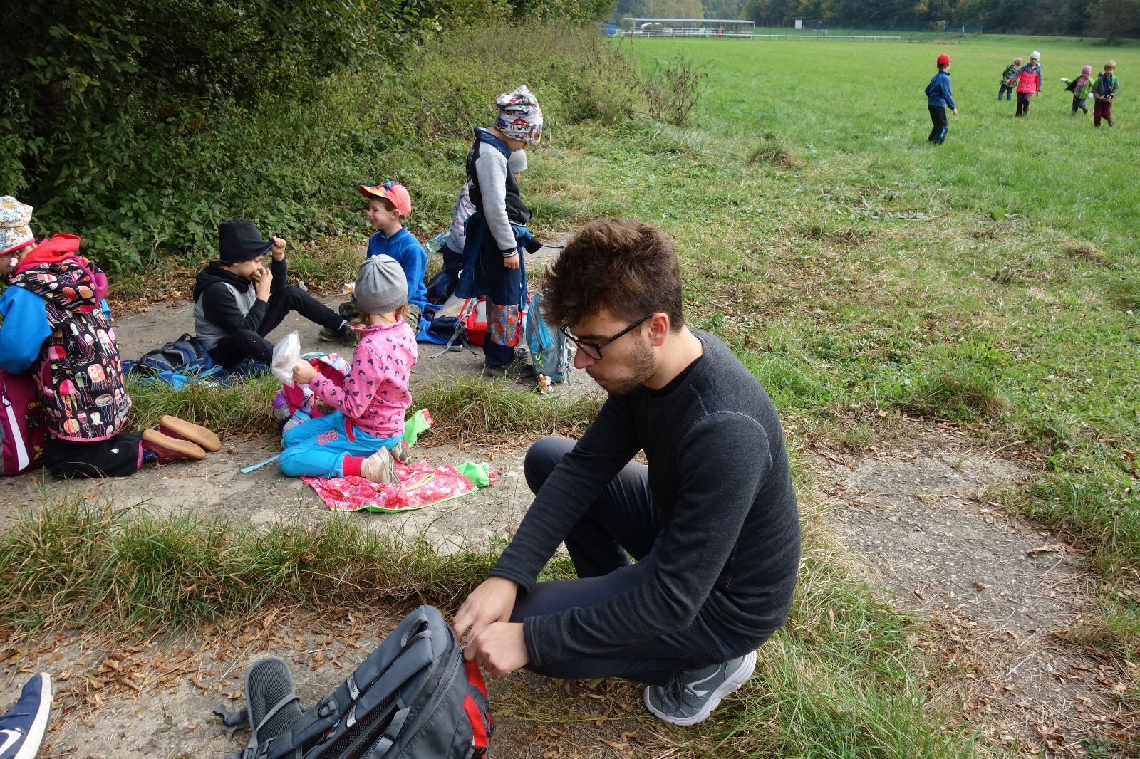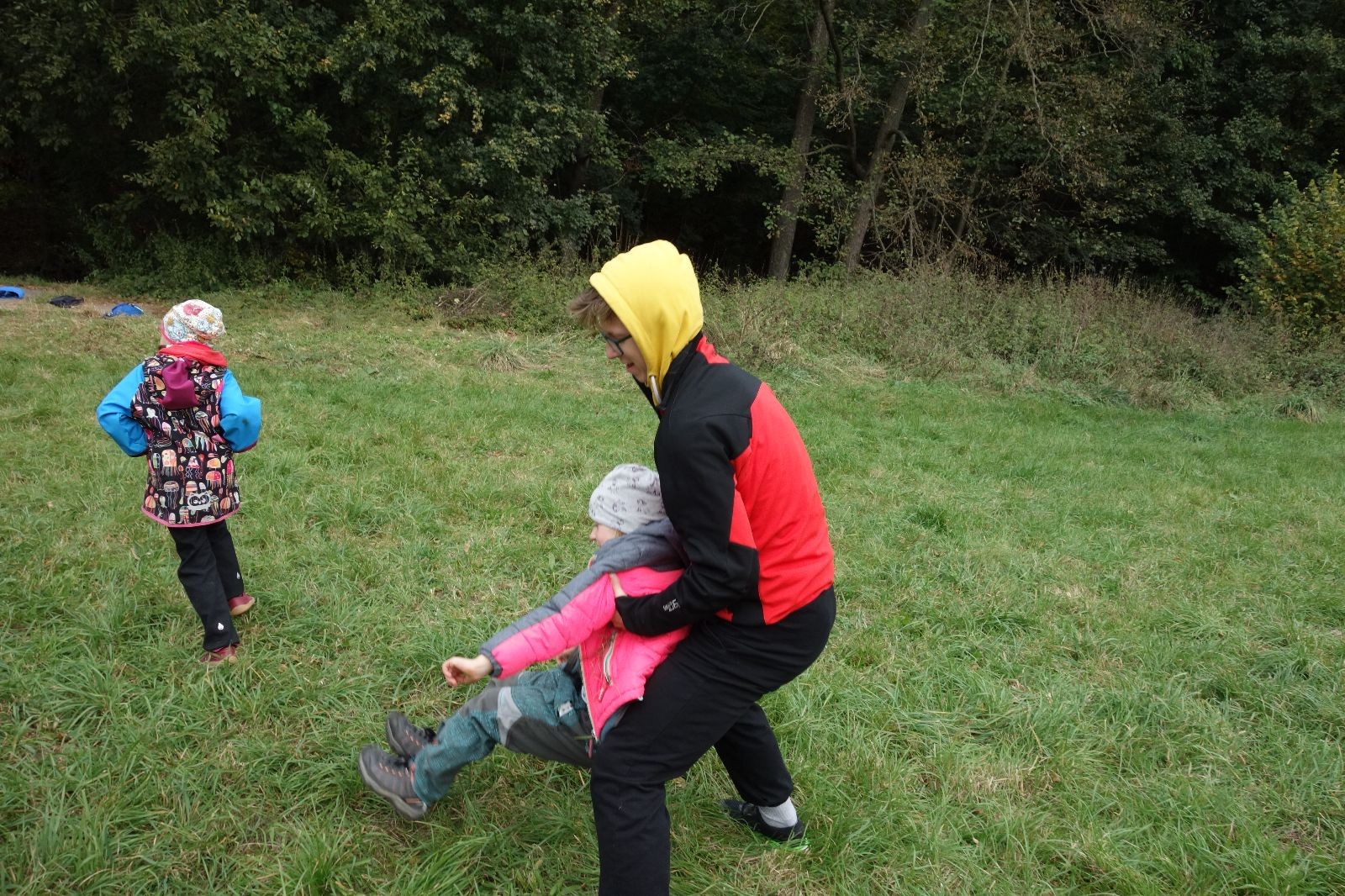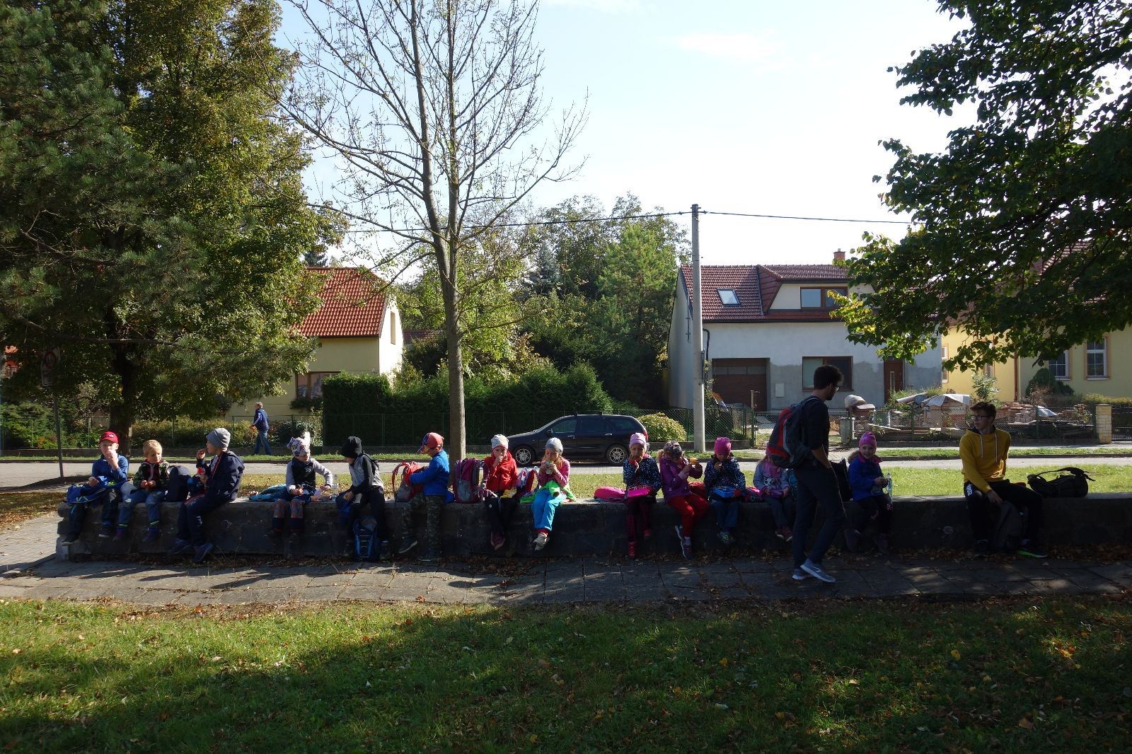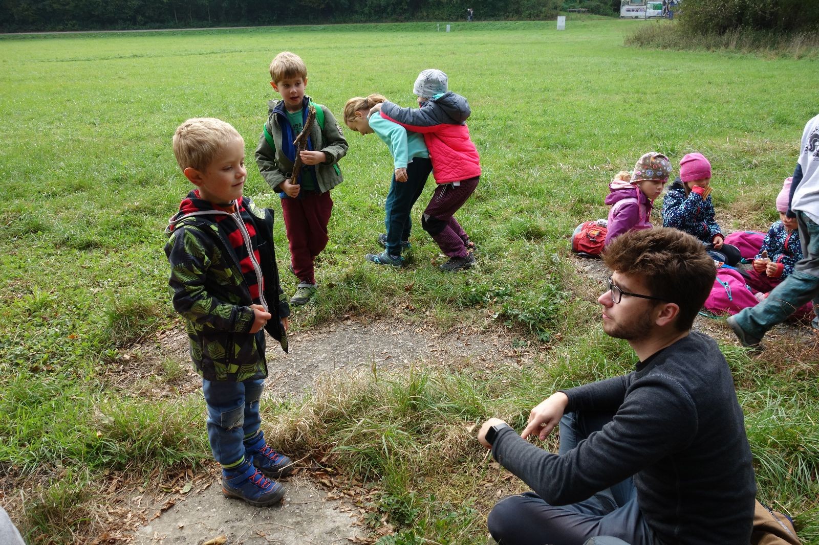 Po prvotních zmatcích a adaptaci na počasí, protože bylo opravdu krásně, jsme nasadili slušné tempo a přes pauzu na pití v Bedřichovicích jsme se dostali do Podolí, kde se všichni nasvačili. Pokus o hru na slepou bábu vzal rychle za své, jelikož všichni chtěli být slepá bába, takže jsme se rozhodli pokračovat proti proudu Říčky a okolo Zukalova mlýna až za Eldorado, kde byl takzvaný cíl naší výpravy. Kolem půl druhé hodiny odpolední si na louce uprostřed Mariánského údolí všichni snědli své obědy z domova a odpočinuli si. Ovšem ne na dlouho, protože jen co se doobědvalo, byli všichni opět plní energie a začali pobíhat po louce. Po chvíli jsme zorganizovali nejoblíbenější hru v naší družince, mrazíka, kterou by tam děti nejraději hrály až do večera. Aby se příliš neunavily a zvládly cestu zpátky, tak jsme mrazíka ukončili, hodili batohy na záda a vyrazili zpátky.