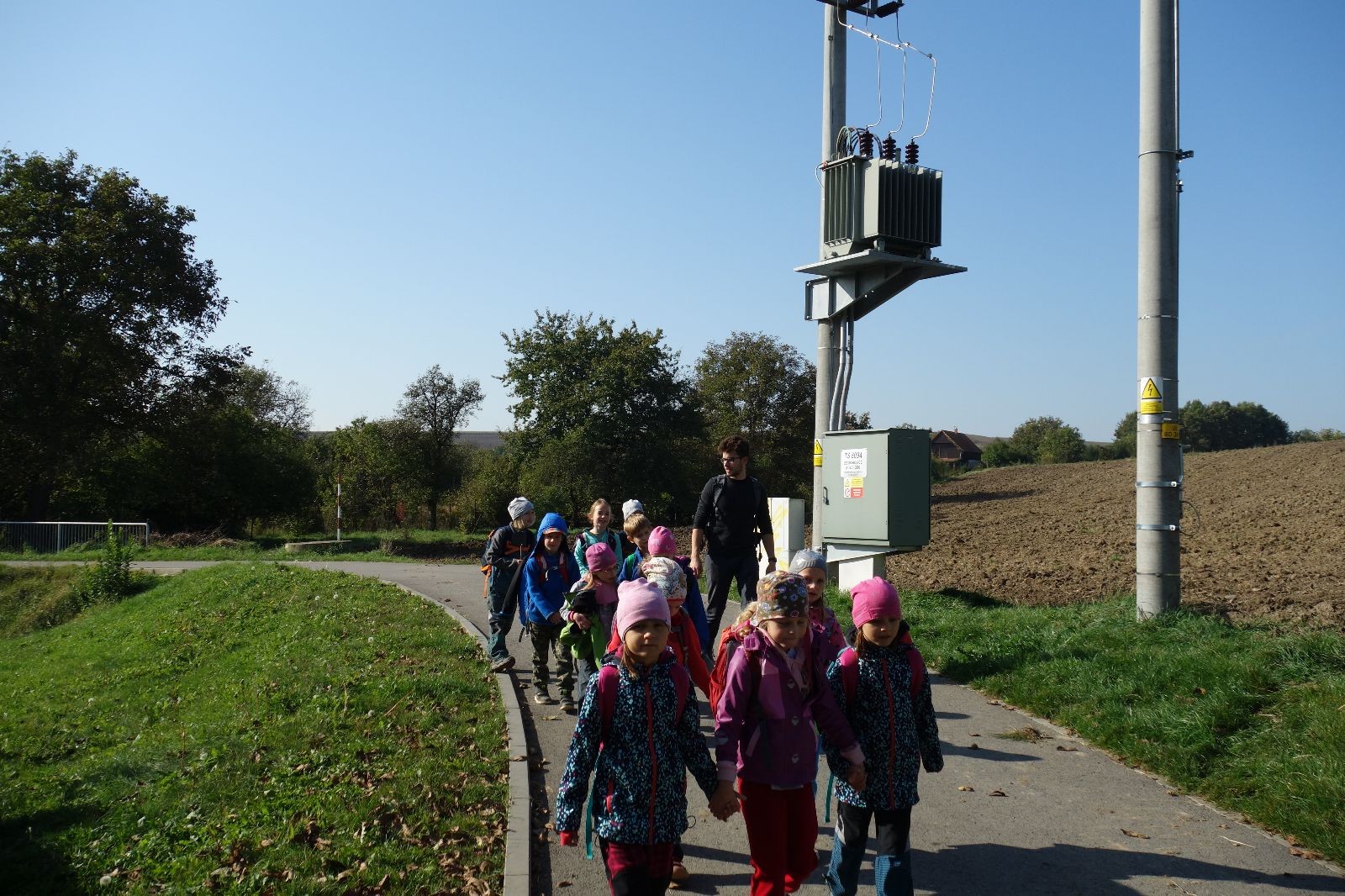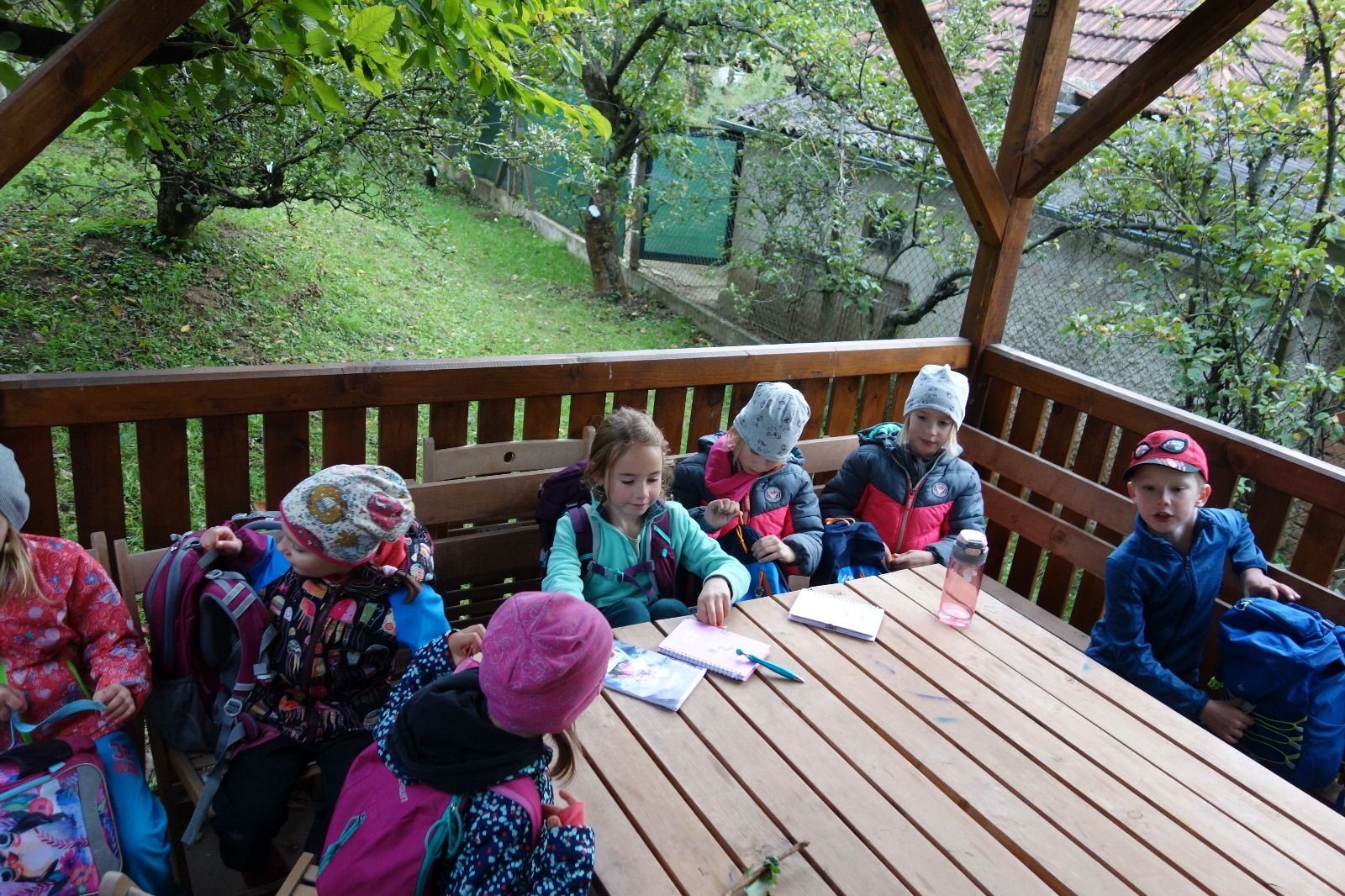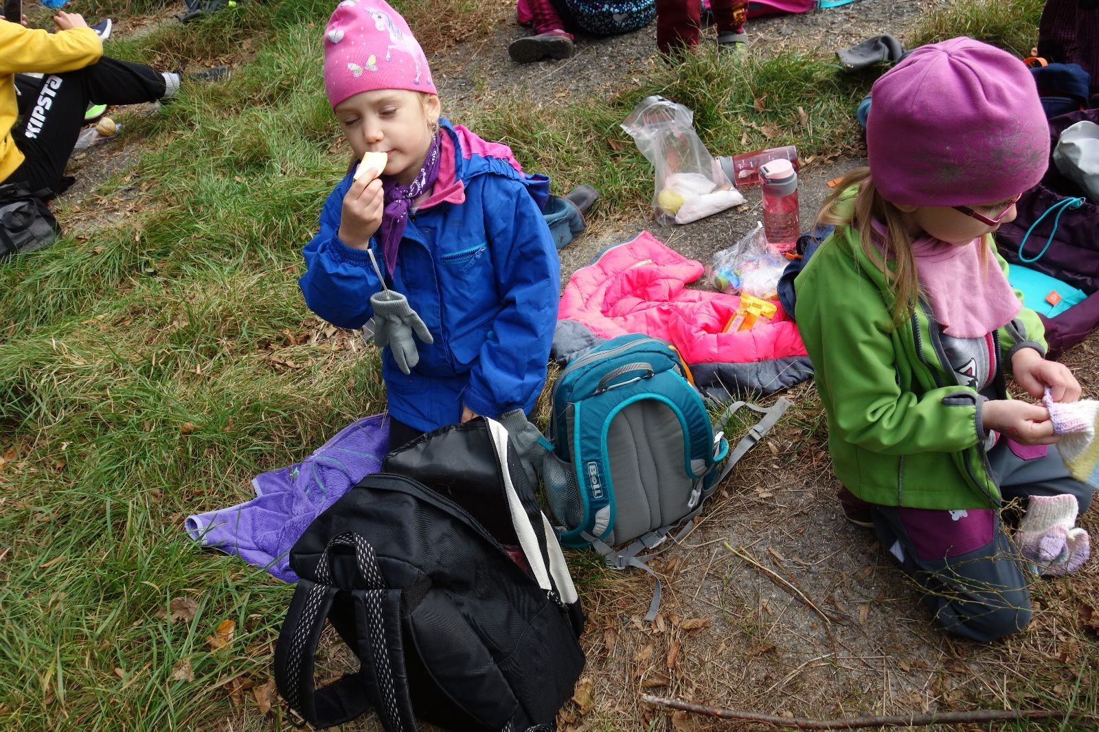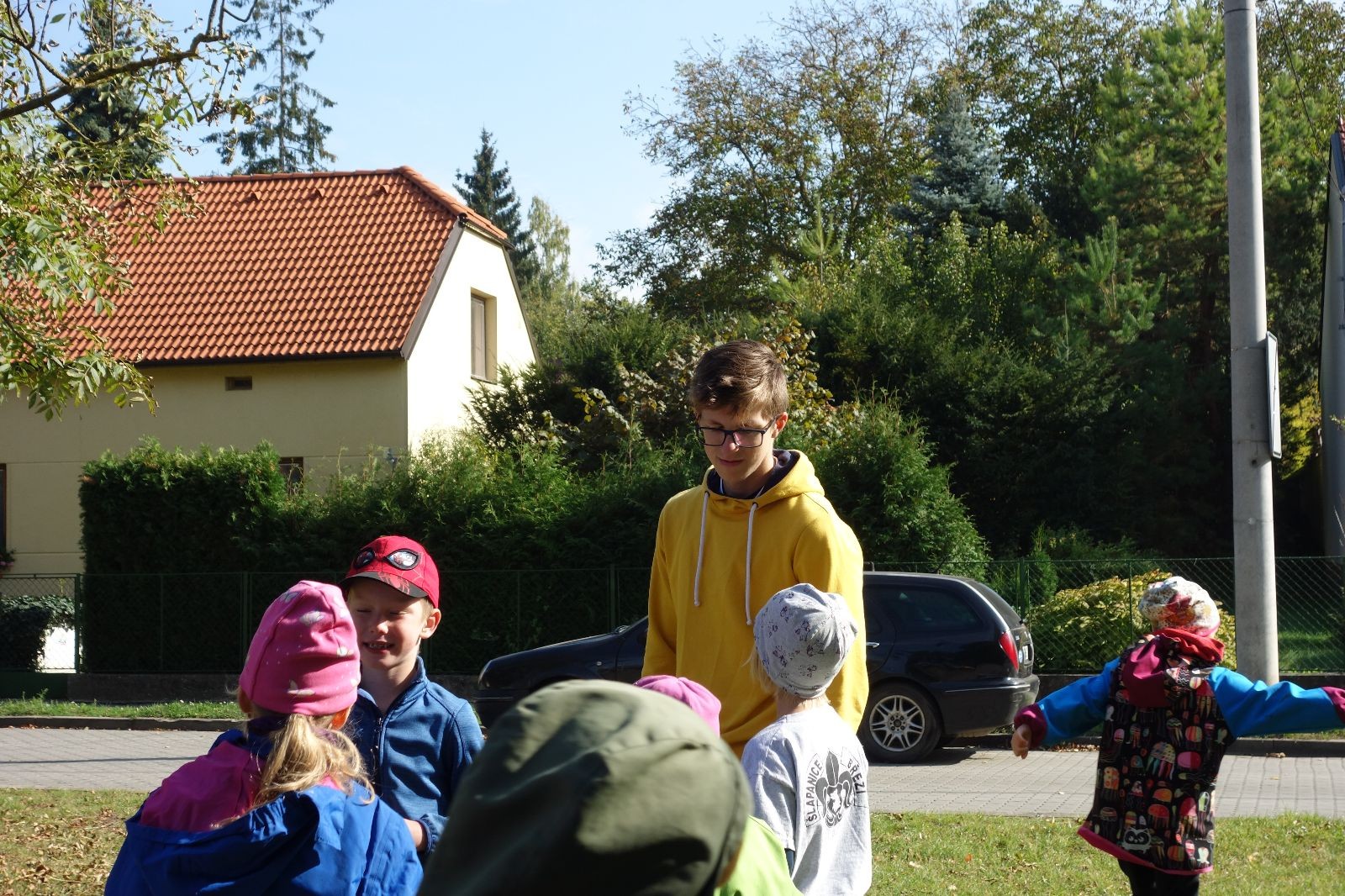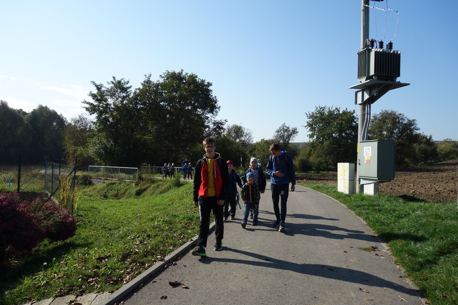 Ještě než jsme opustili Mariánské údolí, zahlédli jsme čirou náhodou dvě paní na koních, což děti značně fascinovalo. Když kolem nás projížděly, všimly si jak se na ně malí skautící nadšeně dívají, sesedly z koní a dovolily dětem, aby si je pohladily. Chudáky koníky jsme zdrželi aspoň na pět minut. Cesta zpátky rychle ubíhala a tak jsme mohli zvolnit, více si užívat krajiny. Opět jsme na pauzu zastavili v Podolí, kde se dojedly poslední zbytky svačin, všichni se napili a s přihlédnutím na pár stížností na bolavé nohy jsme pokračovali do Bedřichovic. Tam jsme už věděli, že máme dost času, takže jsme si naposledy sedli a napili se. Ač unavení, tak stejně dlouho v klidu nevydrželi, takže jsme po chvíli vyšli na finální část naší cesty - konečně na boudu. Při posledních pár stech metrech, které jsou slušně do kopce, už všichni vypadali pěkně unavení. Velkým překvapením pro nás vedoucí bylo, že po pár minutách v klidu se děti opět rozutekly po základně. Kdo ví kde tu energii vzali.