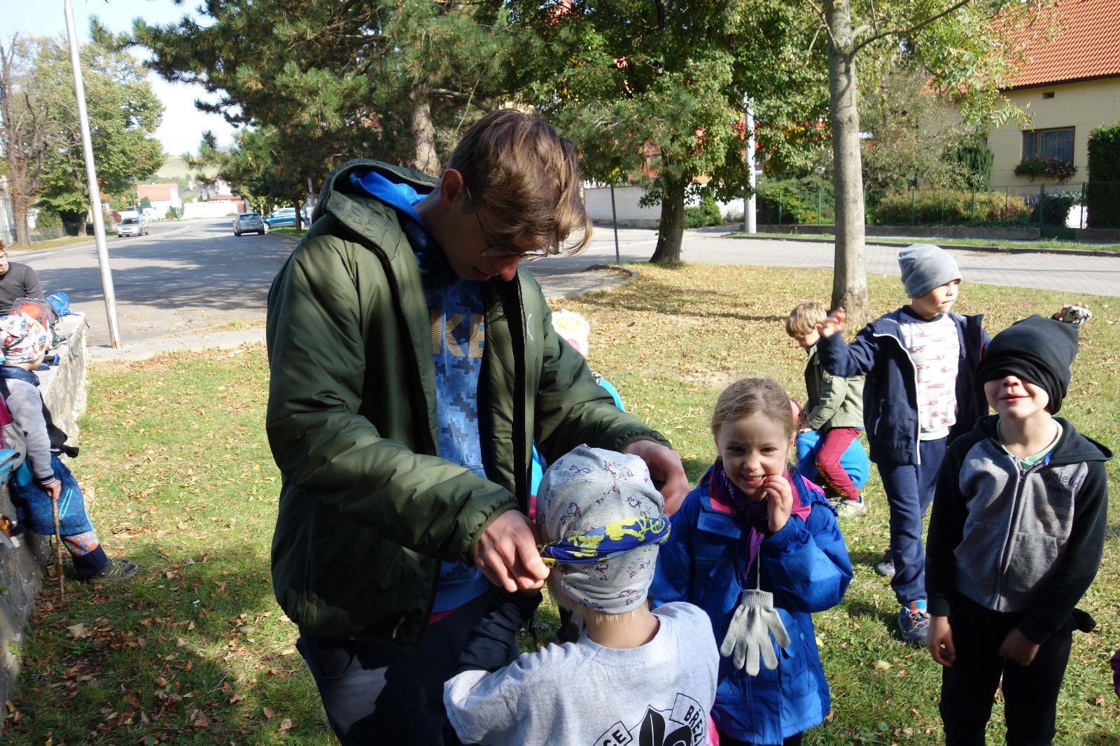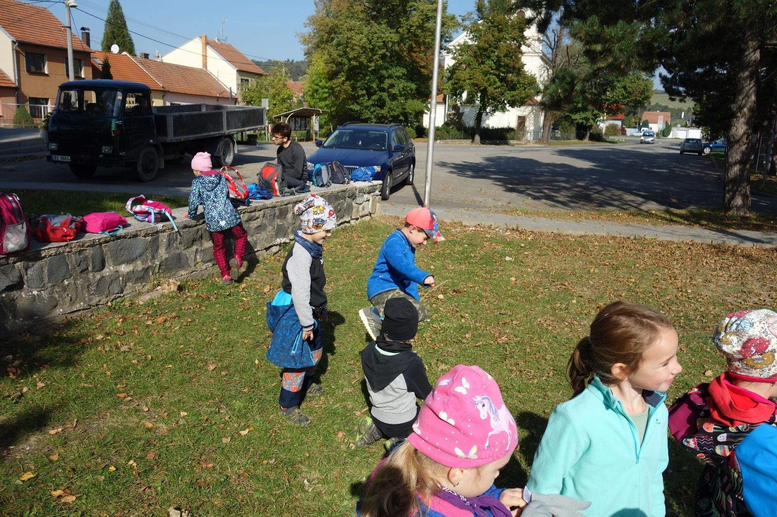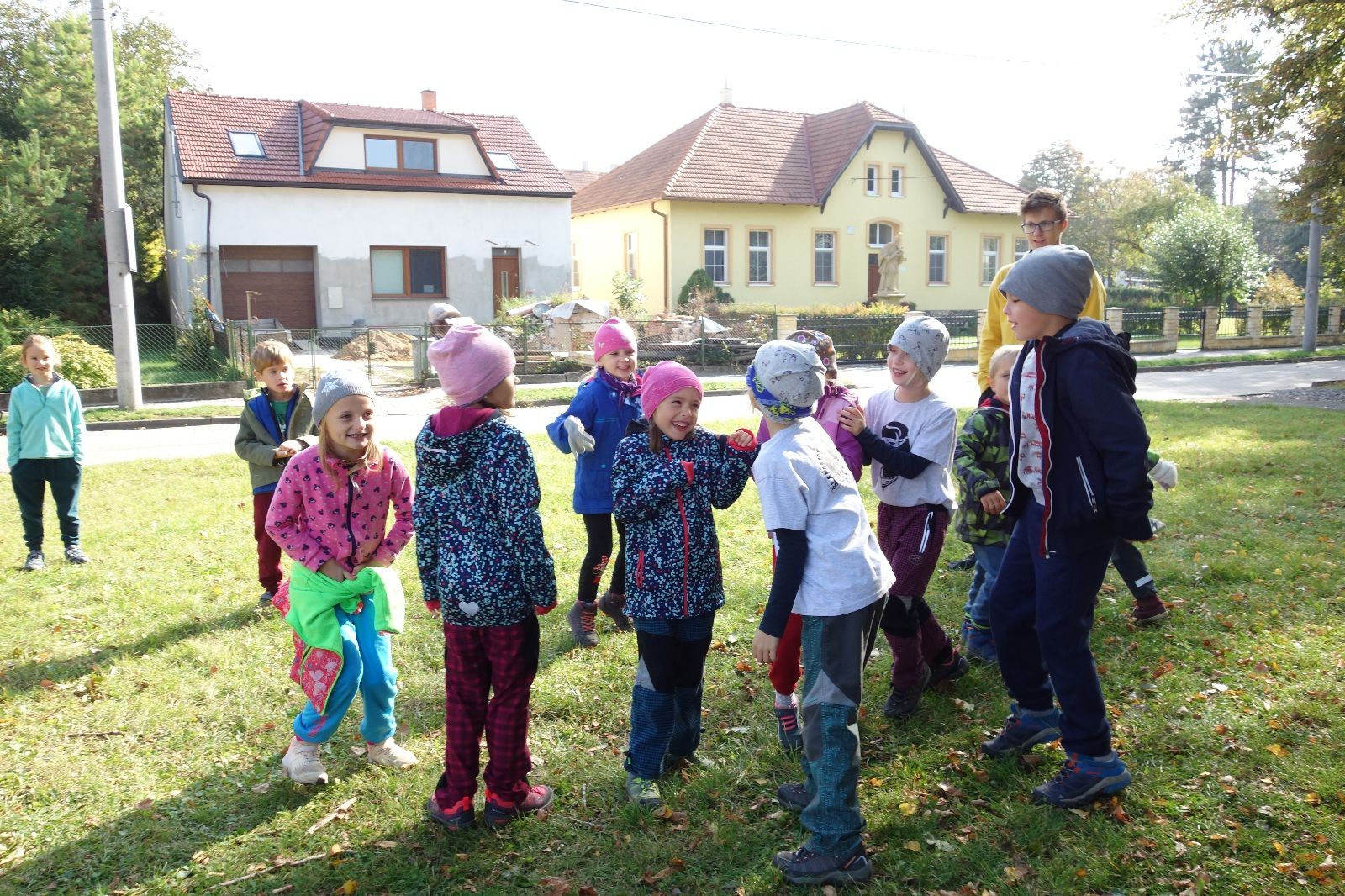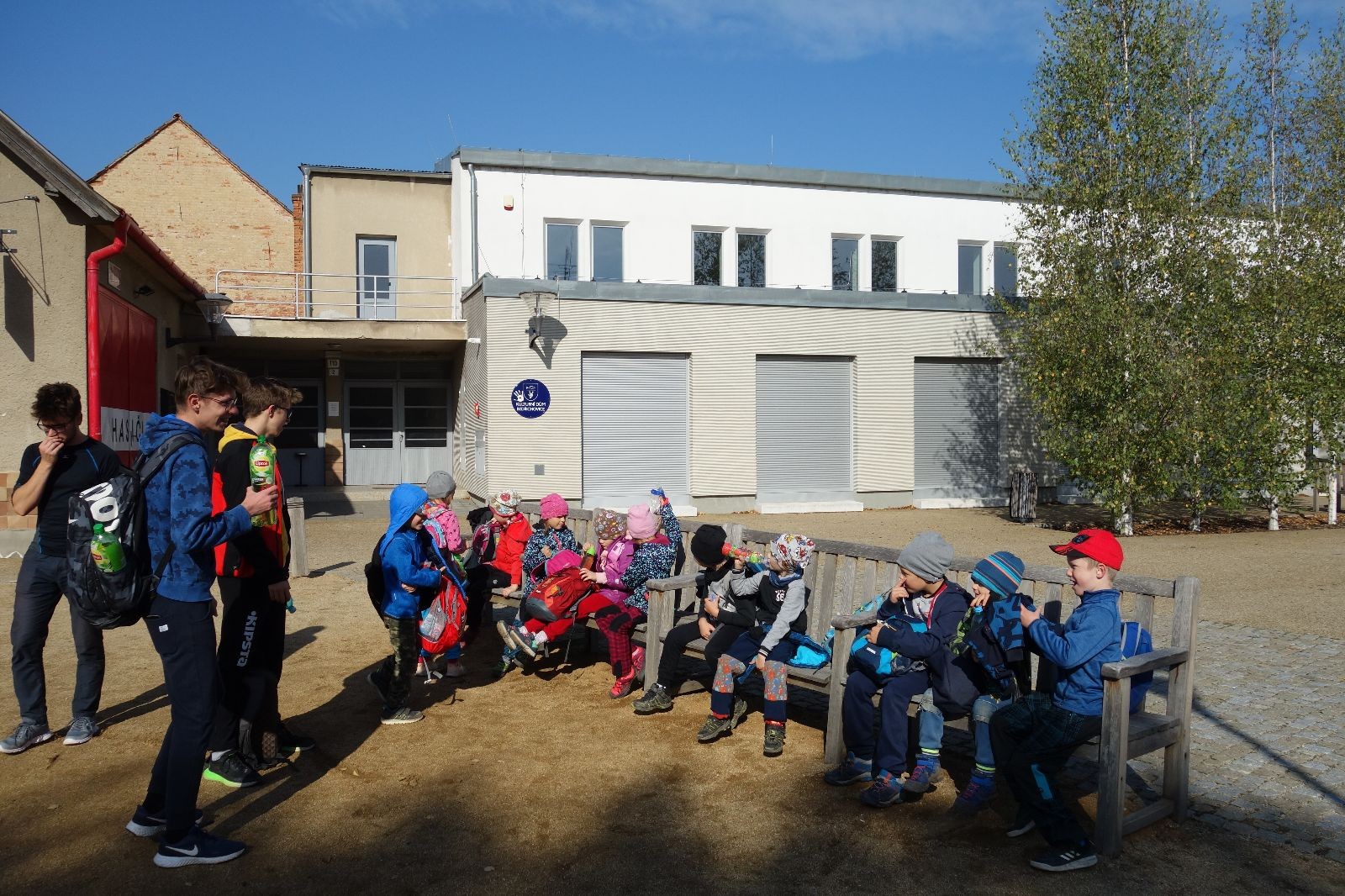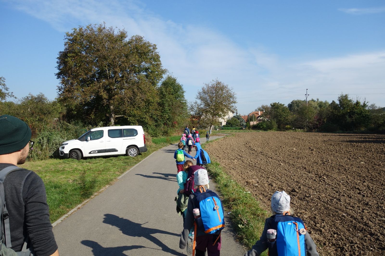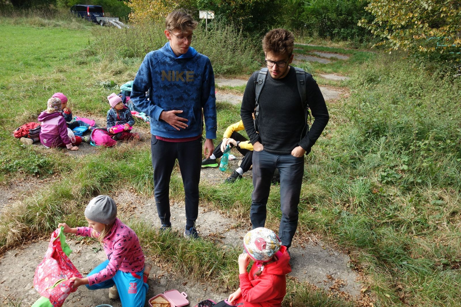 Ještě než jsme opustili Mariánské údolí, zahlédli jsme čirou náhodou dvě paní na koních, což děti značně fascinovalo. Když kolem nás projížděly, všimly si jak se na ně malí skautící nadšeně dívají, sesedly z koní a dovolily dětem, aby si je pohladily. Chudáky koníky jsme zdrželi aspoň na pět minut. Cesta zpátky rychle ubíhala a tak jsme mohli zvolnit, více si užívat krajiny. Opět jsme na pauzu zastavili v Podolí, kde se dojedly poslední zbytky svačin, všichni se napili a s přihlédnutím na pár stížností na bolavé nohy jsme pokračovali do Bedřichovic. Tam jsme už věděli, že máme dost času, takže jsme si naposledy sedli a napili se. Ač unavení, tak stejně dlouho v klidu nevydrželi, takže jsme po chvíli vyšli na finální část naší cesty - konečně na boudu. Při posledních pár stech metrech, které jsou slušně do kopce, už všichni vypadali pěkně unavení. Velkým překvapením pro nás vedoucí bylo, že po pár minutách v klidu se děti opět rozutekly po základně. Kdo ví kde tu energii vzali.