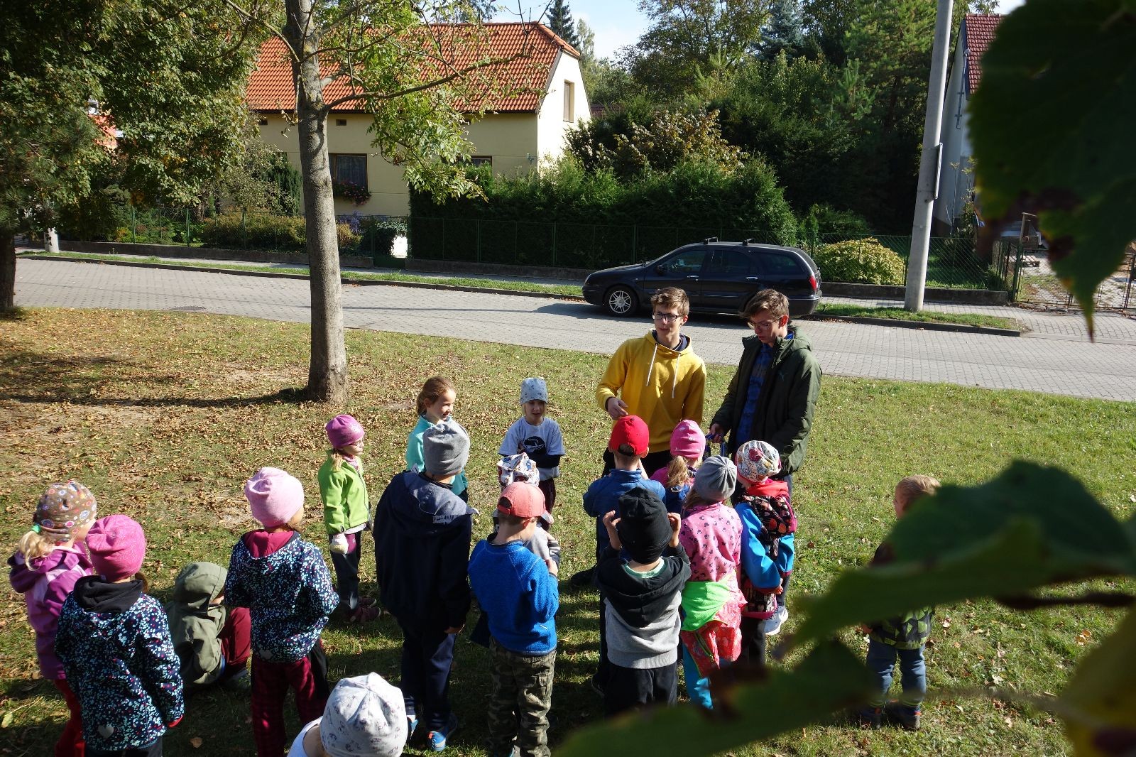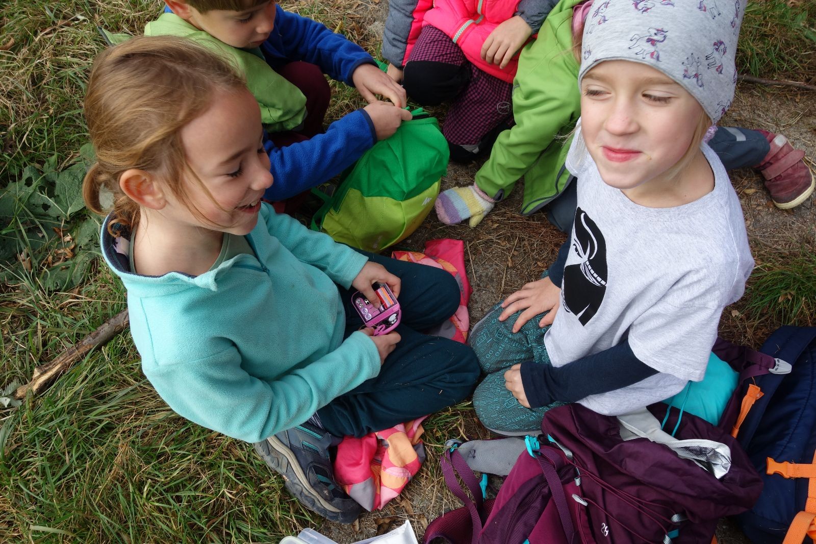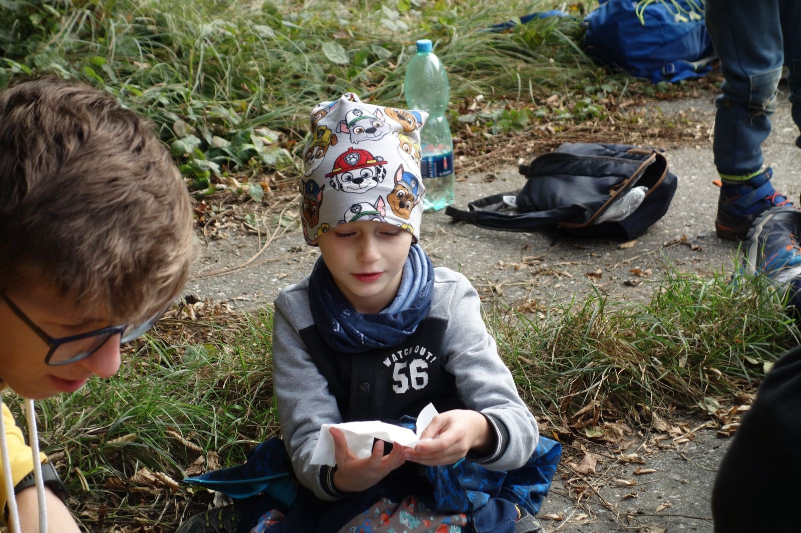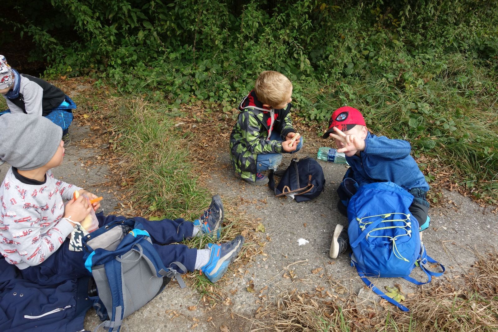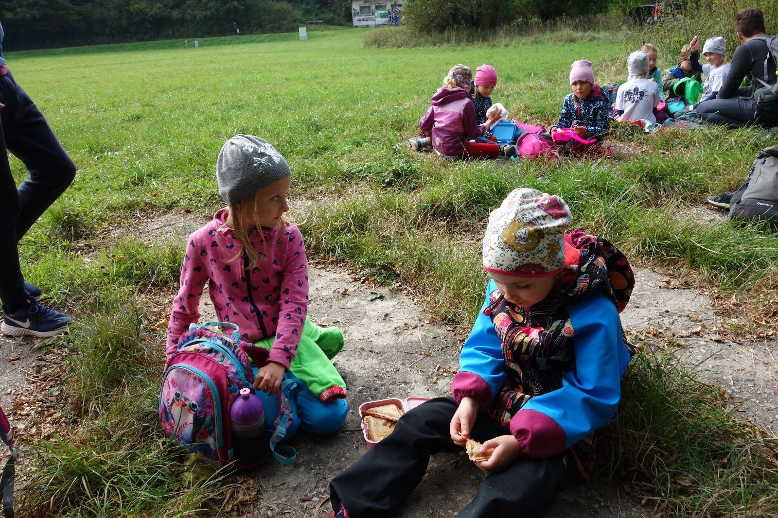 Ještě než jsme opustili Mariánské údolí, zahlédli jsme čirou náhodou dvě paní na koních, což děti značně fascinovalo. Když kolem nás projížděly, všimly si jak se na ně malí skautící nadšeně dívají, sesedly z koní a dovolily dětem, aby si je pohladily. Chudáky koníky jsme zdrželi aspoň na pět minut. Cesta zpátky rychle ubíhala a tak jsme mohli zvolnit, více si užívat krajiny. Opět jsme na pauzu zastavili v Podolí, kde se dojedly poslední zbytky svačin, všichni se napili a s přihlédnutím na pár stížností na bolavé nohy jsme pokračovali do Bedřichovic. Tam jsme už věděli, že máme dost času, takže jsme si naposledy sedli a napili se. Ač unavení, tak stejně dlouho v klidu nevydrželi, takže jsme po chvíli vyšli na finální část naší cesty - konečně na boudu. Při posledních pár stech metrech, které jsou slušně do kopce, už všichni vypadali pěkně unavení. Velkým překvapením pro nás vedoucí bylo, že po pár minutách v klidu se děti opět rozutekly po základně. Kdo ví kde tu energii vzali.