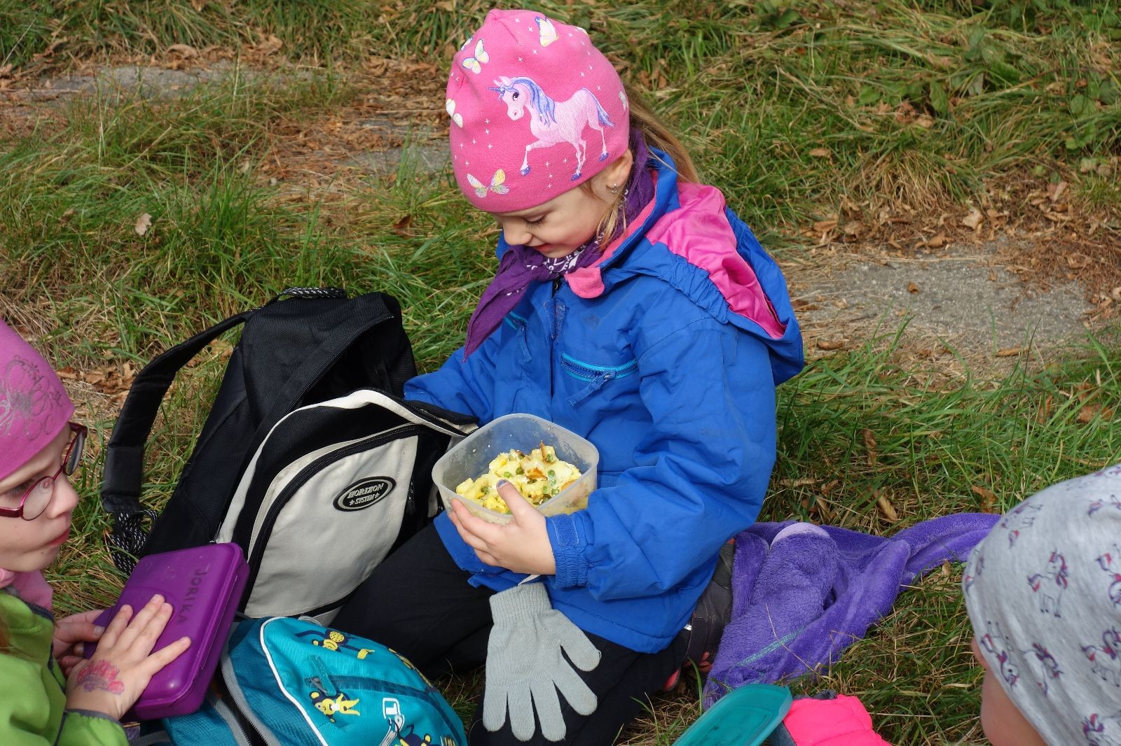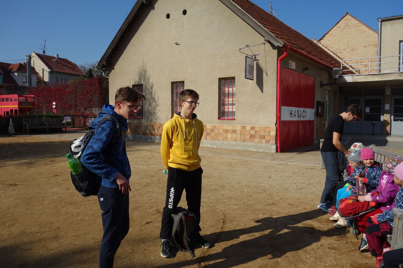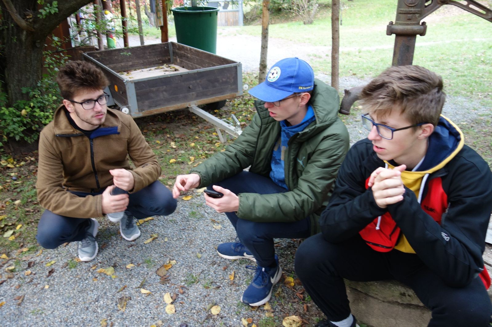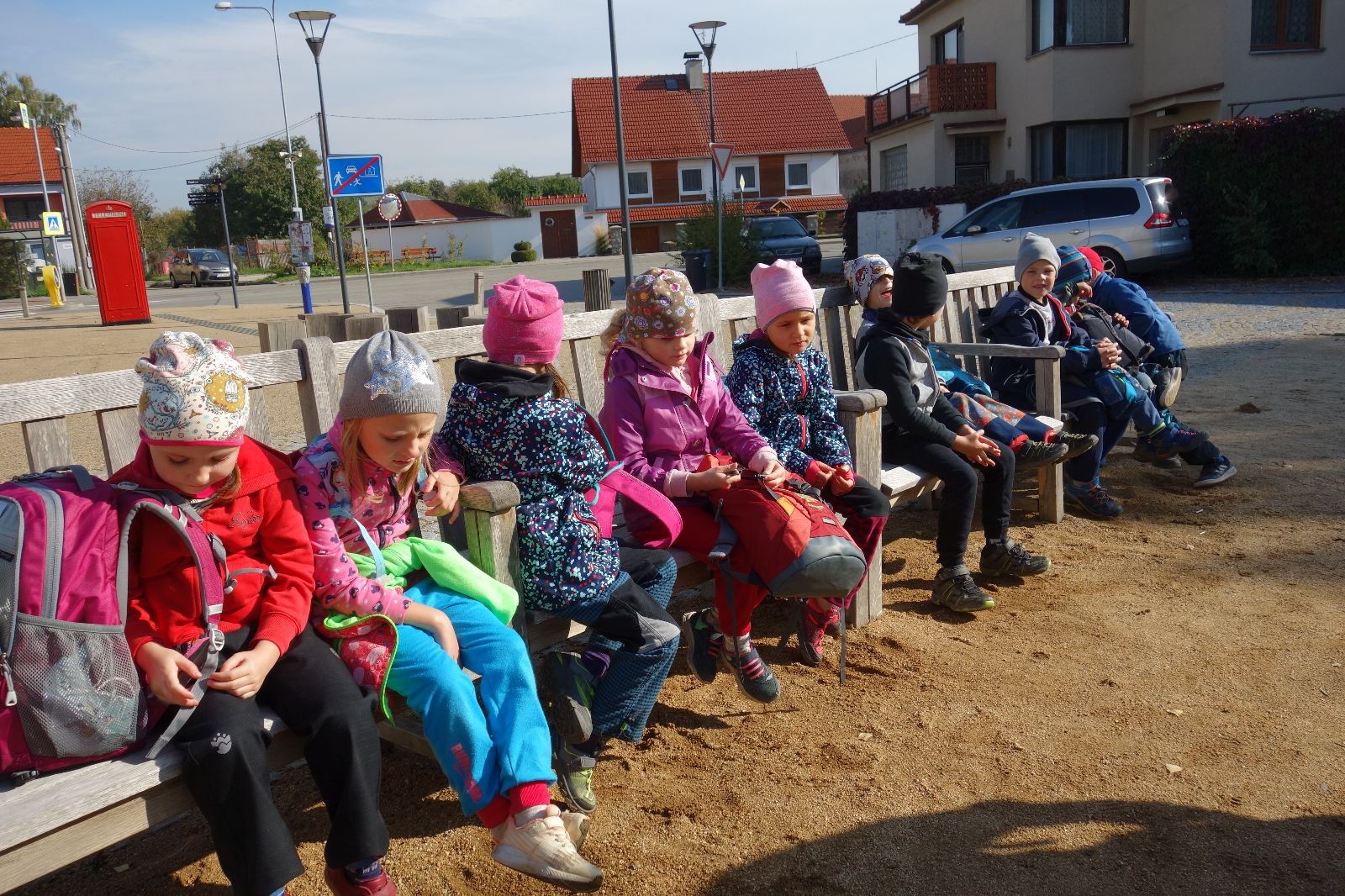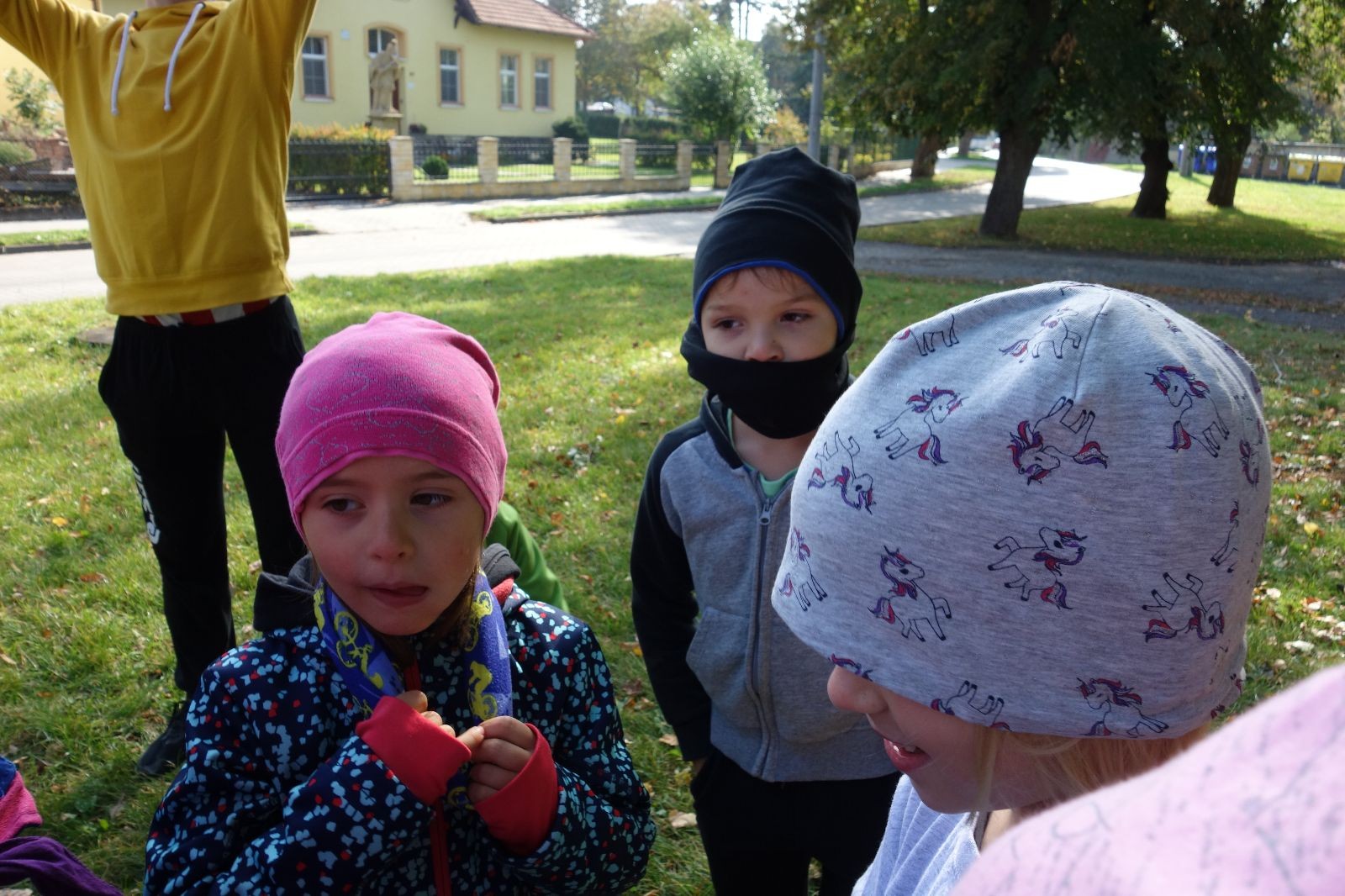 Ještě než jsme opustili Mariánské údolí, zahlédli jsme čirou náhodou dvě paní na koních, což děti značně fascinovalo. Když kolem nás projížděly, všimly si jak se na ně malí skautící nadšeně dívají, sesedly z koní a dovolily dětem, aby si je pohladily. Chudáky koníky jsme zdrželi aspoň na pět minut. Cesta zpátky rychle ubíhala a tak jsme mohli zvolnit, více si užívat krajiny. Opět jsme na pauzu zastavili v Podolí, kde se dojedly poslední zbytky svačin, všichni se napili a s přihlédnutím na pár stížností na bolavé nohy jsme pokračovali do Bedřichovic. Tam jsme už věděli, že máme dost času, takže jsme si naposledy sedli a napili se. Ač unavení, tak stejně dlouho v klidu nevydrželi, takže jsme po chvíli vyšli na finální část naší cesty - konečně na boudu. Při posledních pár stech metrech, které jsou slušně do kopce, už všichni vypadali pěkně unavení. Velkým překvapením pro nás vedoucí bylo, že po pár minutách v klidu se děti opět rozutekly po základně. Kdo ví kde tu energii vzali.