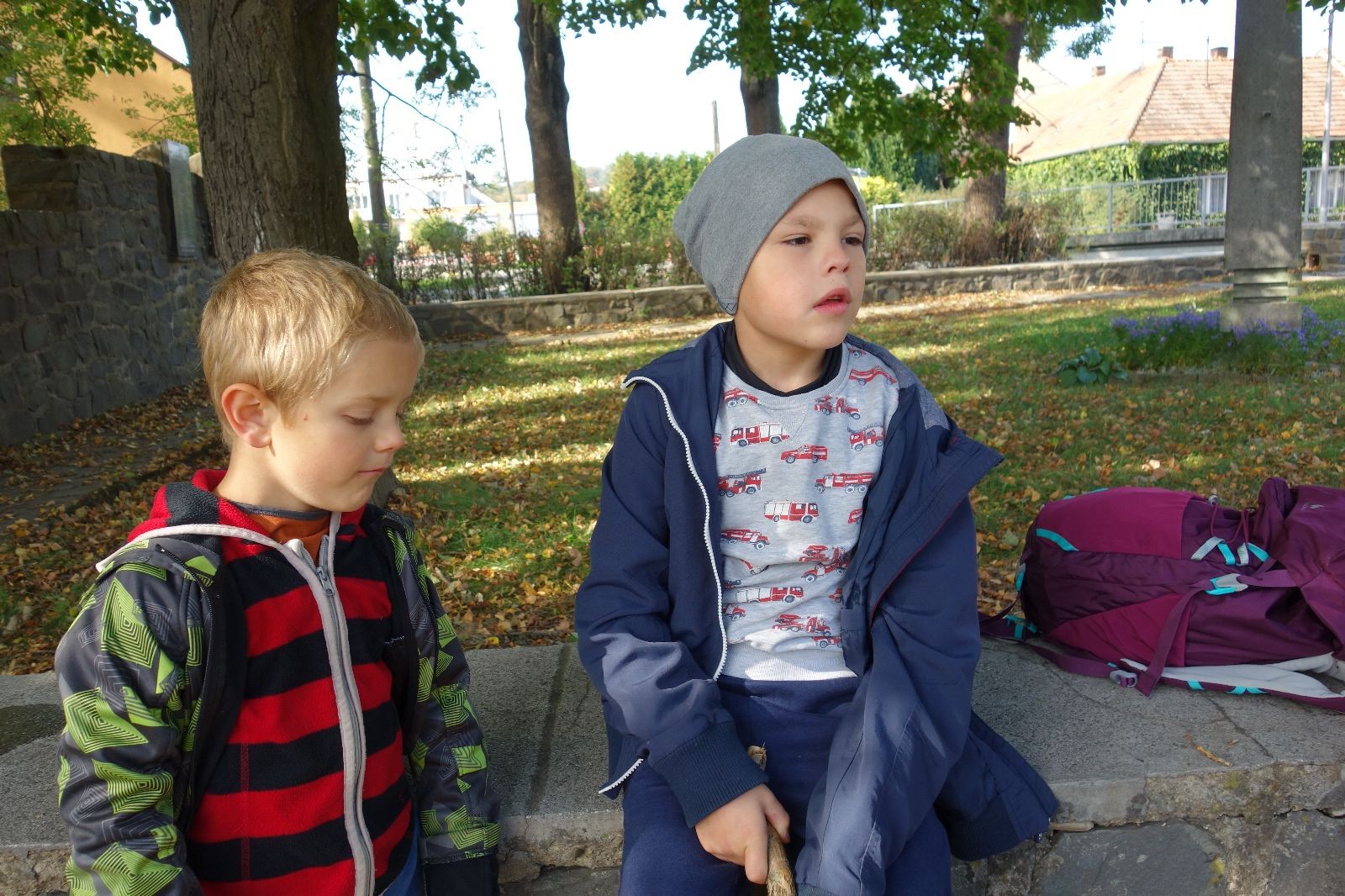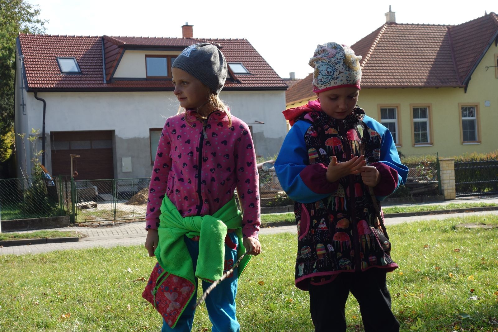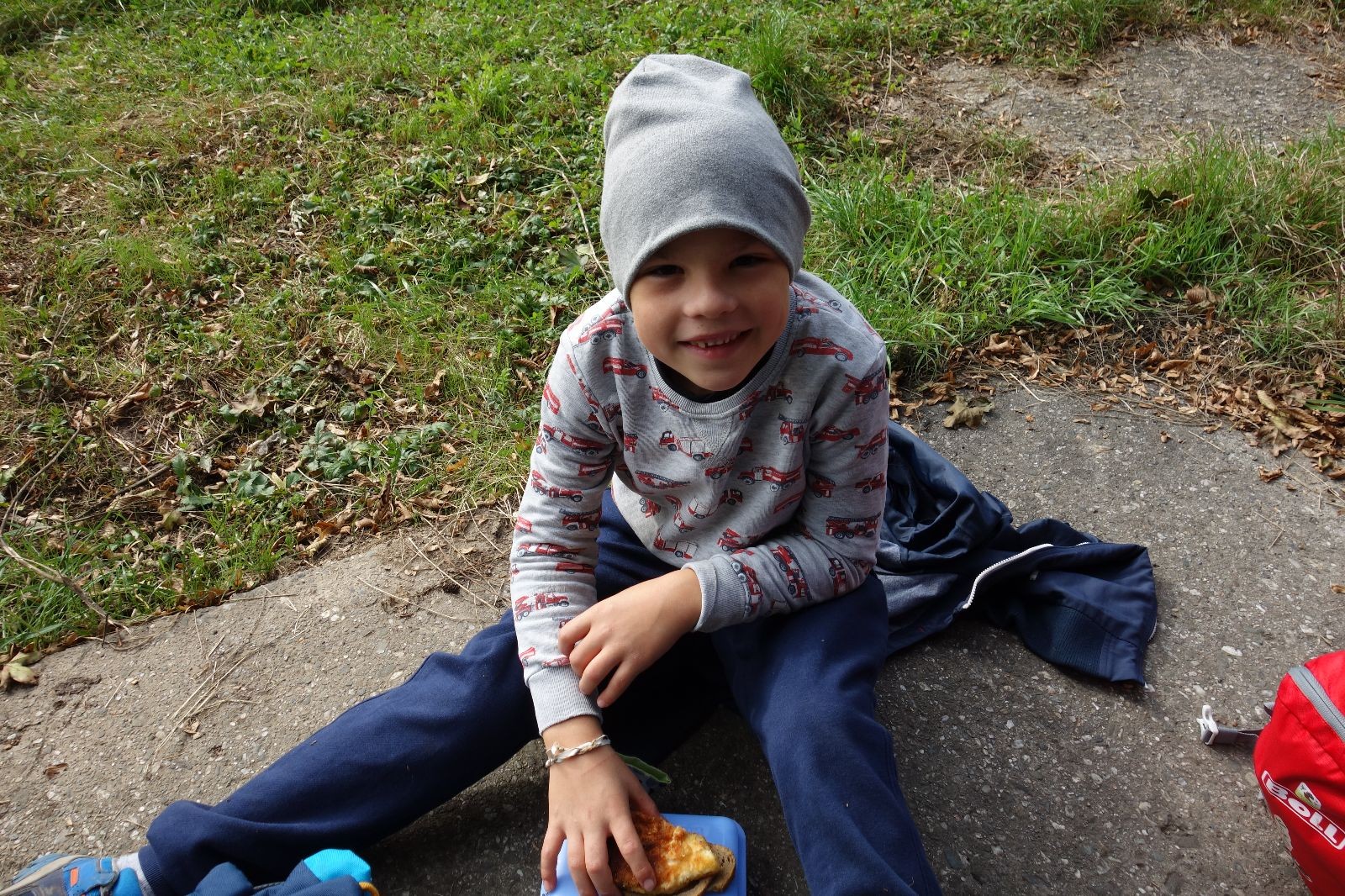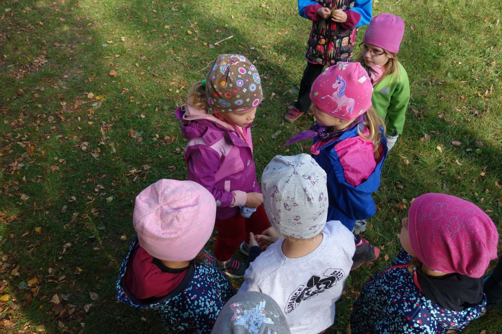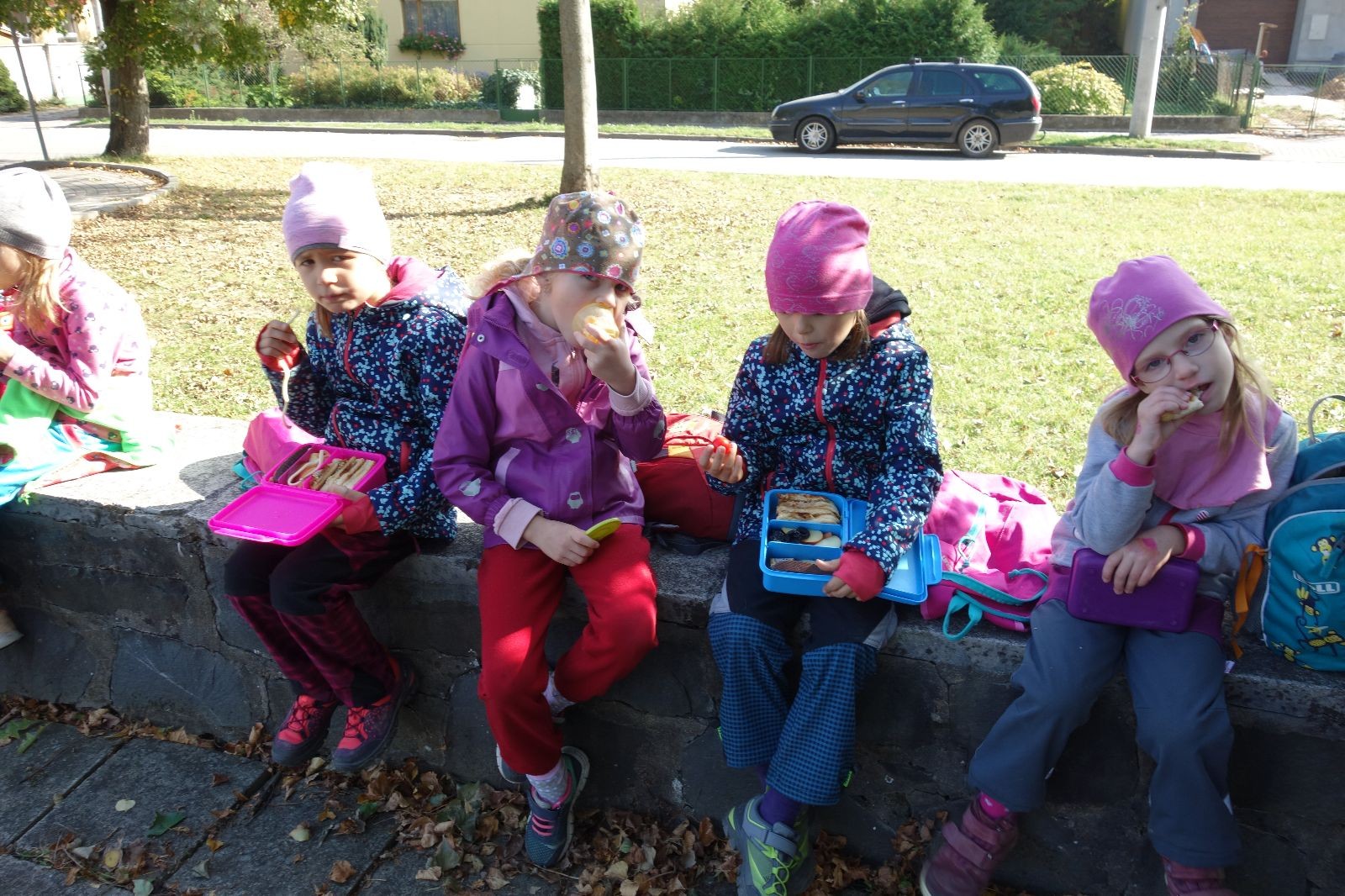 Ještě než jsme opustili Mariánské údolí, zahlédli jsme čirou náhodou dvě paní na koních, což děti značně fascinovalo. Když kolem nás projížděly, všimly si jak se na ně malí skautící nadšeně dívají, sesedly z koní a dovolily dětem, aby si je pohladily. Chudáky koníky jsme zdrželi aspoň na pět minut. Cesta zpátky rychle ubíhala a tak jsme mohli zvolnit, více si užívat krajiny. Opět jsme na pauzu zastavili v Podolí, kde se dojedly poslední zbytky svačin, všichni se napili a s přihlédnutím na pár stížností na bolavé nohy jsme pokračovali do Bedřichovic. Tam jsme už věděli, že máme dost času, takže jsme si naposledy sedli a napili se. Ač unavení, tak stejně dlouho v klidu nevydrželi, takže jsme po chvíli vyšli na finální část naší cesty - konečně na boudu. Při posledních pár stech metrech, které jsou slušně do kopce, už všichni vypadali pěkně unavení. Velkým překvapením pro nás vedoucí bylo, že po pár minutách v klidu se děti opět rozutekly po základně. Kdo ví kde tu energii vzali.