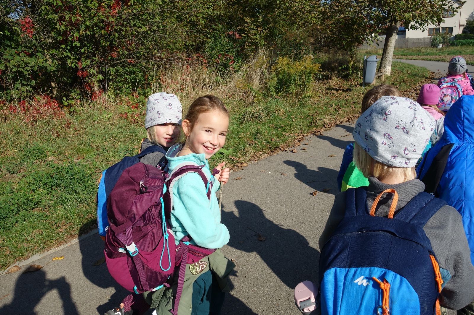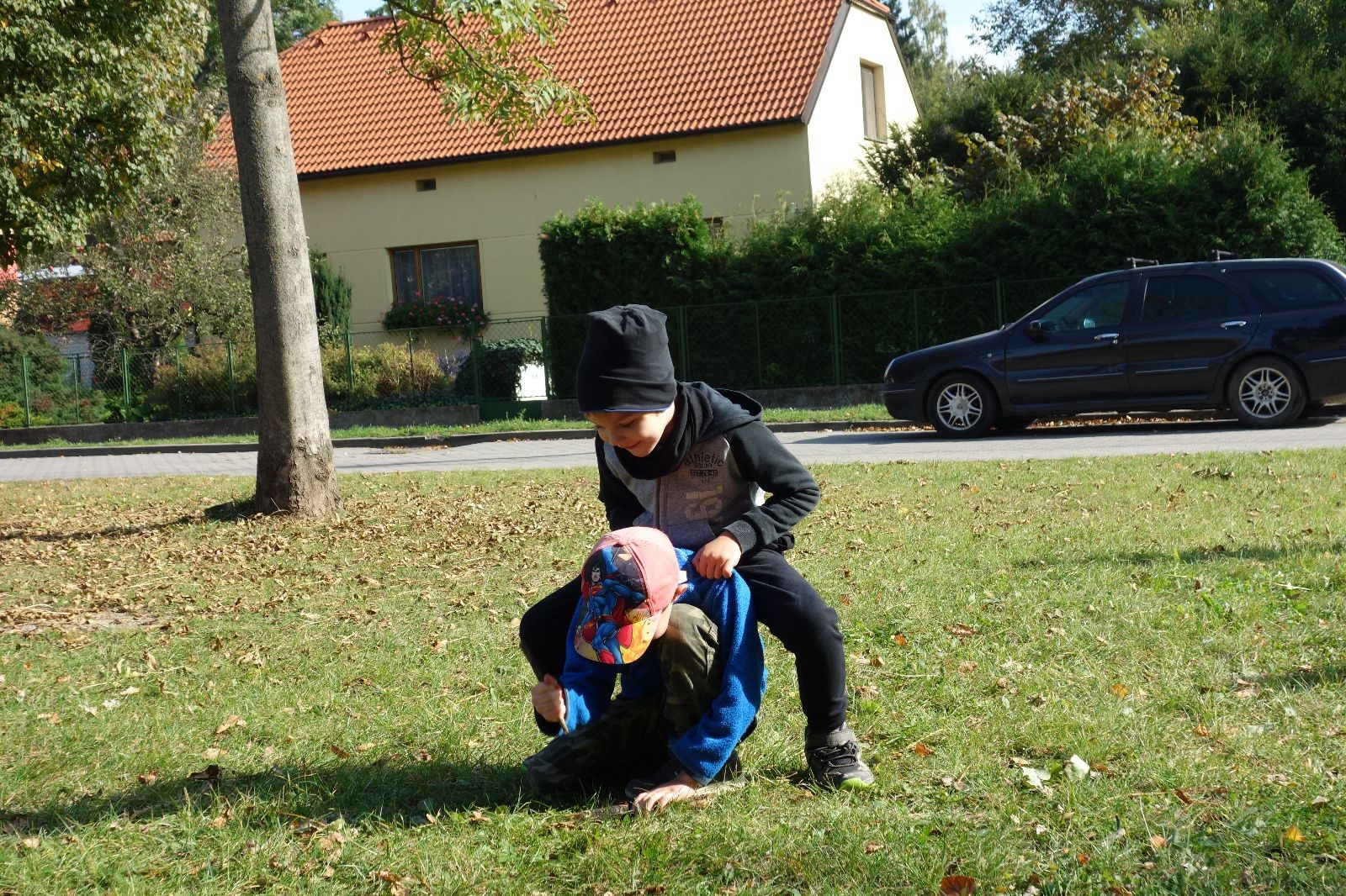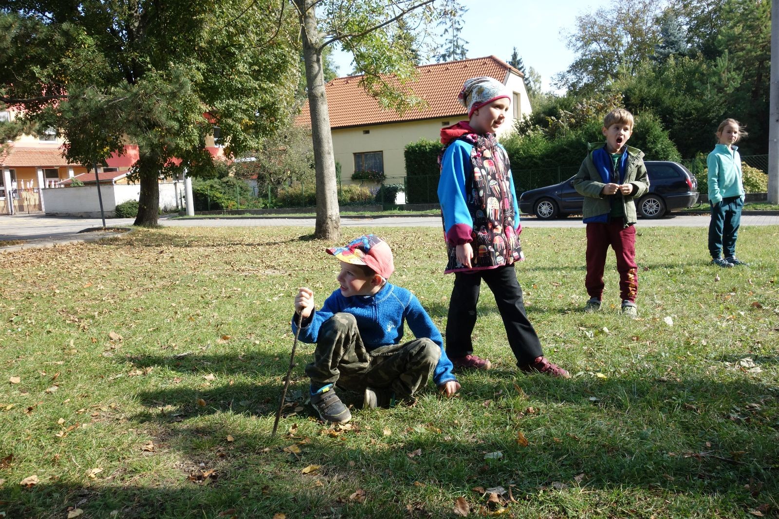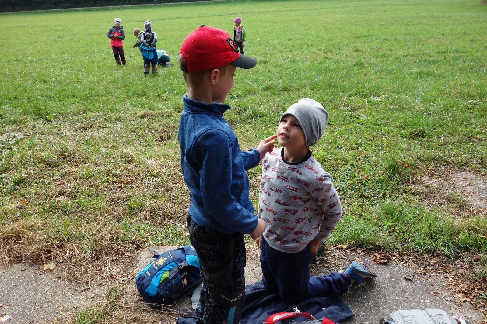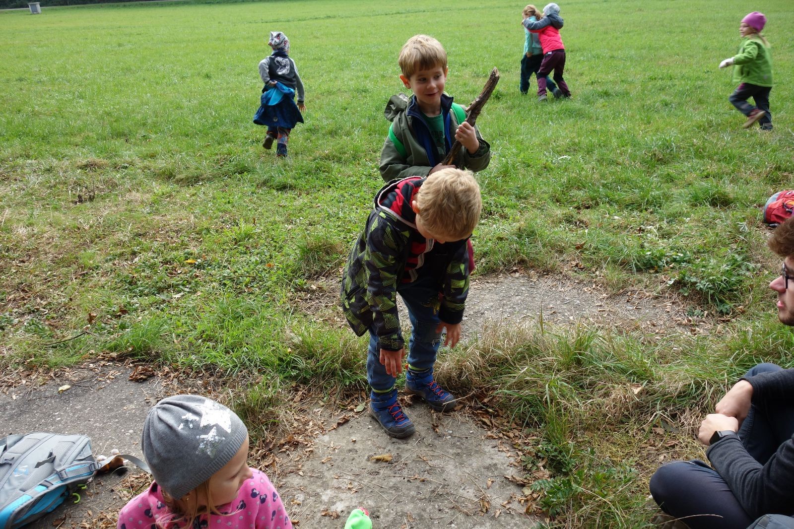 Ještě než jsme opustili Mariánské údolí, zahlédli jsme čirou náhodou dvě paní na koních, což děti značně fascinovalo. Když kolem nás projížděly, všimly si jak se na ně malí skautící nadšeně dívají, sesedly z koní a dovolily dětem, aby si je pohladily. Chudáky koníky jsme zdrželi aspoň na pět minut. Cesta zpátky rychle ubíhala a tak jsme mohli zvolnit, více si užívat krajiny. Opět jsme na pauzu zastavili v Podolí, kde se dojedly poslední zbytky svačin, všichni se napili a s přihlédnutím na pár stížností na bolavé nohy jsme pokračovali do Bedřichovic. Tam jsme už věděli, že máme dost času, takže jsme si naposledy sedli a napili se. Ač unavení, tak stejně dlouho v klidu nevydrželi, takže jsme po chvíli vyšli na finální část naší cesty - konečně na boudu. Při posledních pár stech metrech, které jsou slušně do kopce, už všichni vypadali pěkně unavení. Velkým překvapením pro nás vedoucí bylo, že po pár minutách v klidu se děti opět rozutekly po základně. Kdo ví kde tu energii vzali.
