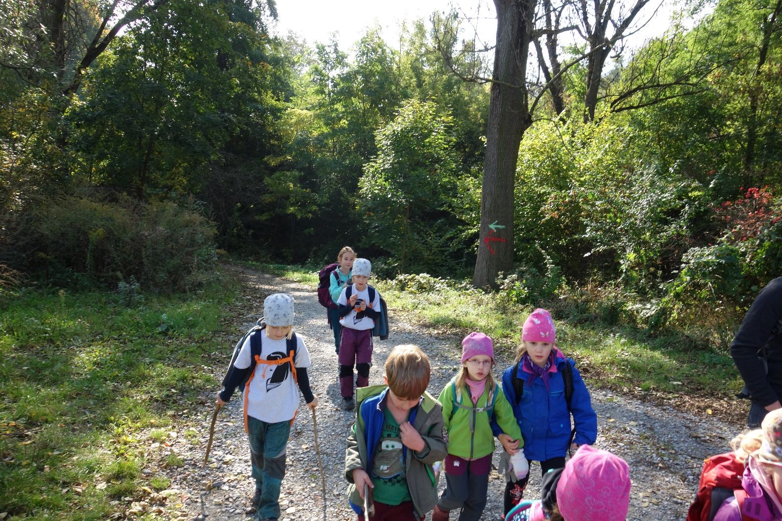 Jak jsme psali, tak se také stalo a v 10 hodin jsme již na boudě měli 17 lachtanů připravených k odchodu. Jako poslední dorazil Korádo, vedoucí nás tygrů, který nám přišel pomoct a zároveň dohlédnout na to, že vše proběhne v pořádku, za což mu moc děkujeme. Každopádně jsme po krátkém úvodu a organizaci "pochodu" vyrazili směr Mariánské údolí.