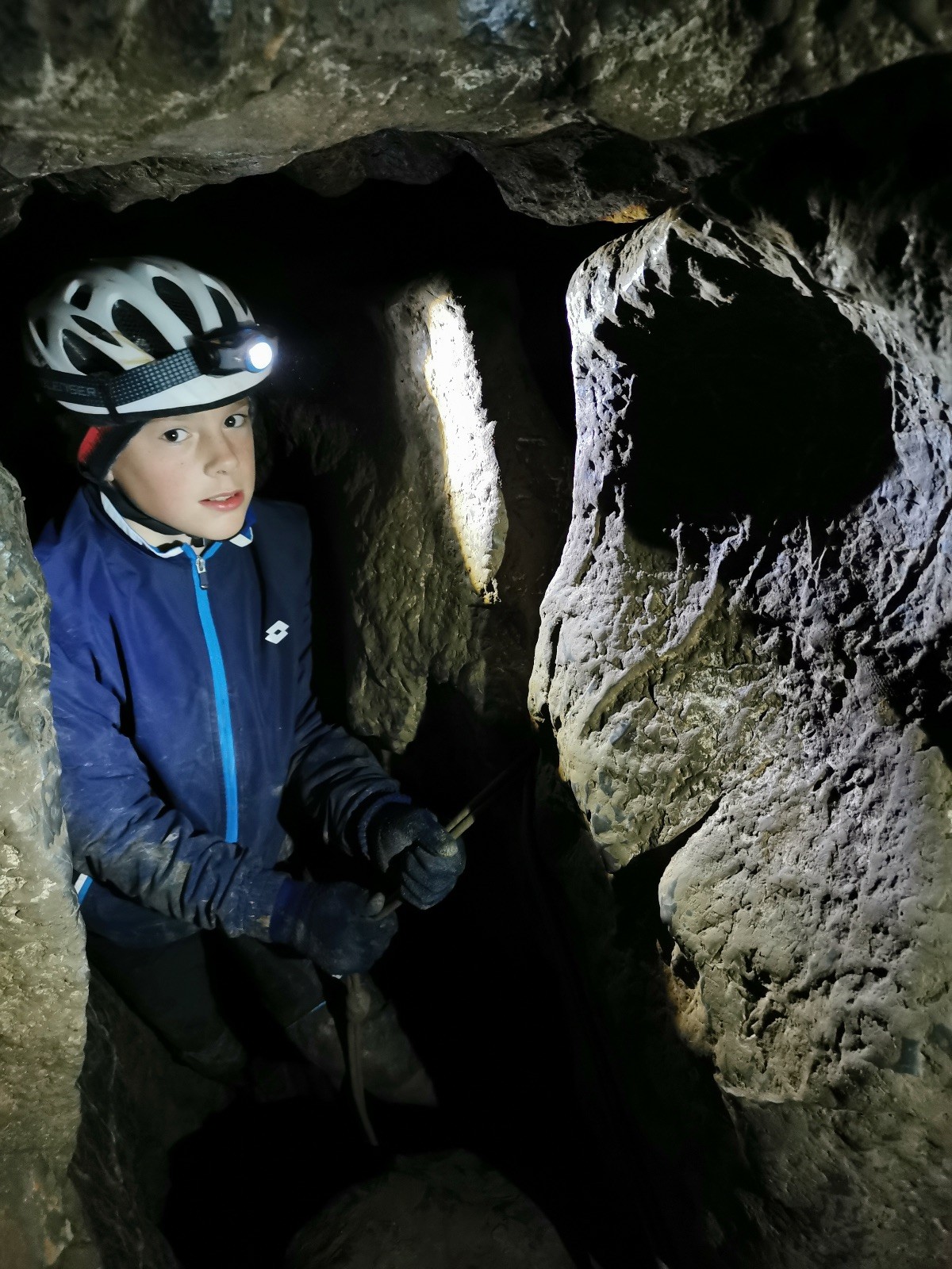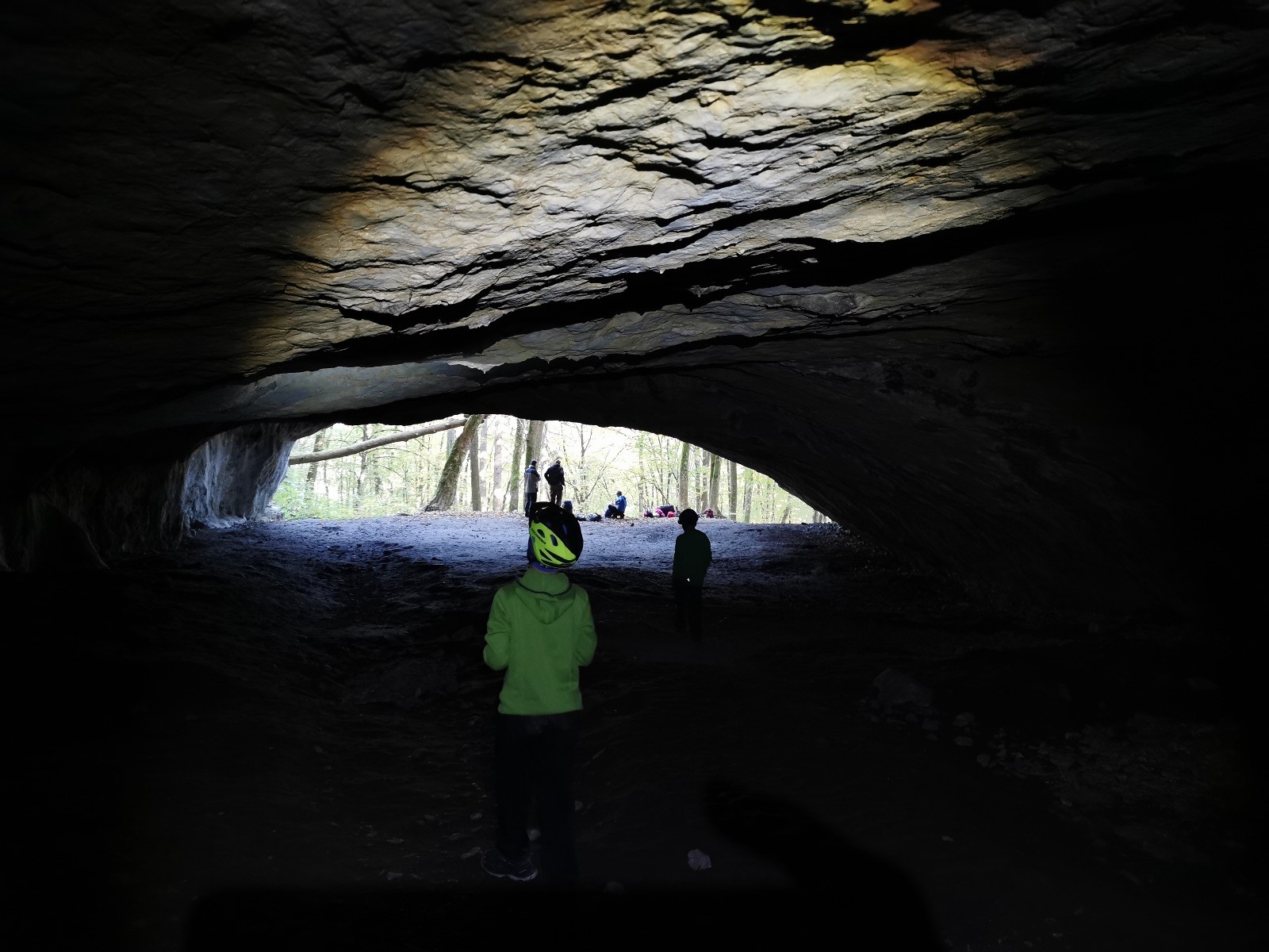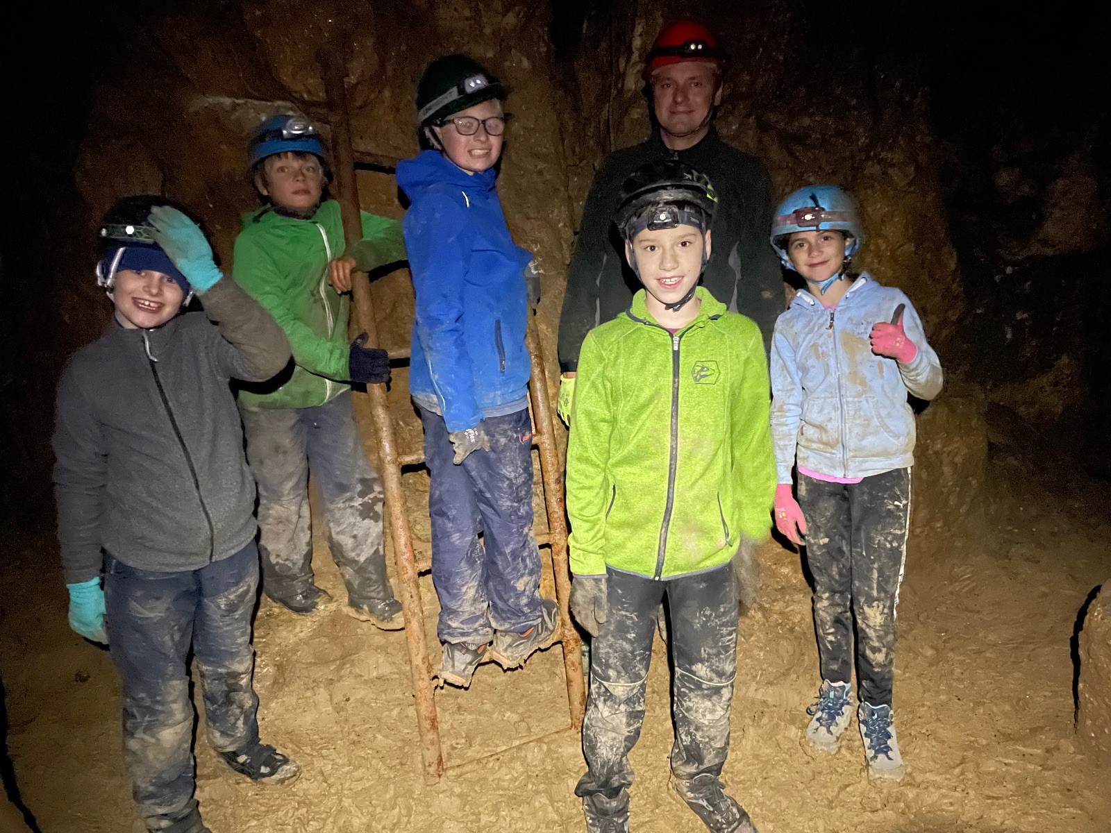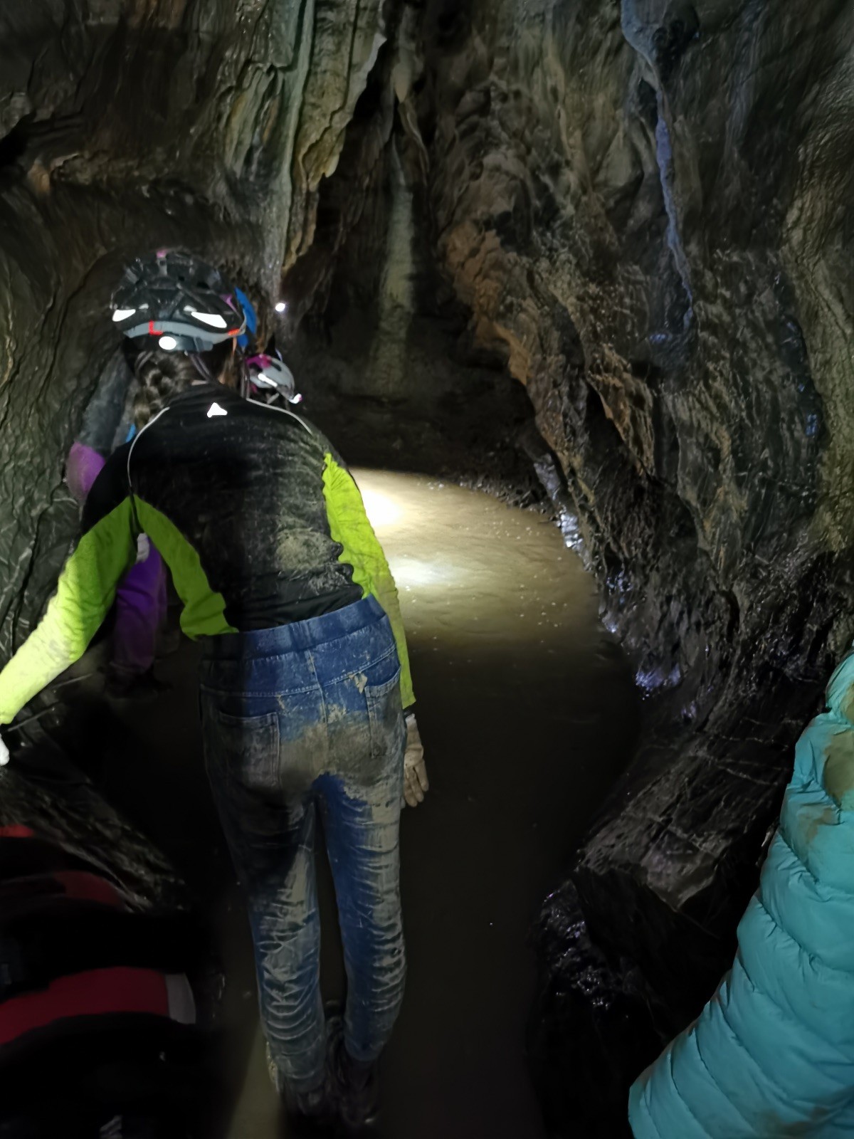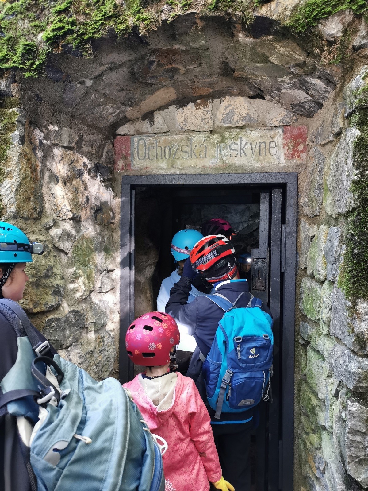 Dvě hodiny utekly jak voda, venku jsme doplnili energii a přesunuli se přes údolíčko do další jeskyně, zvaná Netopýrka – v ní probíhá křest jeskyňářů, kteří musí za co nejrychlejší čas najít správnou cestu dolů do podzemí, kde teče potůček a přinést vodu zpět na povrch. My jsme čas neměřili, rozdělili jsme se na dvě skupiny a vyrazili do hloubi jeskyně. Přidal se k nám i Glum se synkem. Druhá skupinka se zatím posilňovala jídlem, ta se pak vystřídala s první a šla hledat vodu.