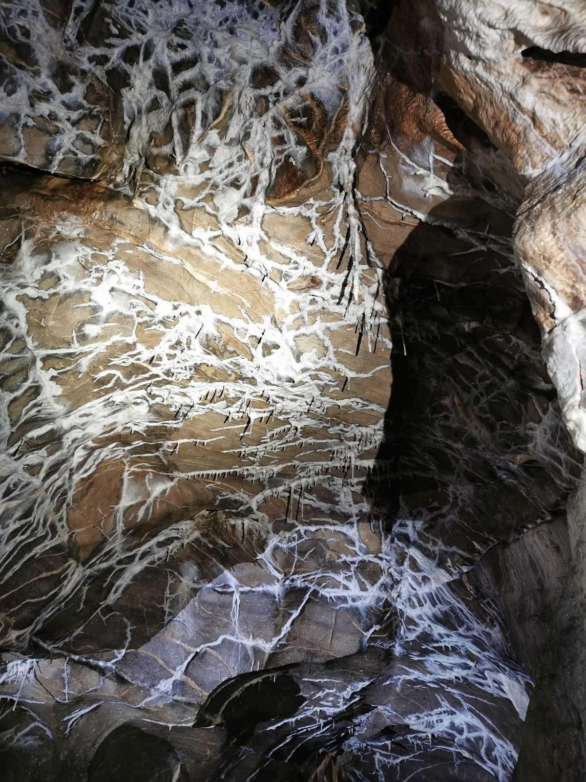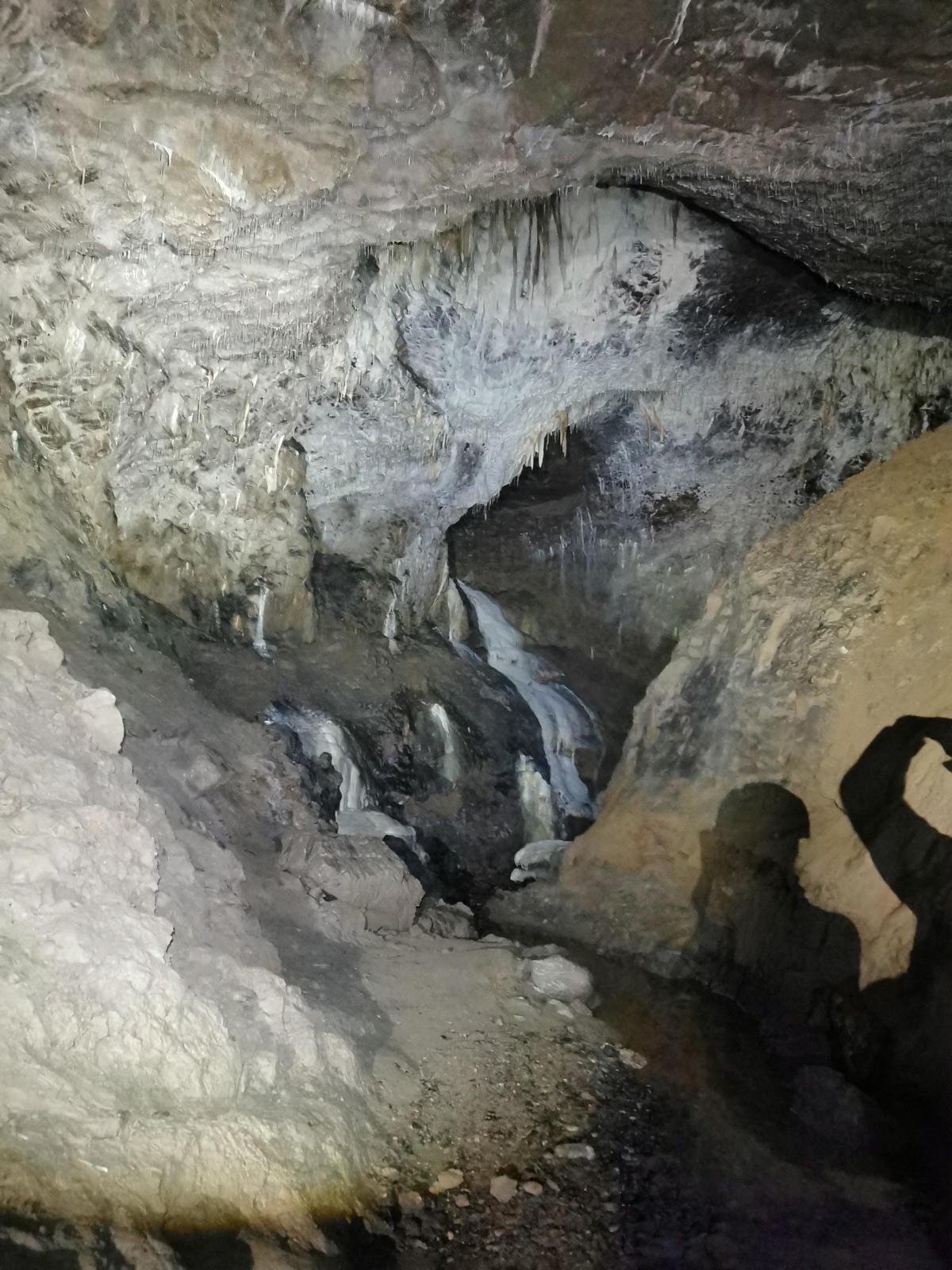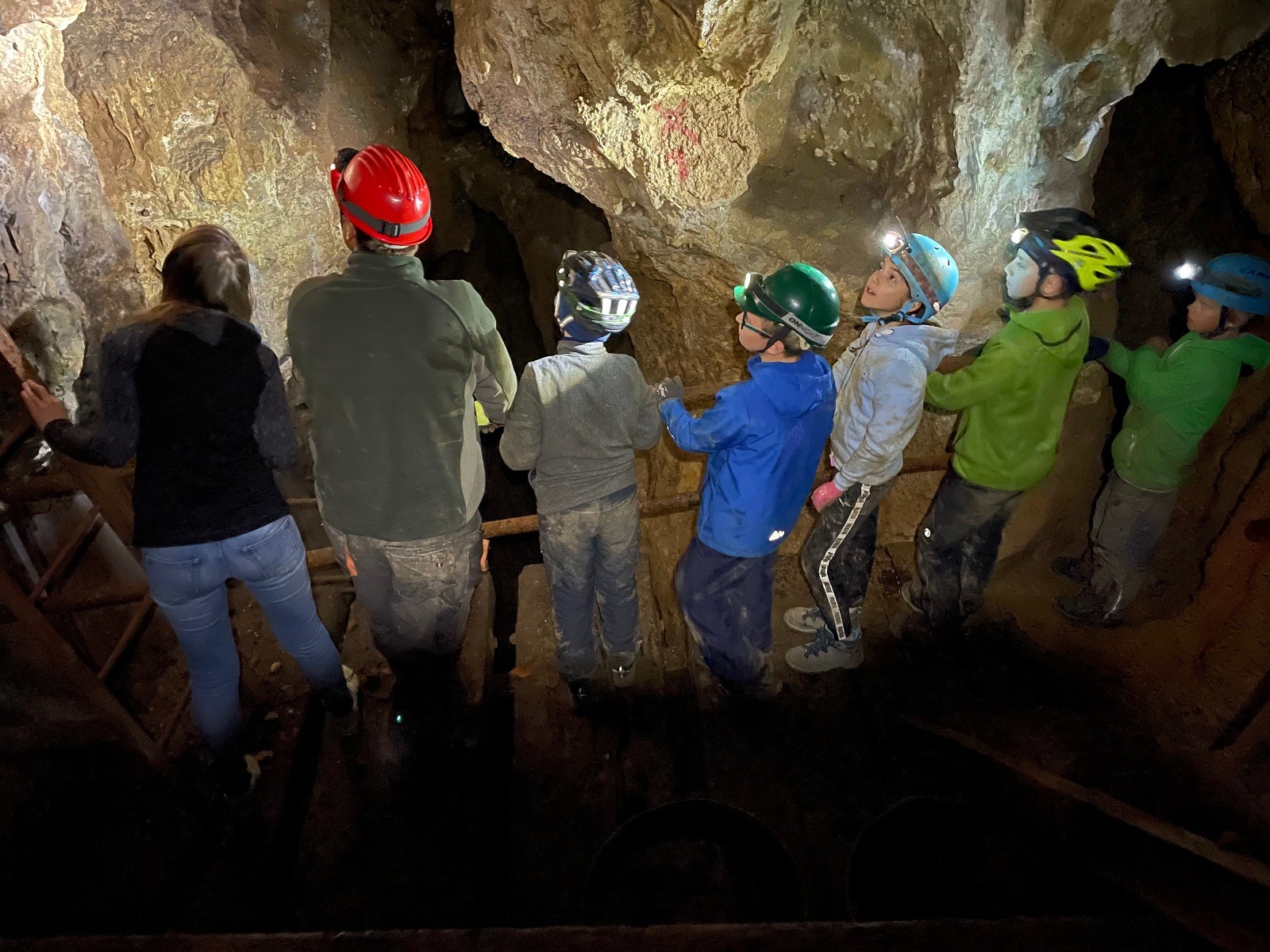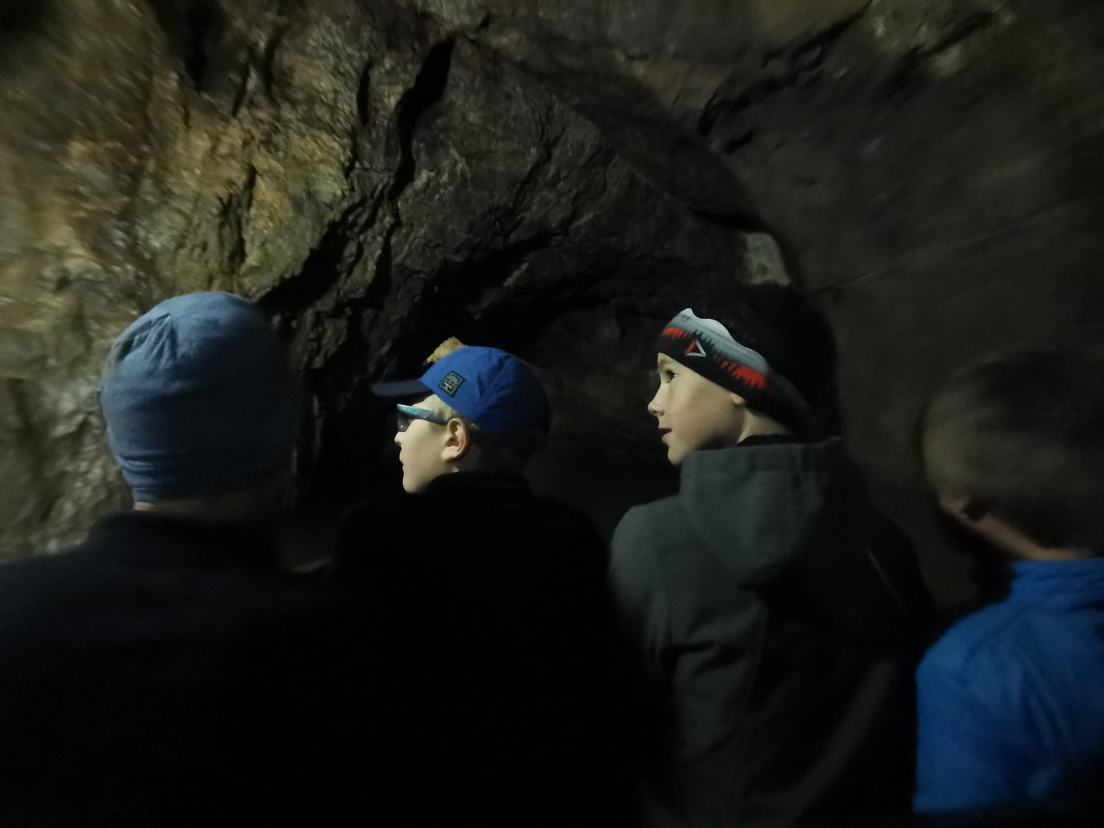 Dvě hodiny utekly jak voda, venku jsme doplnili energii a přesunuli se přes údolíčko do další jeskyně, zvaná Netopýrka – v ní probíhá křest jeskyňářů, kteří musí za co nejrychlejší čas najít správnou cestu dolů do podzemí, kde teče potůček a přinést vodu zpět na povrch. My jsme čas neměřili, rozdělili jsme se na dvě skupiny a vyrazili do hloubi jeskyně. Přidal se k nám i Glum se synkem. Druhá skupinka se zatím posilňovala jídlem, ta se pak vystřídala s první a šla hledat vodu.