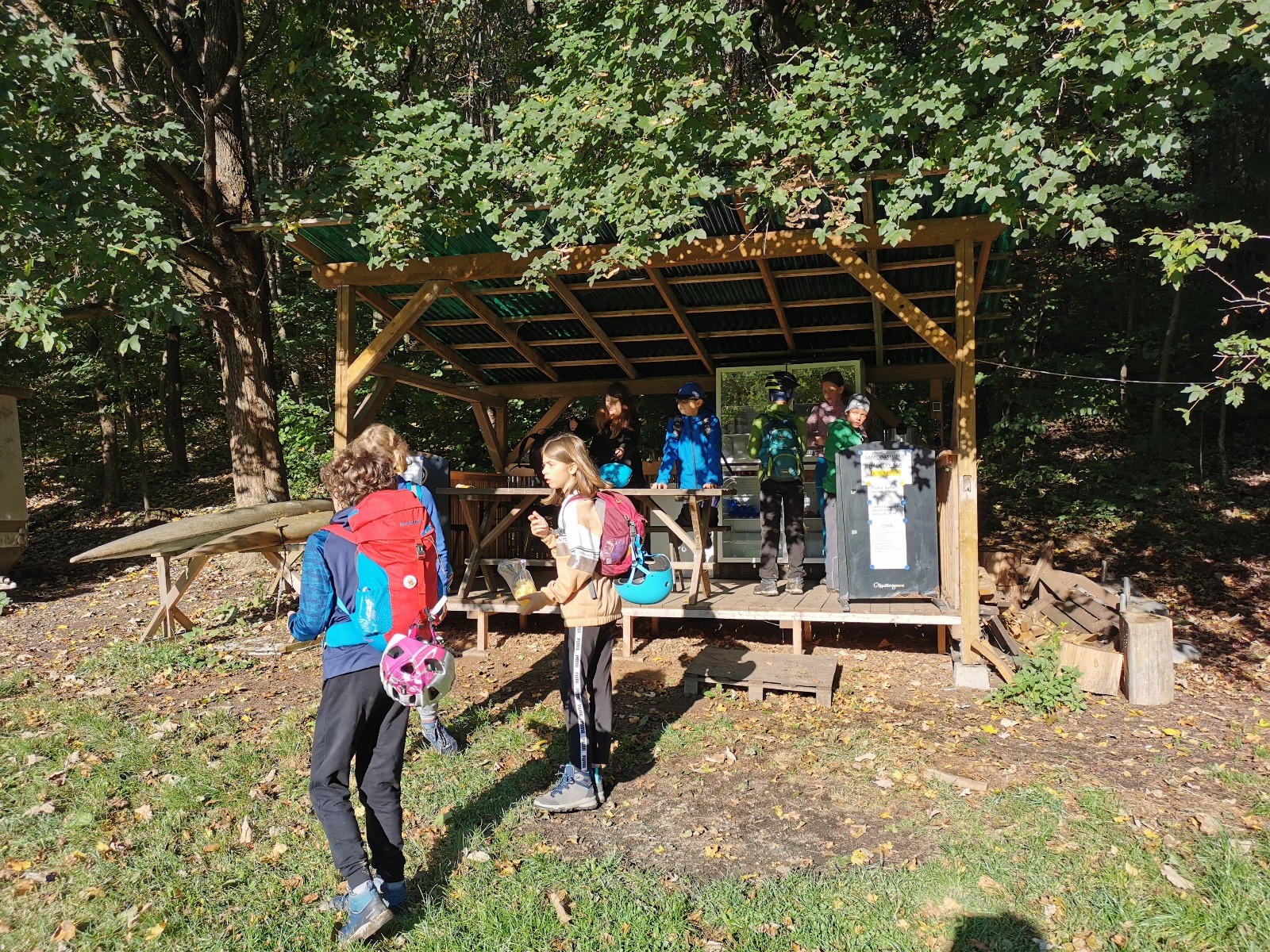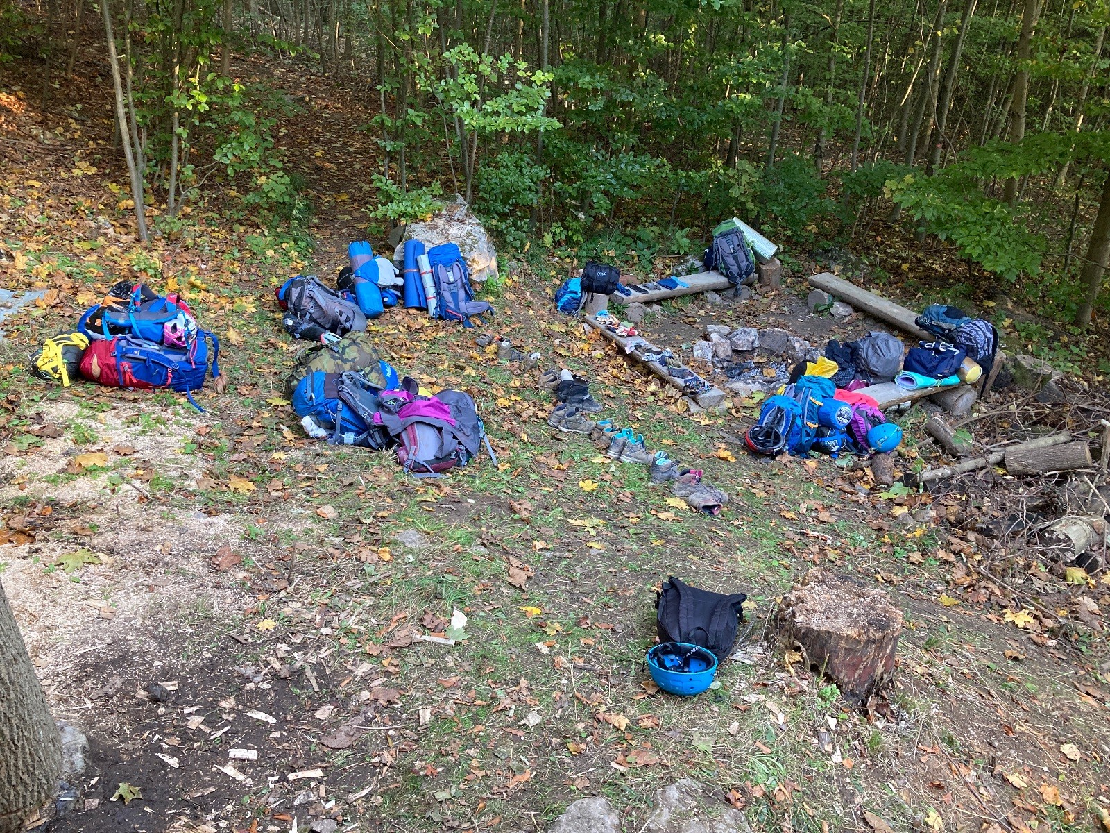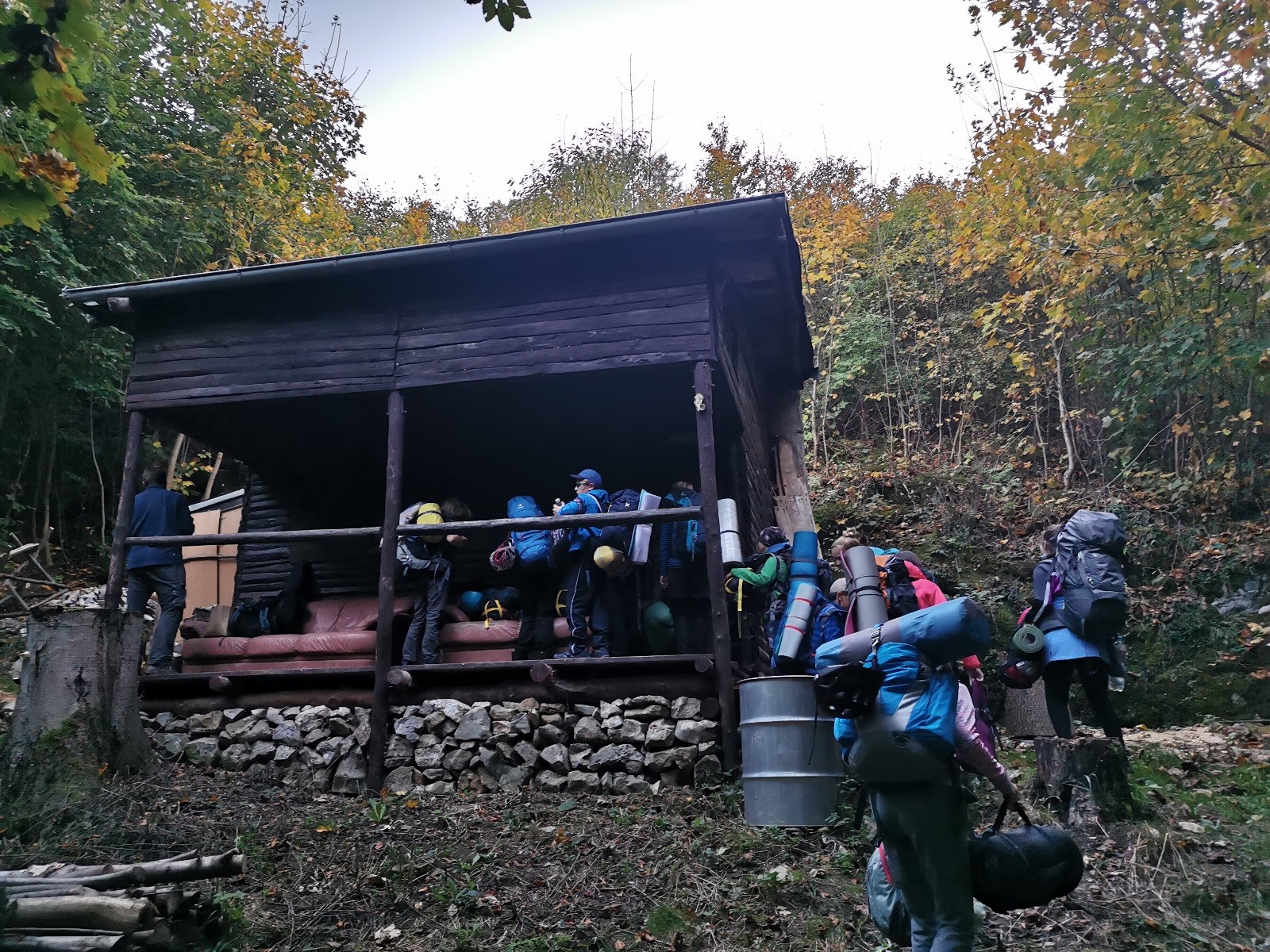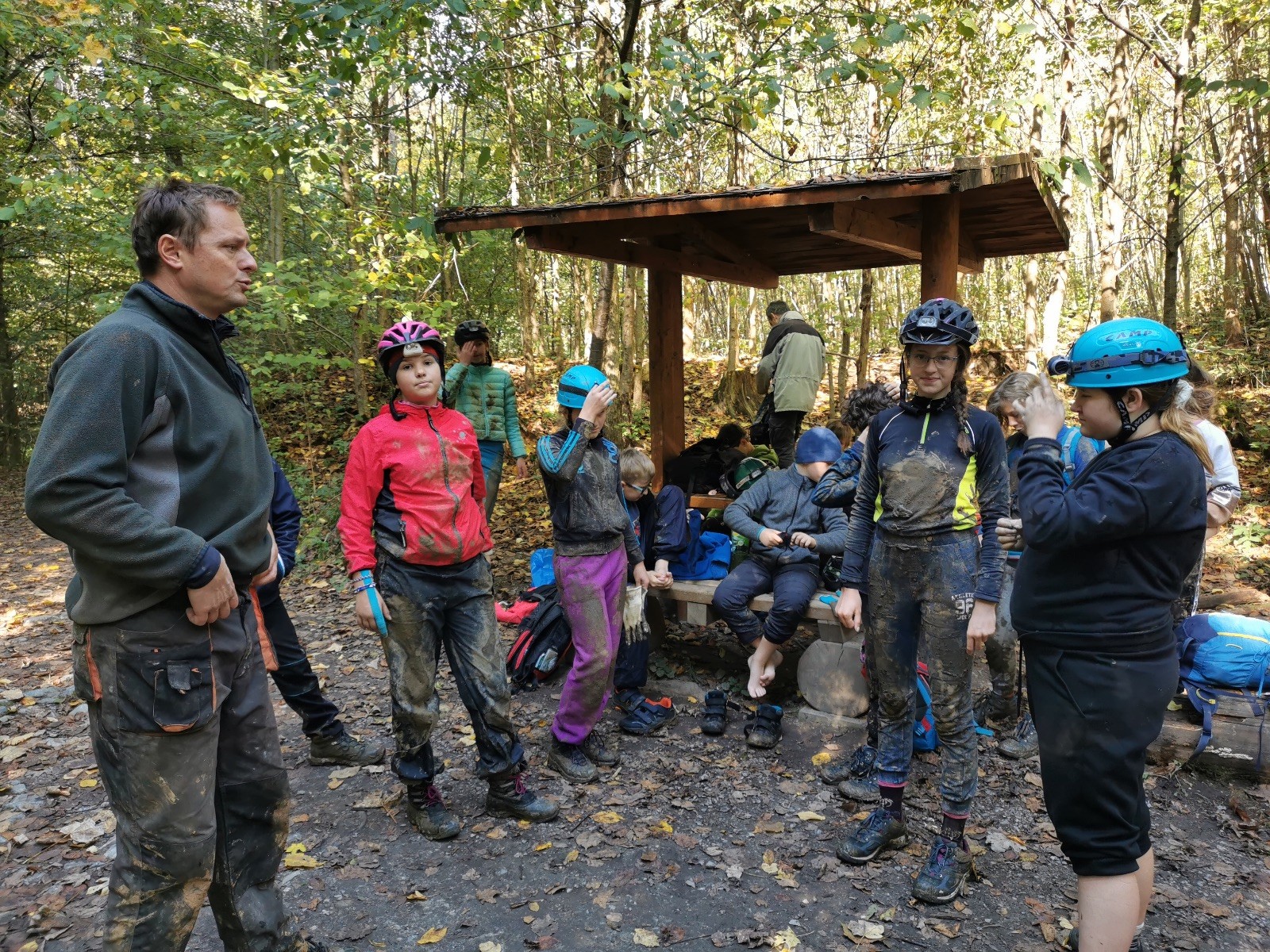 Sraz byl v pátek odpoledne u Myslivecké chaty, kde se sešlo 14 děcek (Ondra, Vojta, nováček Miki, Kuba, Filda, Sojka, Puffy, Janča, Zuzka, Paťa, Klárka, Maruška, Raďa, Barča) a spolu s nimi Lenka, Martin a já. Přemístili jsme se k obci Ochoz u Brna, k rybníku Hádek, odkud už to bylo jen kousíček na základnu jeskyňářů z Novodvorského ponoru, kteří nám na tento víkend zapůjčili jejich srub. Zatímco loni jsme bydleli na Ditrichu u jeskyňářů z Plánivské skupiny, letos jsme zakempovali ve srubu, kde nebyla ani voda, ani elektrika, a do nejbližší civilizace to bylo několik desítek minut chůze. Pro některé možná trochu hardcore a vykročení z komfortní zóny 😊