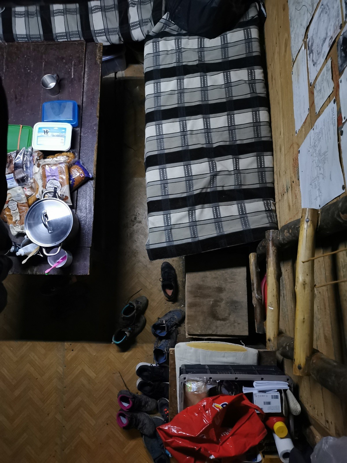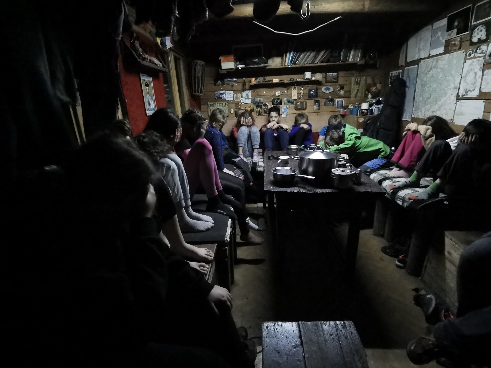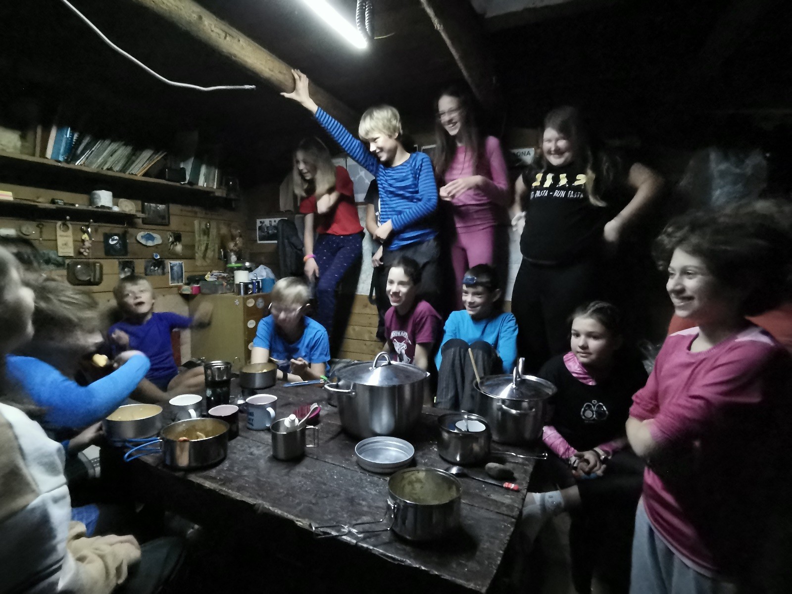 V noci jsme dole u kamen sušili mokré věci a mokré boty, někdy nad ránem nám kamna chcípla, ale to už byla stejně většina oblečení a bot suchá. Klárka si v noci zahrála na pytel brambor a Vojta zase na Sherlocka Holmese 😊