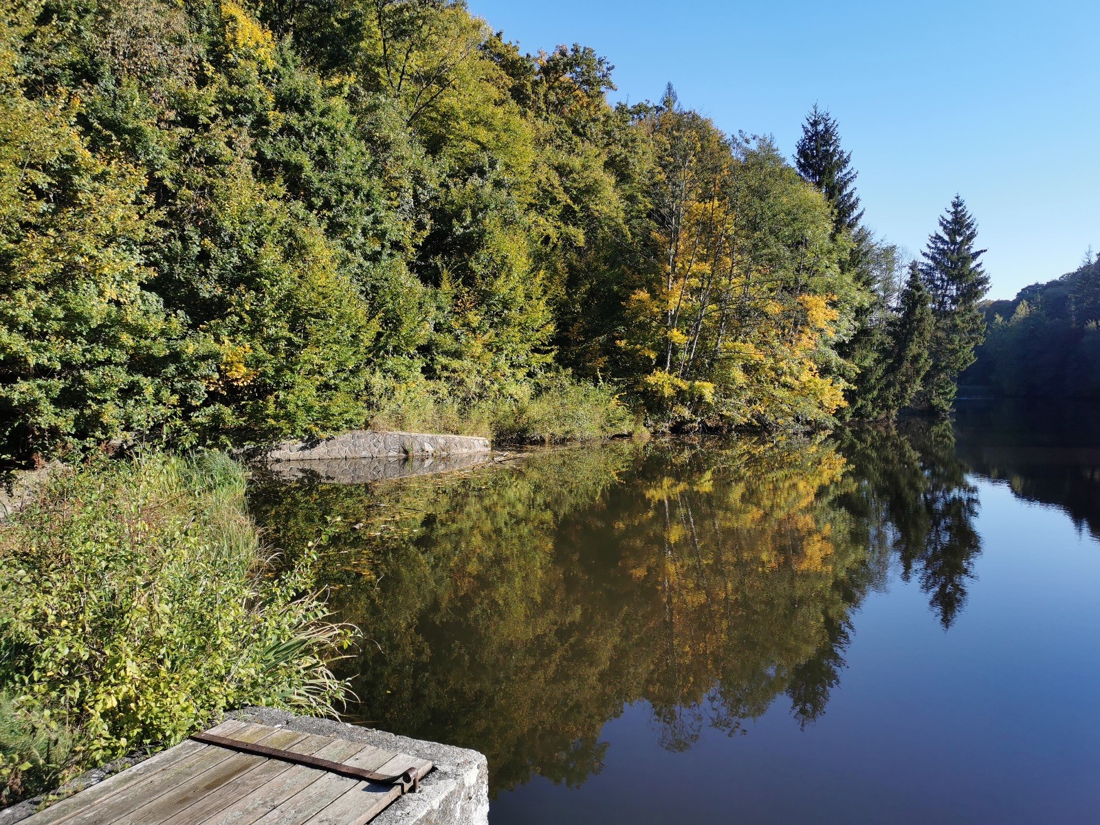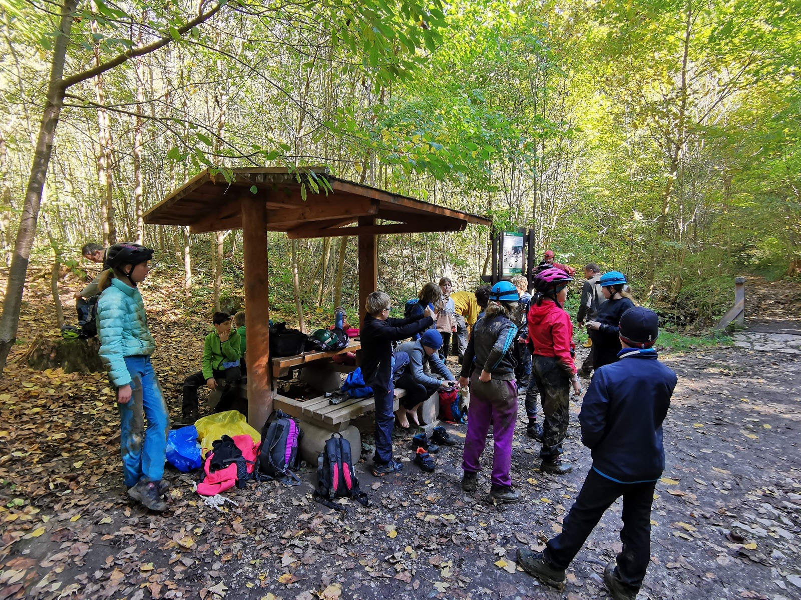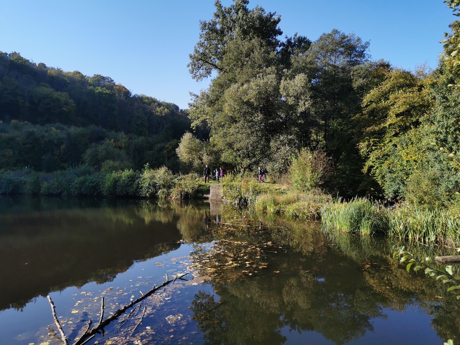 Z Netopýrky jsme zamířili na Hádek. Nikdo neprojevil chuť se koupat v podzimní vodě, tak jsme popošli až k bufetu, kde měli výbornou fazolovou polévku, kterou jsme si dali a vydali se zpět na Ponor (srub). Po cestě jsme potkali Bengiho s Klárou, kteří byli v lomu na hledání zkamenělin. Přidali se k nám na Ponor.