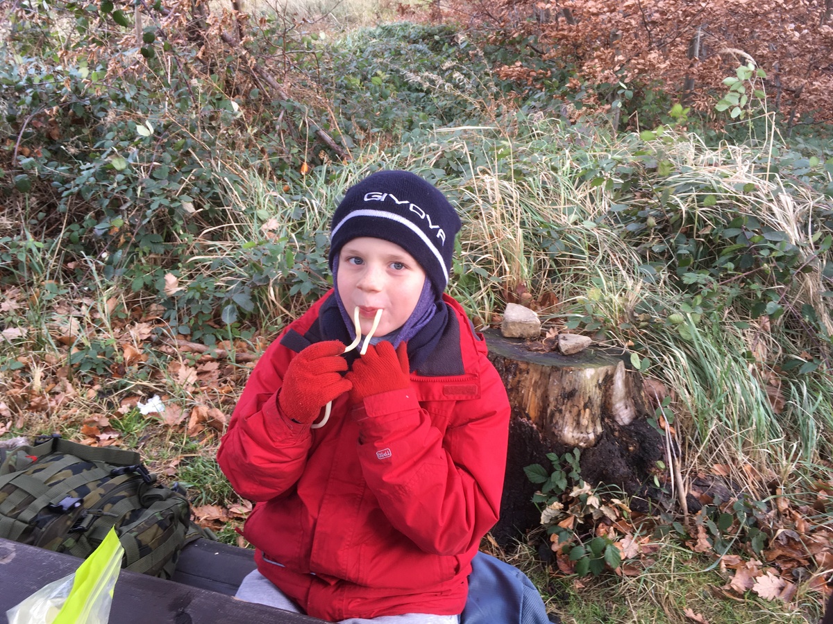 V pátek před víkendem a v sobotu před akcí zvonily telefony rodičů, omlouvajíce své děti z akce – každoroční vlna viróz dorazila. Hodinu před začátkem bylo omluveno už 10 Lišek, říkal jsem si, kolik že nás nakonec tedy bude. V 18 hodin se začaly děcka scházet a nakonec nás bylo 14 – Barča R., Vojta, Raďa, Ondrakat, Oliver, Janča, Lucka, Maruška, Bára M., Ondra, Paťa, Kryštof, Jana a moje maličkost. Úvodem jsme vyvěsili vlajku, a jelikož byla už pořádná tma, odstartovali jsme akci Hágenem. Dali jsme asi 3 kola, hra měla úspěch, ale byla docela kosa. V chatě už bylo krásně teplo, proto jsme se přesunuli dovnitř na mixle-pixle, molekuly, město-jméno. Když byli všichni zaparkovaní ve spacákách (a po vyčištěných zubech J), dali jsme písničky na přání. Ty jsme ještě proložili dvěma hrůstrašnými příběhy z knihy pro děti. Oba příběhy měly nakonec šťastné konce. Pak ještě pár písniček pro ty, kteří do této chvíle ještě neusnuli. Po nich už jen byly slyšet praskající dřeva v krbových kamnech… Ráno pršelo a fučel docela silný vítr, nicméně než jsme se nasnídali, bylo po dešti, a vítr už taky celkem ustal. Sbalili jsme si batohy na výpravu, doplnili dřevo, spacáky jsme nechali v chatě a v počtu 13 ks (Janča s ortézou nás opustila) jsme vyrazili směr Hůrky. Posunuli jsme se směrem k lomu, prošli jsme pod lesem nad kapličkou a pak vzhůru na Sedmero cest. Cestou jsme hráli bombu (proběhlo hodně kol v různých terénech), hledali jsme speciální a méně speciální věci (co do přírody nepatří, šnečí ulitu, březovku, nějaké ovoce, šišku v listnatém lese J, kousek cihly, houbu, choroše, plastové vršky, hřebíky, kus betonu, kus železa, ….). Na Sedmero cestách proběhla svačinka a vyřezávaní klacíků a lodiček. Docela tam foukalo, stáhli jsme se tedy zpět do lesa a vydali se zpět k chatě. Tam už nás čekali rodiče, dobalili jsme spacáky, karimatky, a po rozloučení se každý vydal k domovu na oběd. Hezká první startovací liščí výprava, už se těšíme na další!!! uzel
