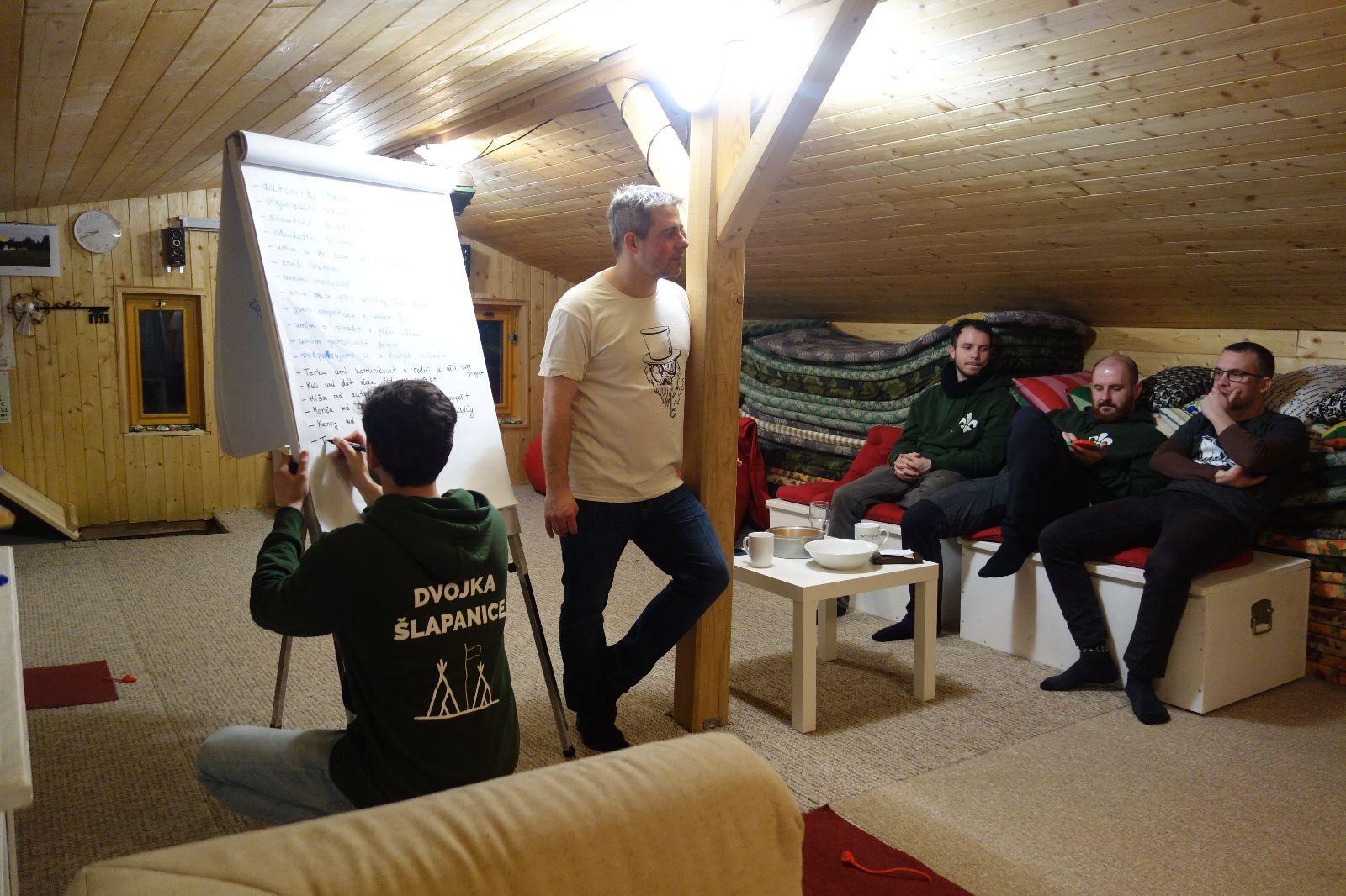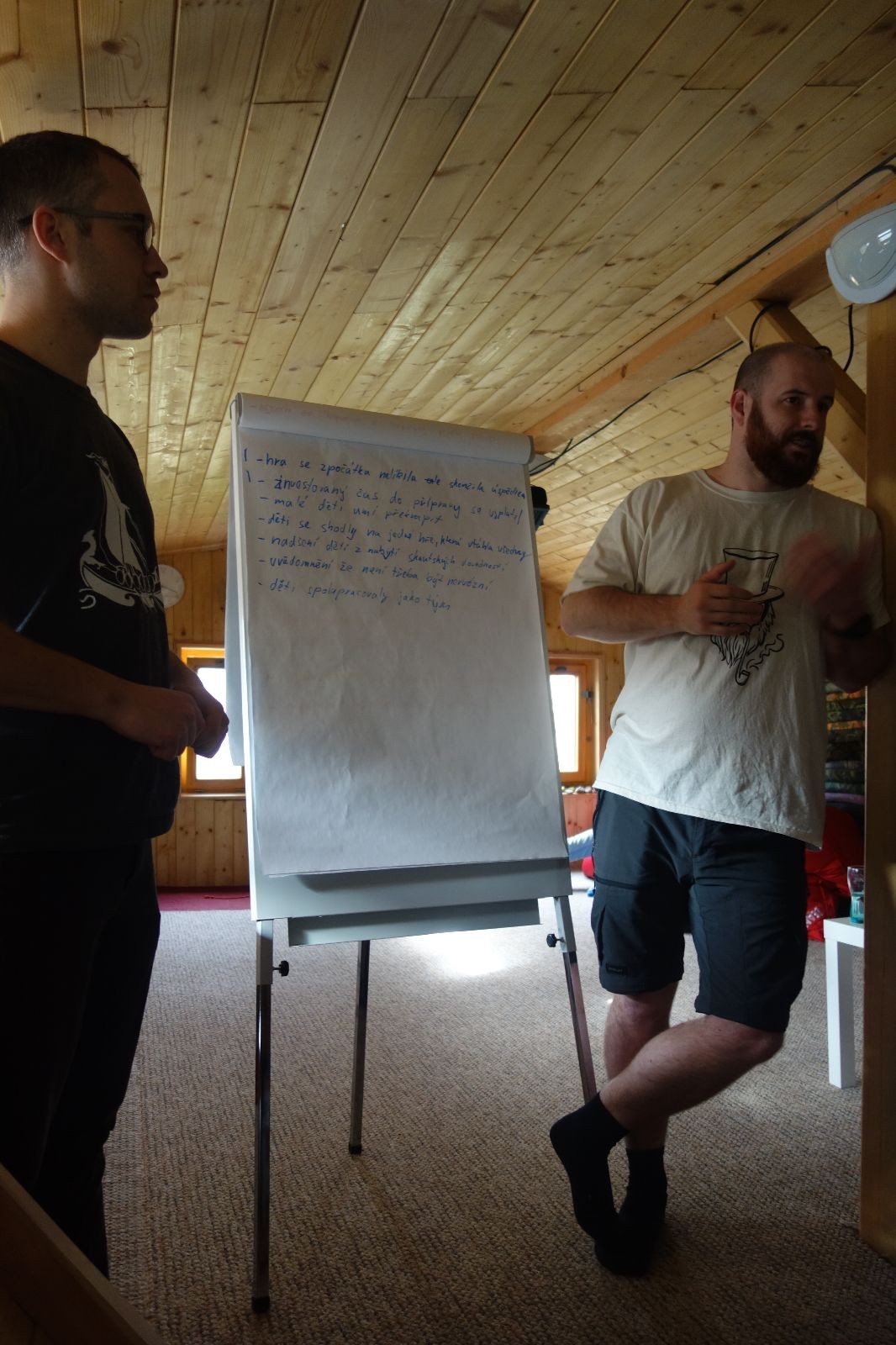 Proto jsme se spolu s Džany, Petrem, Bangim, Bráchou a Fufem rozhodli takovouto akci uspořádat. Workshop s povídáním, sdílením zkušeností, diskusemi, skupinovou prací. Myslím, že účastníci rozhodně nelitovali. A můj pocit? Je skvělé mít v oddíle vedoucí, kteří nad svojí prací s družinkou přemýšlejí, diskutují o ní a věnují jí tolik energie. Jen tak dál.