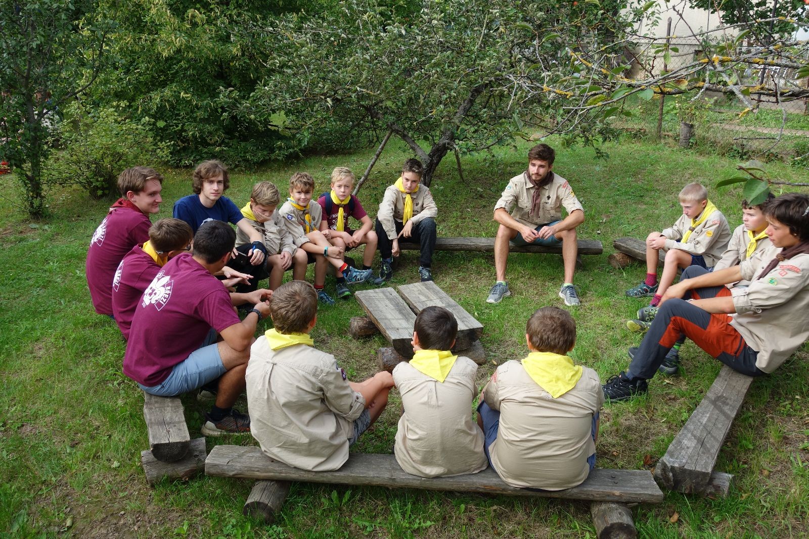 V pátek 11. září 2020 jsme se po určitě stoprocentně užitých prázdninách sešli na Boudě. A sešlo se nás opravdu hodně, přesněji 109 světlušek, vlčat, skautek, skautů, roverů, benjamínků, vedoucích, ale taky spousta nových tváří. Oddílová schůzka začala tradičně po čtvrté hodině nástupem a vyvěšením vlajky. Prvním bodem programu zahajovačky byla hra Vymění se všichni, a tak jsme se o sobě vzájemně něco dozvěděli a užili si srandu. Potom si každá družinka zalezla do svého koutku základny a přivítali jsme se již v komornější sestavě. Popovídali jsme si o našich úžasných zážitcích z prázdnin, sdělili si všechny důležité i nedůležité novinky a domluvili se na takových těch praktických záležitostech, jako jaký den budou tento rok probíhat schůzky.