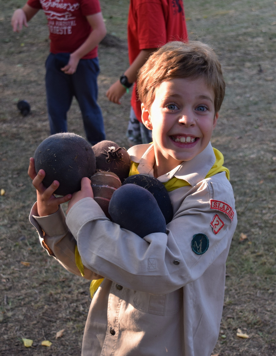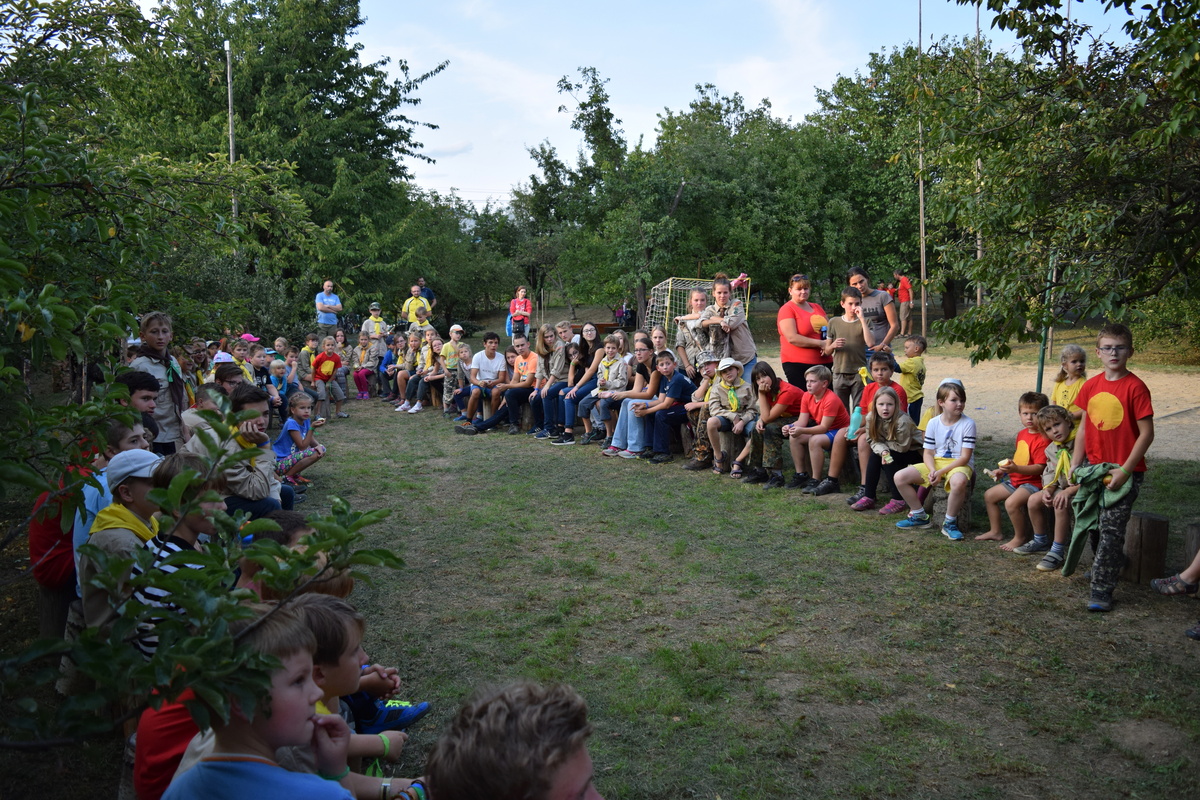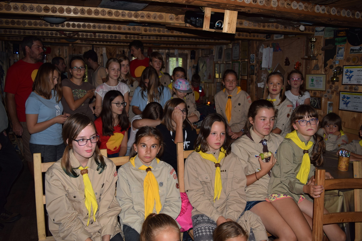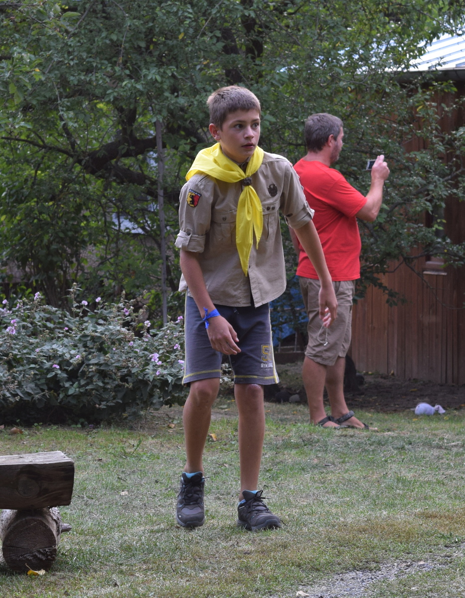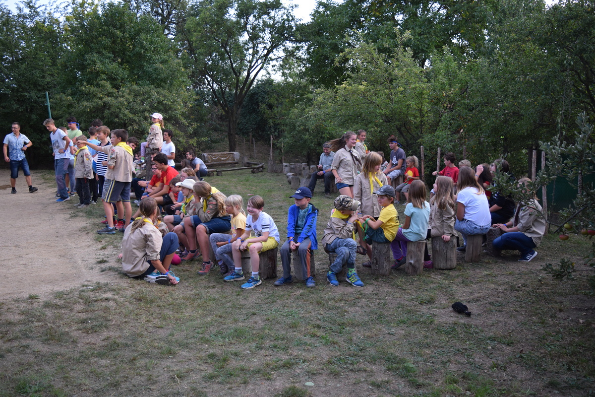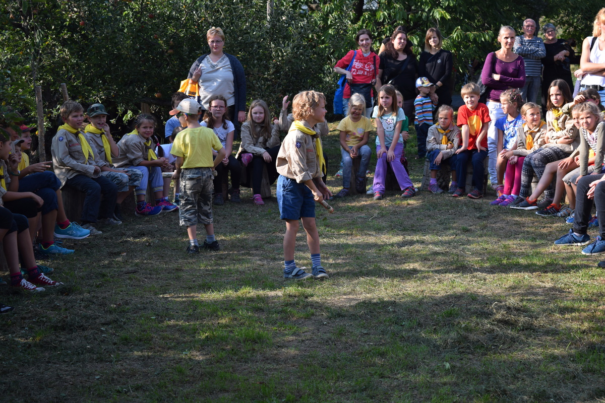 „Činnost nebo uspořádaná akce pro veřejnost je dotována městem Šlapanice“. V pátek 8.9.2017 od 16:00 proběhla tradiční zahajovací schůzka, kterou vždy započíná náš oddíl podzimní činnost. Účast byla naprosto nečekaná, počítejte se mnou: 17 vedoucích, 16 Svišťů, 15 Veverek, 14 Vlků, 13 Kudlanek, 11 Tygrů, 10 Draků, 9 Pum, 8 Sršňů a 6 členů nové družinky, která ještě nemá název. Celkem 119 lidiček a to nepočítám přihlížející rodiče čerstvých nováčků :-). Započali jsme jako obvykle nástupem, vlajku vztyčil Corado. Poté se slova ujali Brácha s Petrem a jali se organizovat oblíbenou "Seznamovačku. Skvělá hra, jen lidí je nějak moc. Být jich tak polovina, asi by si to všichni dost užili. Jakmile zakončí Petr poslední kolo, zjednávám klid a oznamuji, kde bude mít kdo družinovou schůzku. Svišti uhánějí spolu s Fí a Mony k pink-pongovému stolu, Pumy se sunou do Nové Boudy, nováčci spolu s Kloubem, Roxym a Kosťou do Boudy Staré, Kudlanky jdou do Trojky, Veverky na "Koulí hexagon" u sprchy, Tygři tradičně ke kuželkám, Vlci zůstávají u ohniště, Draci letí k pískovišti, Sršni zůstávají na špalcích ... no ještě že tady na základně máme těch míst k setkání dost :-). Jak tak postupně krátké družinové schůzky končí, jde vždy trojice družinek do Trojky shlédnout Kašův trailer z letošního tábora a hned poté členové zamíří k jednomu z generálů: Kloub šikuje svoji zelenou armádu vedle Nové Boudy, Kosťa řadí svoje modré na hřišti. Každý fasuje tři hadrovky, starší seznamují ty mladší s pravidly a může se hrát. Rodičové po pár minutách vyklízejí pole, základnou se valí jeden útok za druhým. První kolo vítězí modří s velkou převahou, prorazili totiž pravé křídlo soupeřů a vzali je do kleští. Výměna stran, druhé kolo. Situace se opakuje, jen v opačném gardu. Hezké bylo, jak si Bengi zahrál asi jednu vteřinu (tolik času od úvodního hvizdu uplynulo, než dostal zásah) a smějící se Brácha ho překonal asi tak o další vteřinu, než to koupil pro změnu on. Nerozhodně, 1:1. Musí se hrát třetí kolo, V něm vítězí zelení a tak Babů dává 2 lentilky coby odměnu jim, poraženým pak po jedné. Sbíráme koule, generálové je uklízejí a už se u ohniště šikují dvě dvojice zkušených dražitelů. Co se bude dražit? No přece zapomenuté věci z tábora a z předtáborových schůzek. Jsou toho dvě velké bedny. I přes značnou snahu se daří rozdat jen snad čtvrtinu věcí. Co se zbytkem? No uvidíme... A protože se čas nachýlil, zakončuji schůzku, členstvo se loučí a pomalu rozchází ke svým domovům. Vedoucí ještě uklízejí a kolem půl sedmé je už na základně opět klid a mír. Ne na dlouho. Hukan něco po sedmé naváží plot, tyče, dráty a cement, protože celý víkend budeme sundávat starý a osazovat nový plot. A nejen to! Starou nehezkou bránu nahradí krásná nová, na zakázku dělaná. Tak nám držte palce, ať všechno klapne. Jura