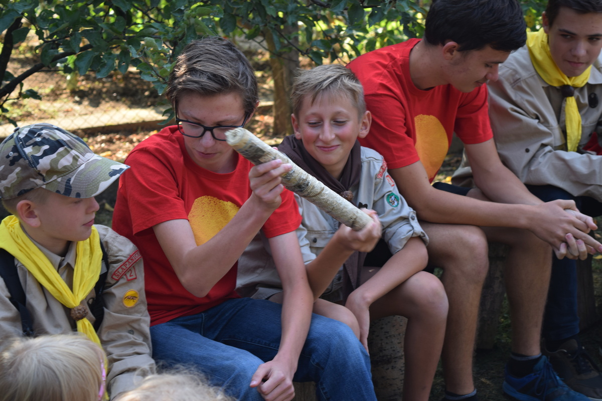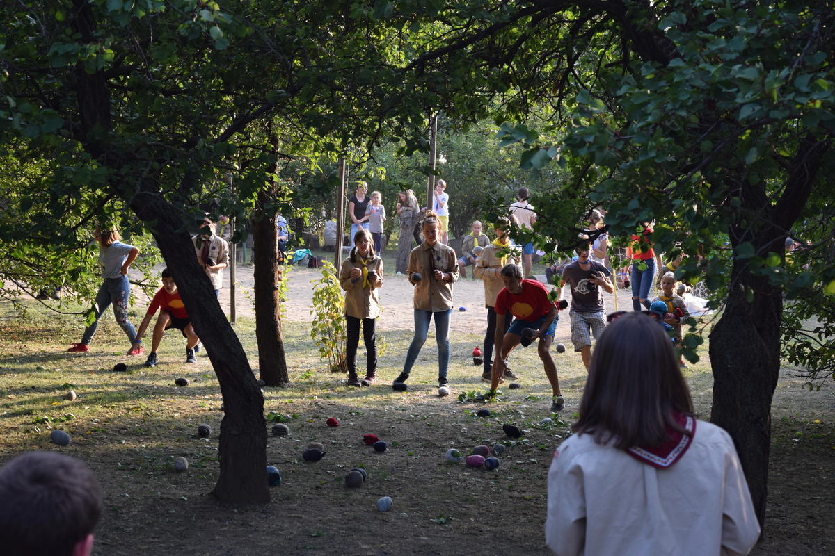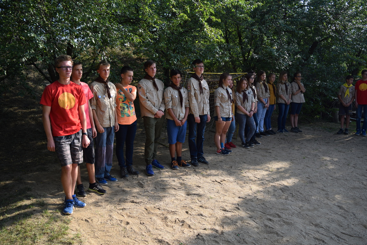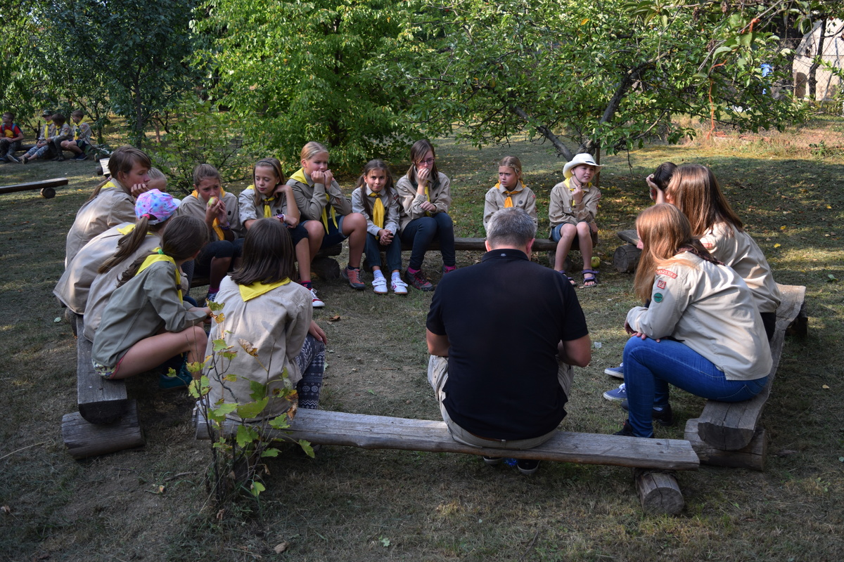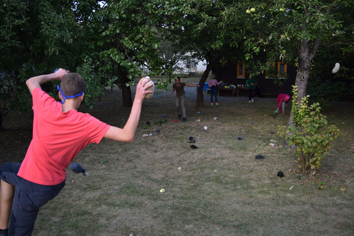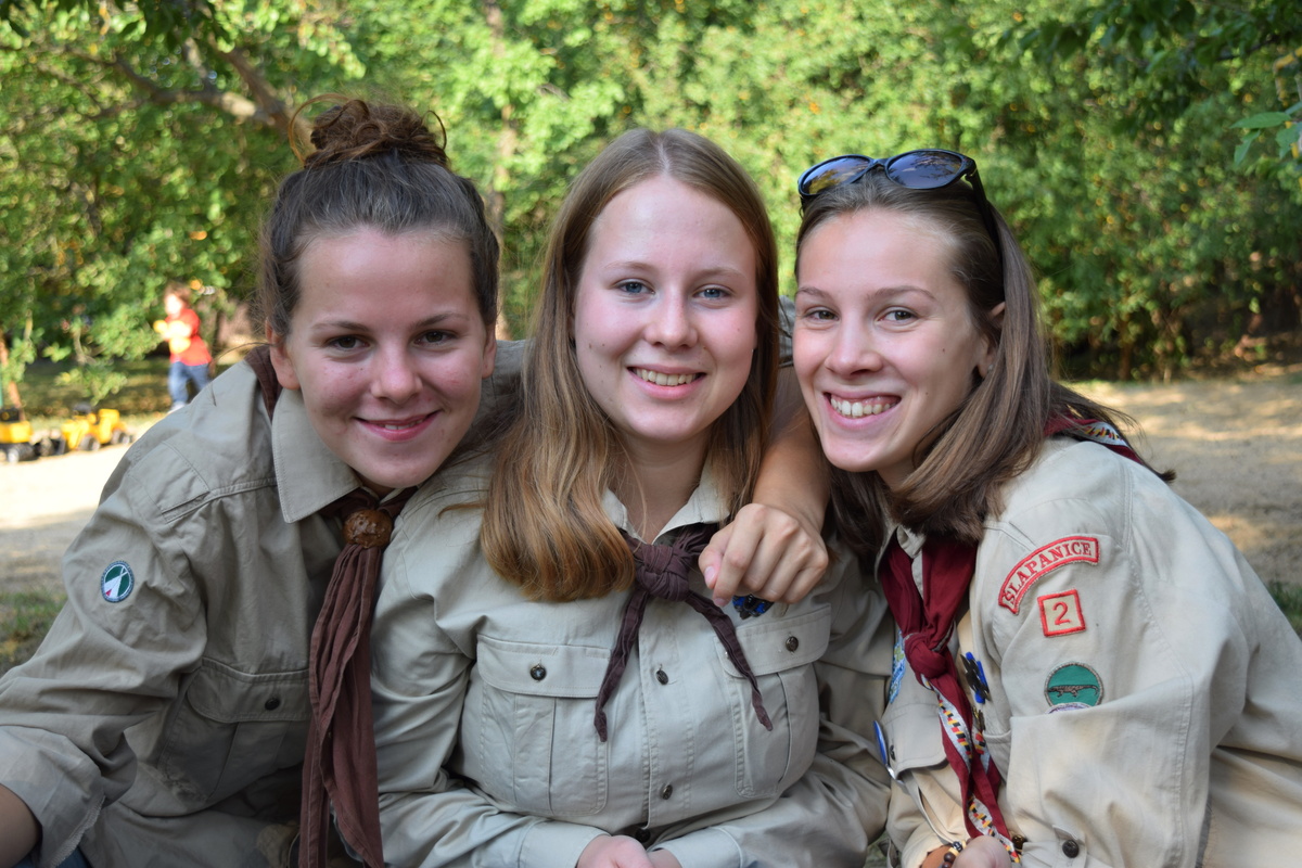 „Činnost nebo uspořádaná akce pro veřejnost je dotována městem Šlapanice“. V pátek 8.9.2017 od 16:00 proběhla tradiční zahajovací schůzka, kterou vždy započíná náš oddíl podzimní činnost. Účast byla naprosto nečekaná, počítejte se mnou: 17 vedoucích, 16 Svišťů, 15 Veverek, 14 Vlků, 13 Kudlanek, 11 Tygrů, 10 Draků, 9 Pum, 8 Sršňů a 6 členů nové družinky, která ještě nemá název. Celkem 119 lidiček a to nepočítám přihlížející rodiče čerstvých nováčků :-). Započali jsme jako obvykle nástupem, vlajku vztyčil Corado. Poté se slova ujali Brácha s Petrem a jali se organizovat oblíbenou "Seznamovačku. Skvělá hra, jen lidí je nějak moc. Být jich tak polovina, asi by si to všichni dost užili. Jakmile zakončí Petr poslední kolo, zjednávám klid a oznamuji, kde bude mít kdo družinovou schůzku. Svišti uhánějí spolu s Fí a Mony k pink-pongovému stolu, Pumy se sunou do Nové Boudy, nováčci spolu s Kloubem, Roxym a Kosťou do Boudy Staré, Kudlanky jdou do Trojky, Veverky na "Koulí hexagon" u sprchy, Tygři tradičně ke kuželkám, Vlci zůstávají u ohniště, Draci letí k pískovišti, Sršni zůstávají na špalcích ... no ještě že tady na základně máme těch míst k setkání dost :-). Jak tak postupně krátké družinové schůzky končí, jde vždy trojice družinek do Trojky shlédnout Kašův trailer z letošního tábora a hned poté členové zamíří k jednomu z generálů: Kloub šikuje svoji zelenou armádu vedle Nové Boudy, Kosťa řadí svoje modré na hřišti. Každý fasuje tři hadrovky, starší seznamují ty mladší s pravidly a může se hrát. Rodičové po pár minutách vyklízejí pole, základnou se valí jeden útok za druhým. První kolo vítězí modří s velkou převahou, prorazili totiž pravé křídlo soupeřů a vzali je do kleští. Výměna stran, druhé kolo. Situace se opakuje, jen v opačném gardu. Hezké bylo, jak si Bengi zahrál asi jednu vteřinu (tolik času od úvodního hvizdu uplynulo, než dostal zásah) a smějící se Brácha ho překonal asi tak o další vteřinu, než to koupil pro změnu on. Nerozhodně, 1:1. Musí se hrát třetí kolo, V něm vítězí zelení a tak Babů dává 2 lentilky coby odměnu jim, poraženým pak po jedné. Sbíráme koule, generálové je uklízejí a už se u ohniště šikují dvě dvojice zkušených dražitelů. Co se bude dražit? No přece zapomenuté věci z tábora a z předtáborových schůzek. Jsou toho dvě velké bedny. I přes značnou snahu se daří rozdat jen snad čtvrtinu věcí. Co se zbytkem? No uvidíme... A protože se čas nachýlil, zakončuji schůzku, členstvo se loučí a pomalu rozchází ke svým domovům. Vedoucí ještě uklízejí a kolem půl sedmé je už na základně opět klid a mír. Ne na dlouho. Hukan něco po sedmé naváží plot, tyče, dráty a cement, protože celý víkend budeme sundávat starý a osazovat nový plot. A nejen to! Starou nehezkou bránu nahradí krásná nová, na zakázku dělaná. Tak nám držte palce, ať všechno klapne. Jura