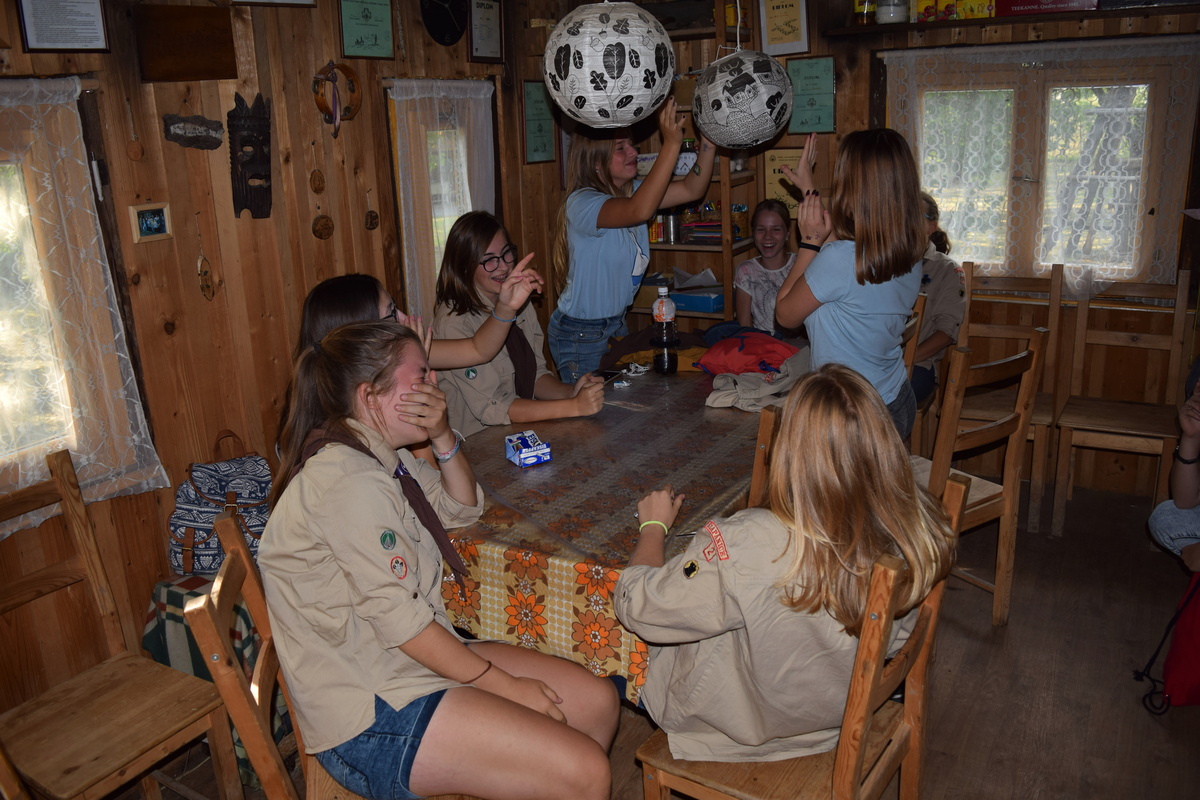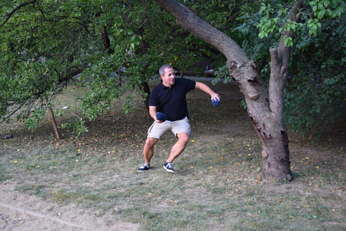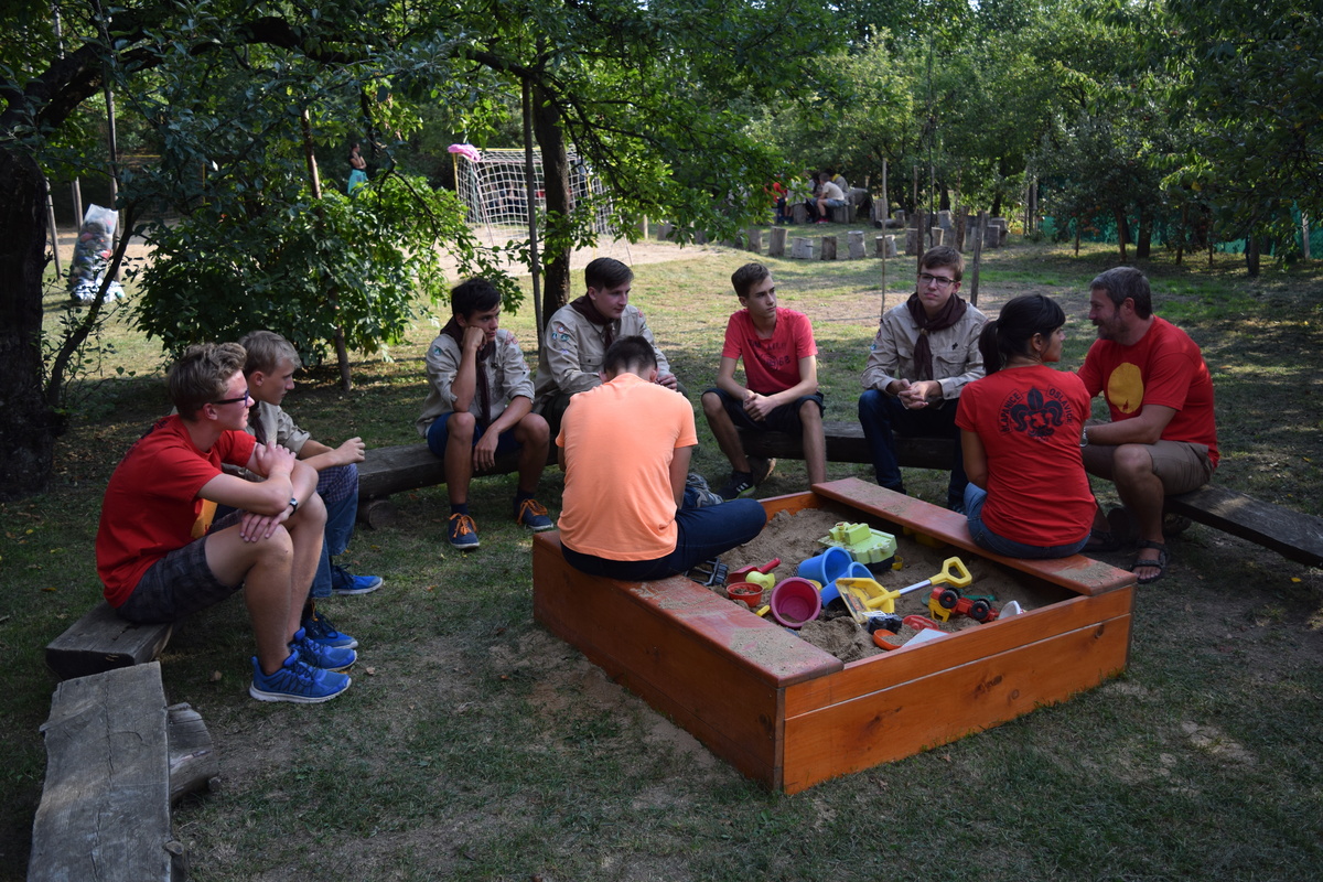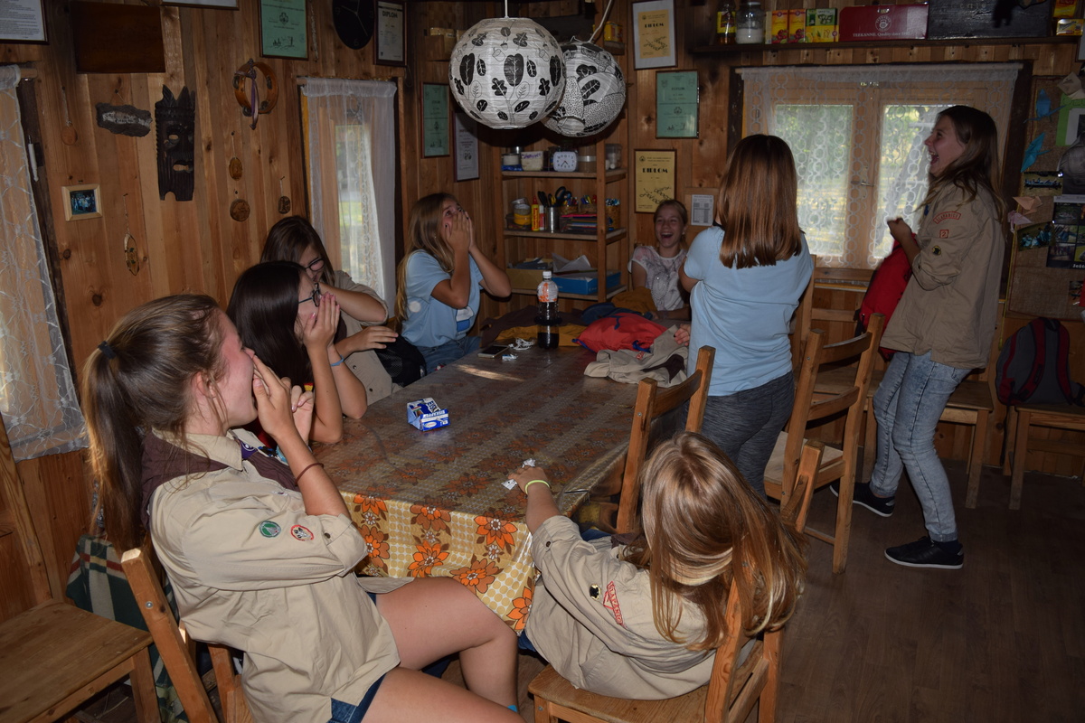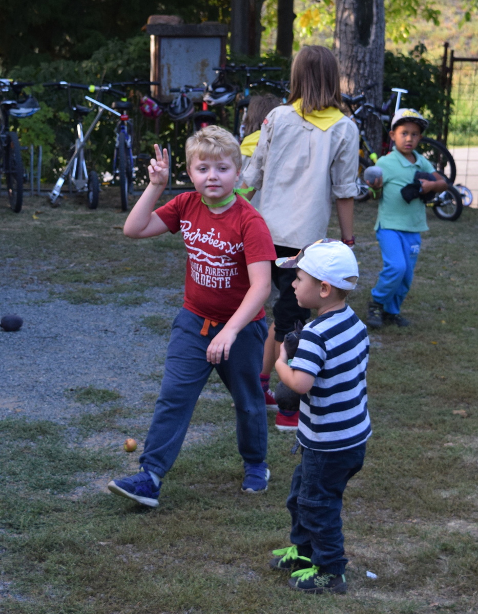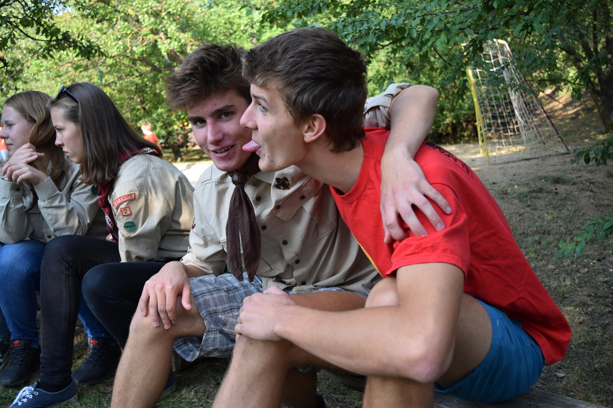 „Činnost nebo uspořádaná akce pro veřejnost je dotována městem Šlapanice“. V pátek 8.9.2017 od 16:00 proběhla tradiční zahajovací schůzka, kterou vždy započíná náš oddíl podzimní činnost. Účast byla naprosto nečekaná, počítejte se mnou: 17 vedoucích, 16 Svišťů, 15 Veverek, 14 Vlků, 13 Kudlanek, 11 Tygrů, 10 Draků, 9 Pum, 8 Sršňů a 6 členů nové družinky, která ještě nemá název. Celkem 119 lidiček a to nepočítám přihlížející rodiče čerstvých nováčků :-). Započali jsme jako obvykle nástupem, vlajku vztyčil Corado. Poté se slova ujali Brácha s Petrem a jali se organizovat oblíbenou "Seznamovačku. Skvělá hra, jen lidí je nějak moc. Být jich tak polovina, asi by si to všichni dost užili. Jakmile zakončí Petr poslední kolo, zjednávám klid a oznamuji, kde bude mít kdo družinovou schůzku. Svišti uhánějí spolu s Fí a Mony k pink-pongovému stolu, Pumy se sunou do Nové Boudy, nováčci spolu s Kloubem, Roxym a Kosťou do Boudy Staré, Kudlanky jdou do Trojky, Veverky na "Koulí hexagon" u sprchy, Tygři tradičně ke kuželkám, Vlci zůstávají u ohniště, Draci letí k pískovišti, Sršni zůstávají na špalcích ... no ještě že tady na základně máme těch míst k setkání dost :-). Jak tak postupně krátké družinové schůzky končí, jde vždy trojice družinek do Trojky shlédnout Kašův trailer z letošního tábora a hned poté členové zamíří k jednomu z generálů: Kloub šikuje svoji zelenou armádu vedle Nové Boudy, Kosťa řadí svoje modré na hřišti. Každý fasuje tři hadrovky, starší seznamují ty mladší s pravidly a může se hrát. Rodičové po pár minutách vyklízejí pole, základnou se valí jeden útok za druhým. První kolo vítězí modří s velkou převahou, prorazili totiž pravé křídlo soupeřů a vzali je do kleští. Výměna stran, druhé kolo. Situace se opakuje, jen v opačném gardu. Hezké bylo, jak si Bengi zahrál asi jednu vteřinu (tolik času od úvodního hvizdu uplynulo, než dostal zásah) a smějící se Brácha ho překonal asi tak o další vteřinu, než to koupil pro změnu on. Nerozhodně, 1:1. Musí se hrát třetí kolo, V něm vítězí zelení a tak Babů dává 2 lentilky coby odměnu jim, poraženým pak po jedné. Sbíráme koule, generálové je uklízejí a už se u ohniště šikují dvě dvojice zkušených dražitelů. Co se bude dražit? No přece zapomenuté věci z tábora a z předtáborových schůzek. Jsou toho dvě velké bedny. I přes značnou snahu se daří rozdat jen snad čtvrtinu věcí. Co se zbytkem? No uvidíme... A protože se čas nachýlil, zakončuji schůzku, členstvo se loučí a pomalu rozchází ke svým domovům. Vedoucí ještě uklízejí a kolem půl sedmé je už na základně opět klid a mír. Ne na dlouho. Hukan něco po sedmé naváží plot, tyče, dráty a cement, protože celý víkend budeme sundávat starý a osazovat nový plot. A nejen to! Starou nehezkou bránu nahradí krásná nová, na zakázku dělaná. Tak nám držte palce, ať všechno klapne. Jura