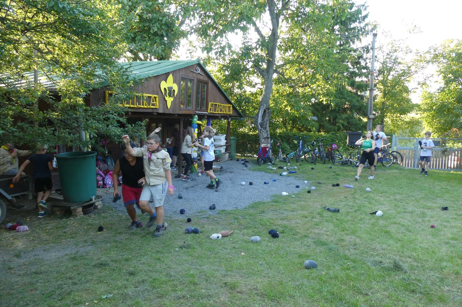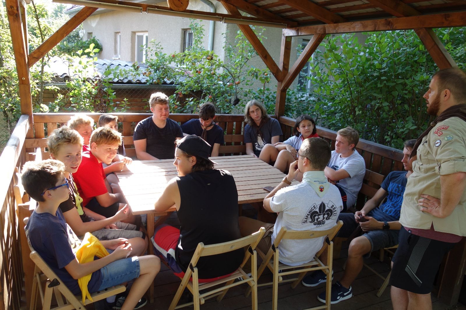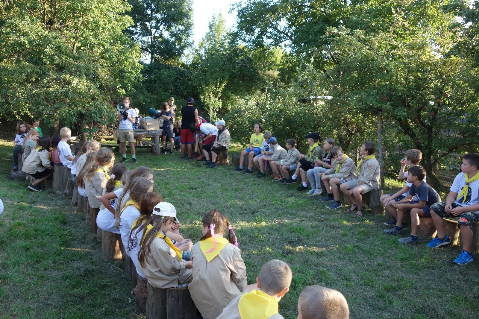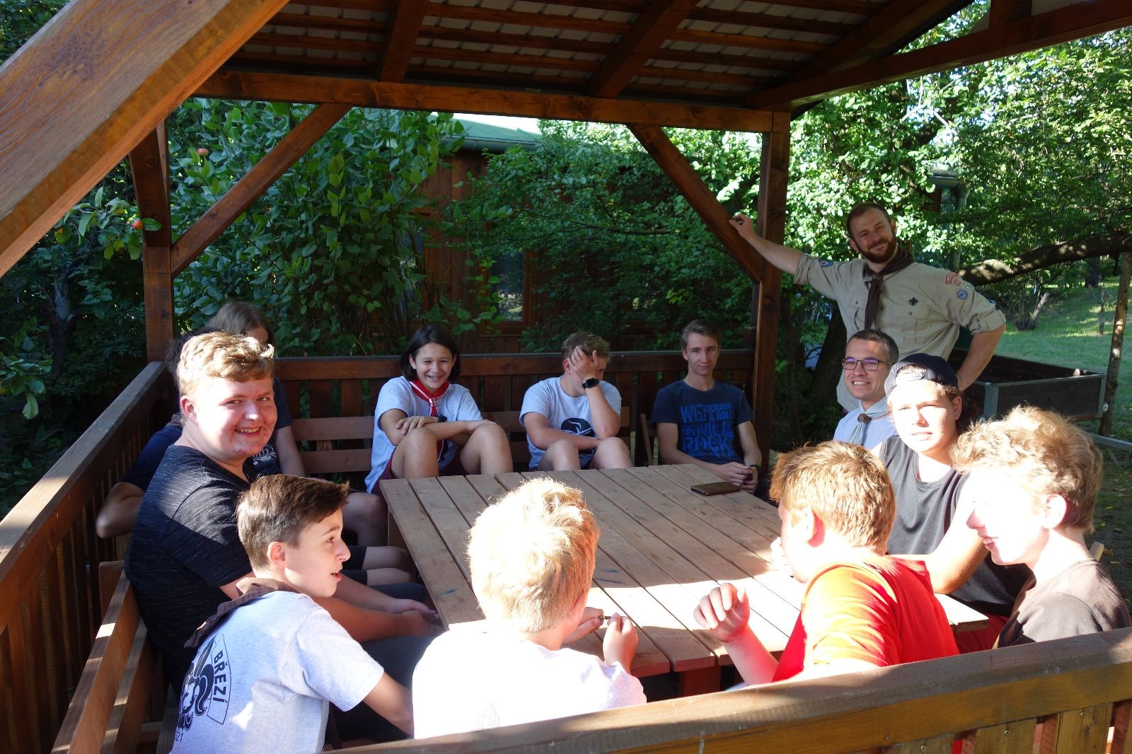 Pak jsme se rozmístili po areálu naší krásné skautské základny, aby se družinky mohly domluvit na aktivitách pro příští rok, pokecat si po prázdninách a o prázdninách a tak podobně…