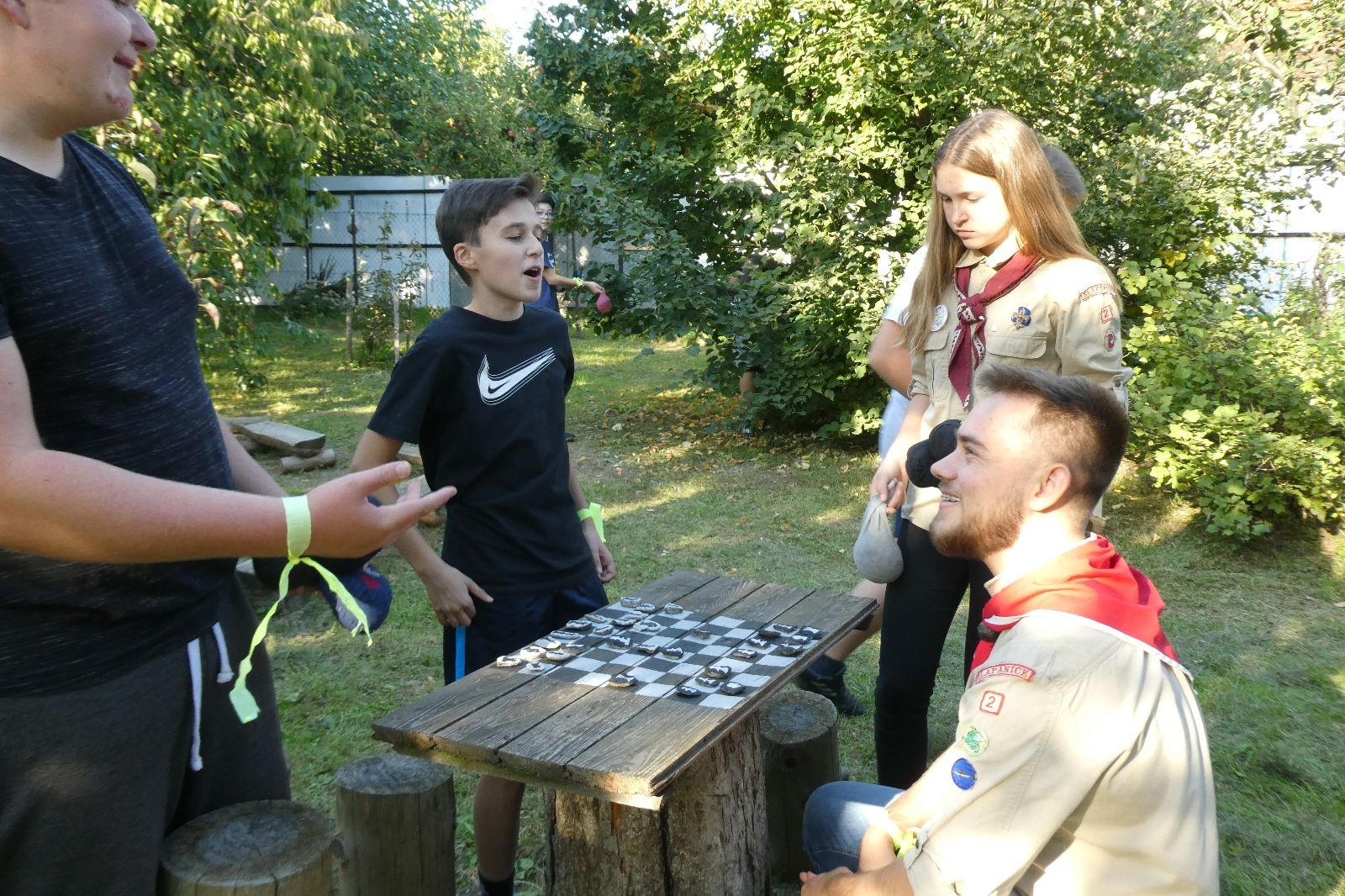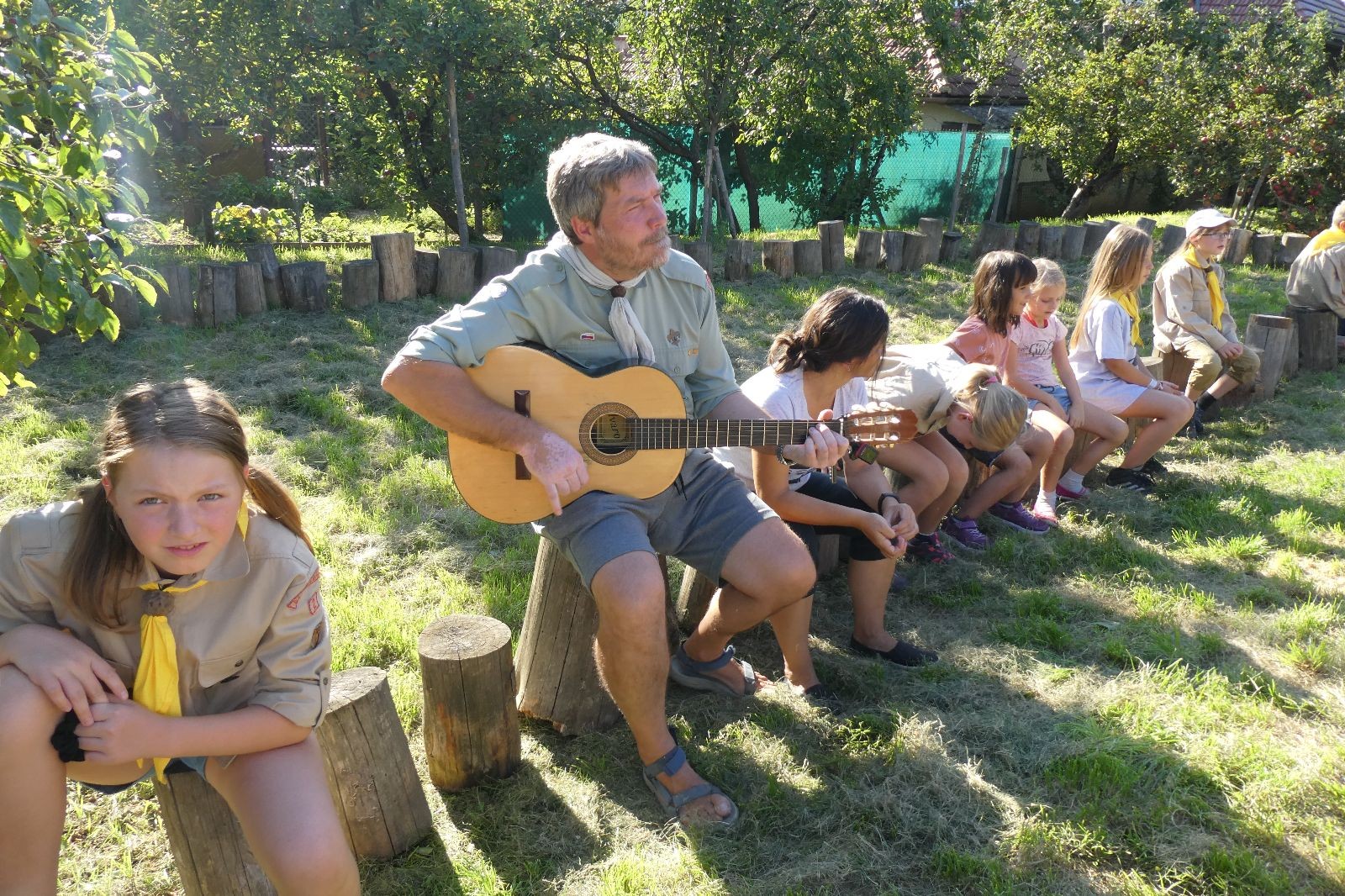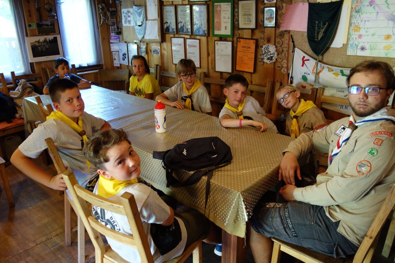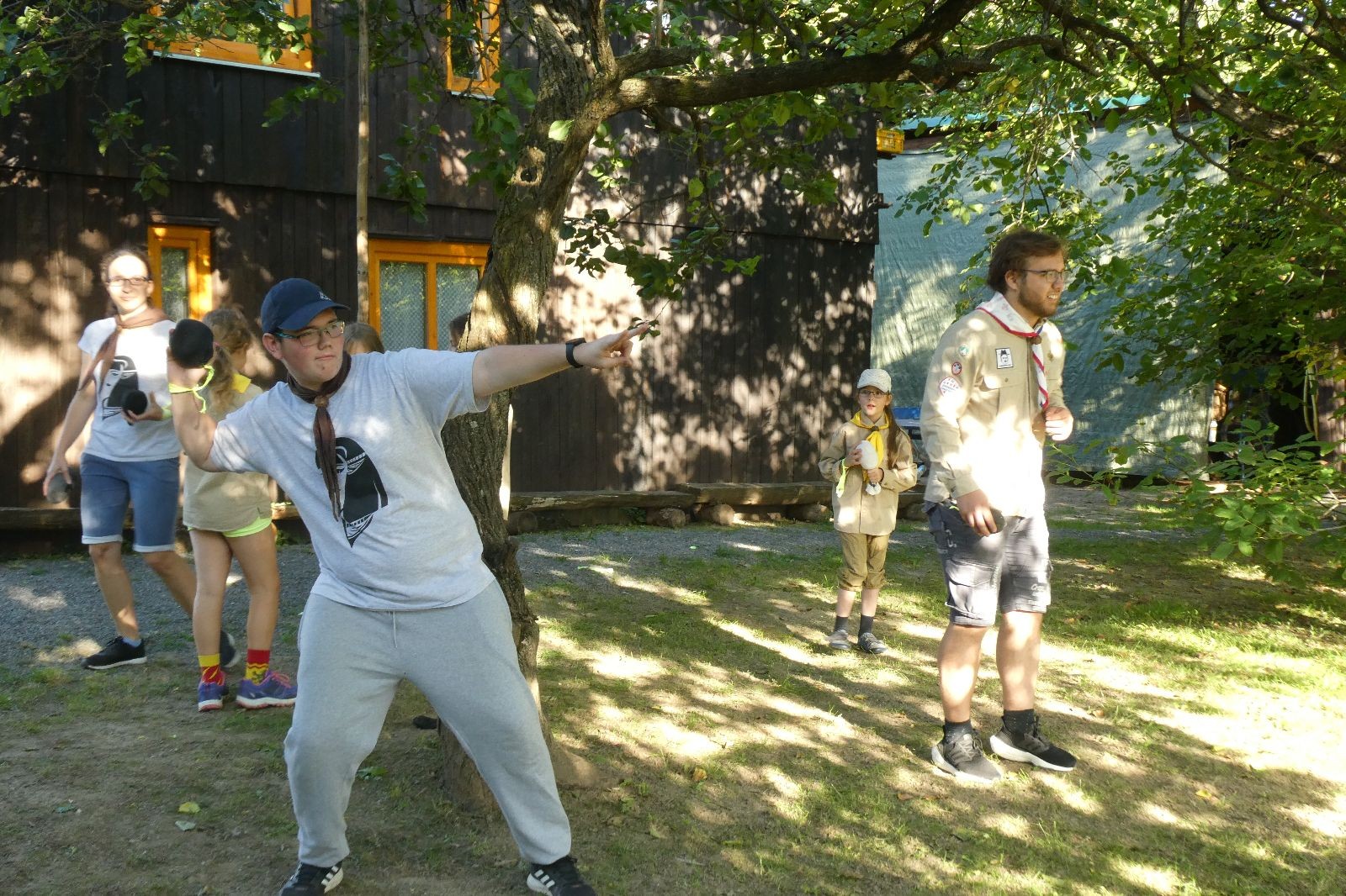 Pak jsme se rozmístili po areálu naší krásné skautské základny, aby se družinky mohly domluvit na aktivitách pro příští rok, pokecat si po prázdninách a o prázdninách a tak podobně…