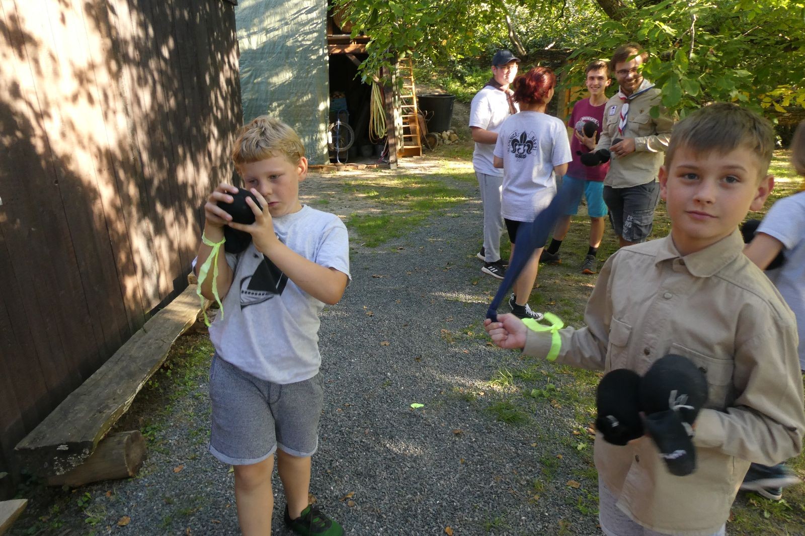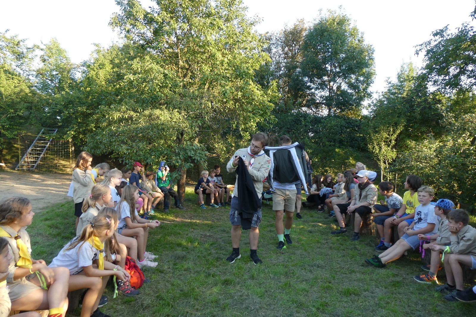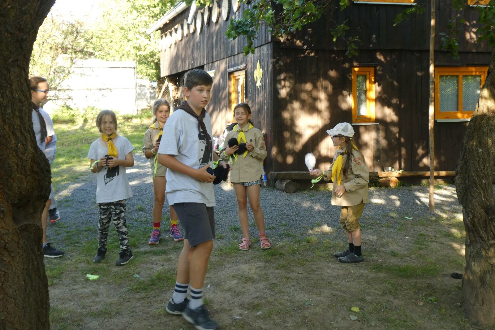 Závěrem schůzky pak proběhla všemi chronickými zapomínači oblíbená dražba ztrát a nálezů z tábora.