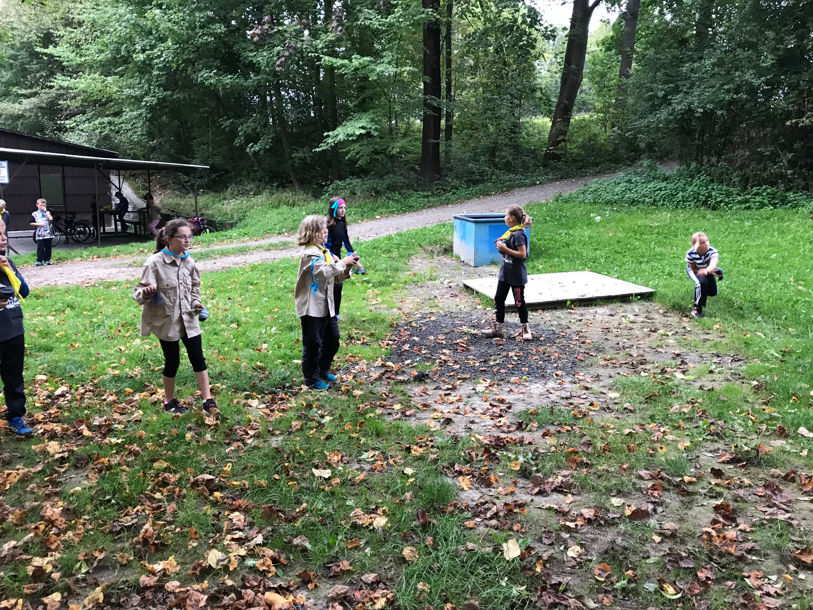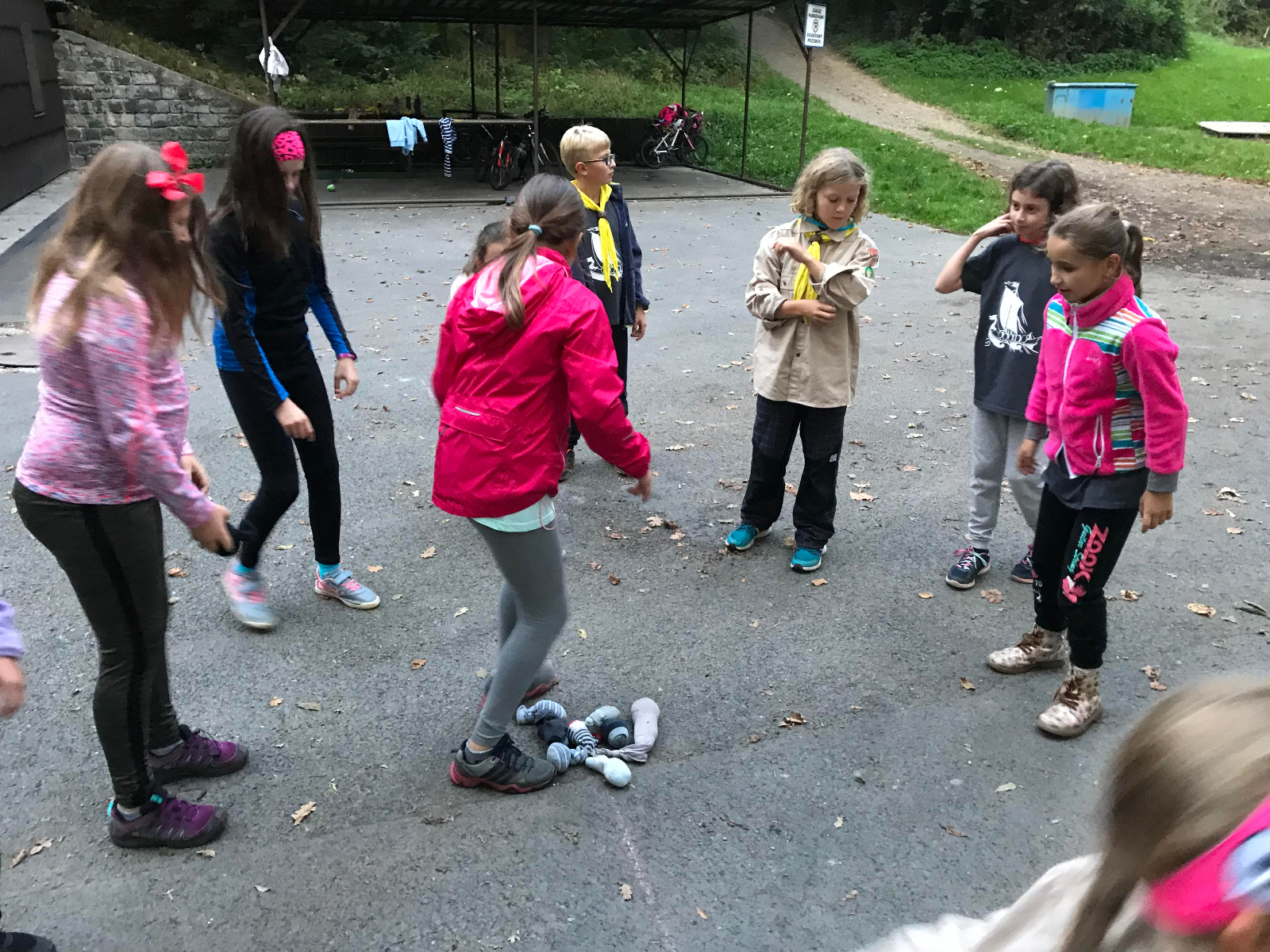 Po prázdninách jsem se sešli na zahajovací schůzce na standardním místě - u Myslivecké chaty, a to v počtu 15 ks + my dva s Lenkou. Po úvodních informacích, kdy budou bývat schůzky, kam se vydáme na výpravy do konce tohoto roku, jsme odstartovali schůzku tradičním kanystrem. Na předměty v kruhu z časových důvodů nedošlo, zato jsme si dali super bojovku s hadrovými koulemi a pak ještě na hlídače a zloděje. Fotky napoví více..