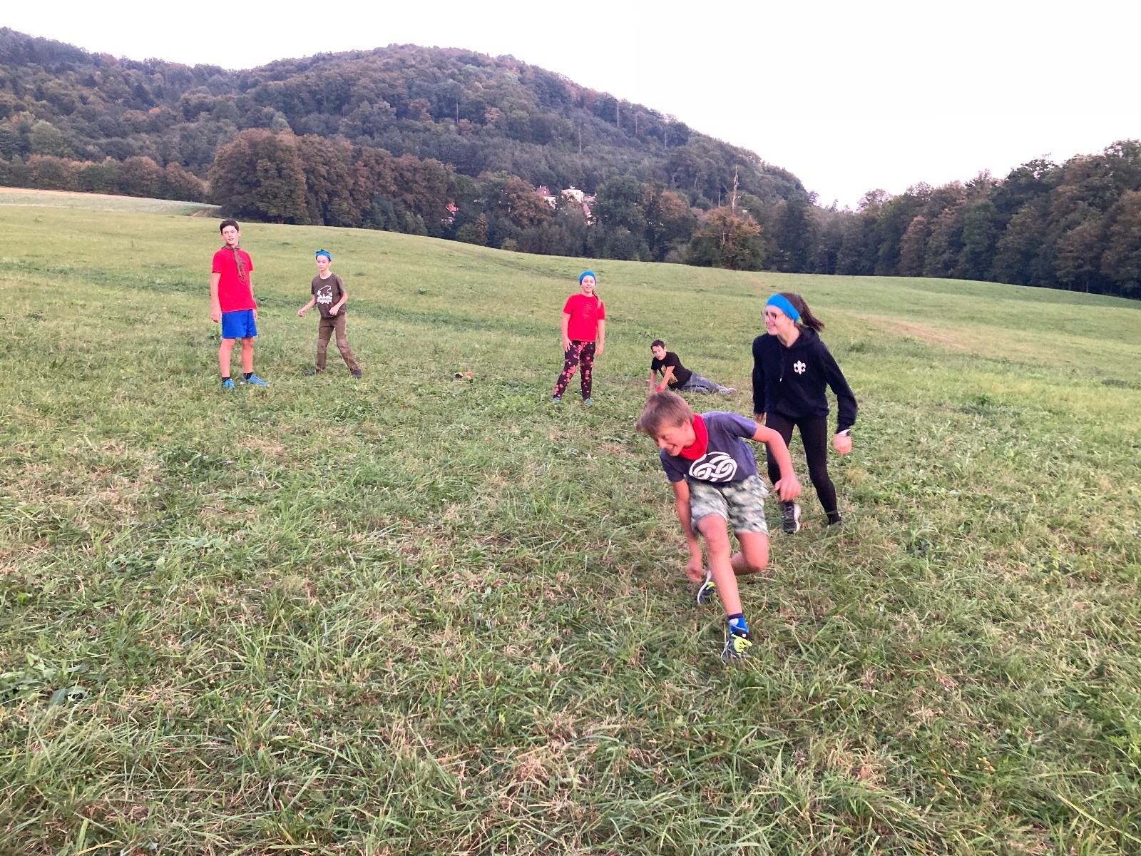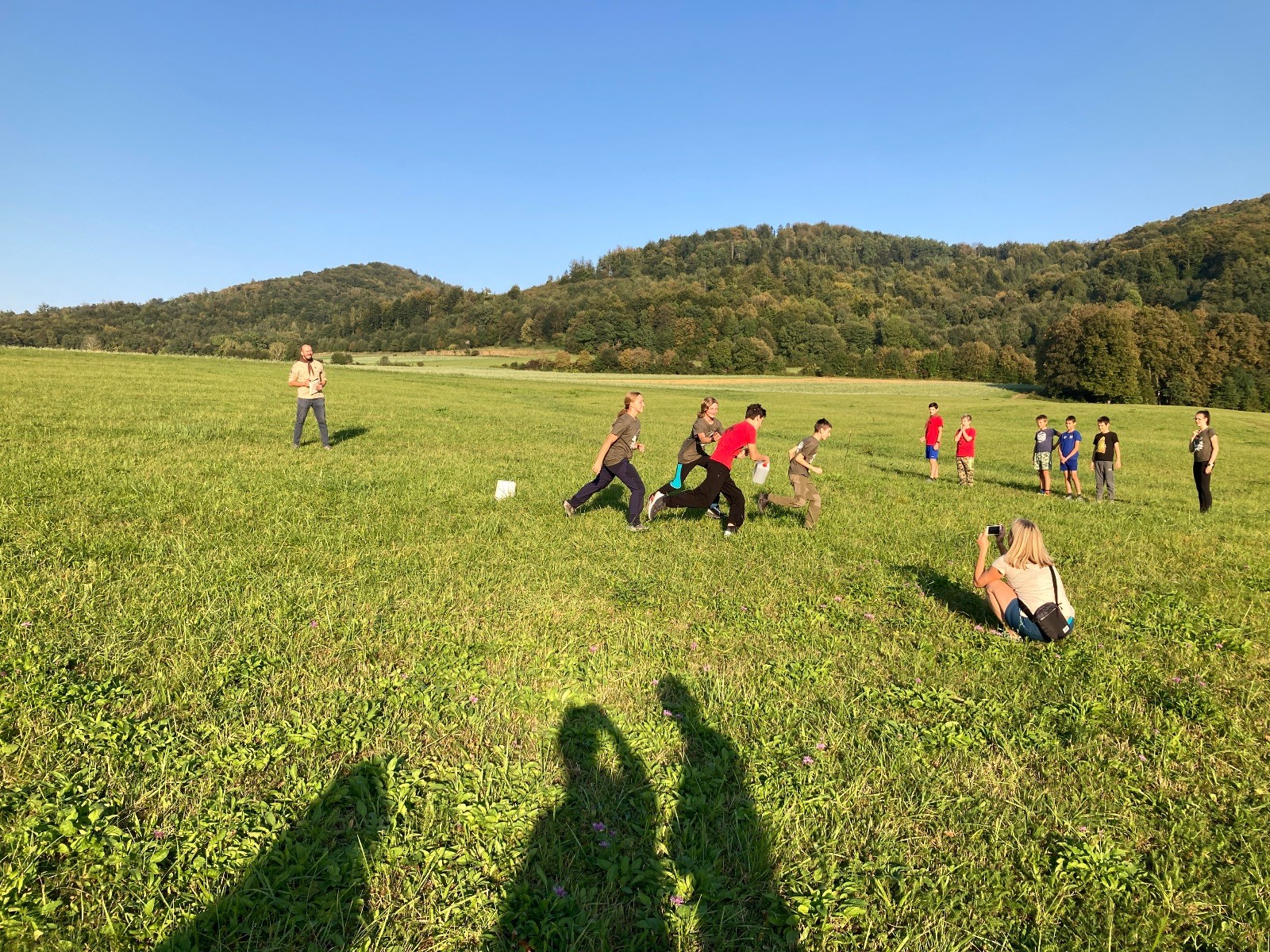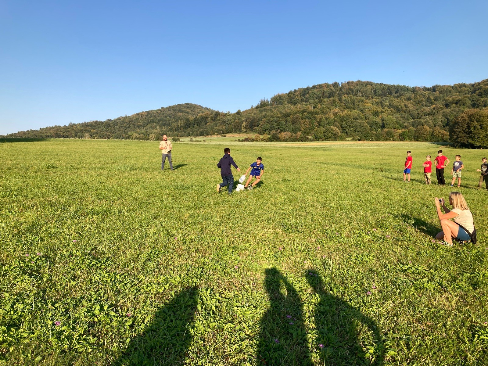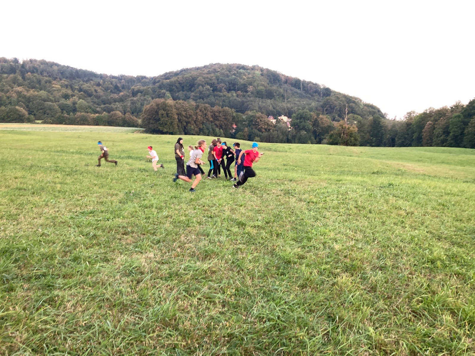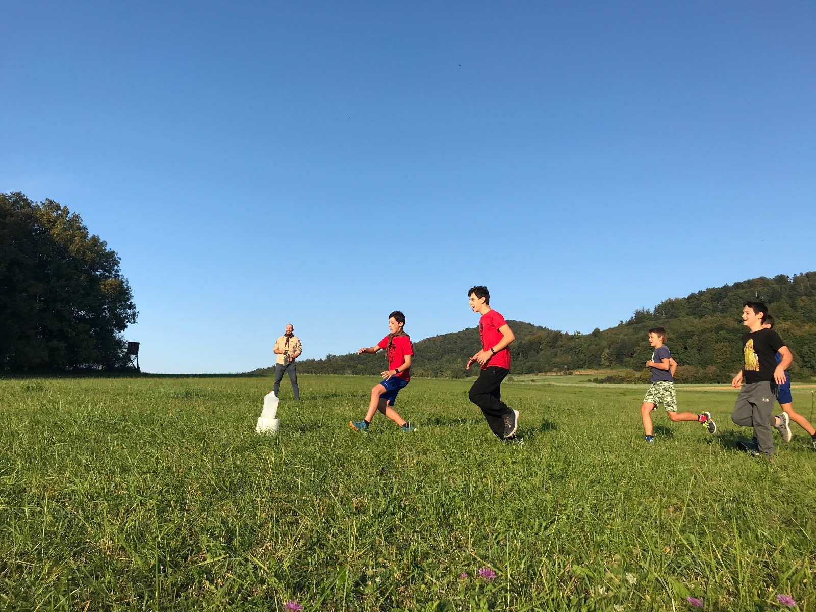Startli jsme klasicky vyvěšením vlajky, nechali vzkaz pro opozdilce a vydali se na louku. Tam jsme si já a Páťa rozdělily týmy a podle kanystru, který byl položen doprostřed louky, jsme poznali, co nás čeká. Klepeto upřesnil, že se jedná o “plnotučný” kanystr, ale všichni staří pardáli podle pravidel pochopili, že to je úplně obyčejný hardcore. A ten mají Lišky opravdu v oblibě. Takže jsme se do toho s radostí vrhli. Začali jsme s čísly a pak přešli na verzi “vyběhne každý kdo…”. V průběhu se k nám připojili i Valča, Ondra a Janča. Zahráli jsme několik kol a v každém jsme o kanystr bojovali jako o život. Takže následný družiňák na odpočnutí celkem bodnul.