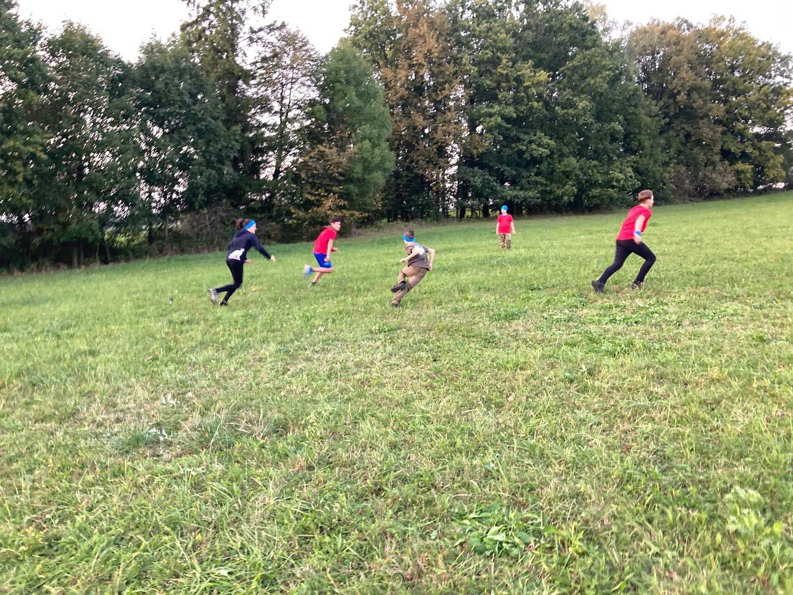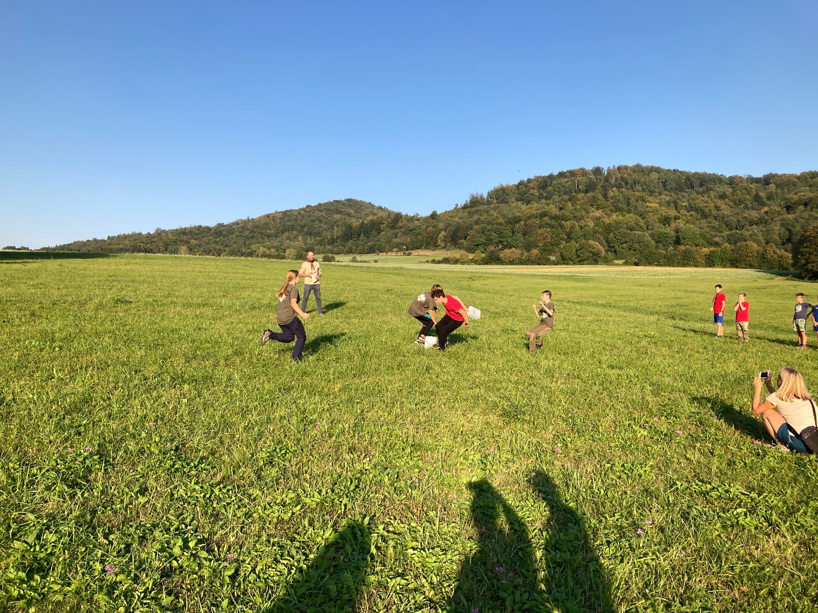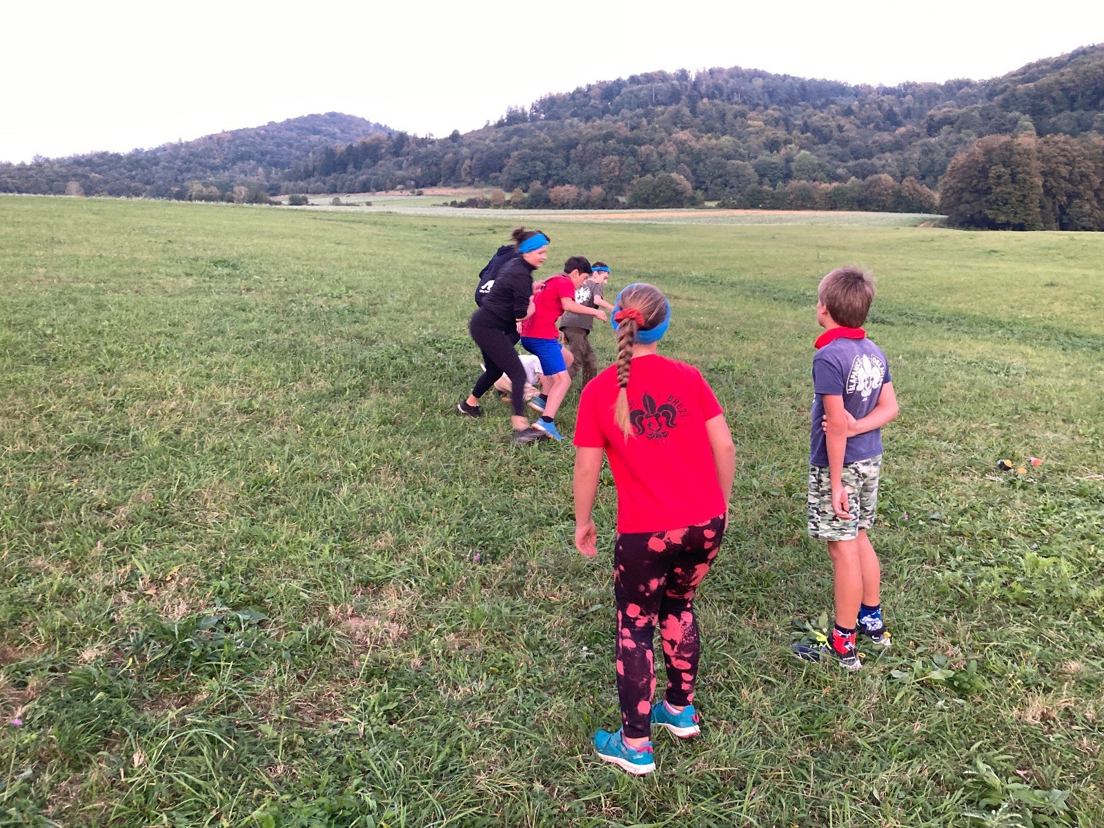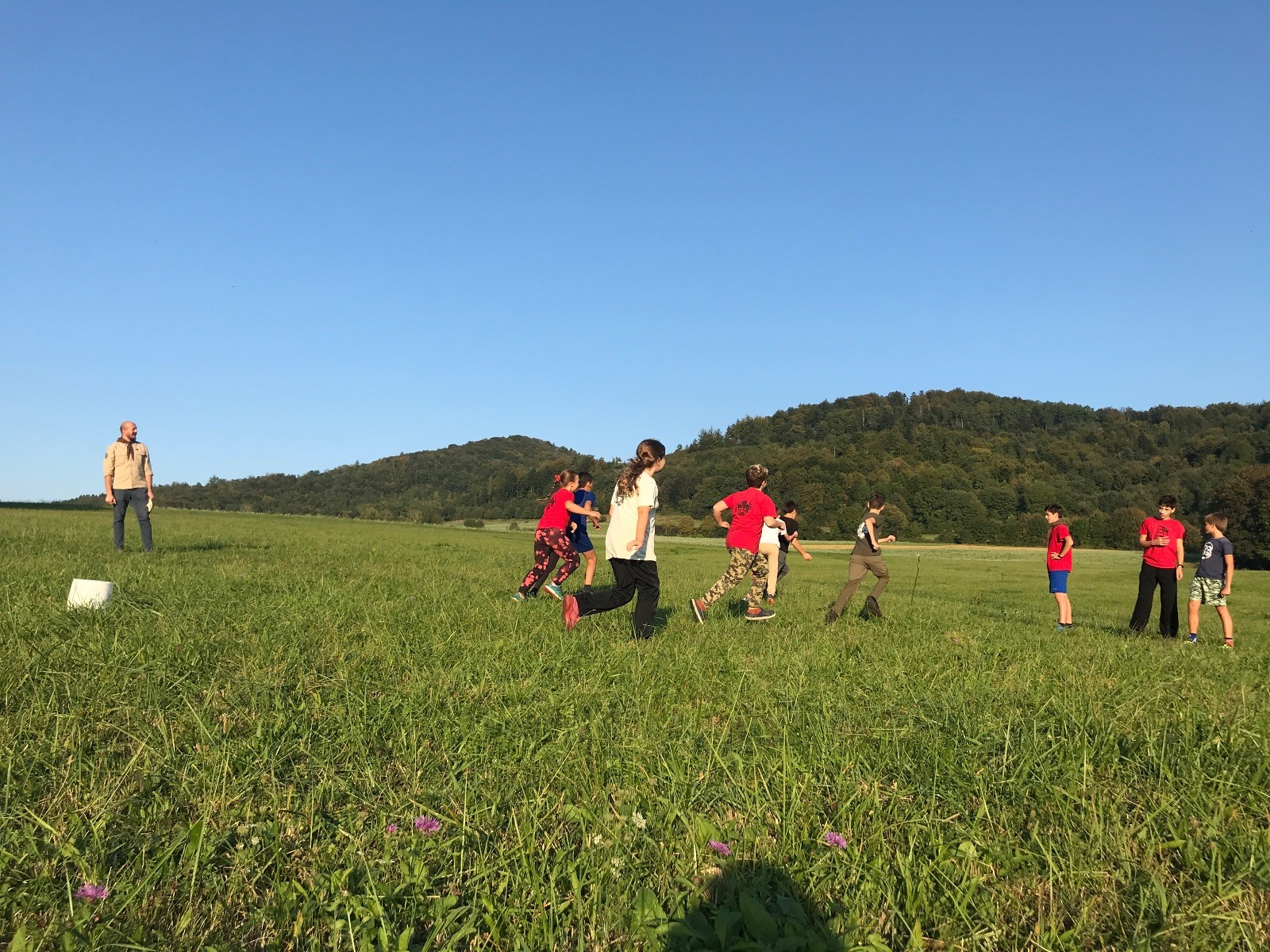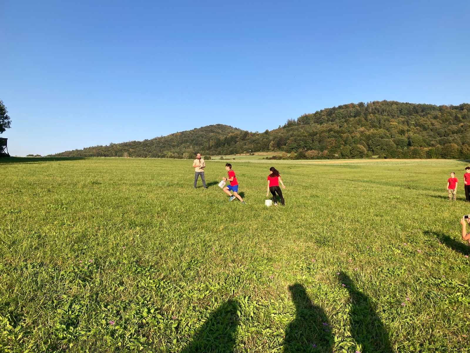 Startli jsme klasicky vyvěšením vlajky, nechali vzkaz pro opozdilce a vydali se na louku. Tam jsme si já a Páťa rozdělily týmy a podle kanystru, který byl položen doprostřed louky, jsme poznali, co nás čeká. Klepeto upřesnil, že se jedná o “plnotučný” kanystr, ale všichni staří pardáli podle pravidel pochopili, že to je úplně obyčejný hardcore. A ten mají Lišky opravdu v oblibě. Takže jsme se do toho s radostí vrhli. Začali jsme s čísly a pak přešli na verzi “vyběhne každý kdo…”. V průběhu se k nám připojili i Valča, Ondra a Janča. Zahráli jsme několik kol a v každém jsme o kanystr bojovali jako o život. Takže následný družiňák na odpočnutí celkem bodnul.