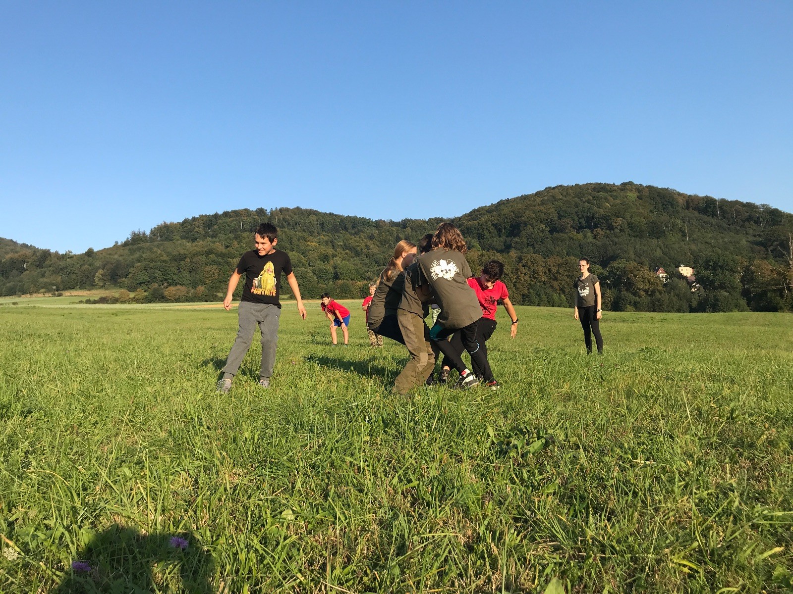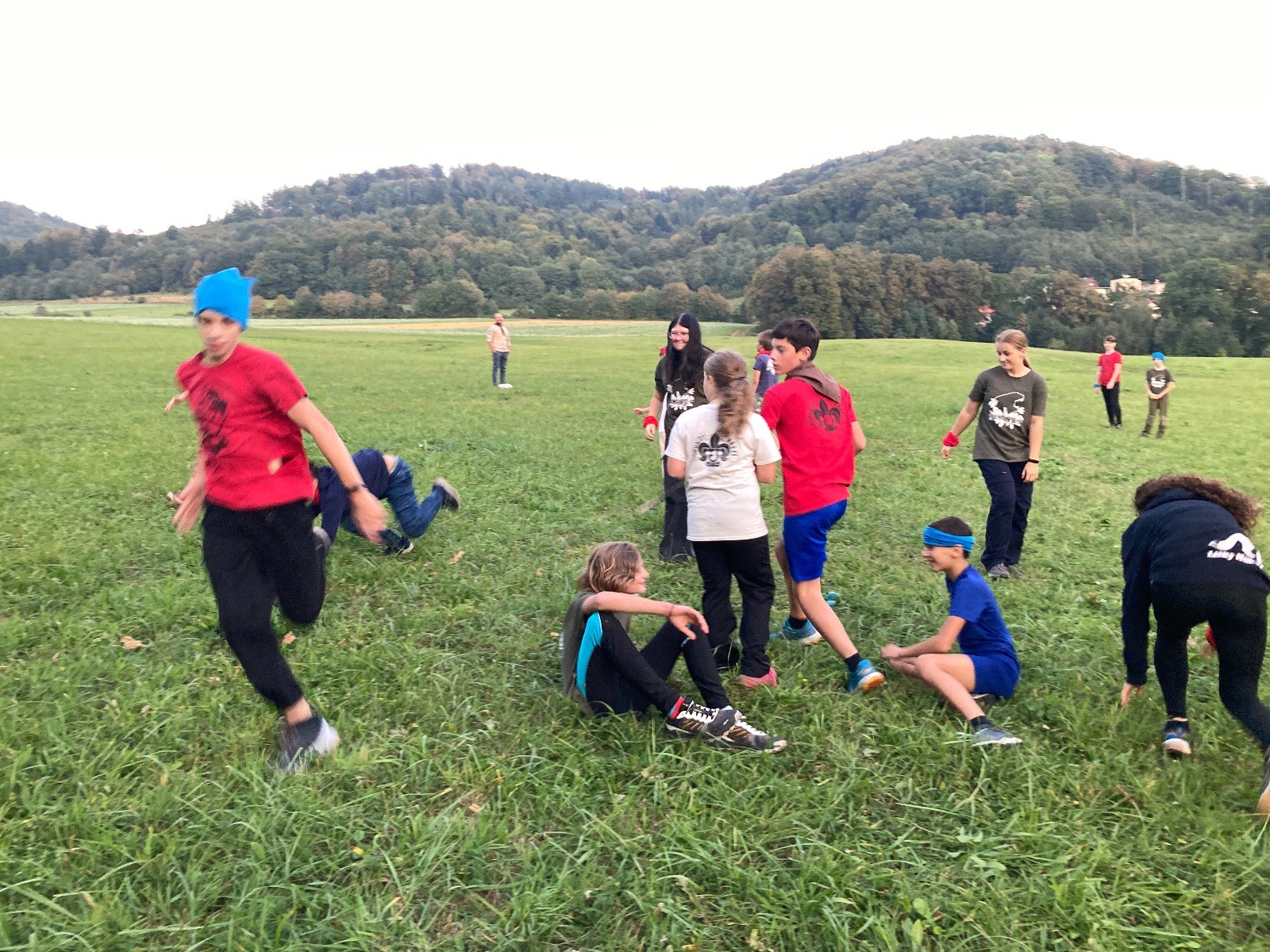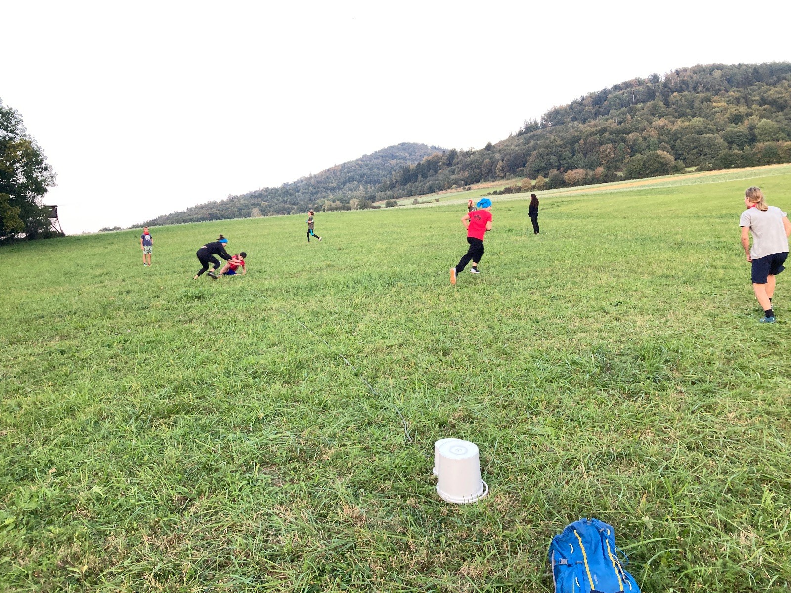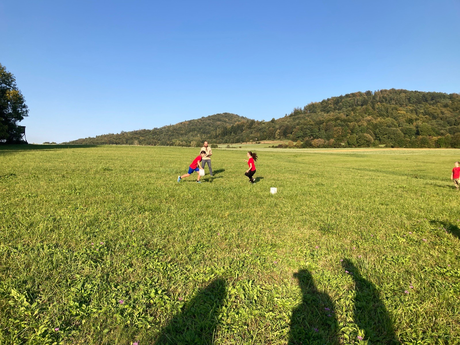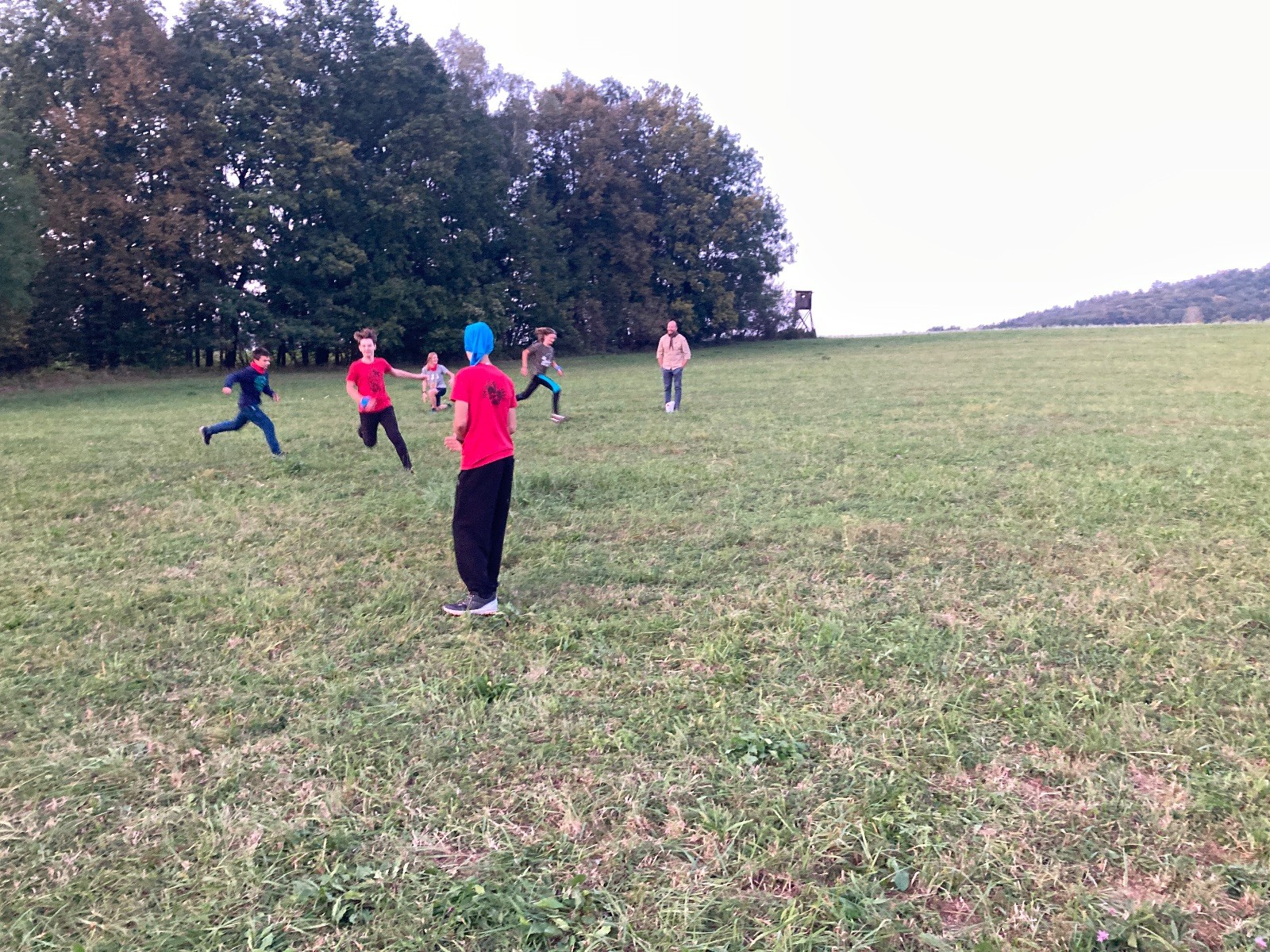 Startli jsme klasicky vyvěšením vlajky, nechali vzkaz pro opozdilce a vydali se na louku. Tam jsme si já a Páťa rozdělily týmy a podle kanystru, který byl položen doprostřed louky, jsme poznali, co nás čeká. Klepeto upřesnil, že se jedná o “plnotučný” kanystr, ale všichni staří pardáli podle pravidel pochopili, že to je úplně obyčejný hardcore. A ten mají Lišky opravdu v oblibě. Takže jsme se do toho s radostí vrhli. Začali jsme s čísly a pak přešli na verzi “vyběhne každý kdo…”. V průběhu se k nám připojili i Valča, Ondra a Janča. Zahráli jsme několik kol a v každém jsme o kanystr bojovali jako o život. Takže následný družiňák na odpočnutí celkem bodnul.