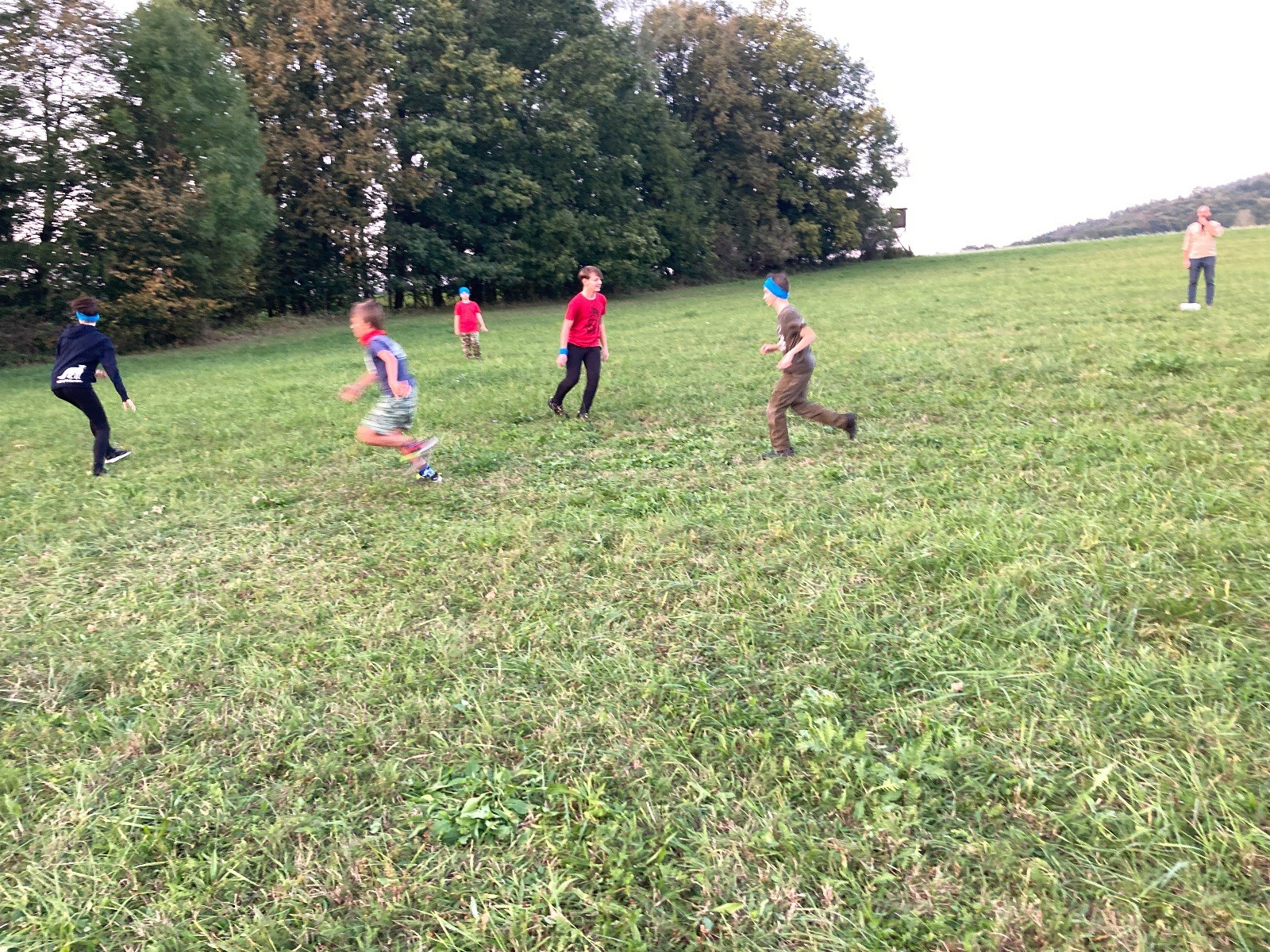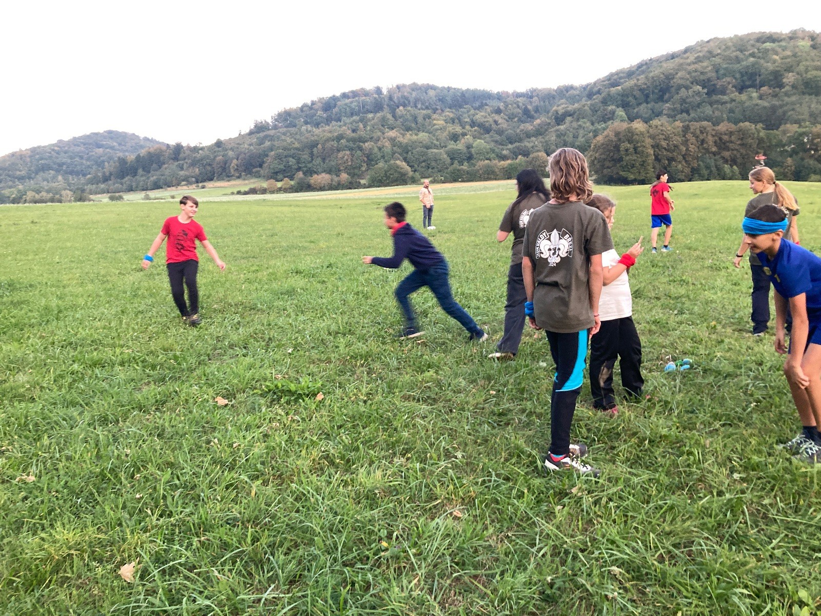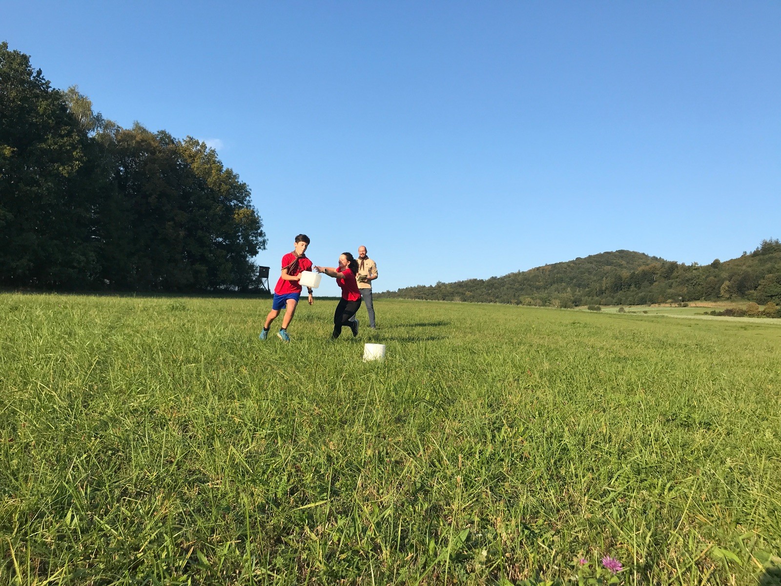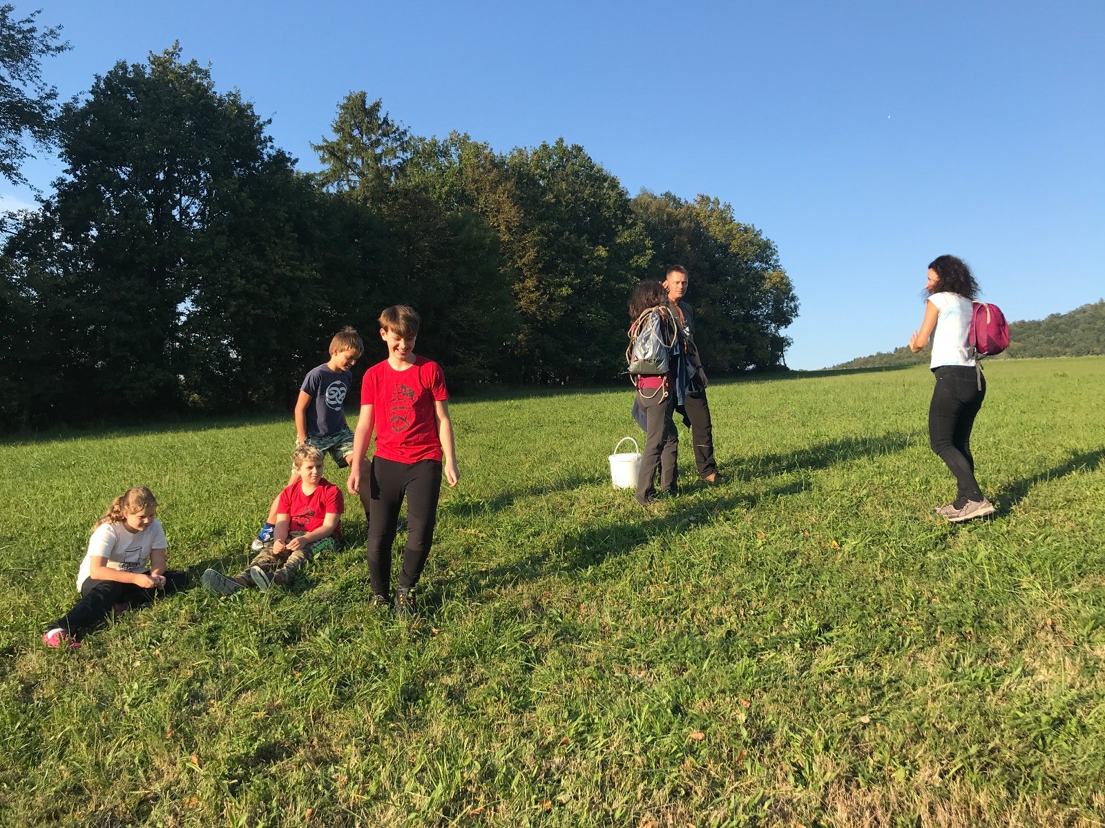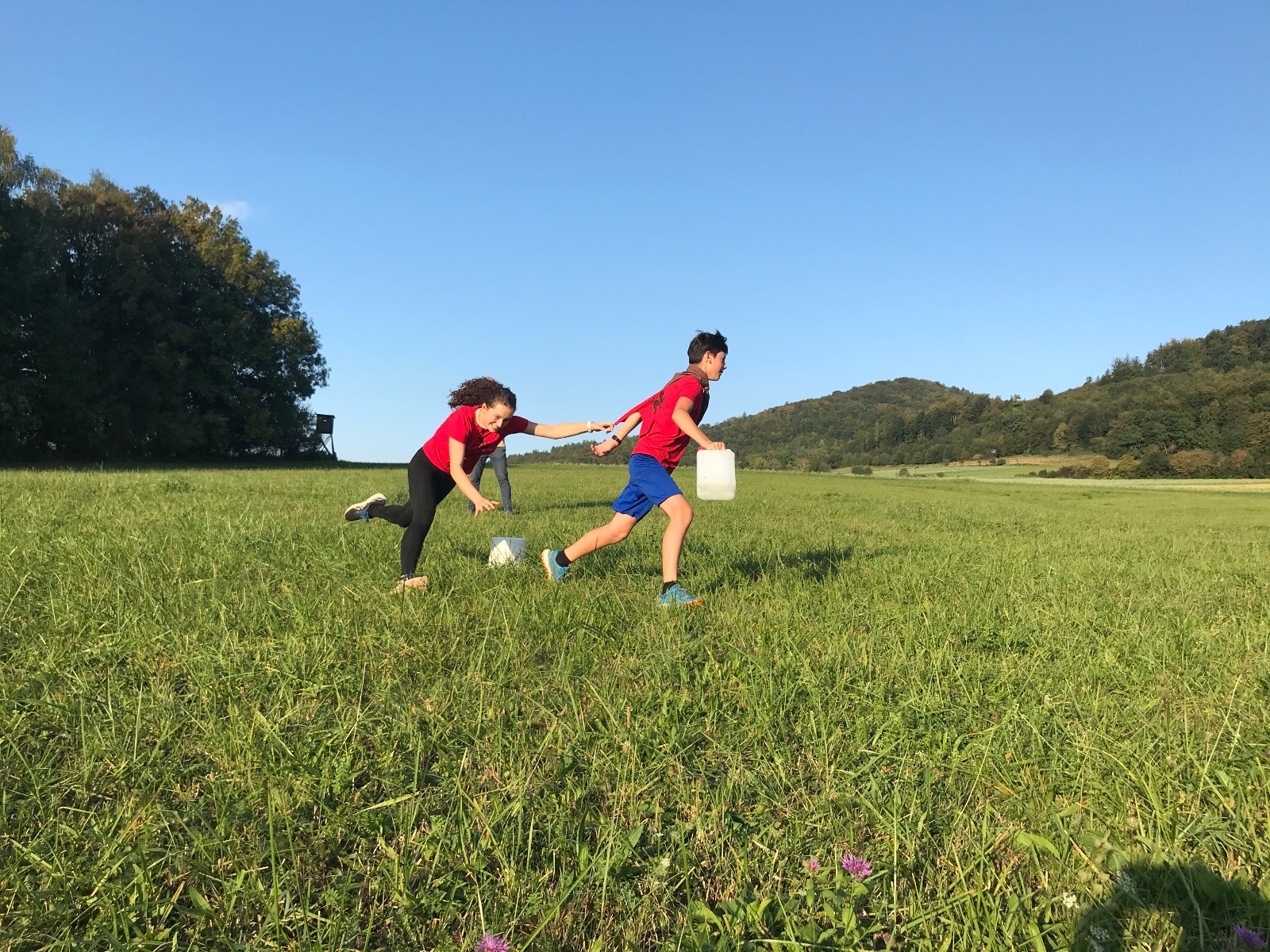 Startli jsme klasicky vyvěšením vlajky, nechali vzkaz pro opozdilce a vydali se na louku. Tam jsme si já a Páťa rozdělily týmy a podle kanystru, který byl položen doprostřed louky, jsme poznali, co nás čeká. Klepeto upřesnil, že se jedná o “plnotučný” kanystr, ale všichni staří pardáli podle pravidel pochopili, že to je úplně obyčejný hardcore. A ten mají Lišky opravdu v oblibě. Takže jsme se do toho s radostí vrhli. Začali jsme s čísly a pak přešli na verzi “vyběhne každý kdo…”. V průběhu se k nám připojili i Valča, Ondra a Janča. Zahráli jsme několik kol a v každém jsme o kanystr bojovali jako o život. Takže následný družiňák na odpočnutí celkem bodnul.