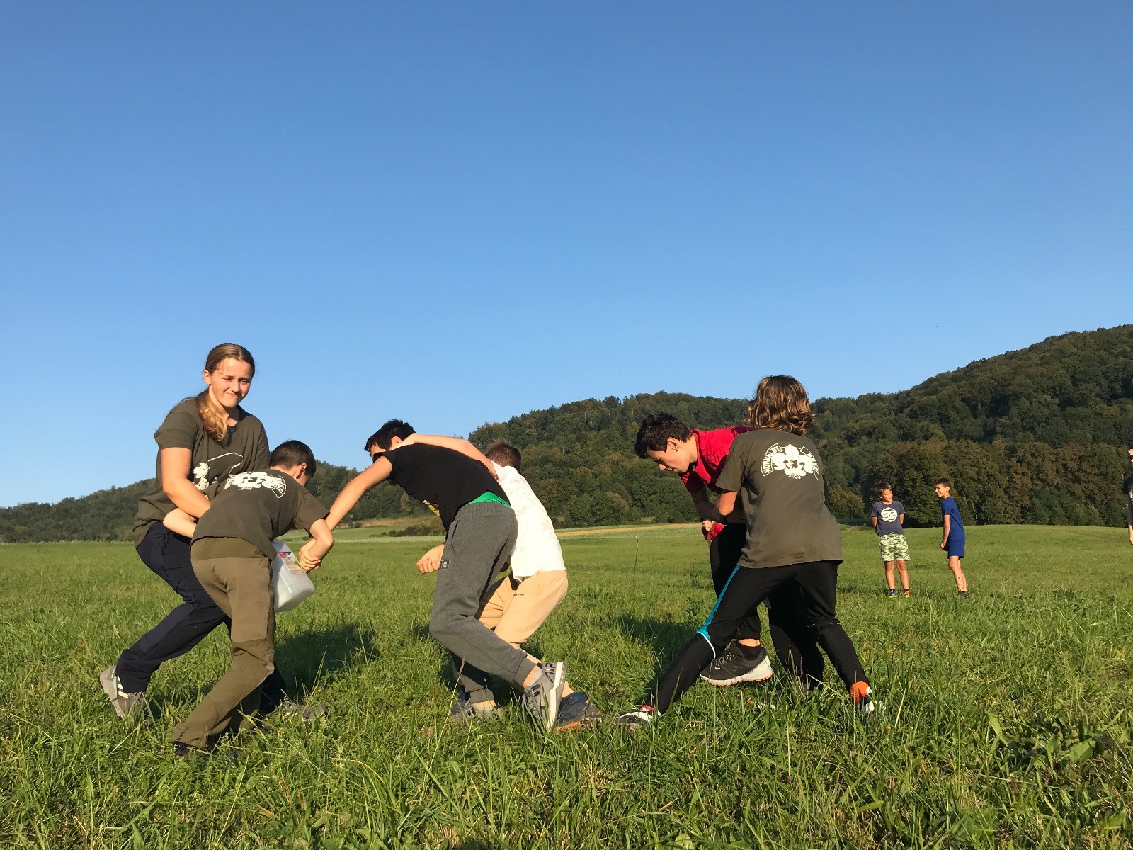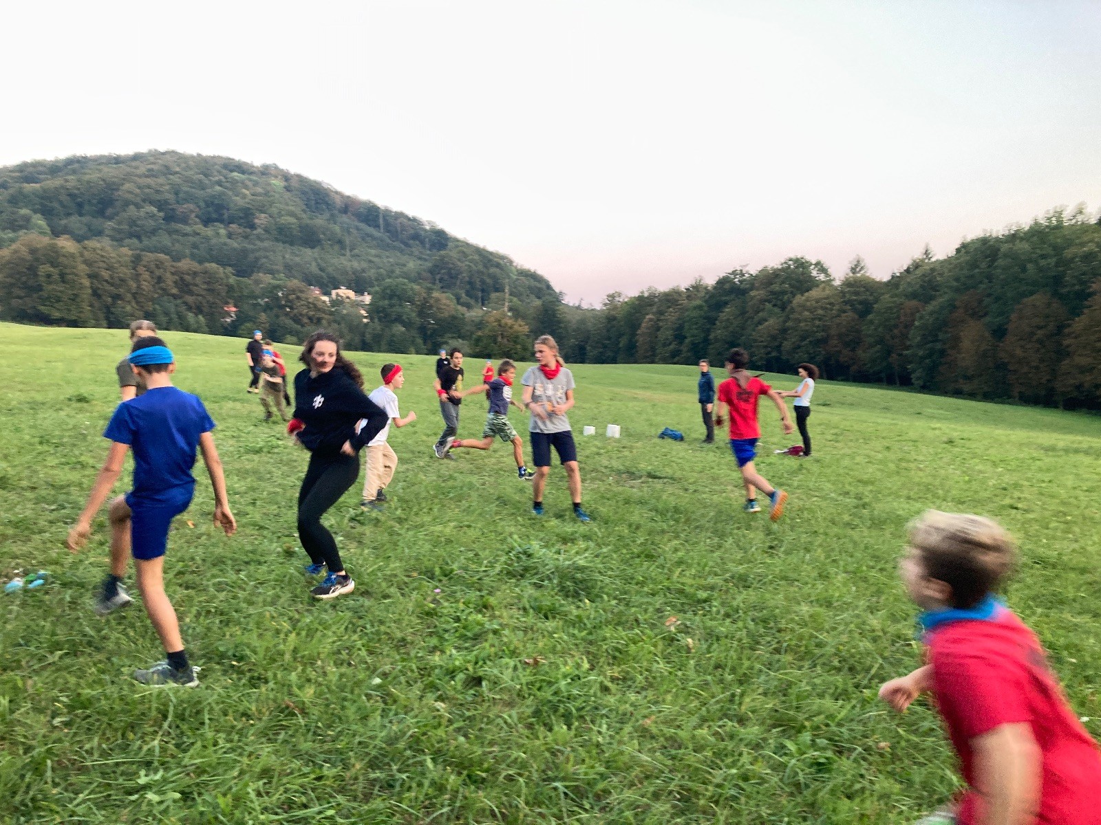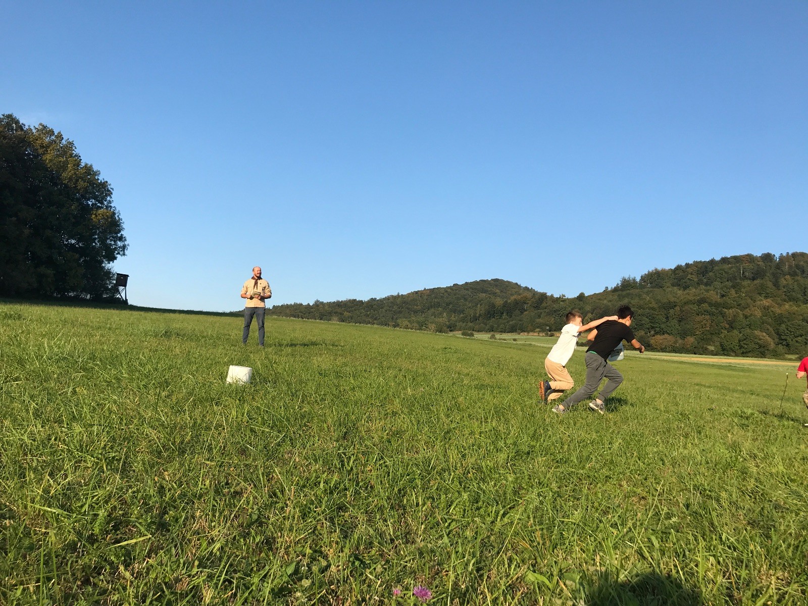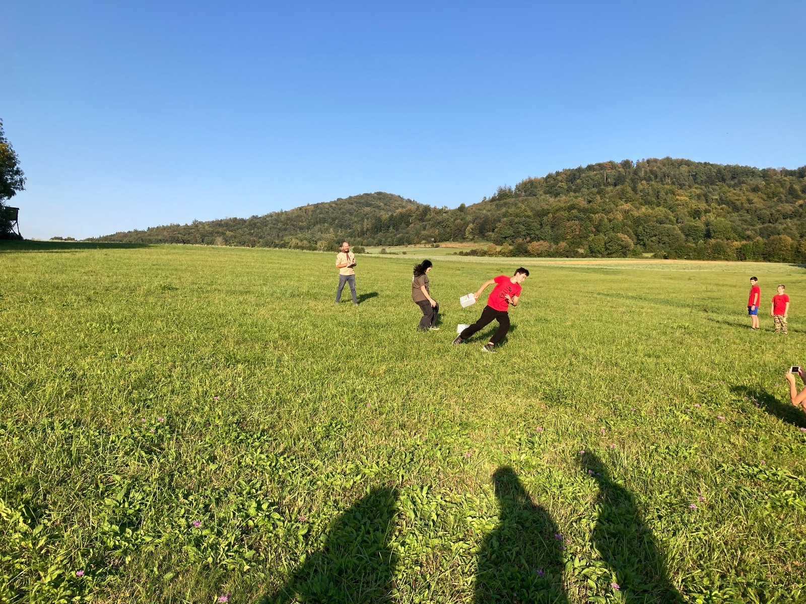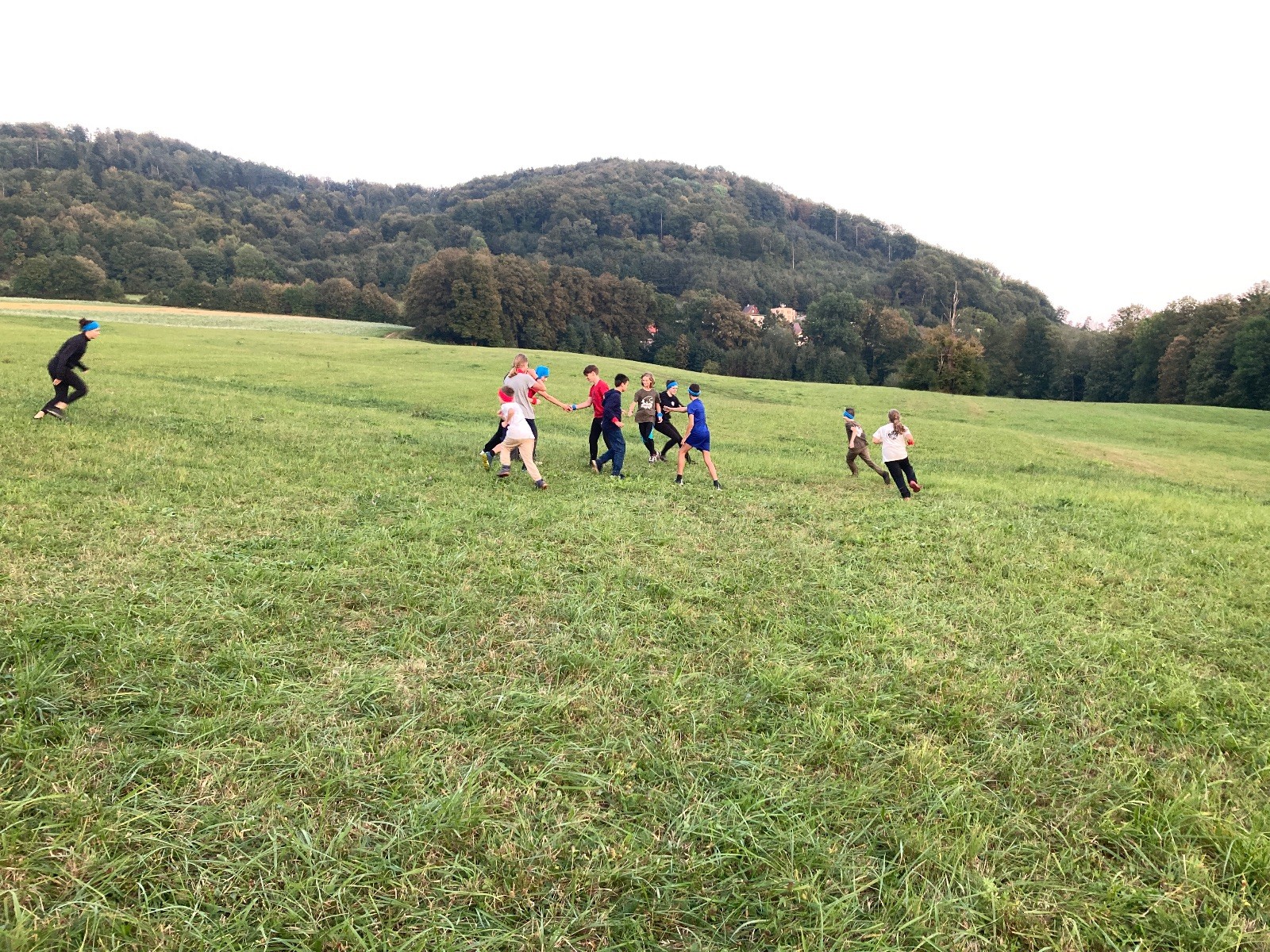 Startli jsme klasicky vyvěšením vlajky, nechali vzkaz pro opozdilce a vydali se na louku. Tam jsme si já a Páťa rozdělily týmy a podle kanystru, který byl položen doprostřed louky, jsme poznali, co nás čeká. Klepeto upřesnil, že se jedná o “plnotučný” kanystr, ale všichni staří pardáli podle pravidel pochopili, že to je úplně obyčejný hardcore. A ten mají Lišky opravdu v oblibě. Takže jsme se do toho s radostí vrhli. Začali jsme s čísly a pak přešli na verzi “vyběhne každý kdo…”. V průběhu se k nám připojili i Valča, Ondra a Janča. Zahráli jsme několik kol a v každém jsme o kanystr bojovali jako o život. Takže následný družiňák na odpočnutí celkem bodnul.