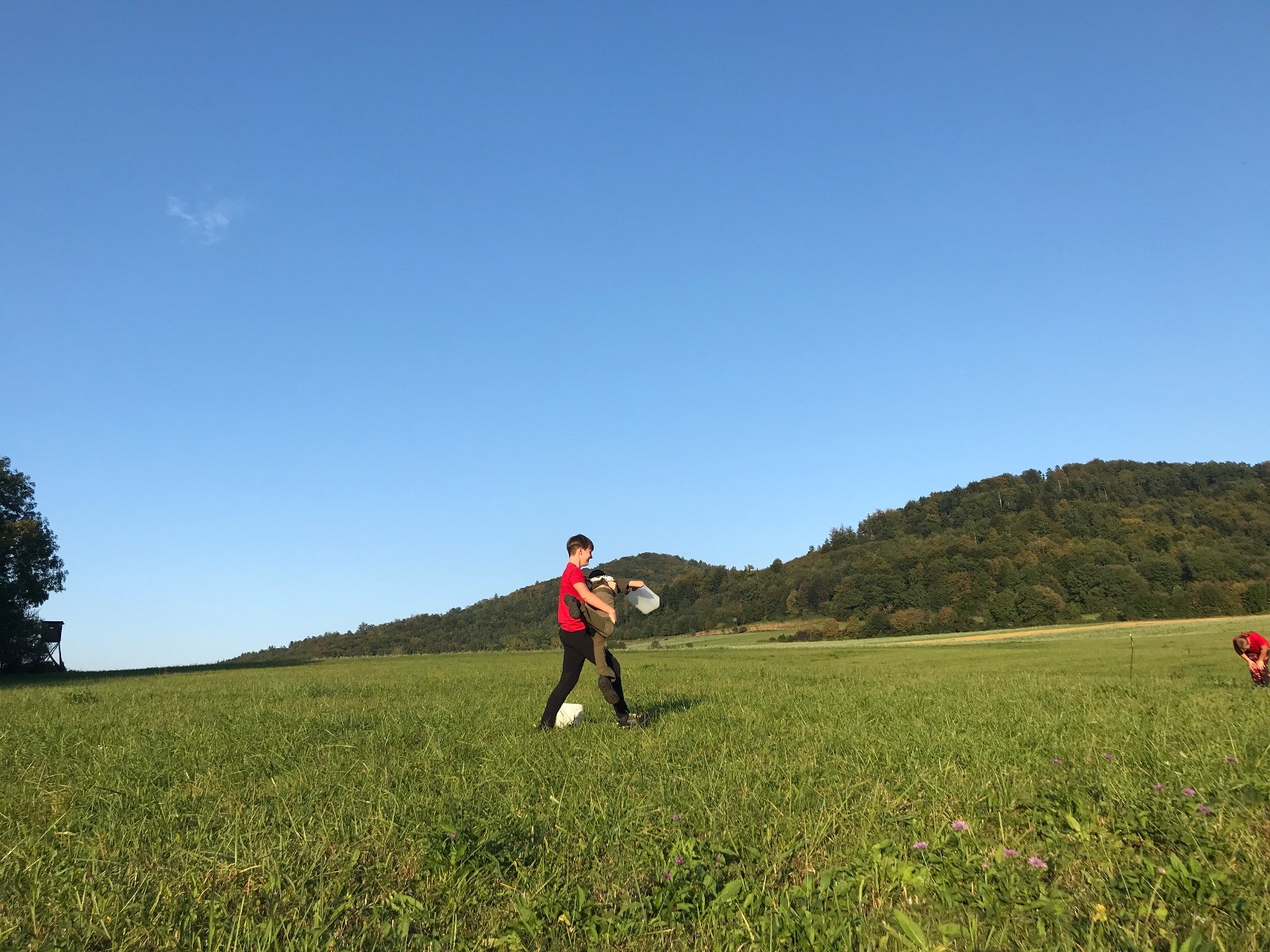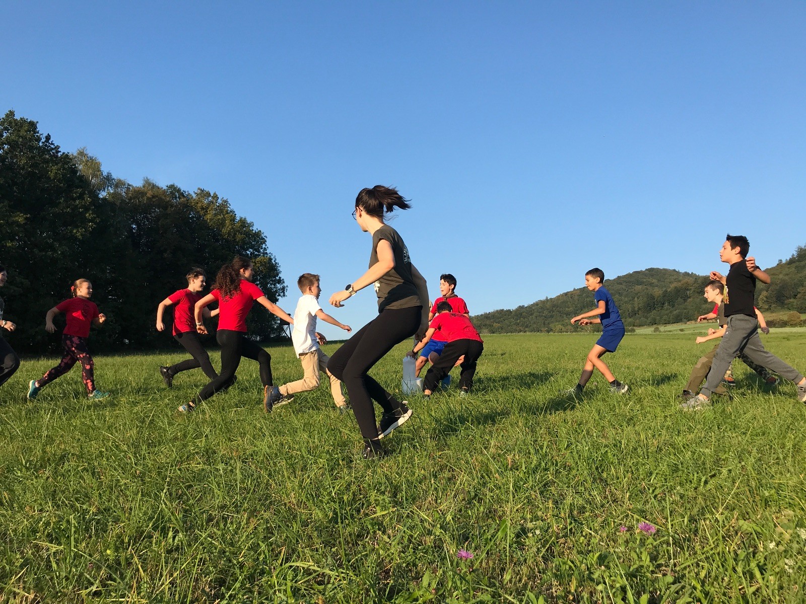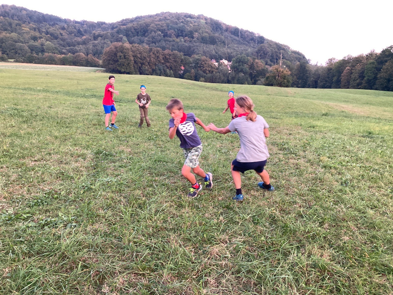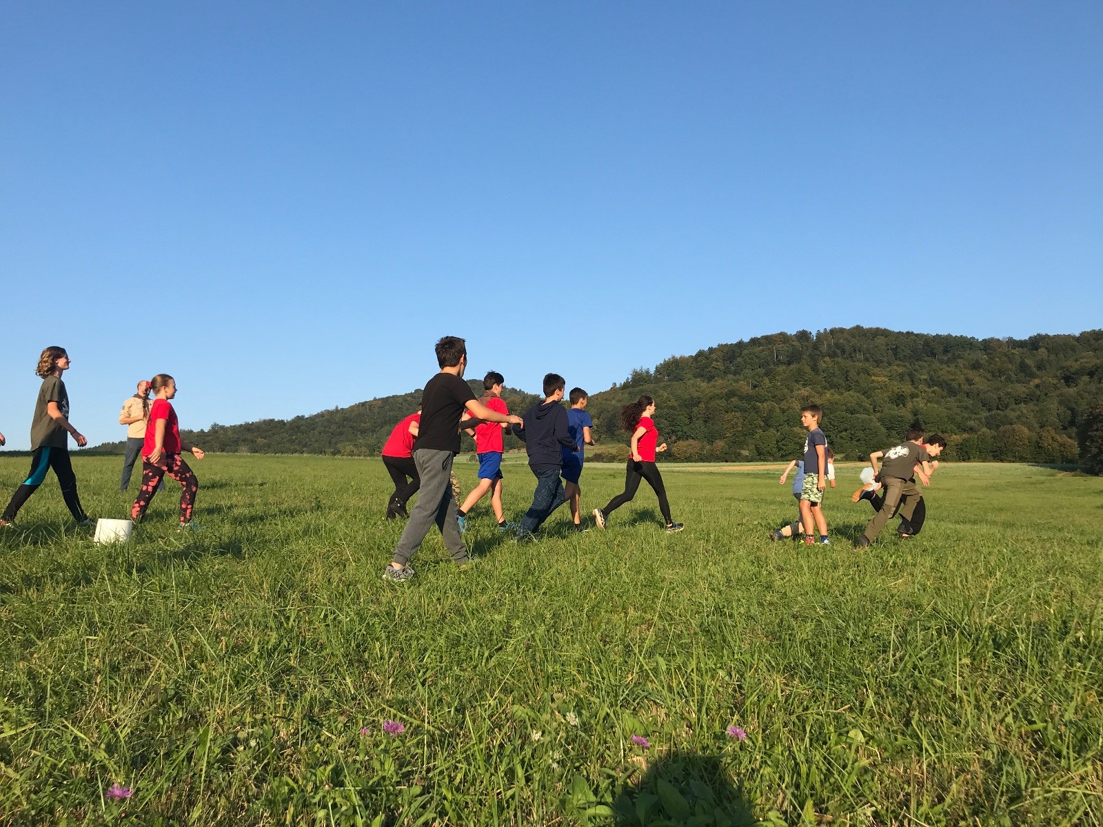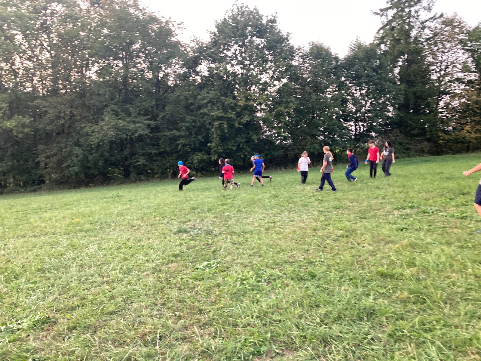 Startli jsme klasicky vyvěšením vlajky, nechali vzkaz pro opozdilce a vydali se na louku. Tam jsme si já a Páťa rozdělily týmy a podle kanystru, který byl položen doprostřed louky, jsme poznali, co nás čeká. Klepeto upřesnil, že se jedná o “plnotučný” kanystr, ale všichni staří pardáli podle pravidel pochopili, že to je úplně obyčejný hardcore. A ten mají Lišky opravdu v oblibě. Takže jsme se do toho s radostí vrhli. Začali jsme s čísly a pak přešli na verzi “vyběhne každý kdo…”. V průběhu se k nám připojili i Valča, Ondra a Janča. Zahráli jsme několik kol a v každém jsme o kanystr bojovali jako o život. Takže následný družiňák na odpočnutí celkem bodnul.
