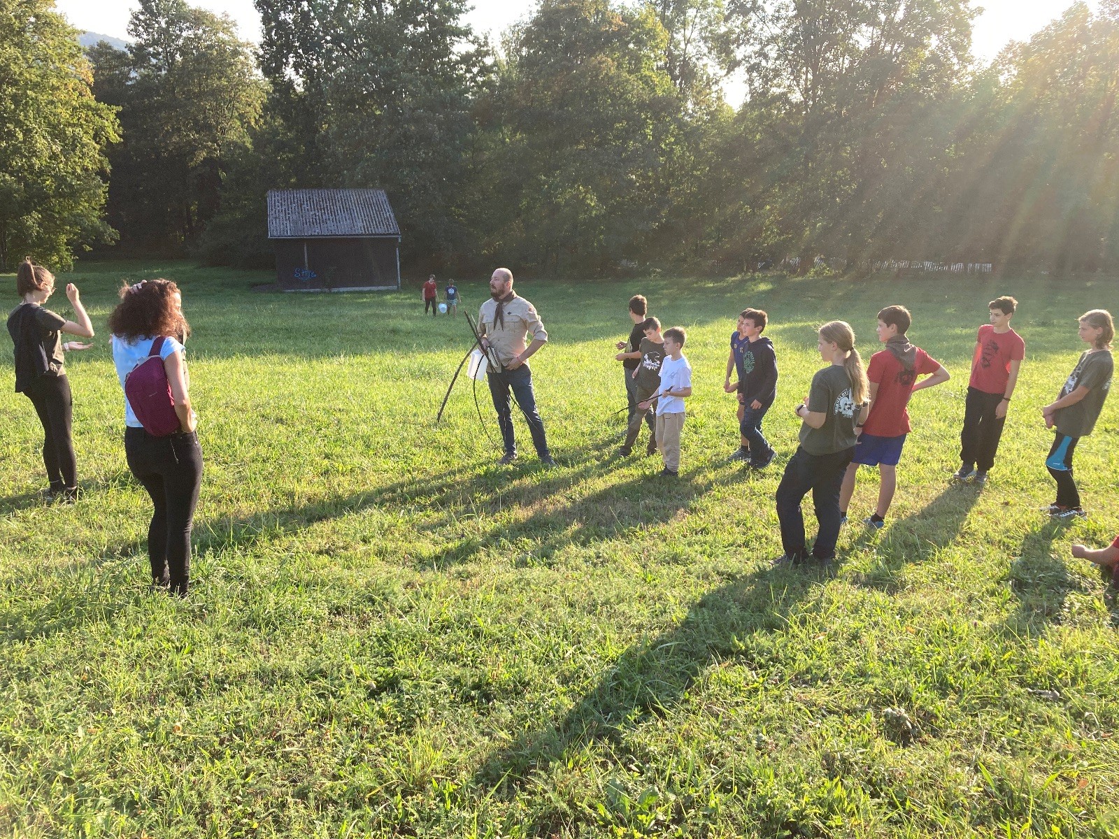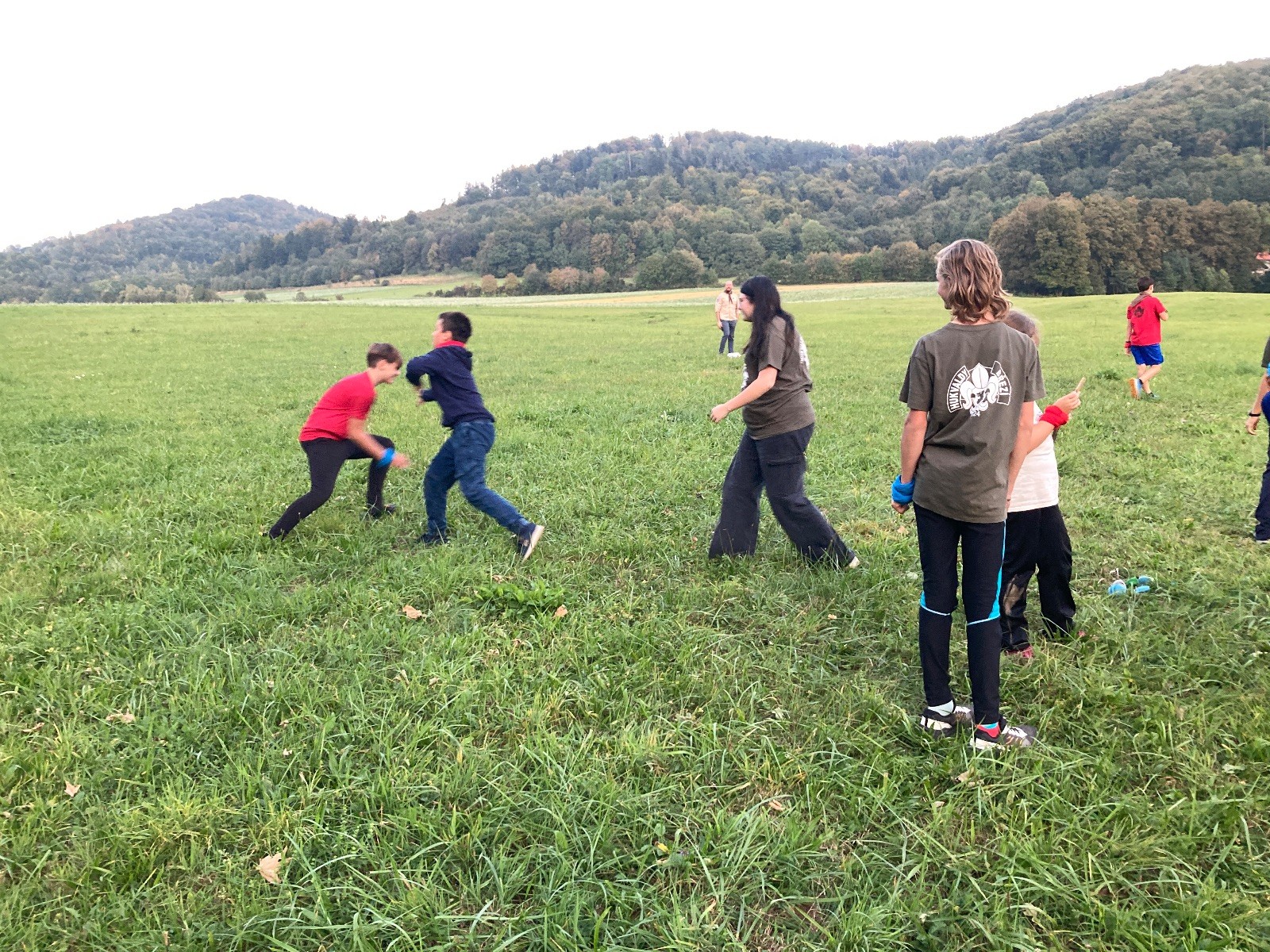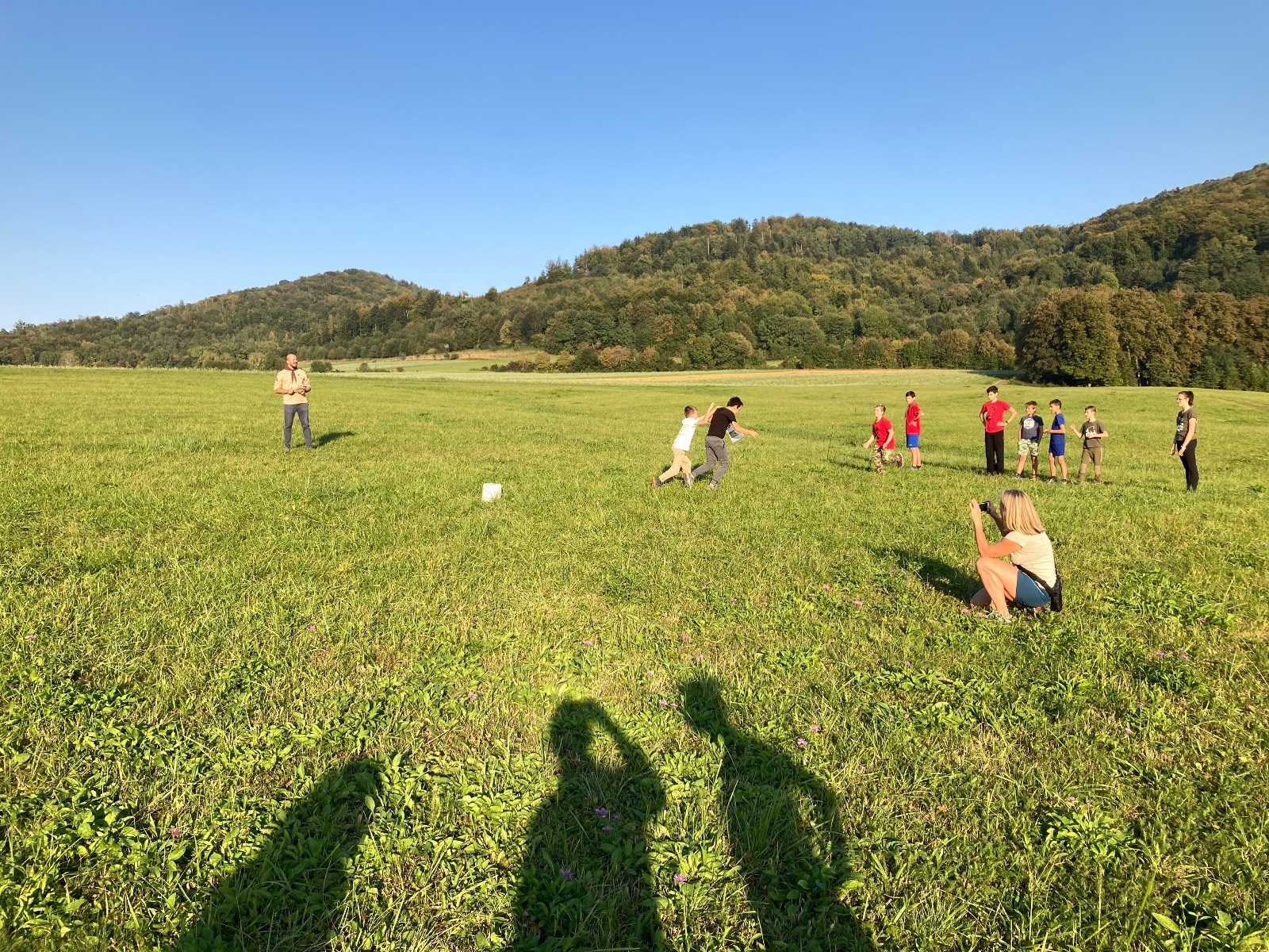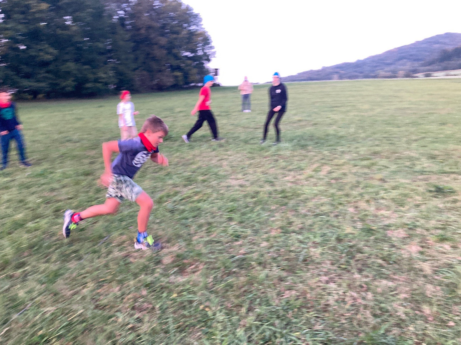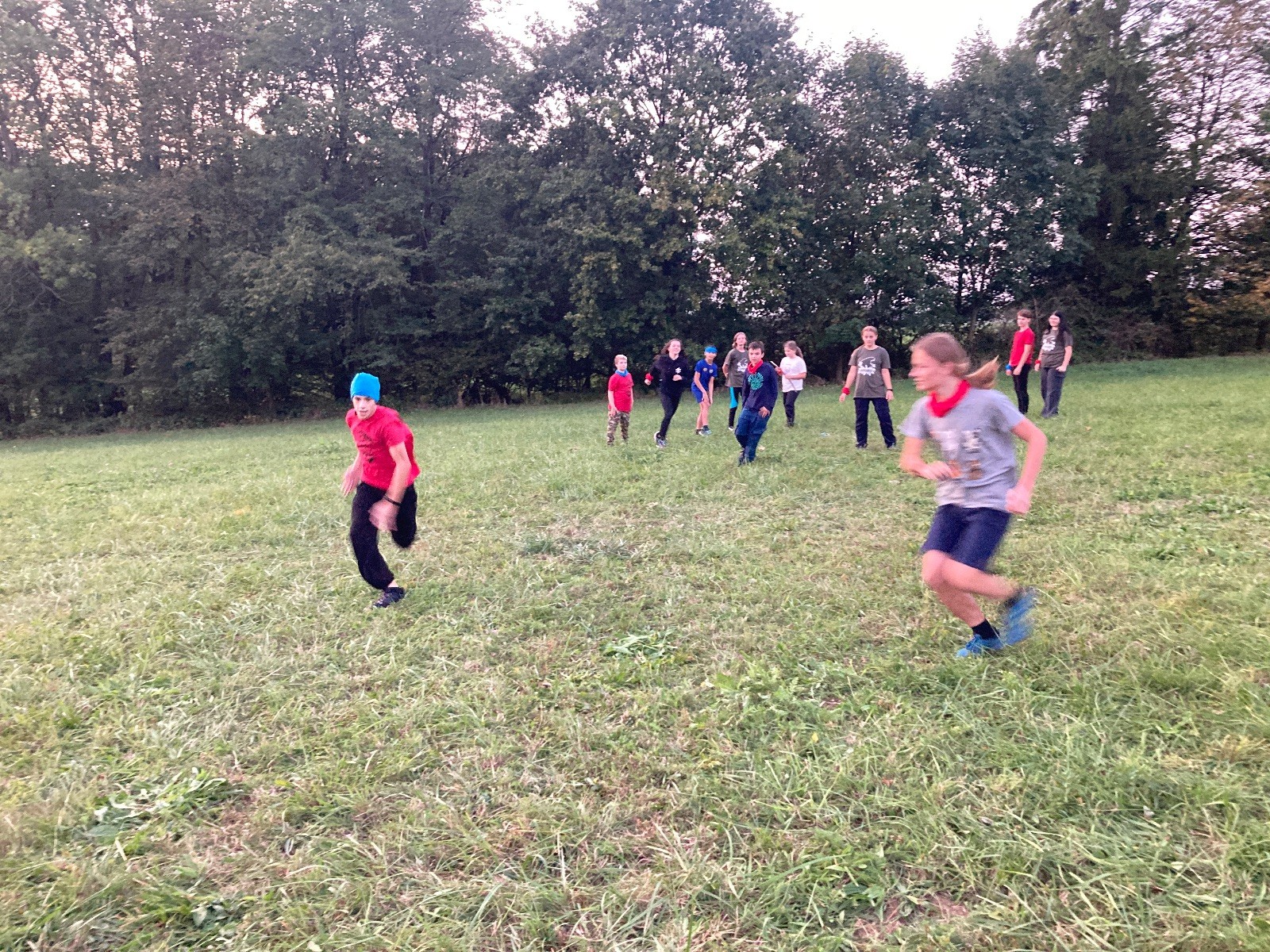 Startli jsme klasicky vyvěšením vlajky, nechali vzkaz pro opozdilce a vydali se na louku. Tam jsme si já a Páťa rozdělily týmy a podle kanystru, který byl položen doprostřed louky, jsme poznali, co nás čeká. Klepeto upřesnil, že se jedná o “plnotučný” kanystr, ale všichni staří pardáli podle pravidel pochopili, že to je úplně obyčejný hardcore. A ten mají Lišky opravdu v oblibě. Takže jsme se do toho s radostí vrhli. Začali jsme s čísly a pak přešli na verzi “vyběhne každý kdo…”. V průběhu se k nám připojili i Valča, Ondra a Janča. Zahráli jsme několik kol a v každém jsme o kanystr bojovali jako o život. Takže následný družiňák na odpočnutí celkem bodnul.