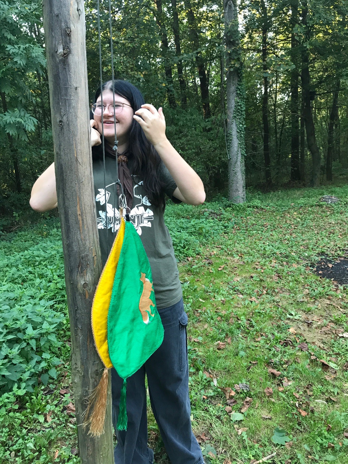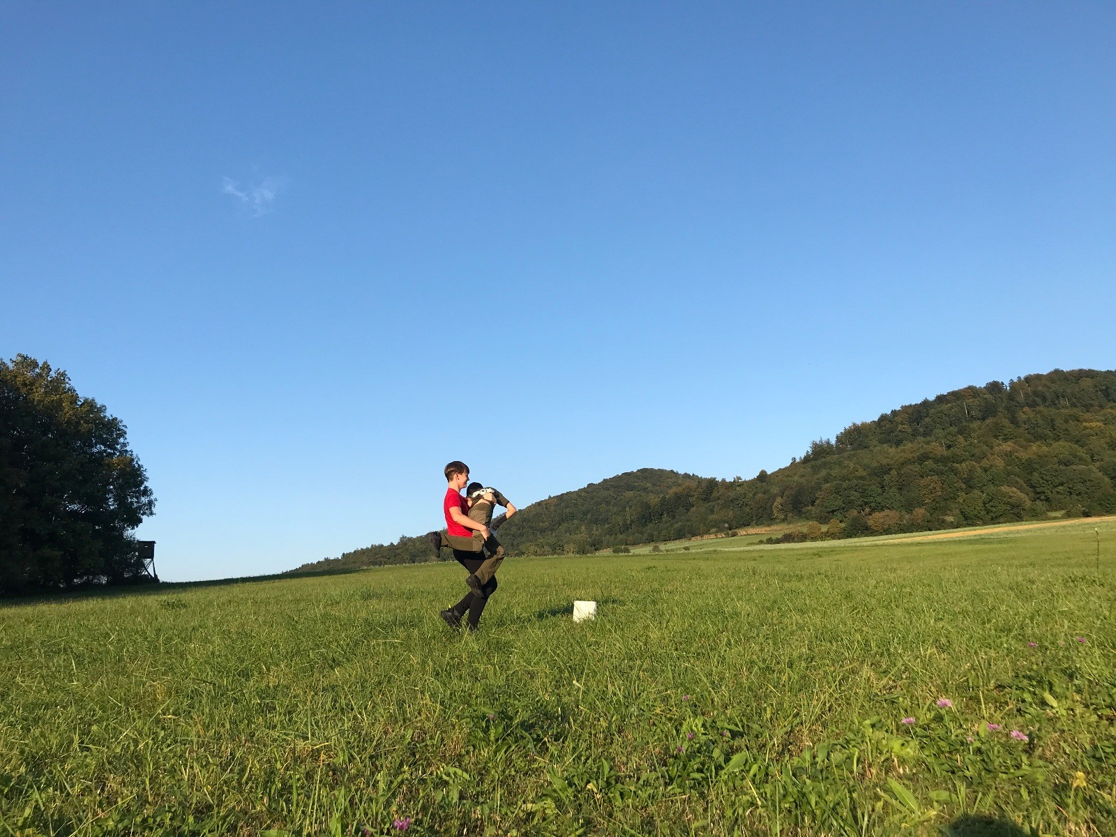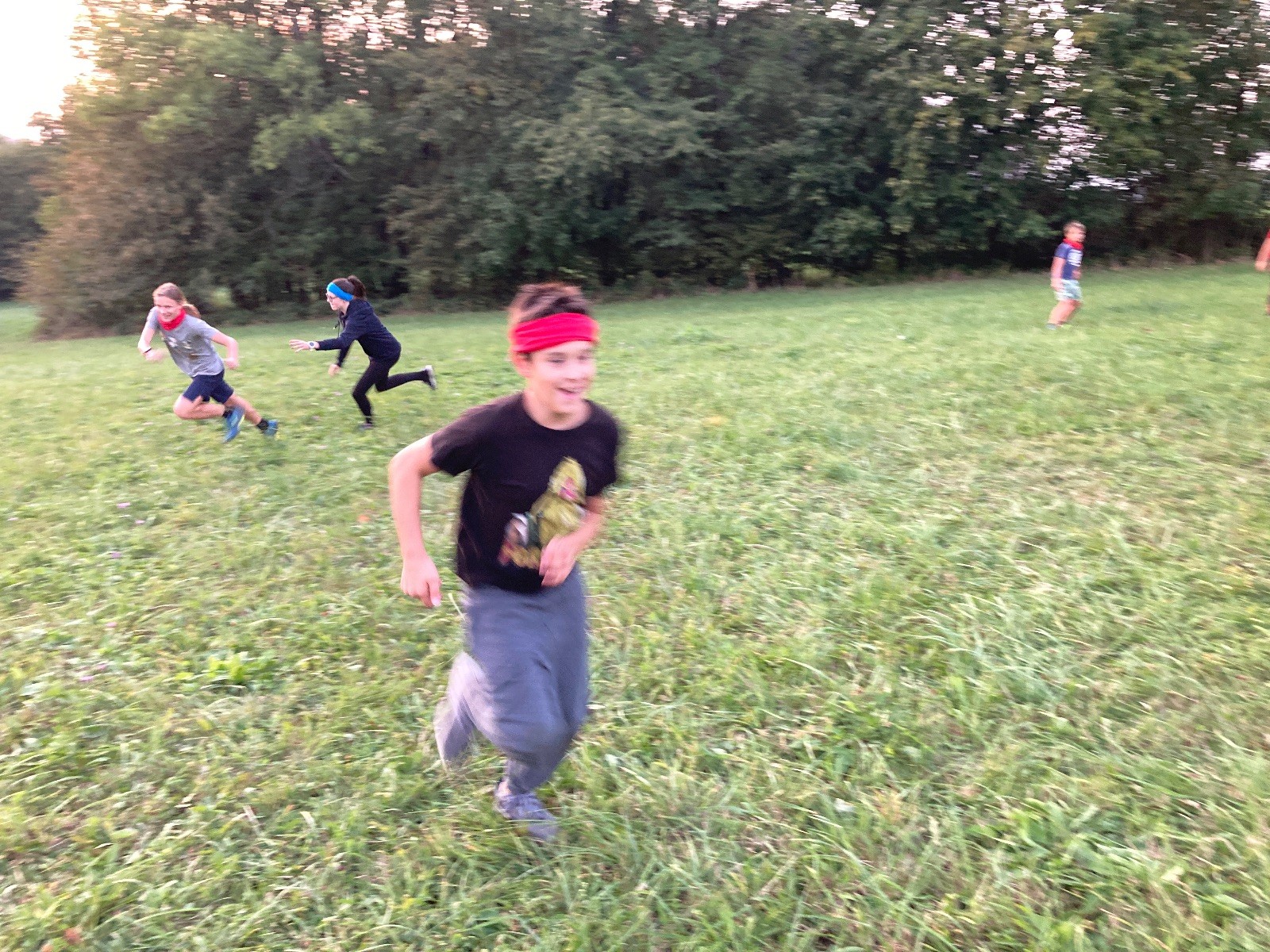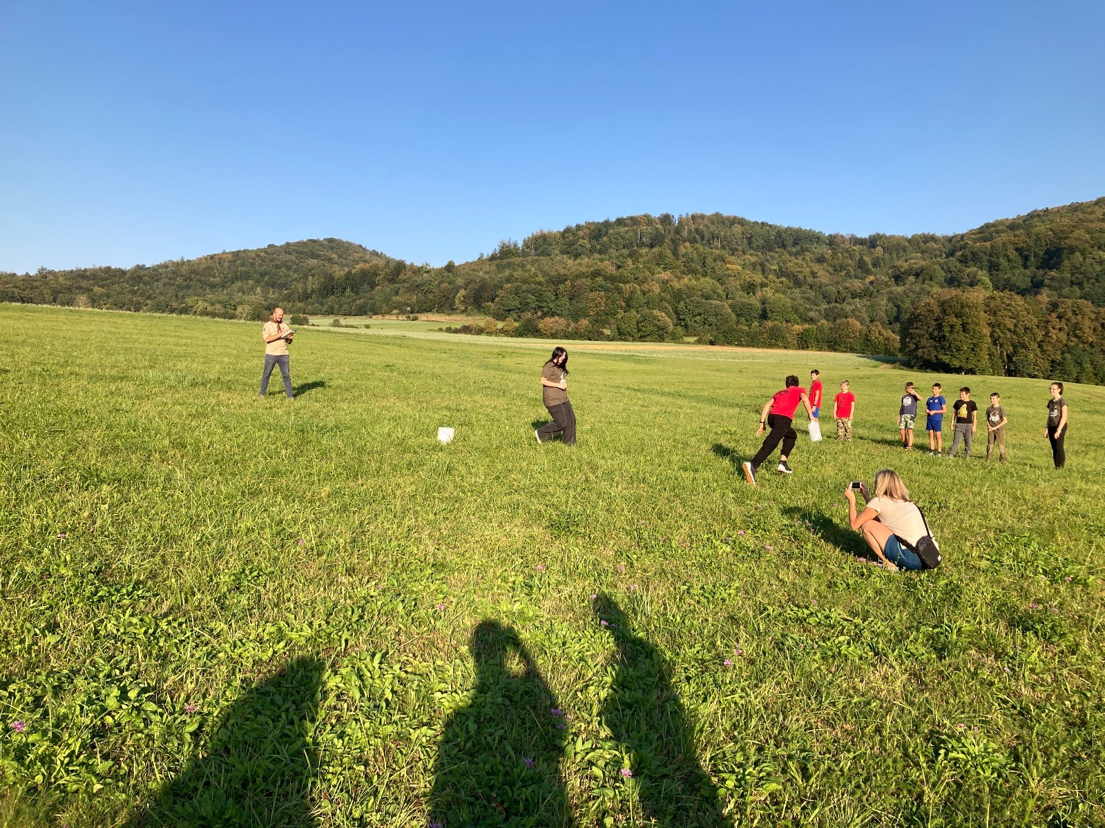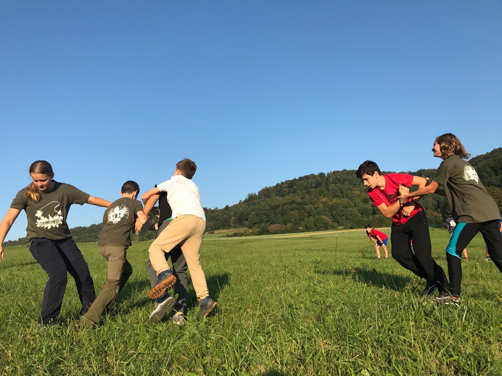 Startli jsme klasicky vyvěšením vlajky, nechali vzkaz pro opozdilce a vydali se na louku. Tam jsme si já a Páťa rozdělily týmy a podle kanystru, který byl položen doprostřed louky, jsme poznali, co nás čeká. Klepeto upřesnil, že se jedná o “plnotučný” kanystr, ale všichni staří pardáli podle pravidel pochopili, že to je úplně obyčejný hardcore. A ten mají Lišky opravdu v oblibě. Takže jsme se do toho s radostí vrhli. Začali jsme s čísly a pak přešli na verzi “vyběhne každý kdo…”. V průběhu se k nám připojili i Valča, Ondra a Janča. Zahráli jsme několik kol a v každém jsme o kanystr bojovali jako o život. Takže následný družiňák na odpočnutí celkem bodnul.