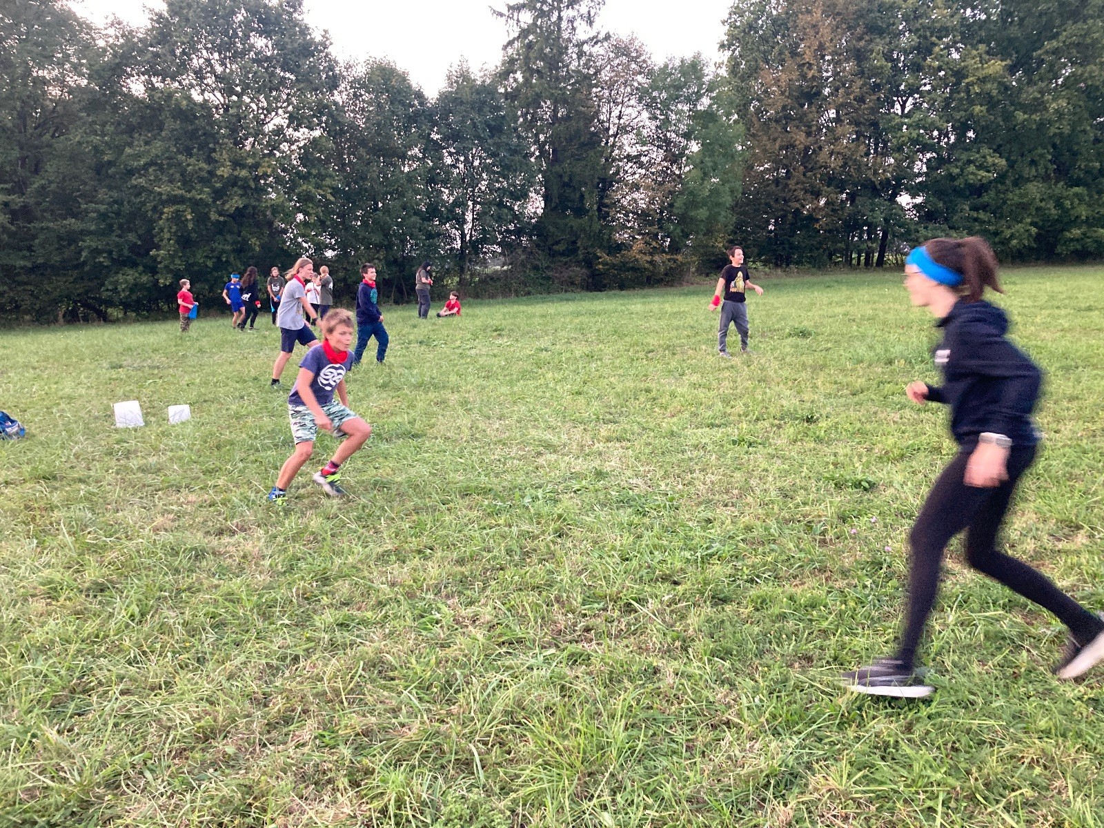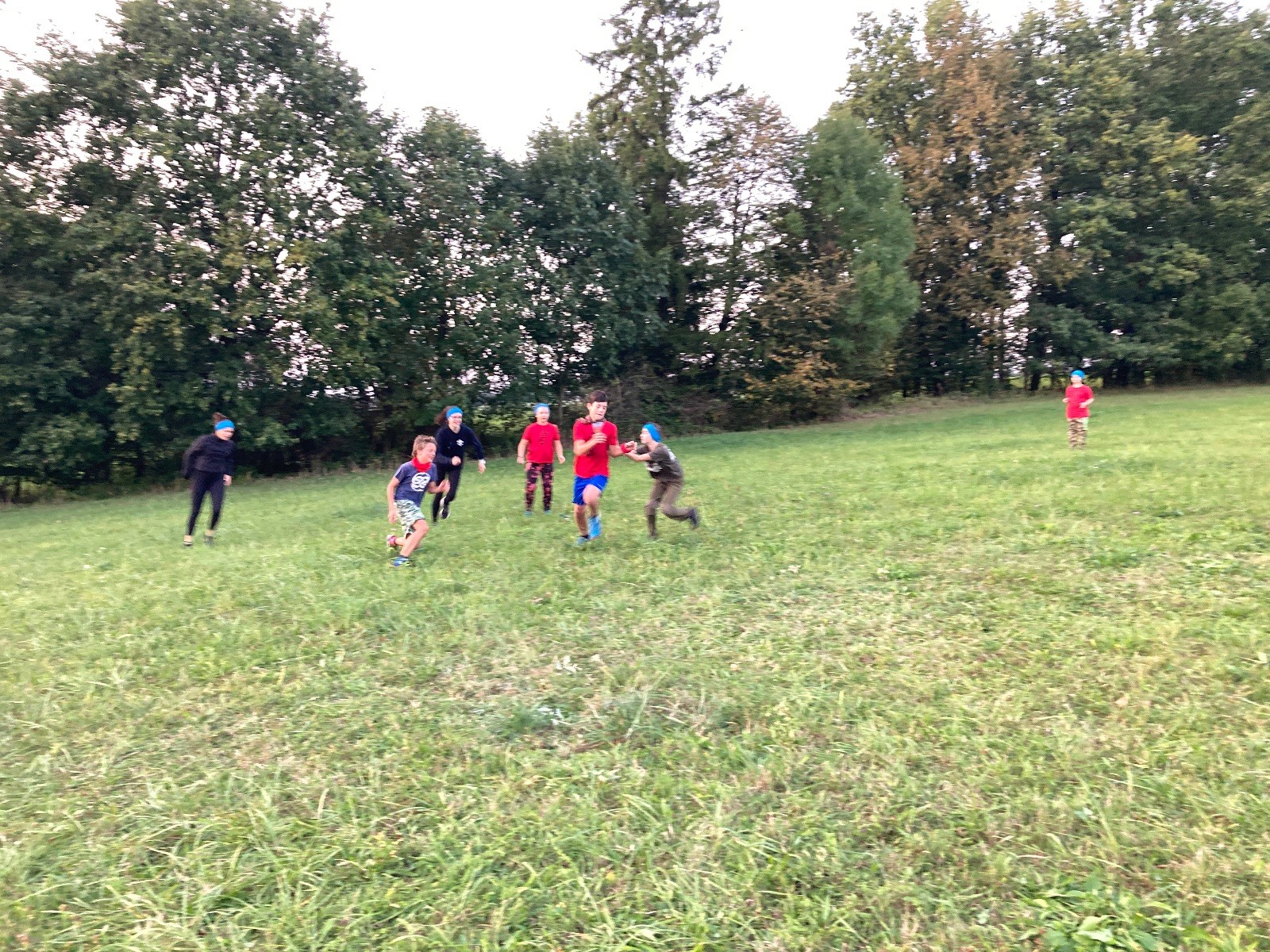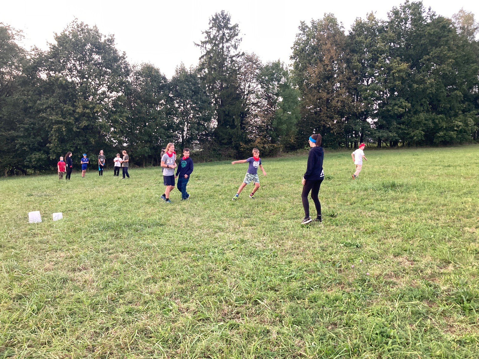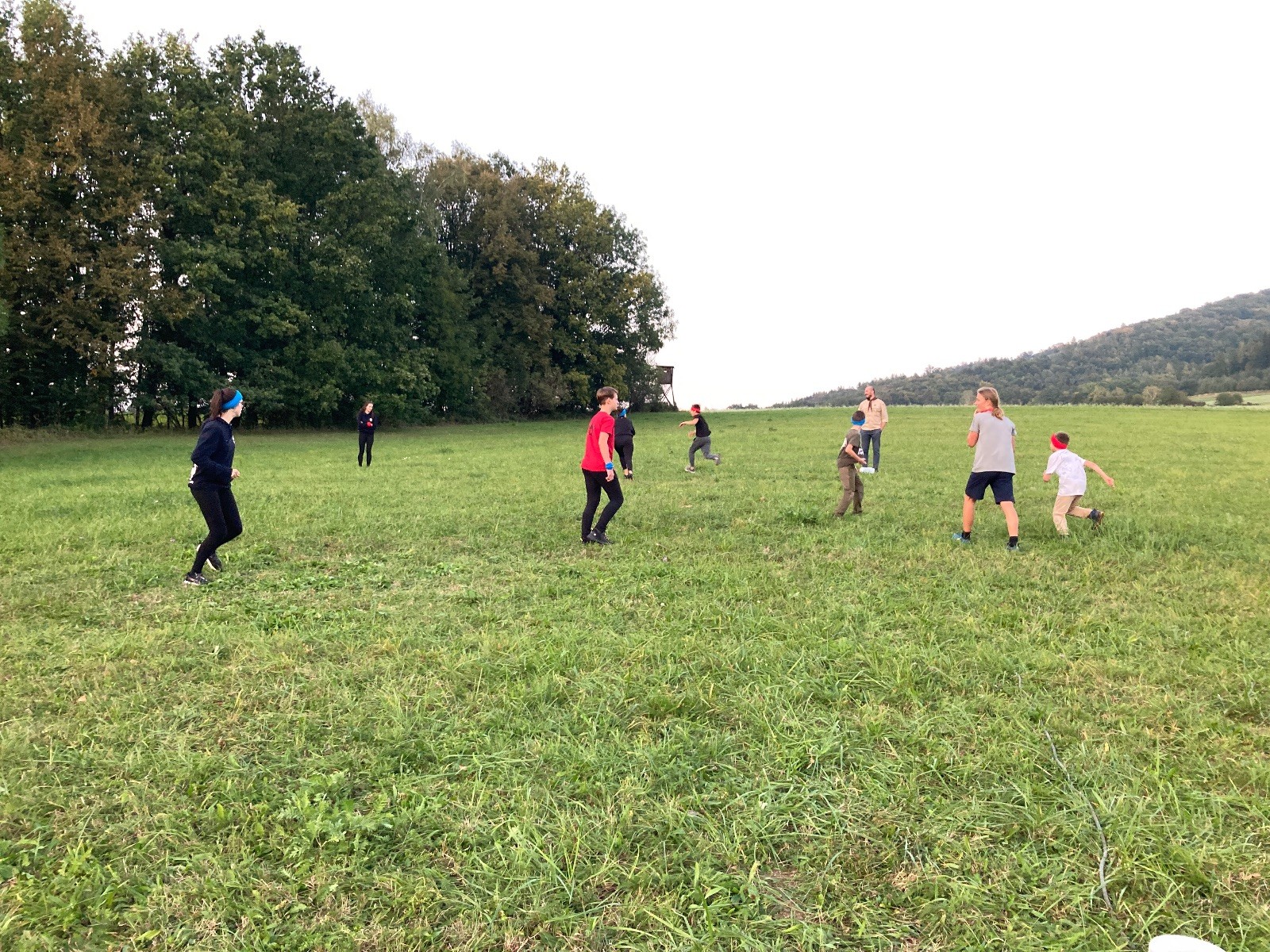 Na konci schůzky jsme stihli ještě zahrát dvě kola upgradované vlajkované. Oproti normální vlajkované byla změna v tom, že každý tým měl 2 hnízda a tři vlajky. Taky hra nekončila ukradnutím cizí vlajky, ale mohlo se krást dokud nevypršel čas. To znamená, že hra mohla skončit stavem, kdy jeden tým měl všech 6 vlajek a druhý žádné. Za mě parádní modifikace.