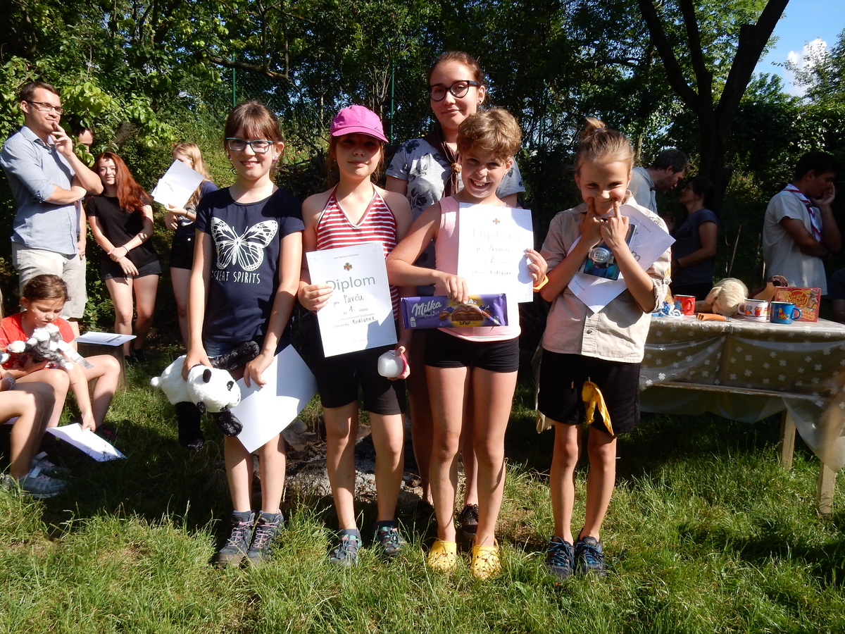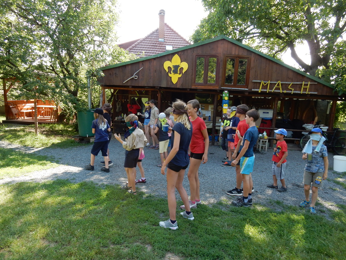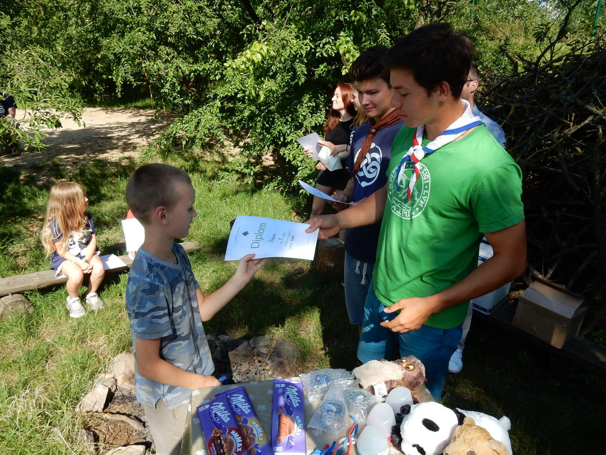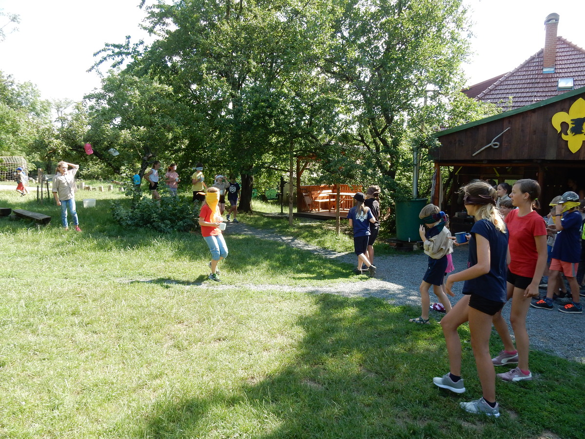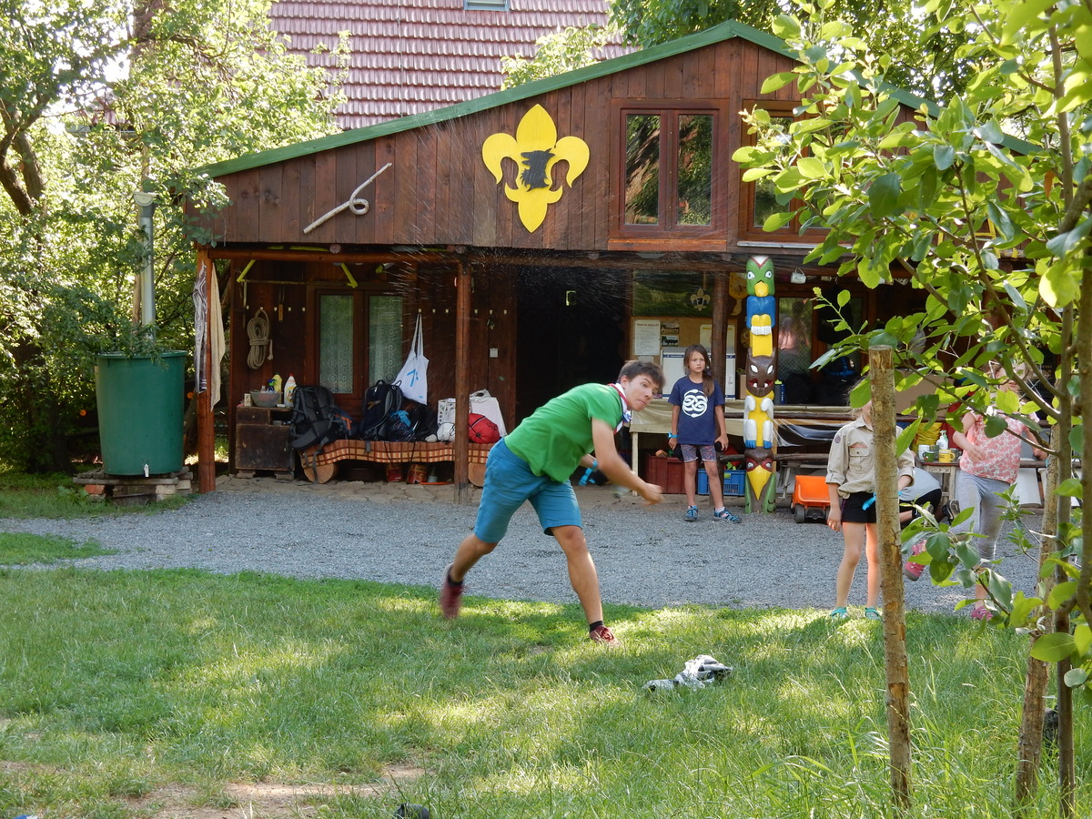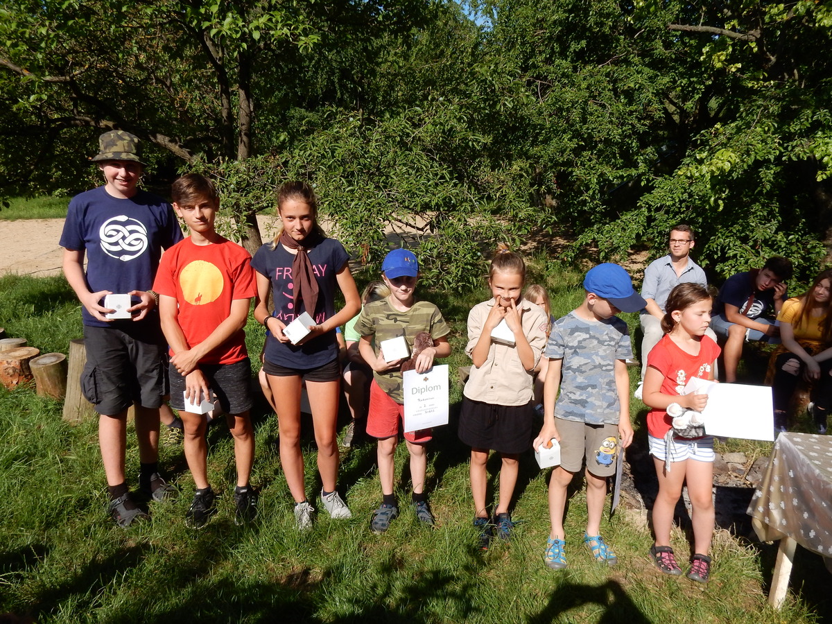Je pátek 21.6.2019, 15:45, první letní den. Teploty atakují 30°C, svítí sluníčko a na Boudě se začínají scházet první členové oddílu. Sešlo se 48 dětí a 17 vedoucích.Po nástupu se děcka rozdělily na 2 poloviny a vysvětlily se pravidla hry Letadlo v mlze. Jde o hru, kde se v každém týmu děti rozdělí do dvojic, střelec se zavázanýma očima a navigátor. Po rozeznění píšťalky letí letadla do boje… Voda lítala vzduchem jako upřené pohledy střelců. Po dohrání se všichni sešli na špalcích a začalo vyhodnocování bodování a účasti. Jmen bylo řečeno během 10 minut opravdu hodně… Děti odcházely s odměnami jako jsou třeba plyšáci, čelovky, hrníčky, atd. Následovalo vyhodnocení otázek ze soutěže Vyznáte se?. Po vyhodnocení hned následovala tradiční bojovka s hadrovými koulemi. Stejné týmy, avšak s posilama z řad vedoucích. Bitva to byla neskutečná, koule lítaly vzduchem jedna za druhou. Zvednuté ruce a smutné odcházení na špalek… Po 3 kolech se rozhodlo vítězstvím 2:1 pro zelený. Teď už není moc o čem psát protože proběhl závěrečný nástup a šlo se domů. Tak se snad všichni zase brzo potkáme na táboře! Roxy